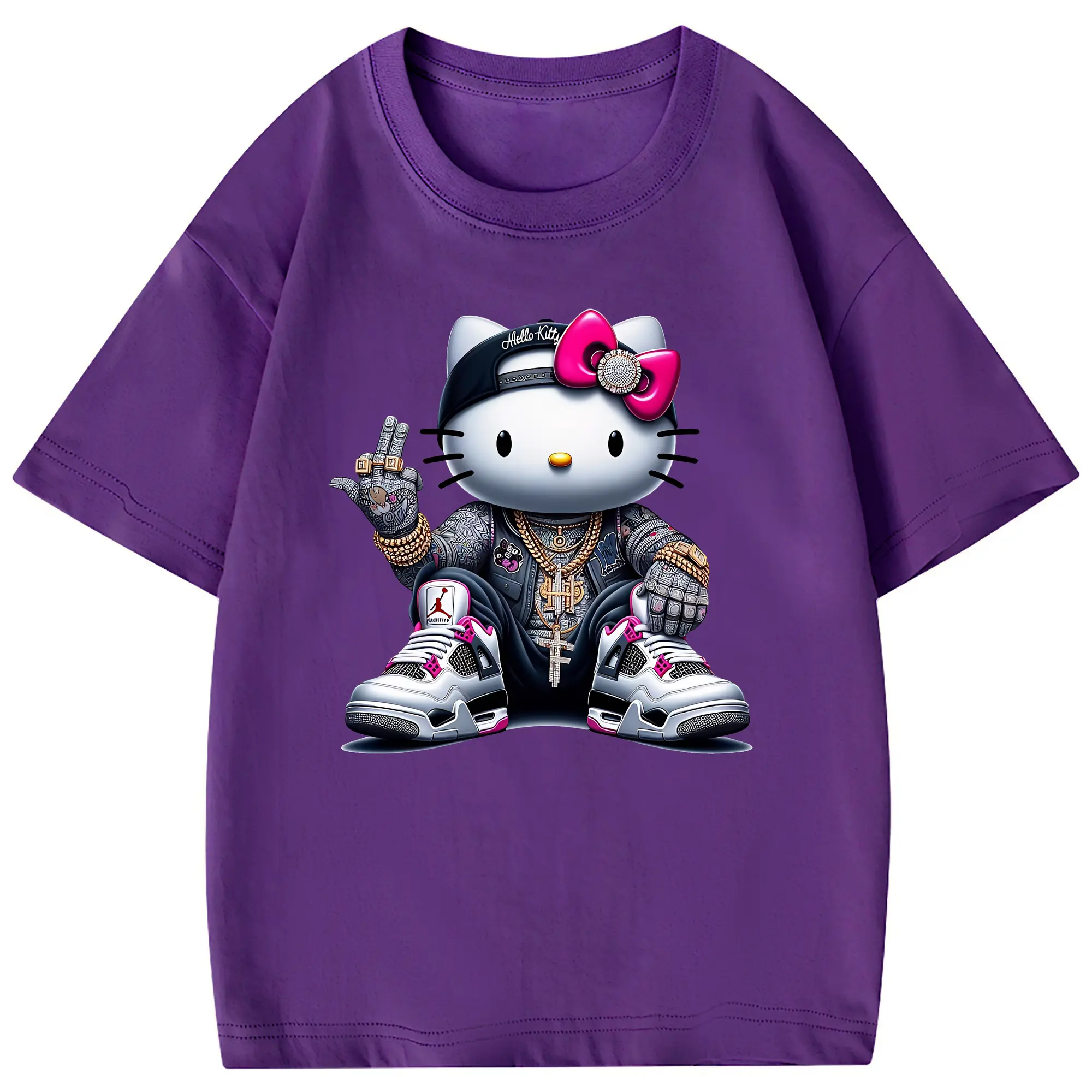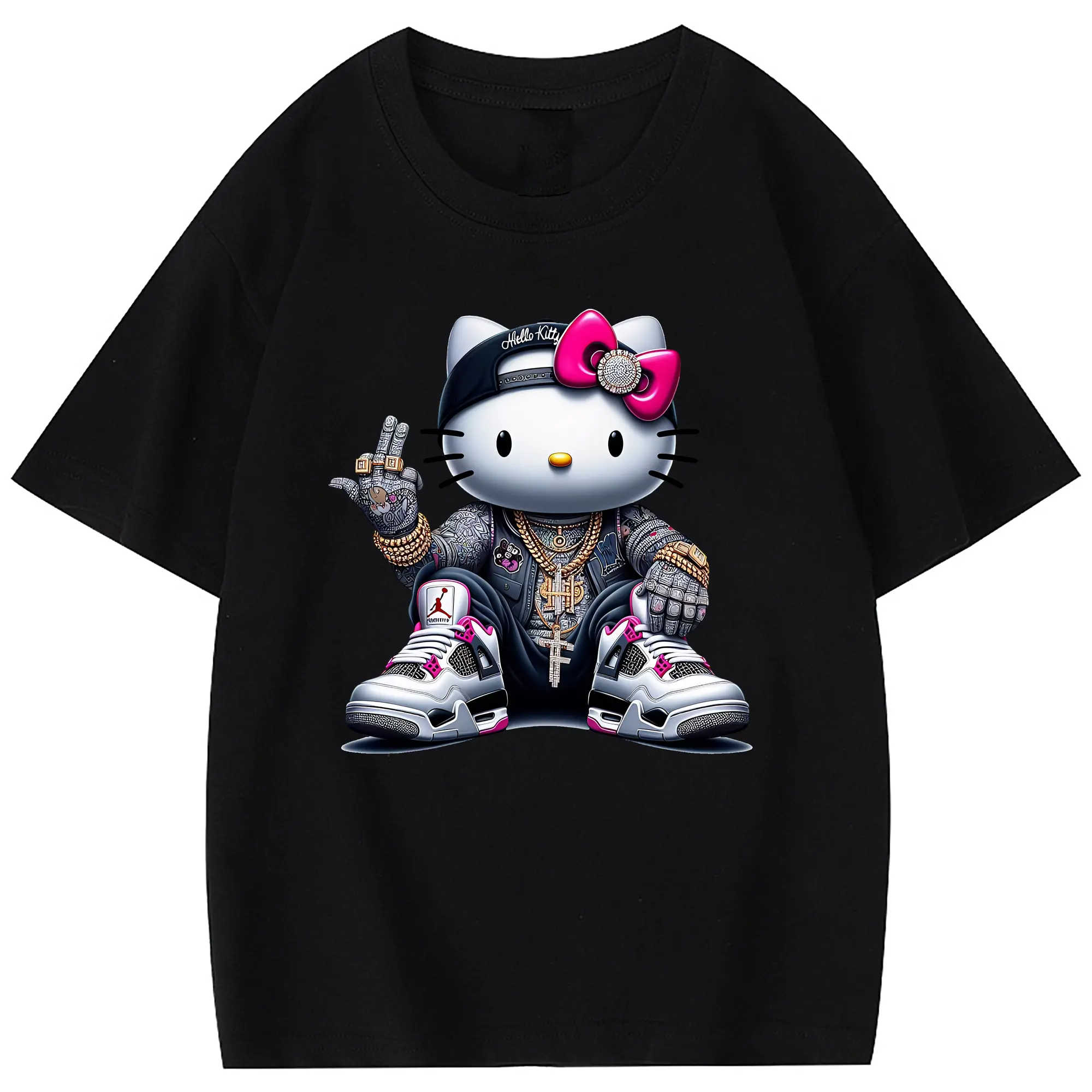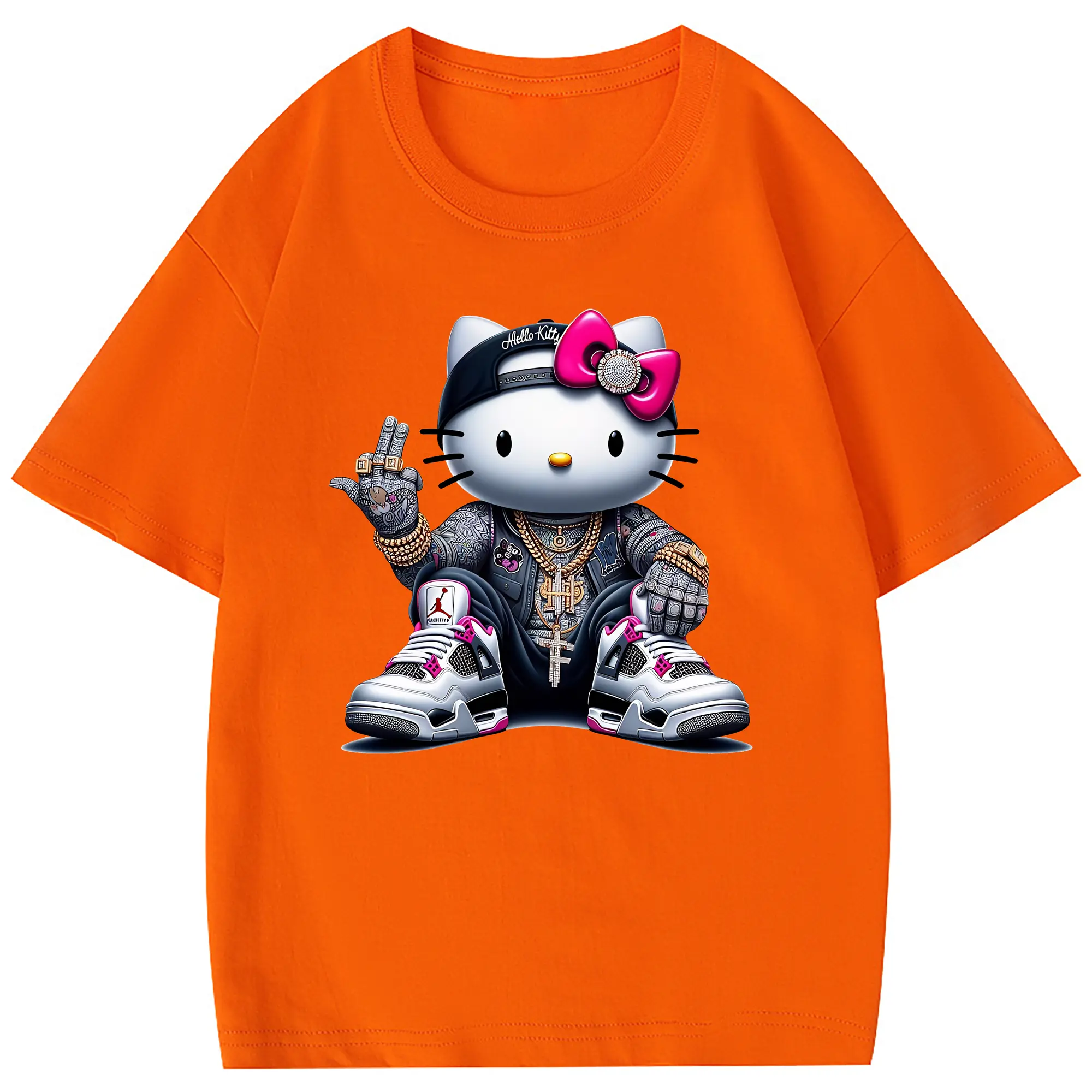 サンリオ グッズ,ハローキティ - 綿100% 半袖Tシャツ ・ フロントプリント ・ 快適 通気性 ・ 日常使い 散歩 スポーツ用