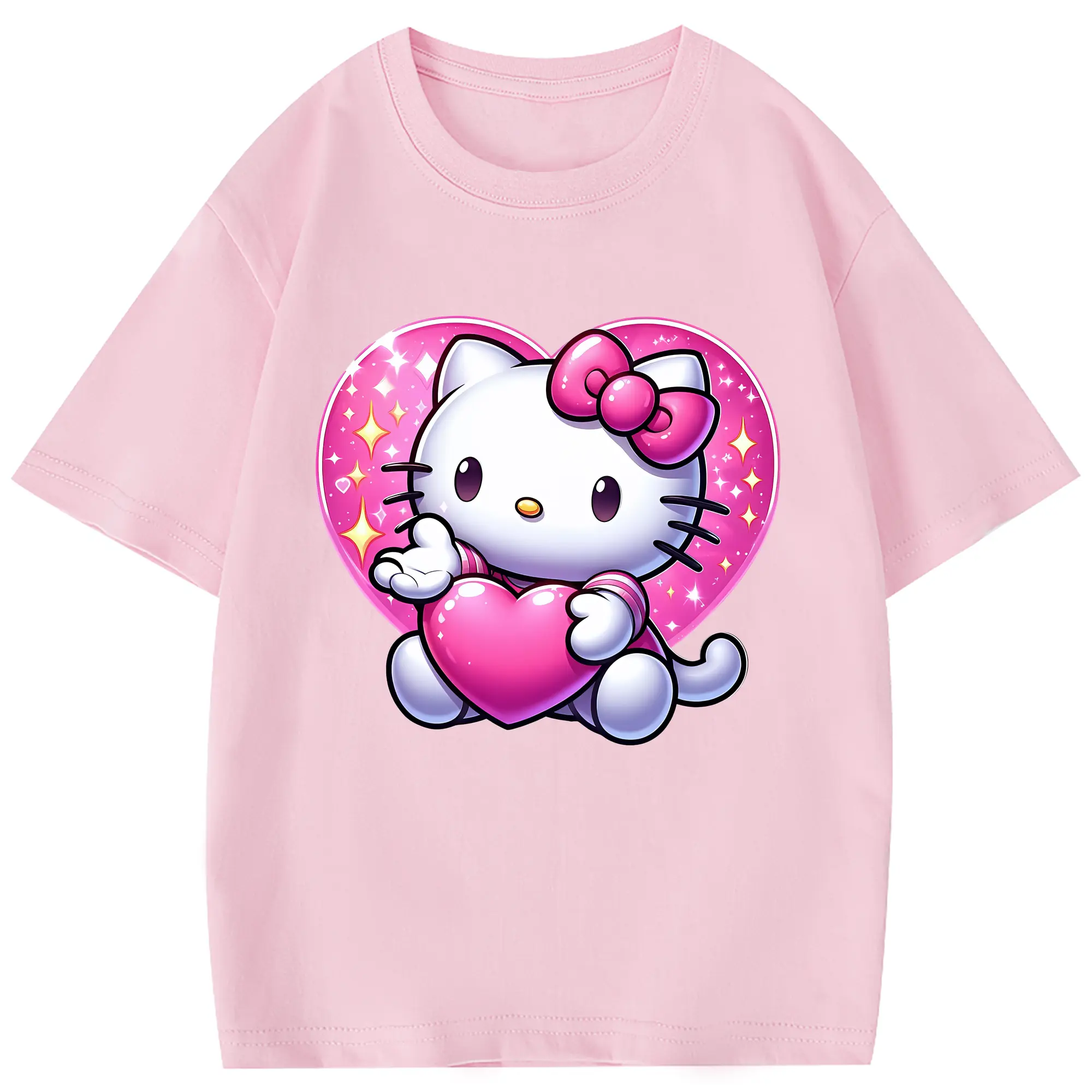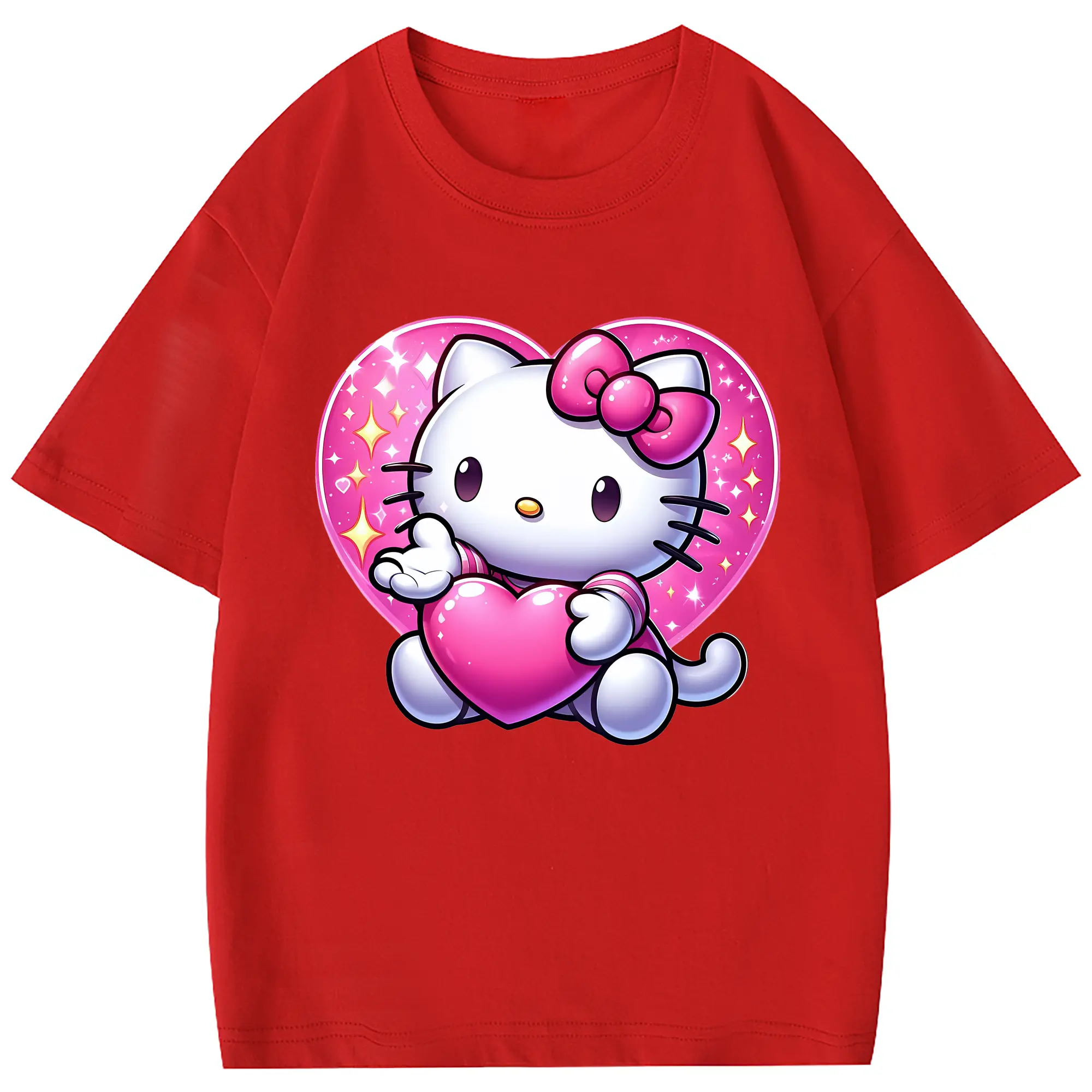 サンリオ グッズ,ハローキティ - 綿100% 半袖Tシャツ ・ フロントプリント ・ 快適 通気性 ・ 日常使い 散歩 スポーツ用