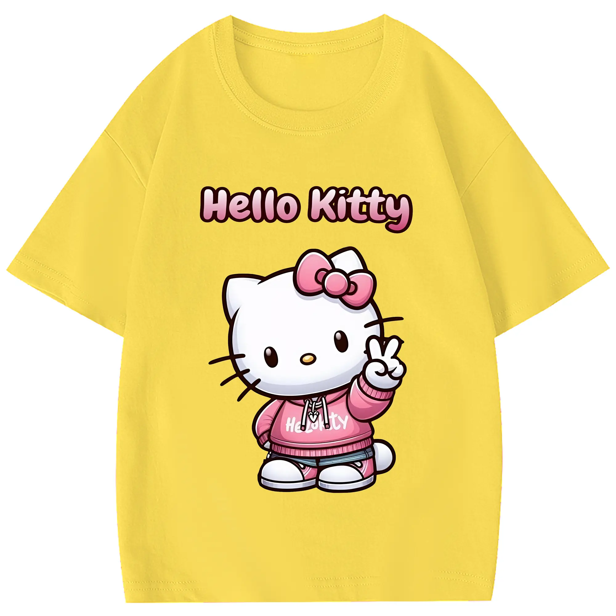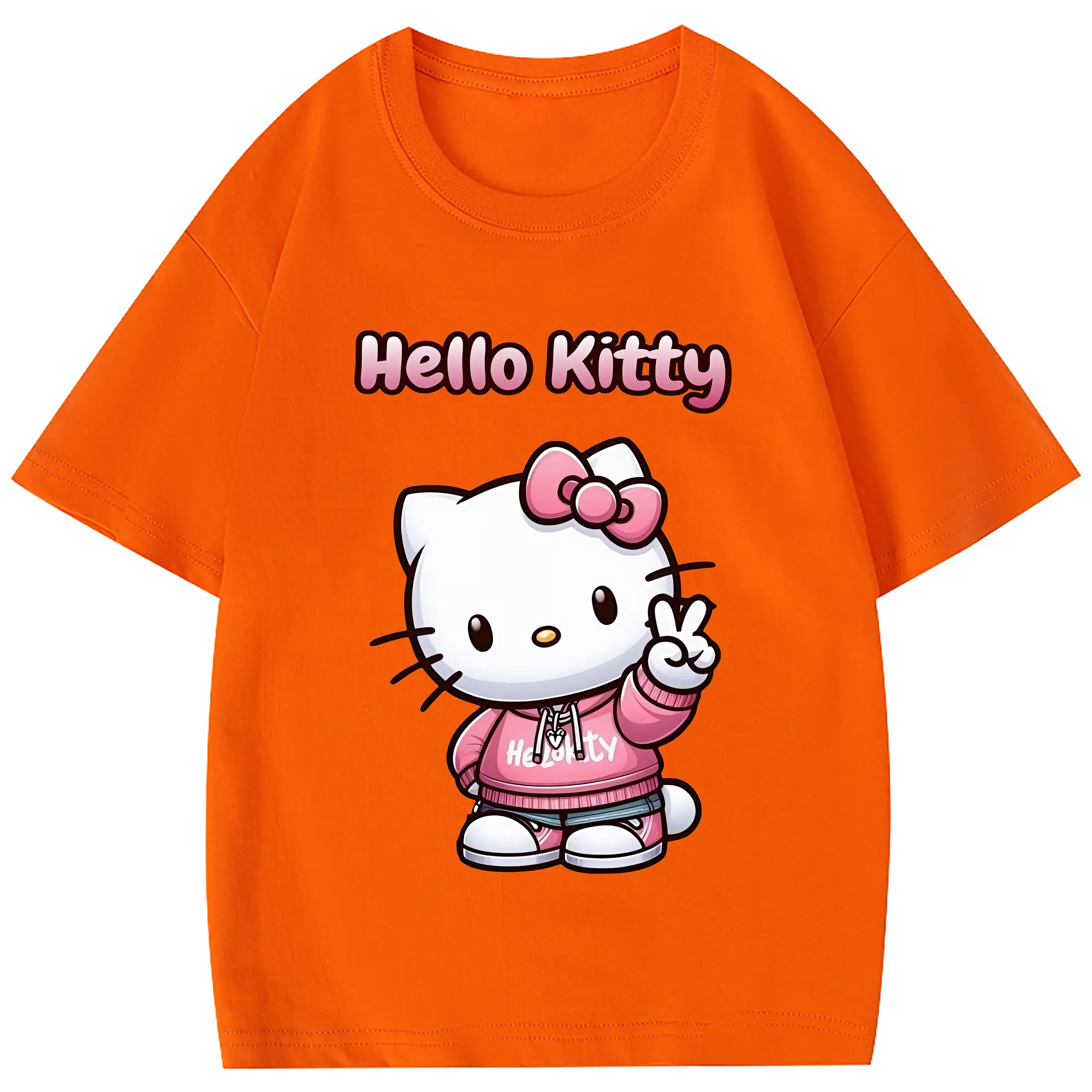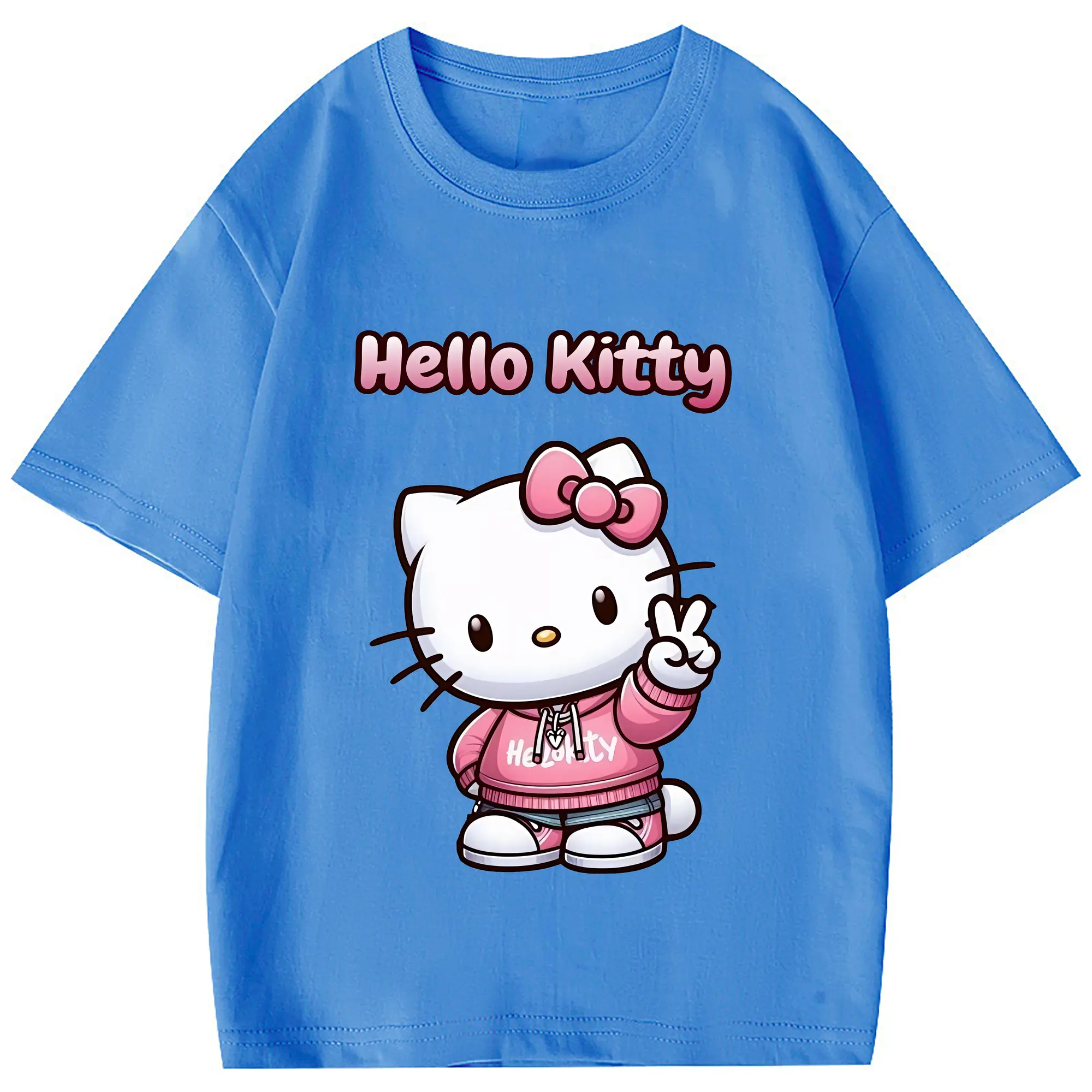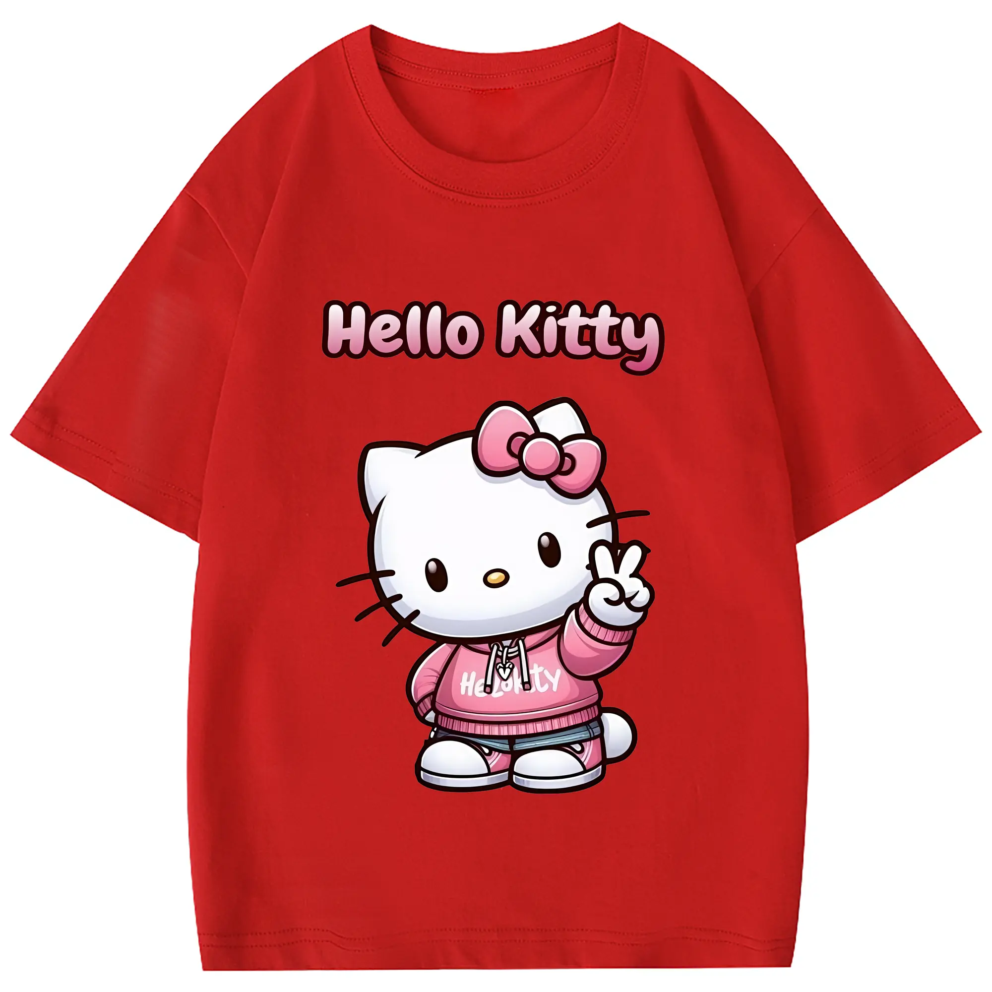 サンリオ グッズ,ハローキティ - 綿100% 半袖Tシャツ ・ フロントプリント ・ 快適 通気性 ・ 日常使い 散歩 スポーツ用