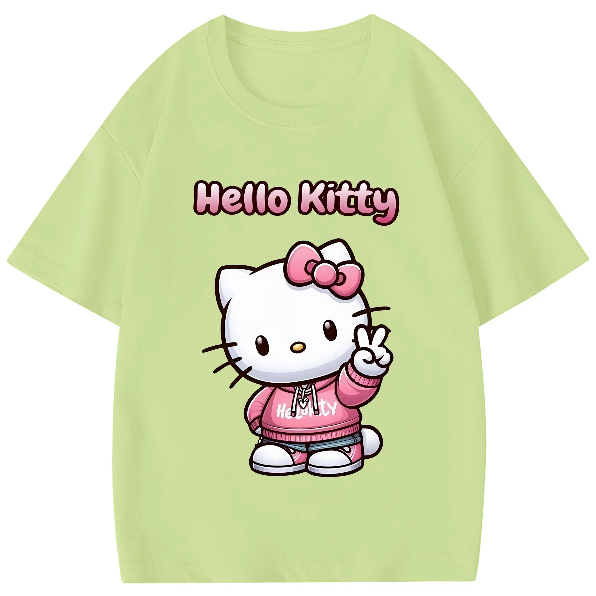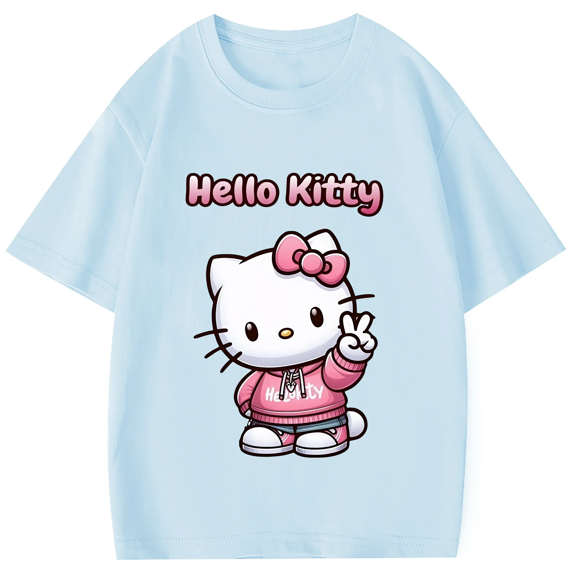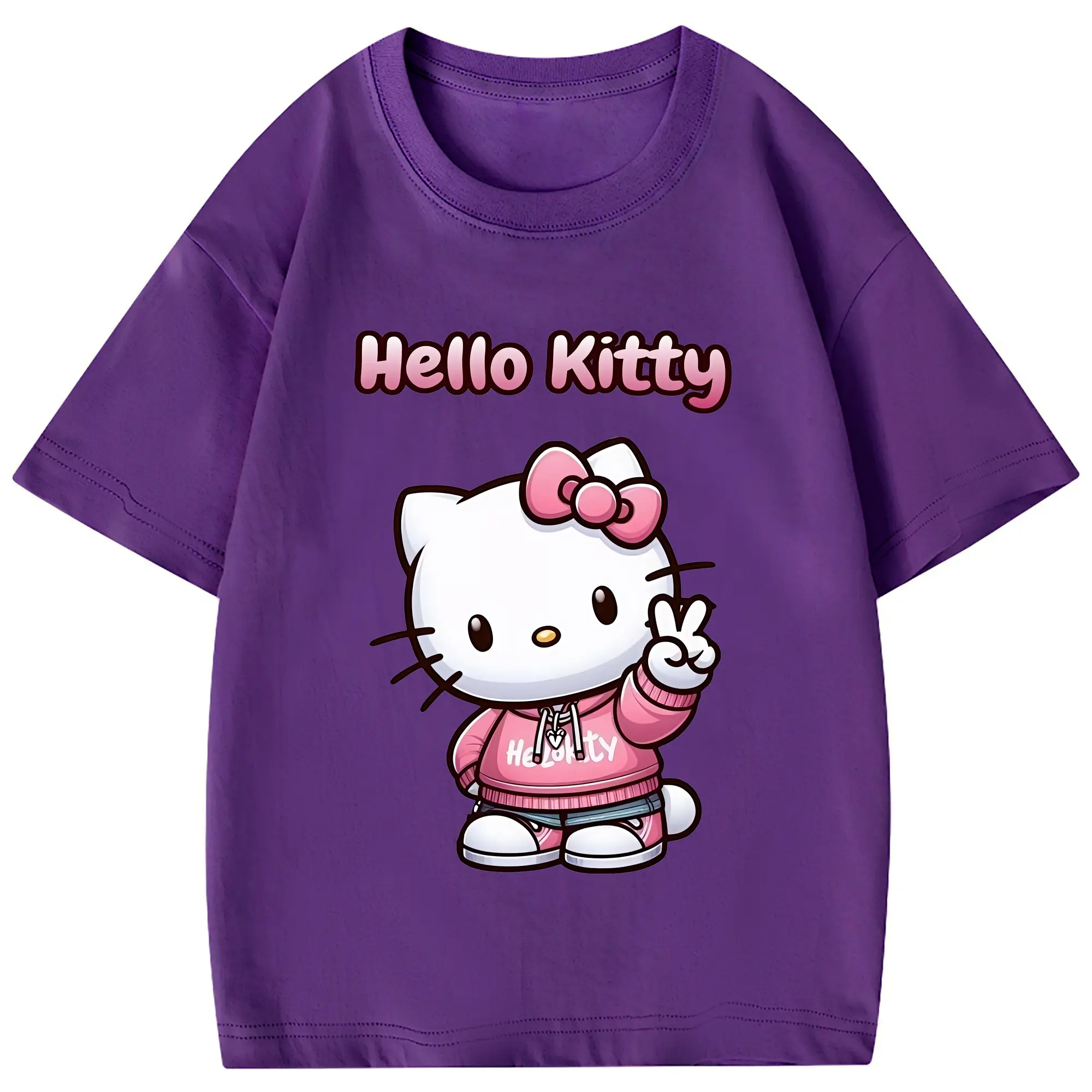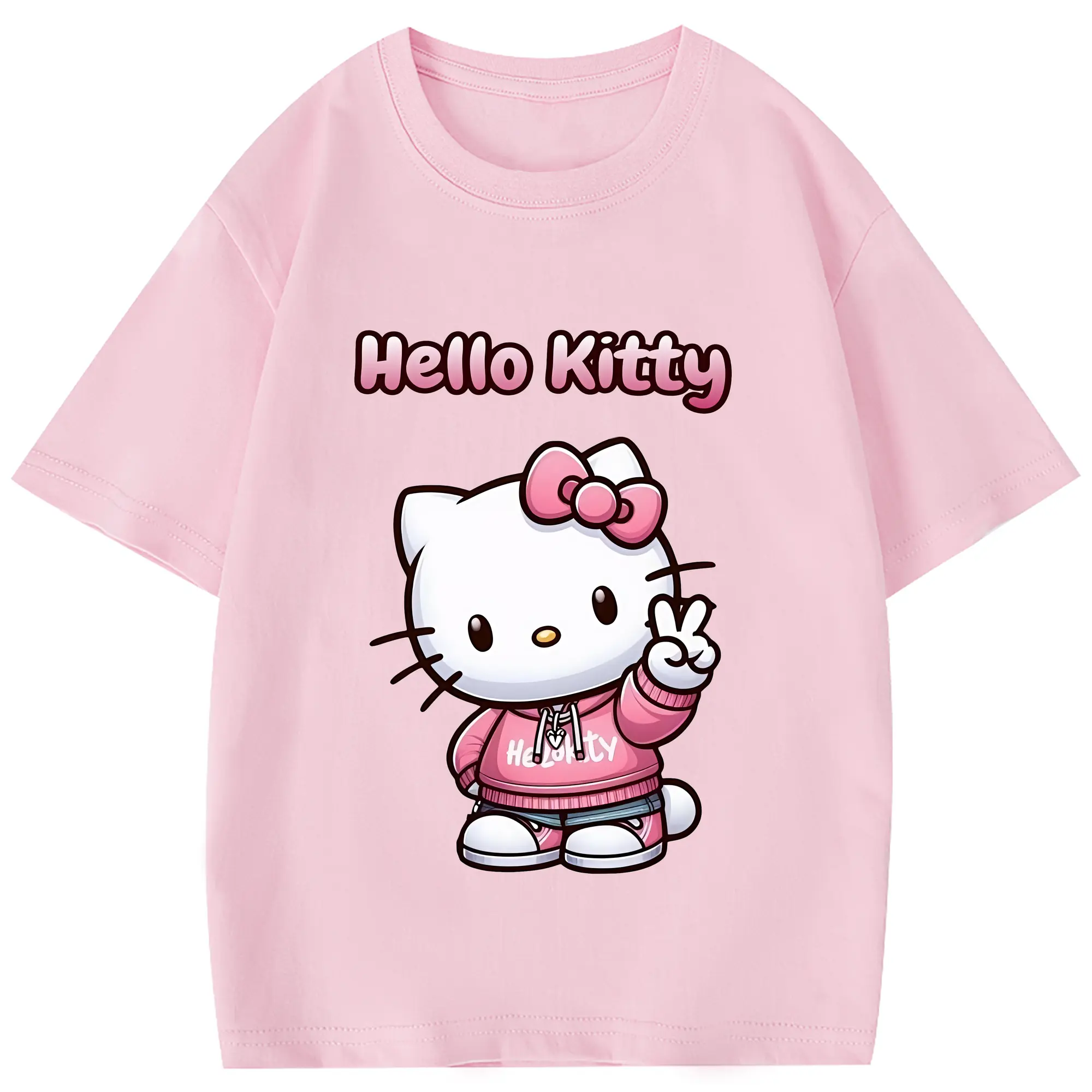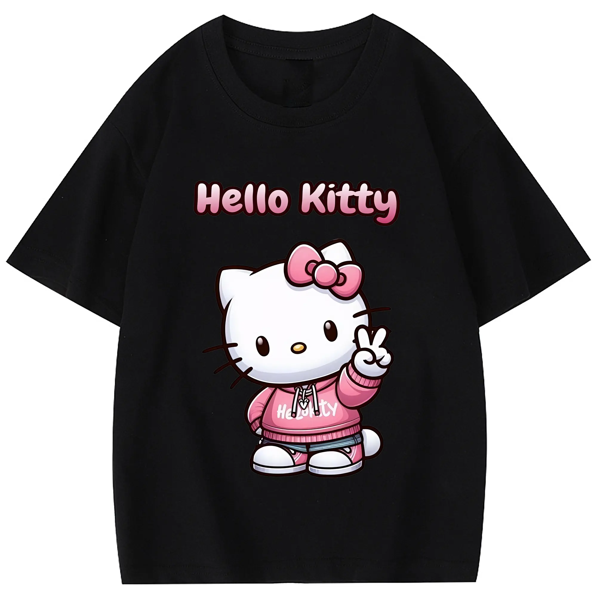 サンリオ グッズ,ハローキティ - 綿100% 半袖Tシャツ ・ フロントプリント ・ 快適 通気性 ・ 日常使い 散歩 スポーツ用