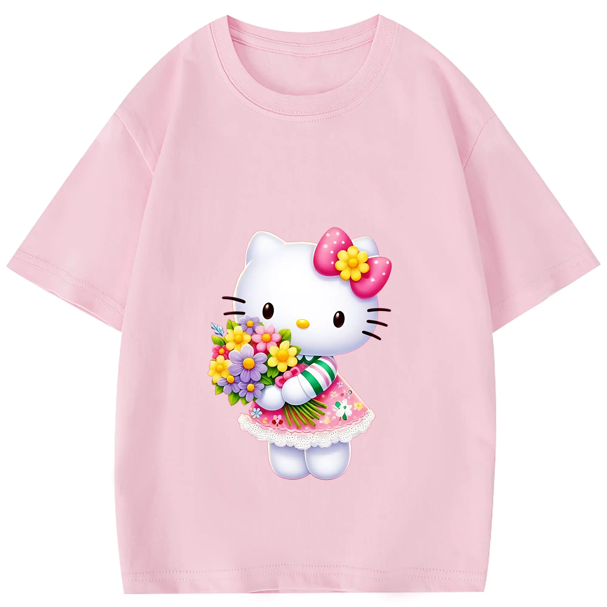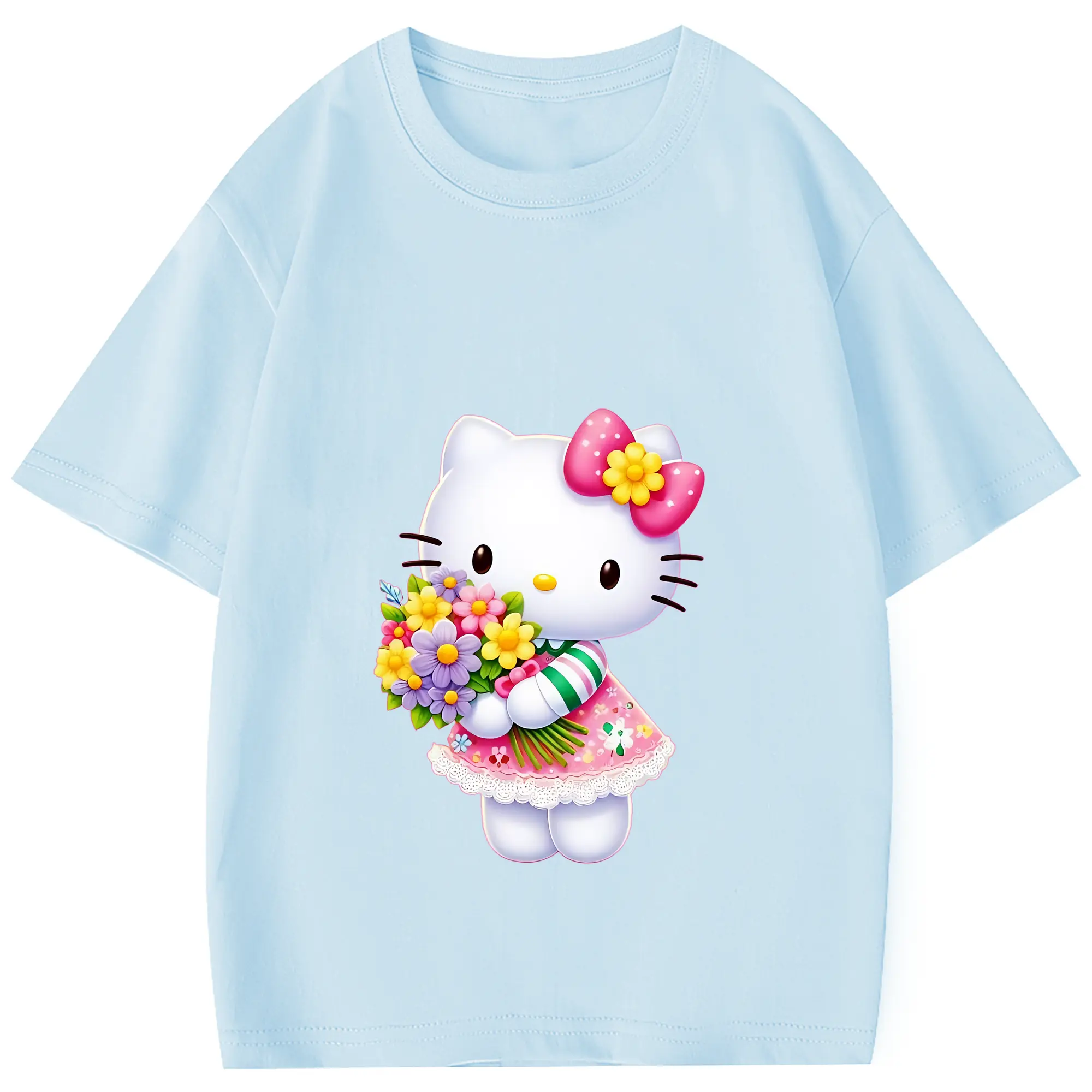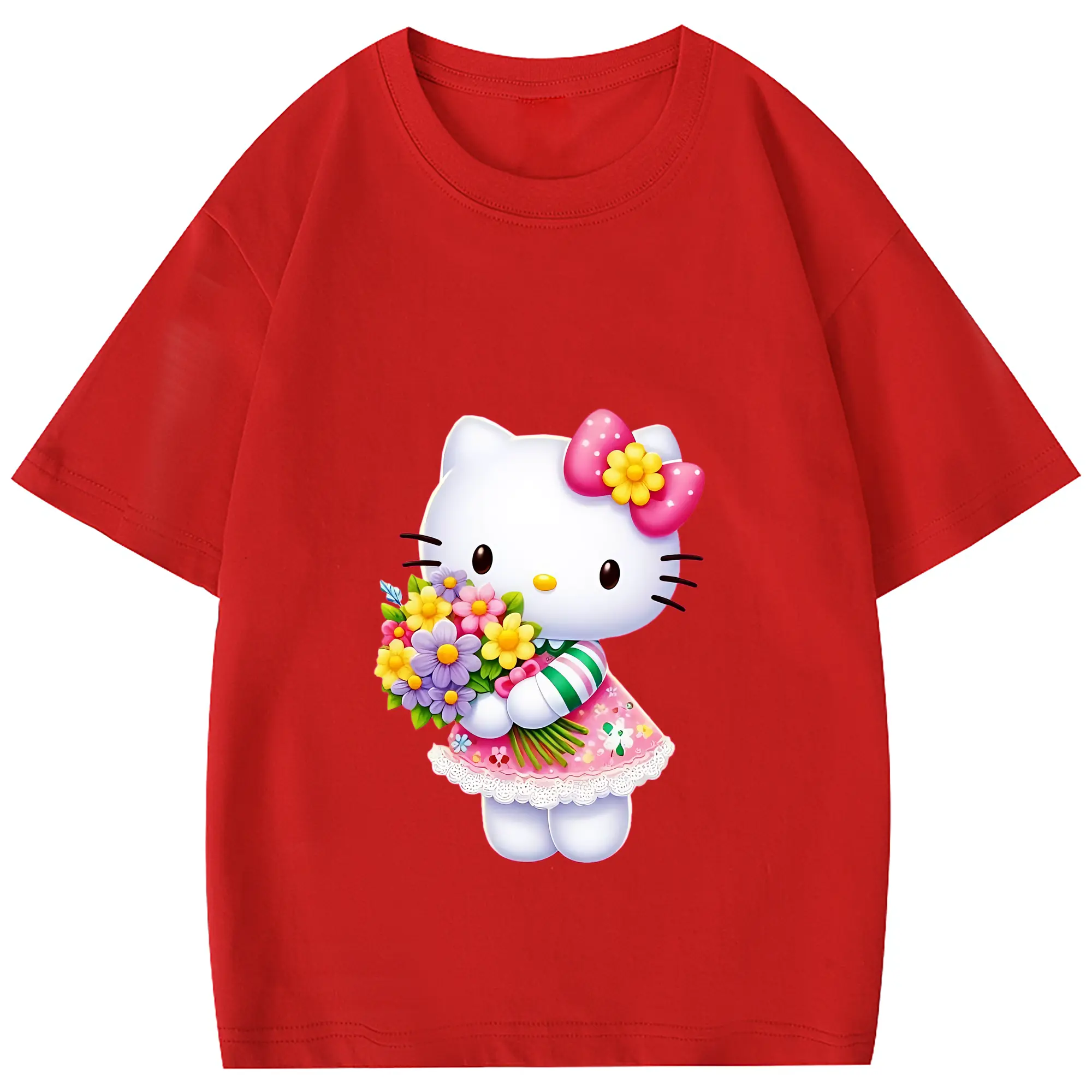 サンリオ グッズ,ハローキティ - 綿100% 半袖Tシャツ ・ フロントプリント ・ 快適 通気性 ・ 日常使い 散歩 スポーツ用