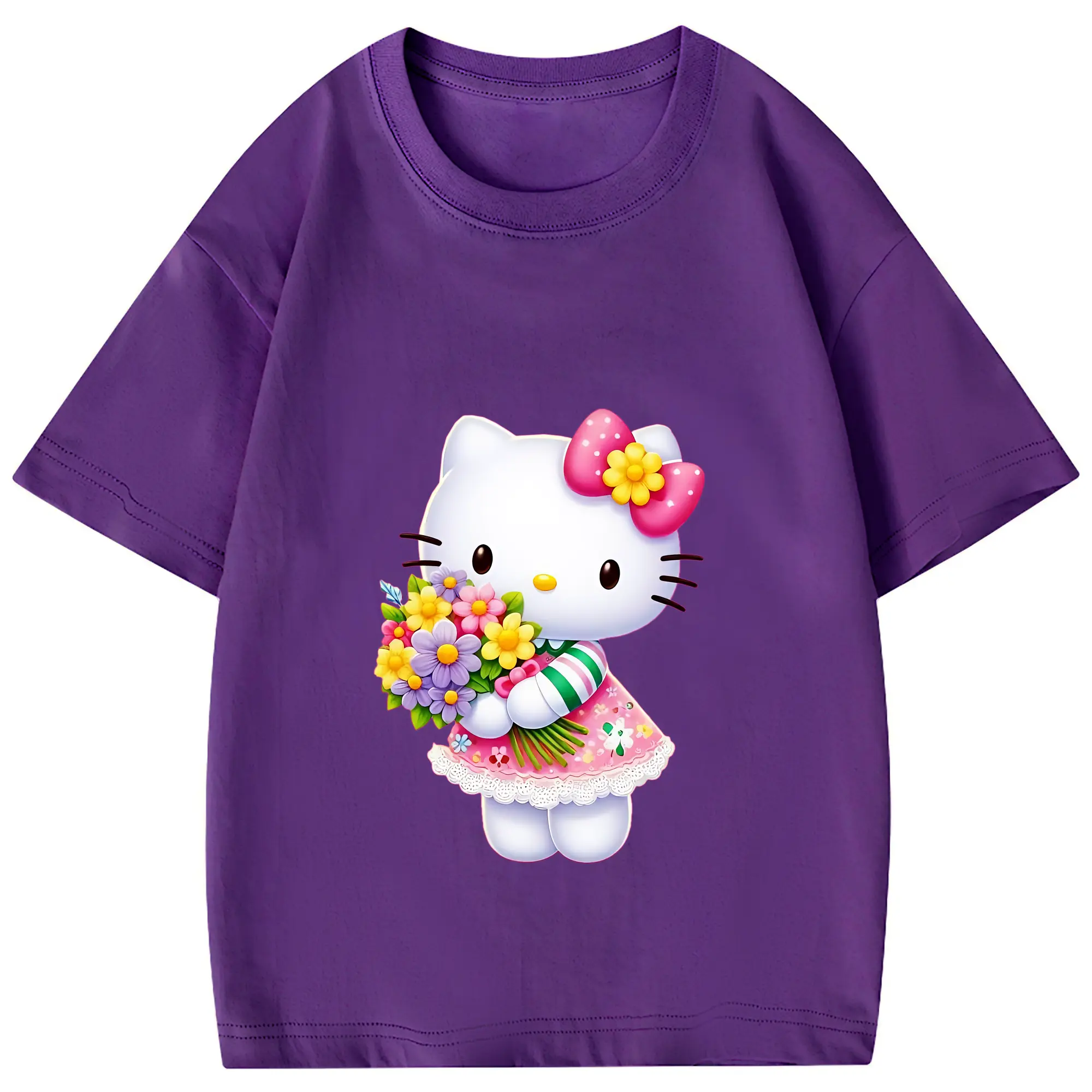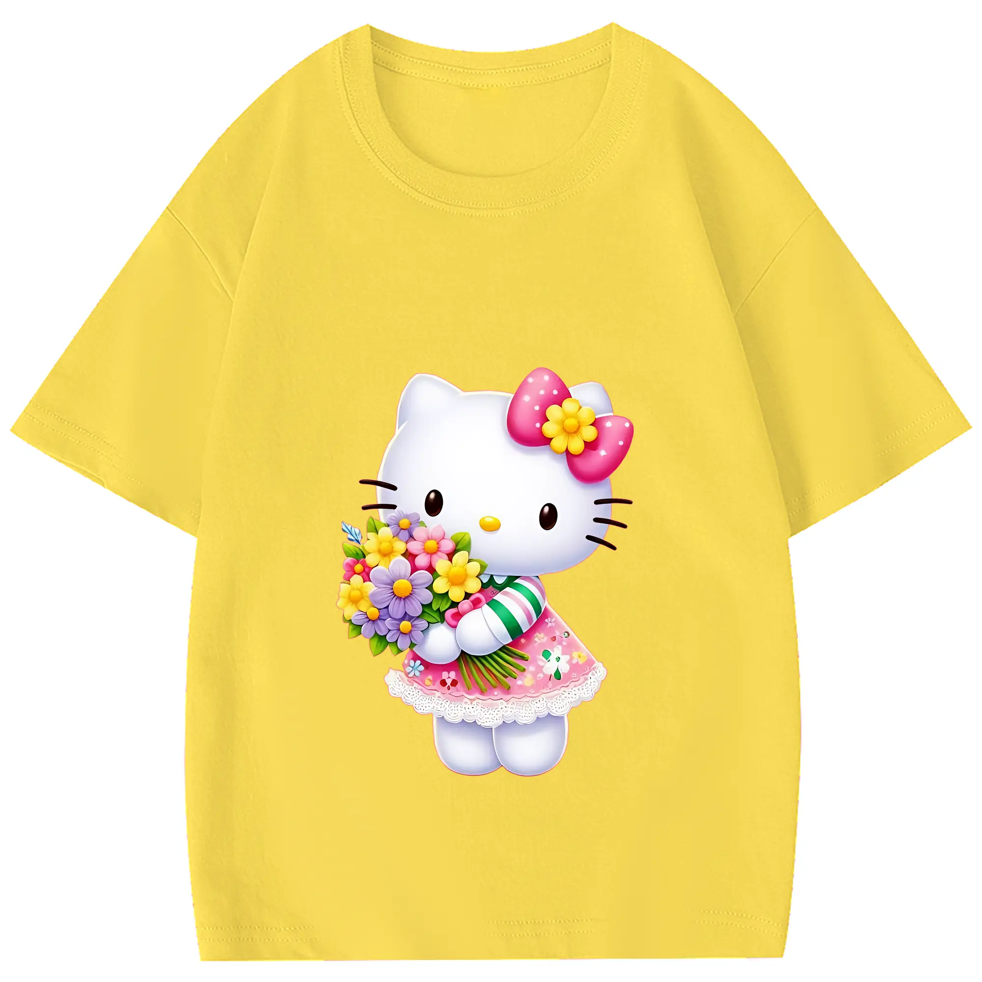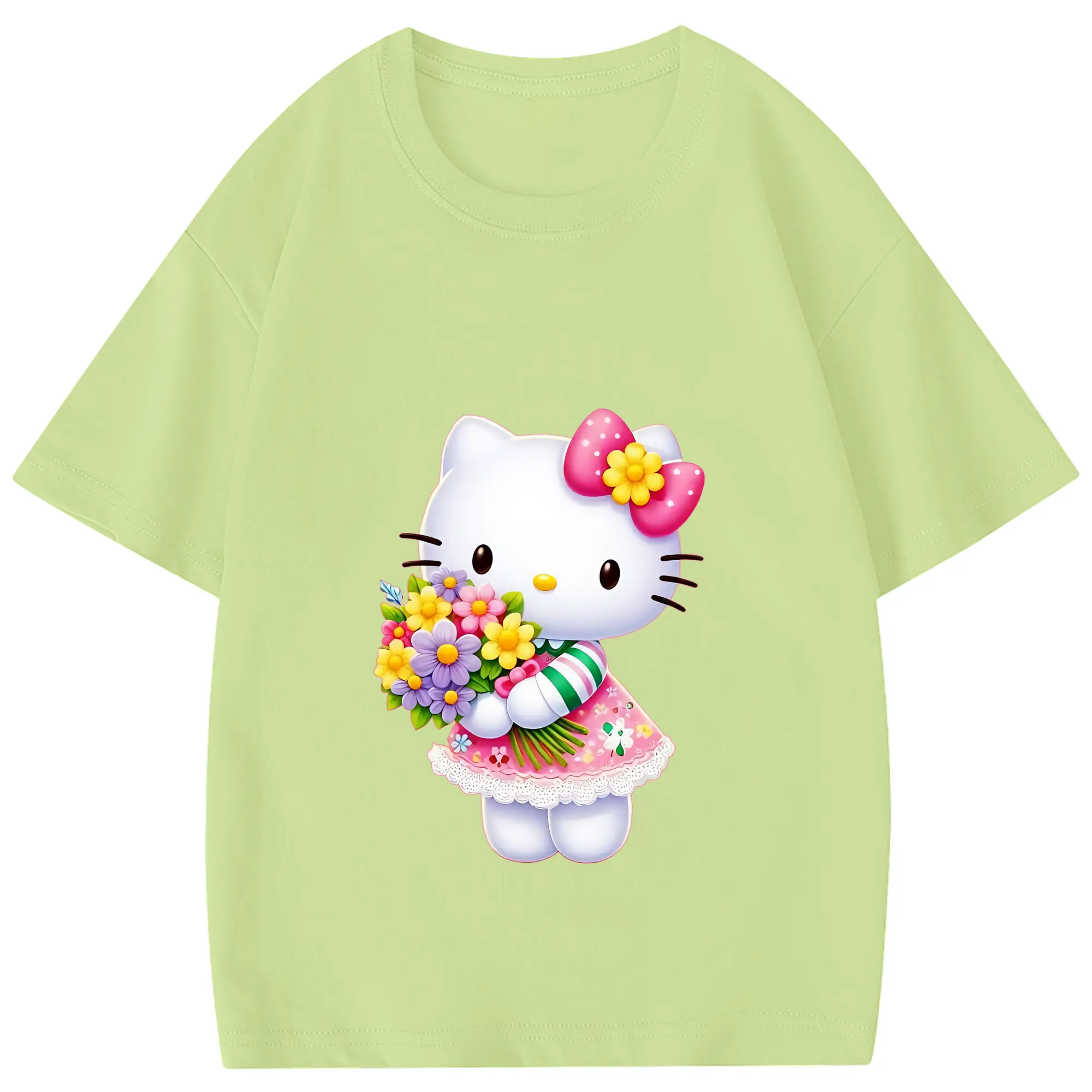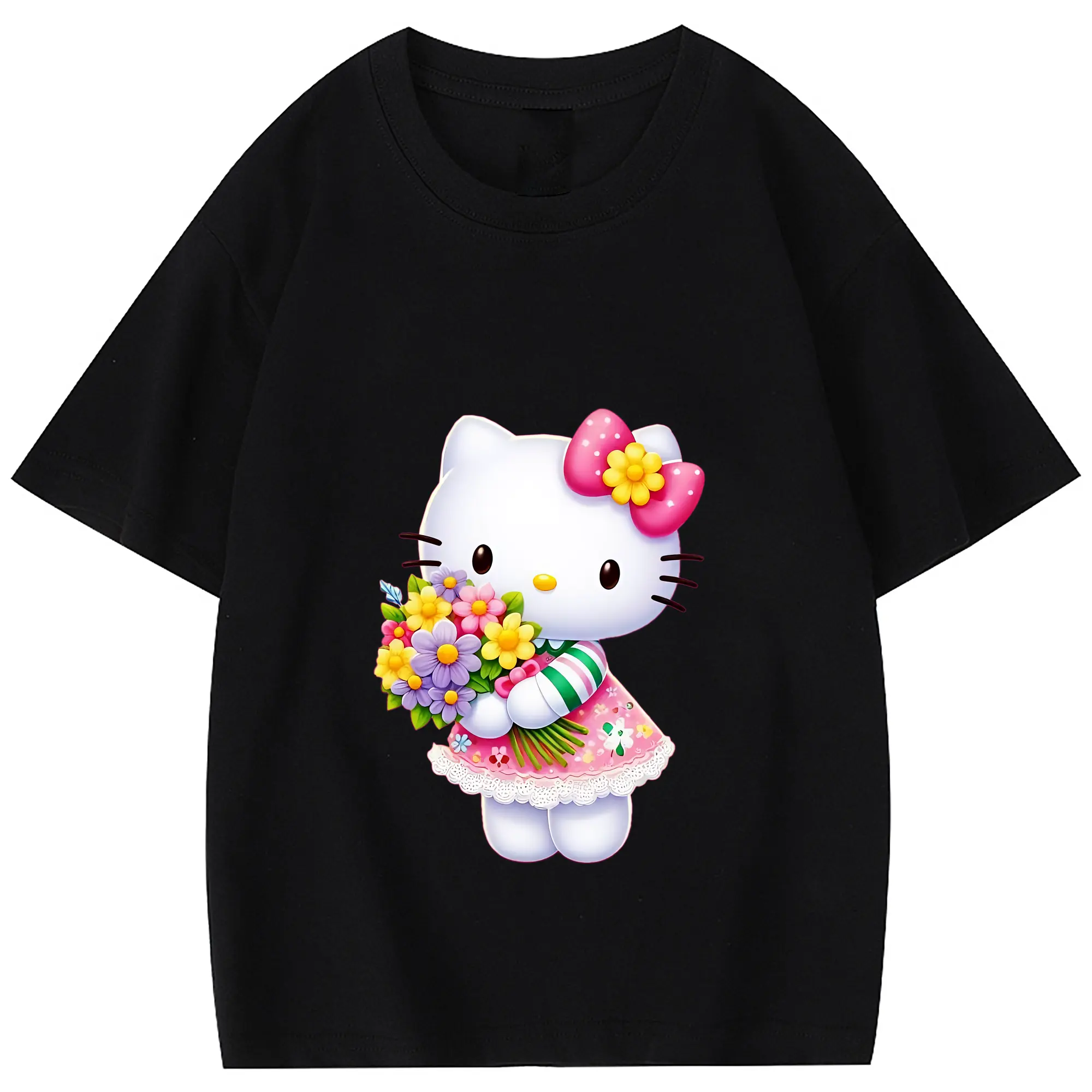 サンリオ グッズ,ハローキティ - 綿100% 半袖Tシャツ ・ フロントプリント ・ 快適 通気性 ・ 日常使い 散歩 スポーツ用
