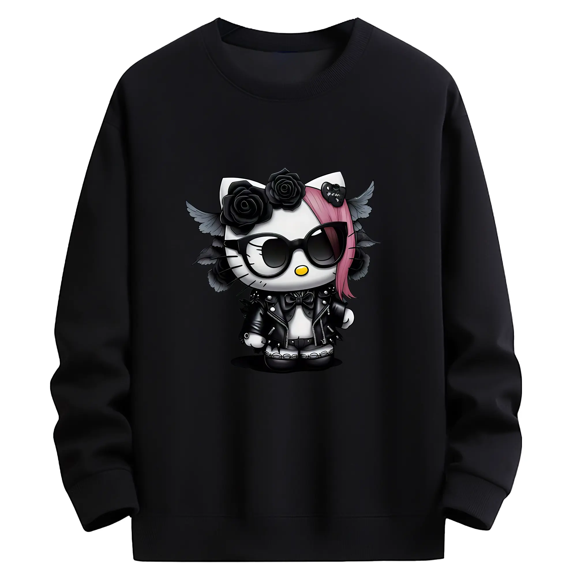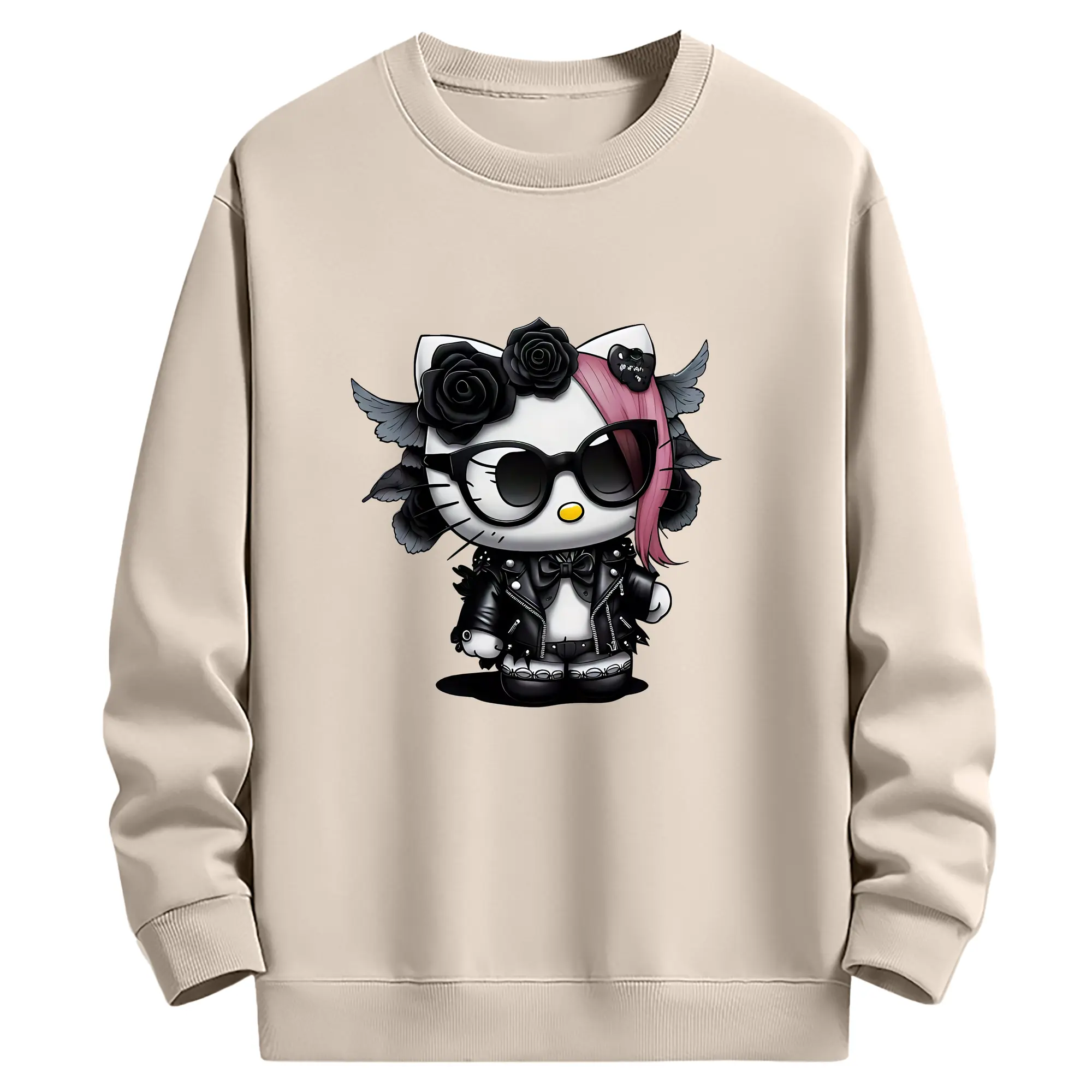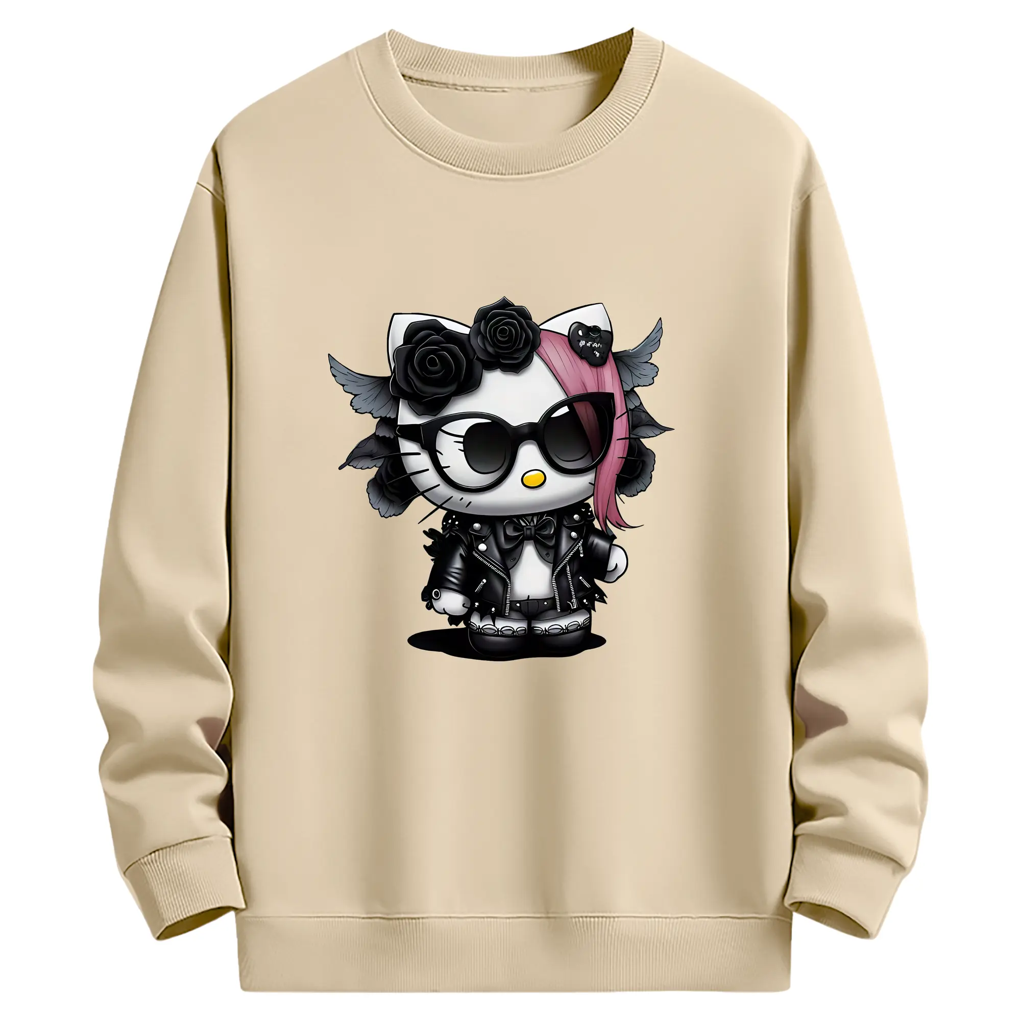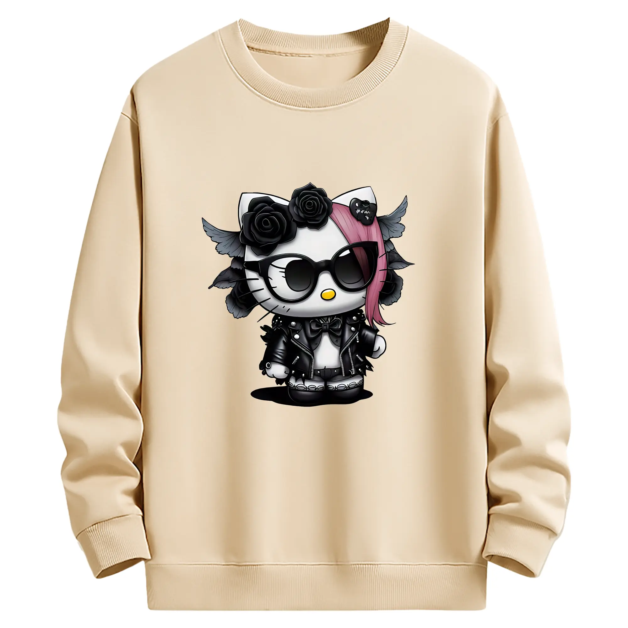 サンリオ グッズ,ハローキティ - 薄手 クルーネック スウェット 裏毛260g · ポリエステル 春秋向け カジュアル 男女兼用 · トレーナー デイリー スポーツ 散歩に最適