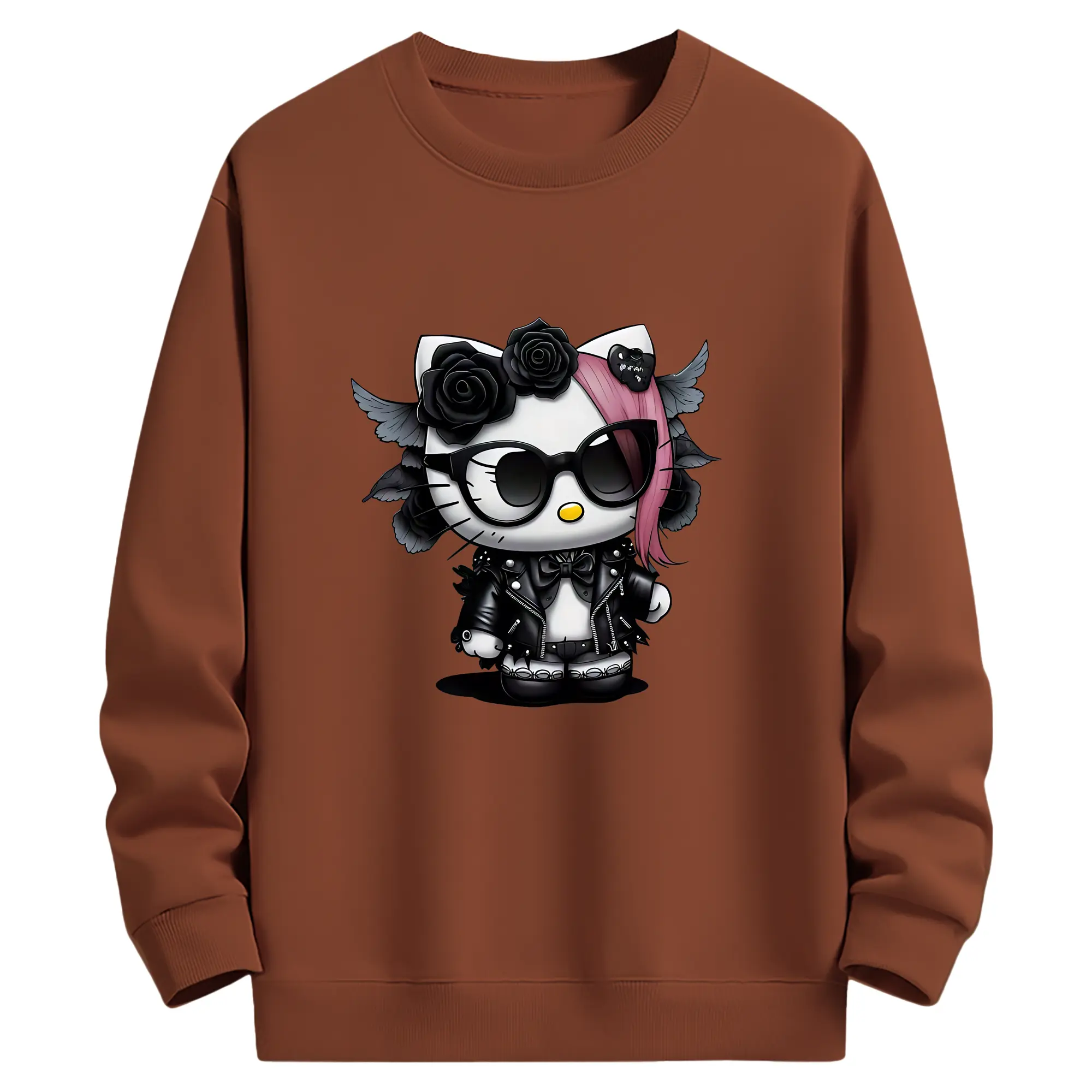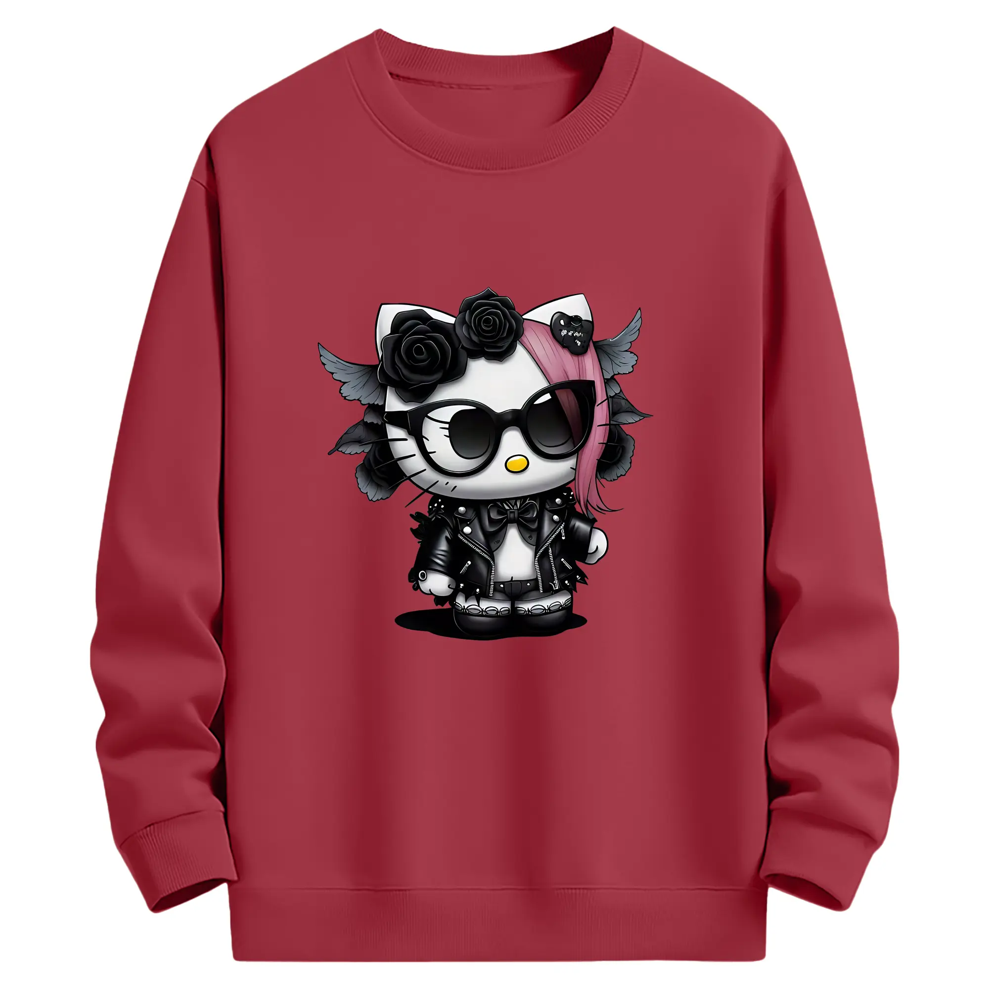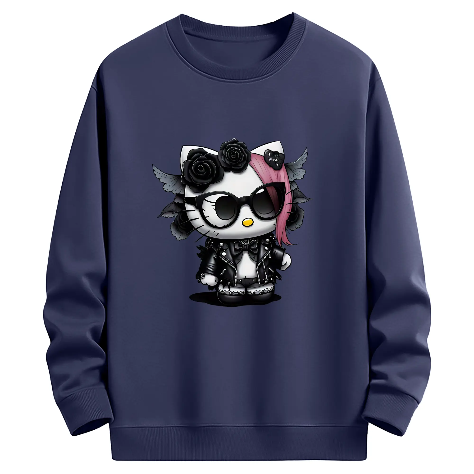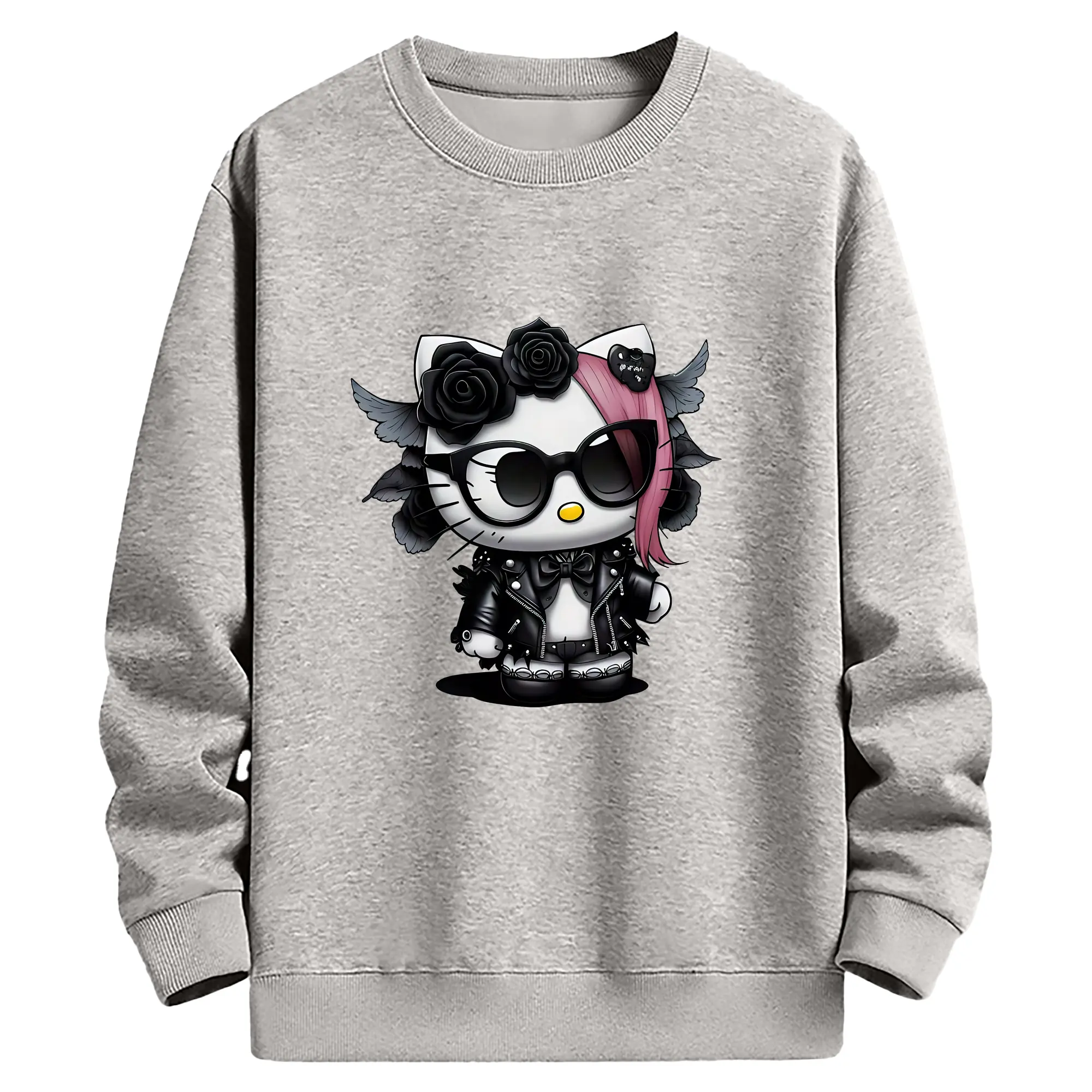 サンリオ グッズ,ハローキティ - 薄手 クルーネック スウェット 裏毛260g · ポリエステル 春秋向け カジュアル 男女兼用 · トレーナー デイリー スポーツ 散歩に最適