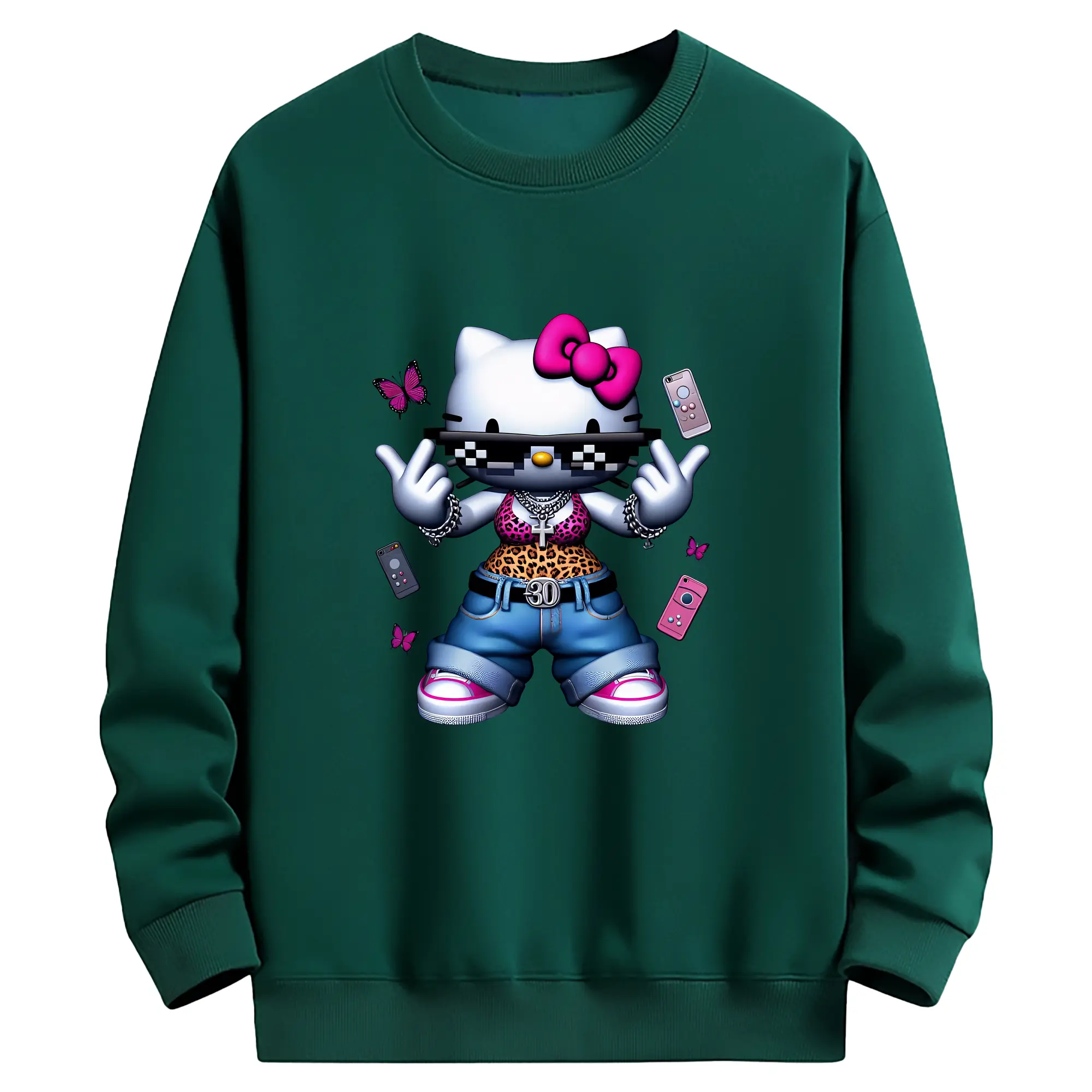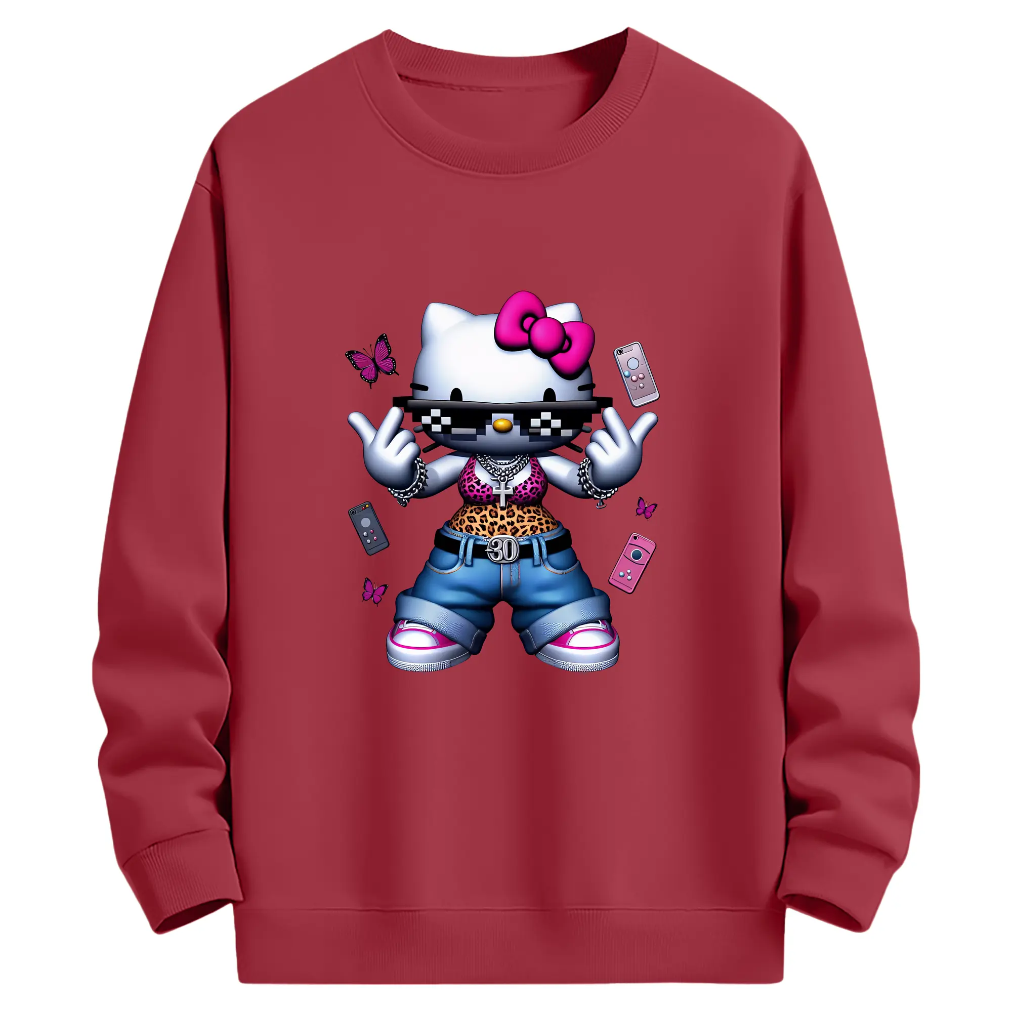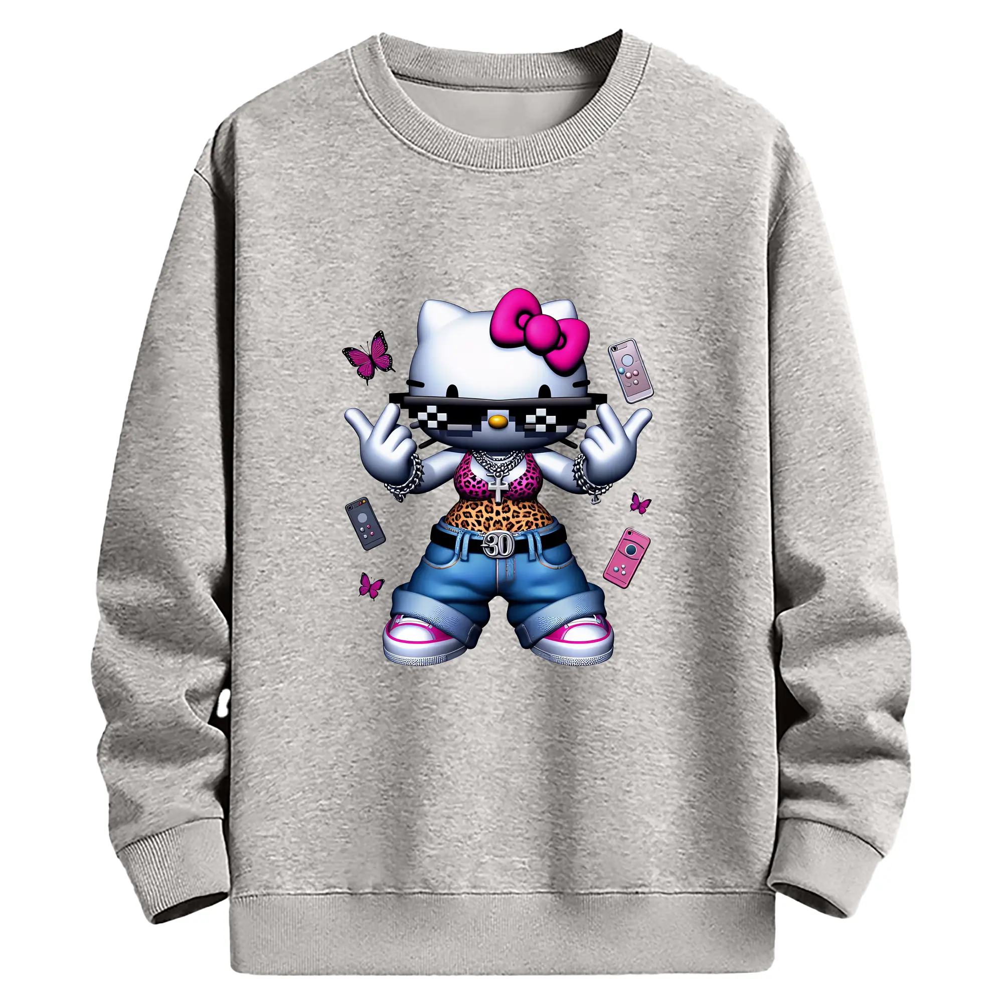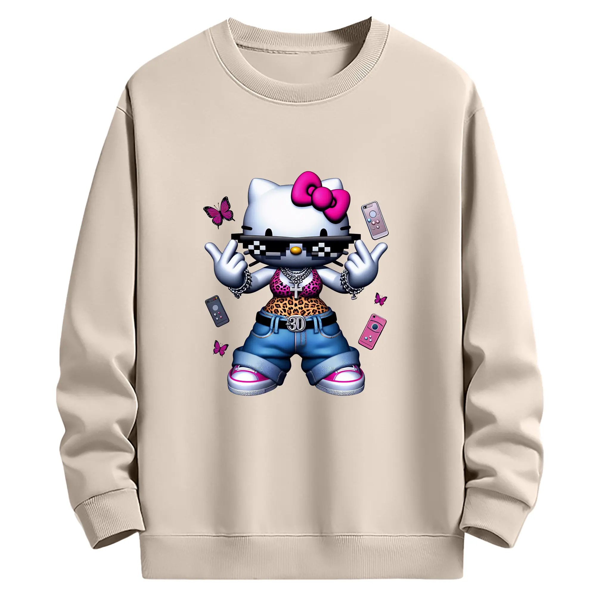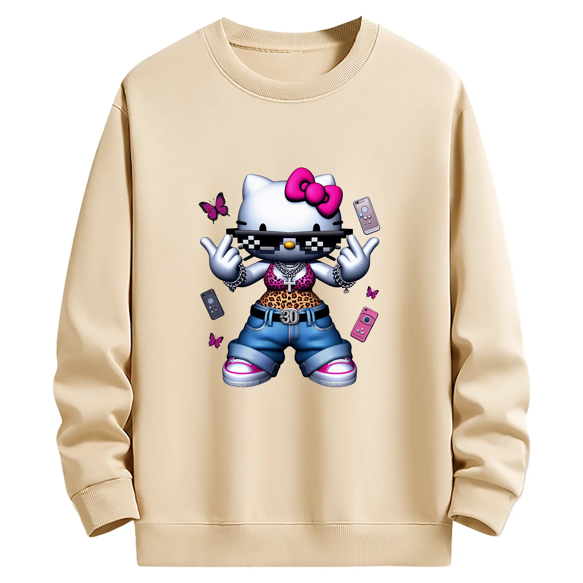 サンリオ グッズ,ハローキティ - 薄手 クルーネック スウェット 裏毛260g · ポリエステル 春秋向け カジュアル 男女兼用 · トレーナー デイリー スポーツ 散歩に最適