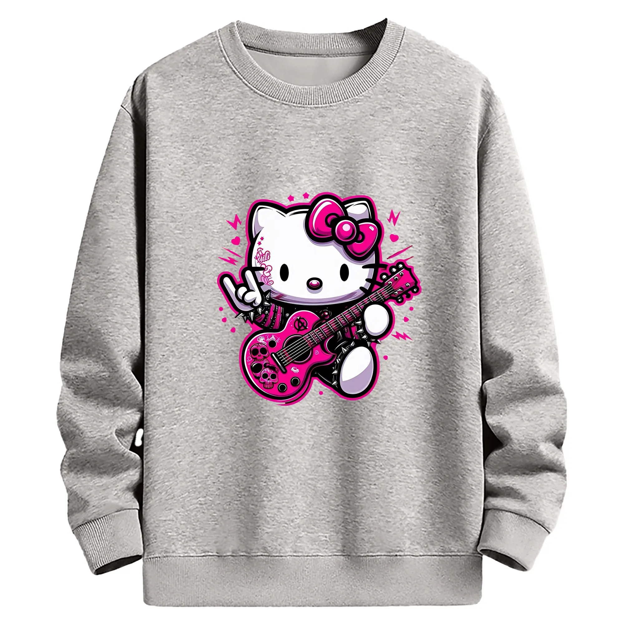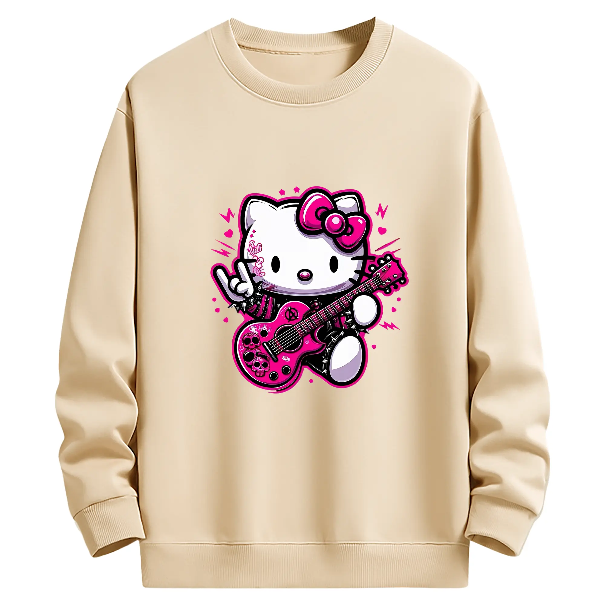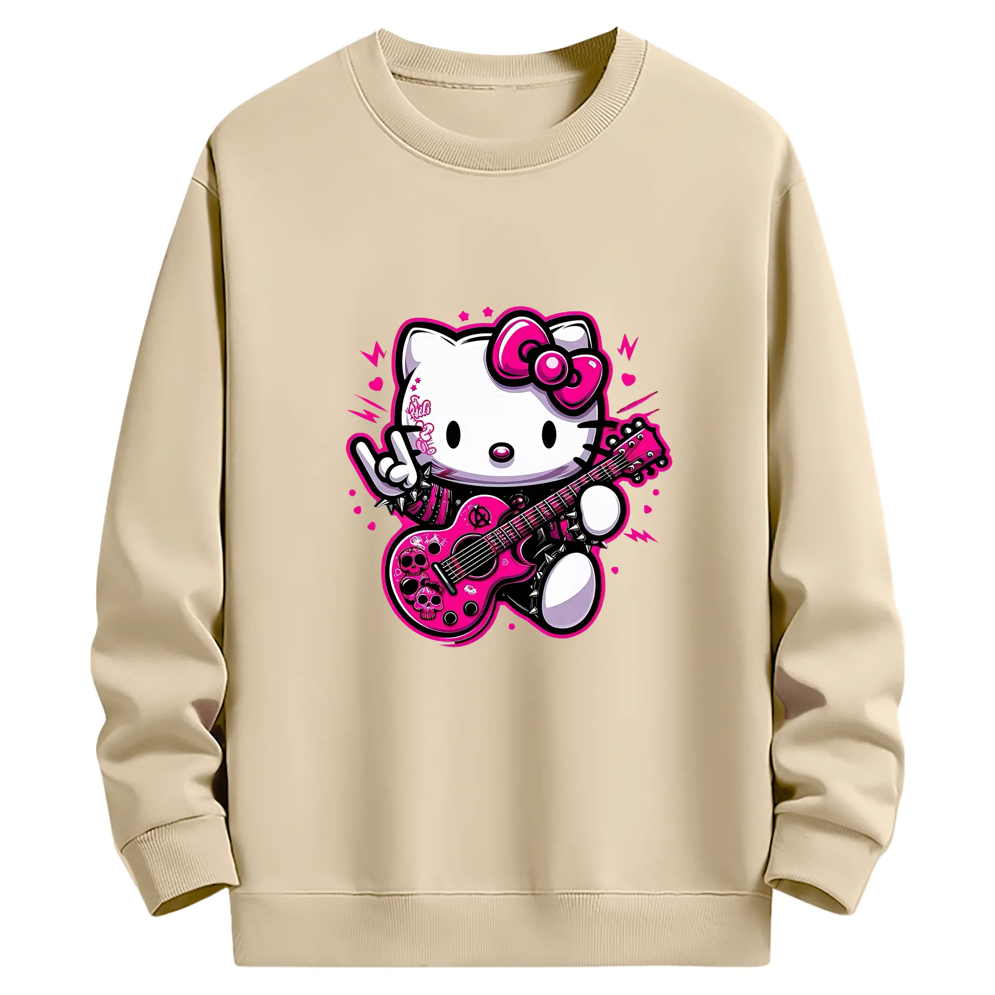 サンリオ グッズ,ハローキティ - 薄手 クルーネック スウェット 裏毛260g · ポリエステル 春秋向け カジュアル 男女兼用 · トレーナー デイリー スポーツ 散歩に最適