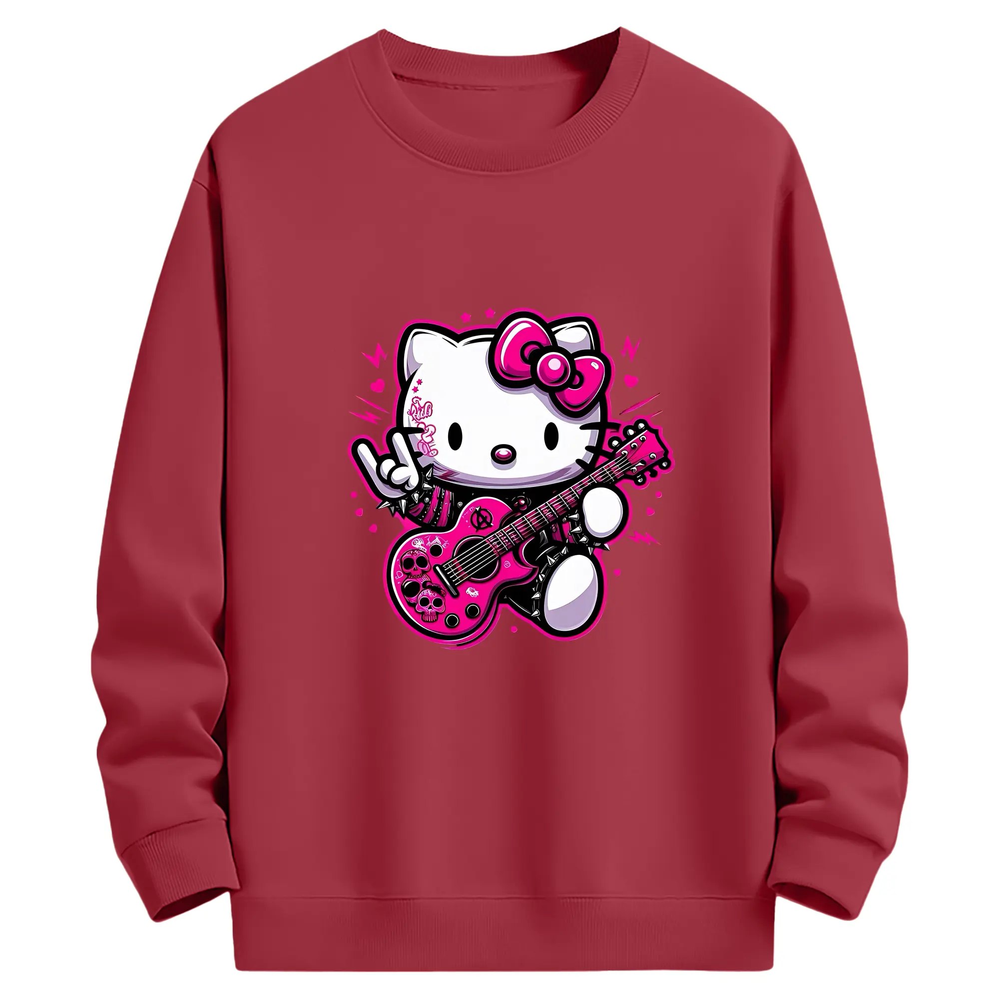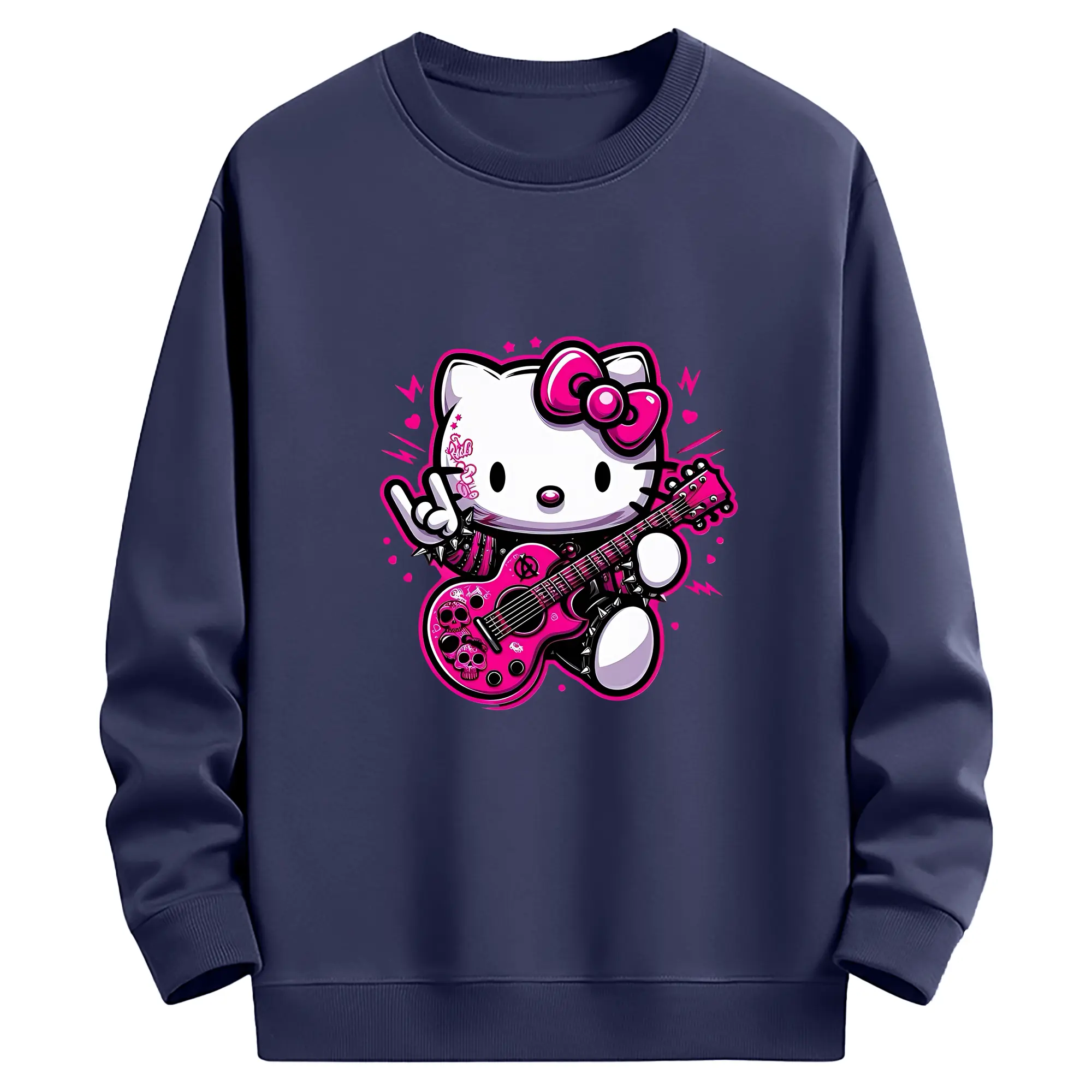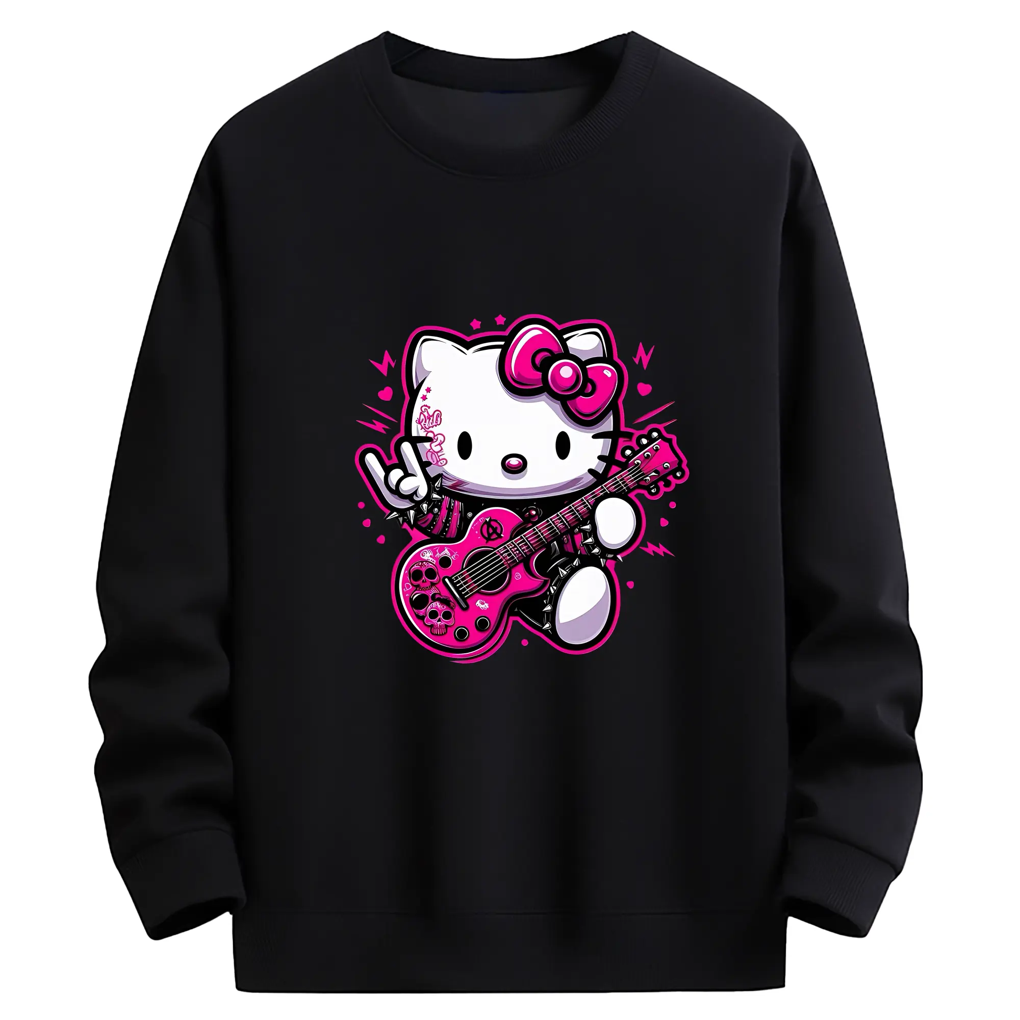 サンリオ グッズ,ハローキティ - 薄手 クルーネック スウェット 裏毛260g · ポリエステル 春秋向け カジュアル 男女兼用 · トレーナー デイリー スポーツ 散歩に最適
