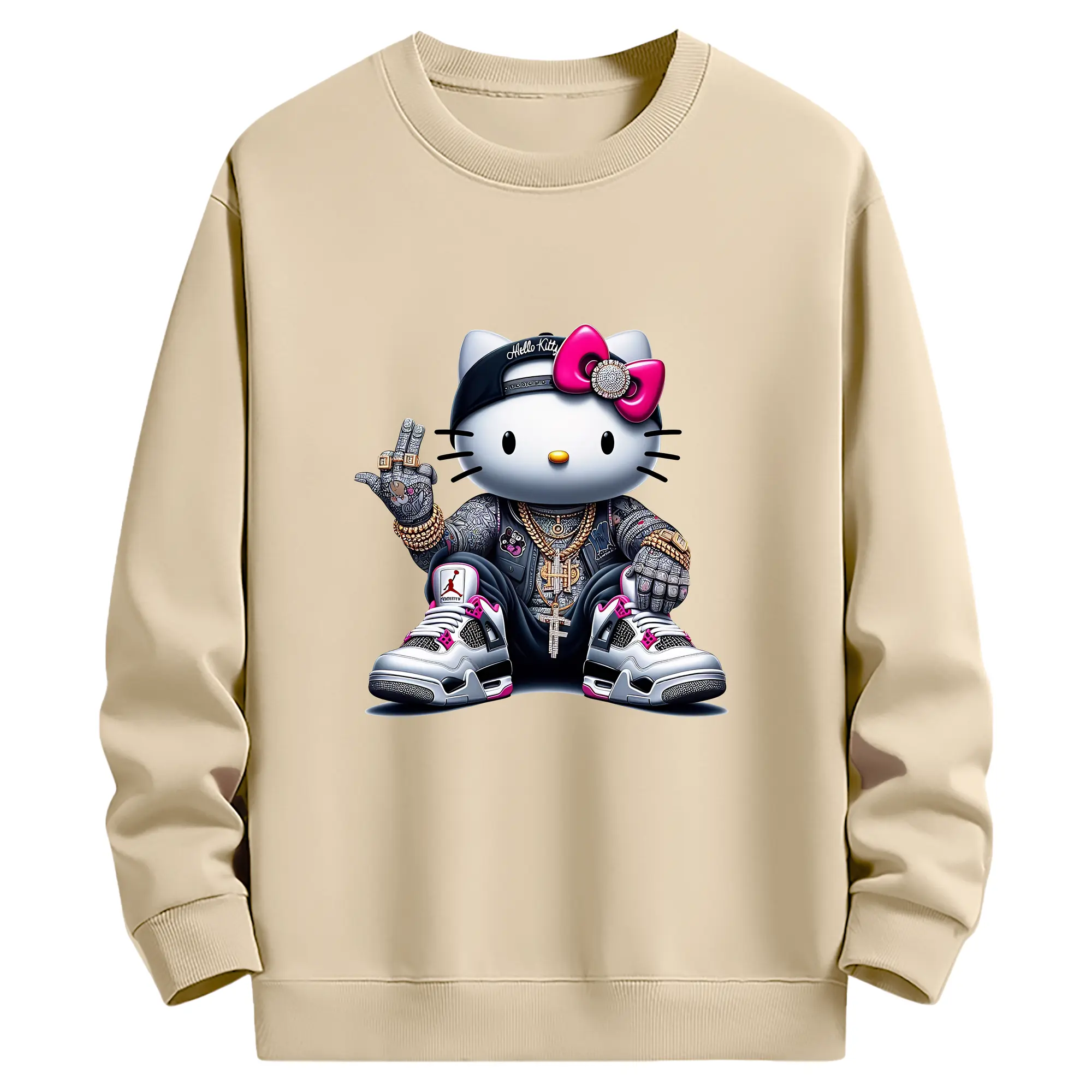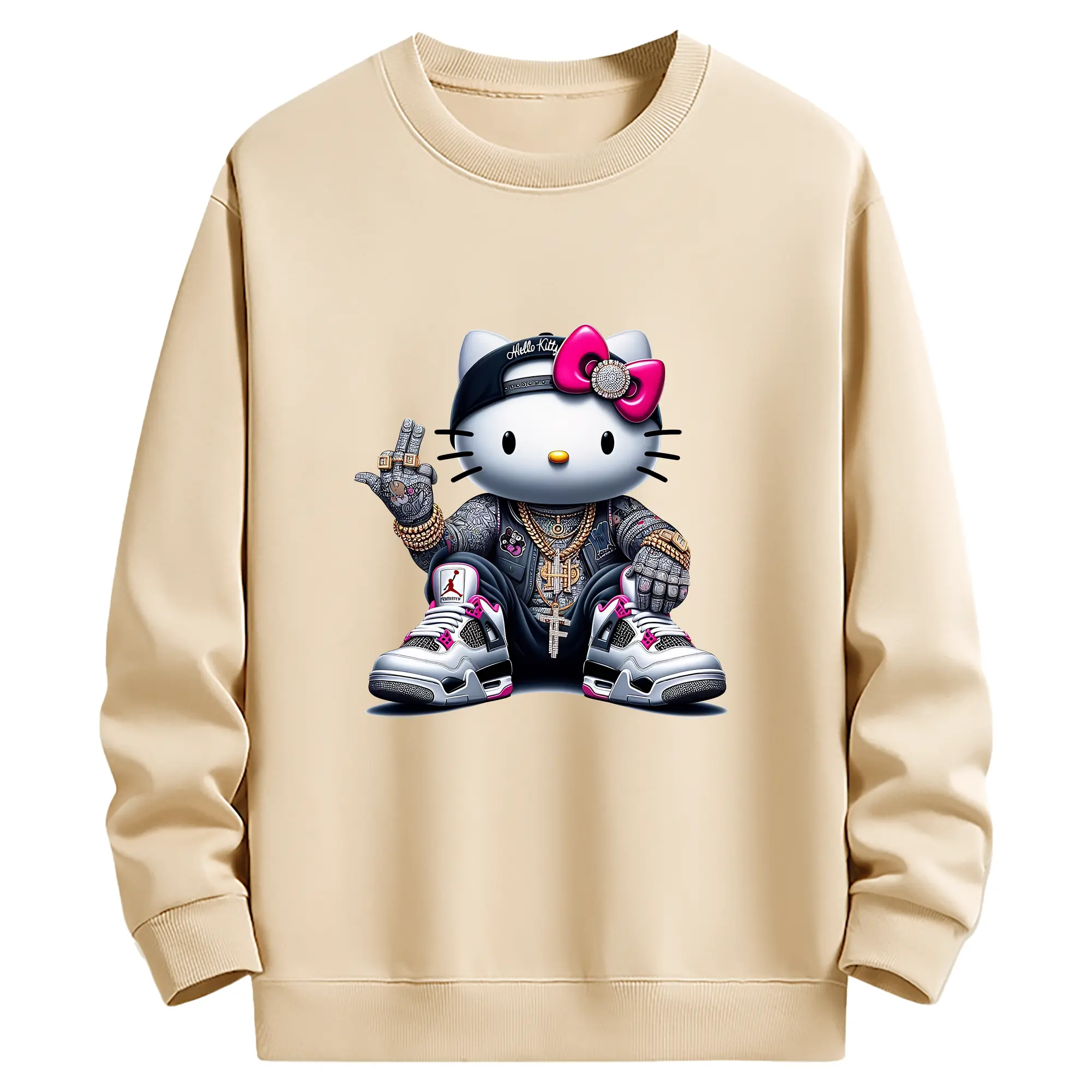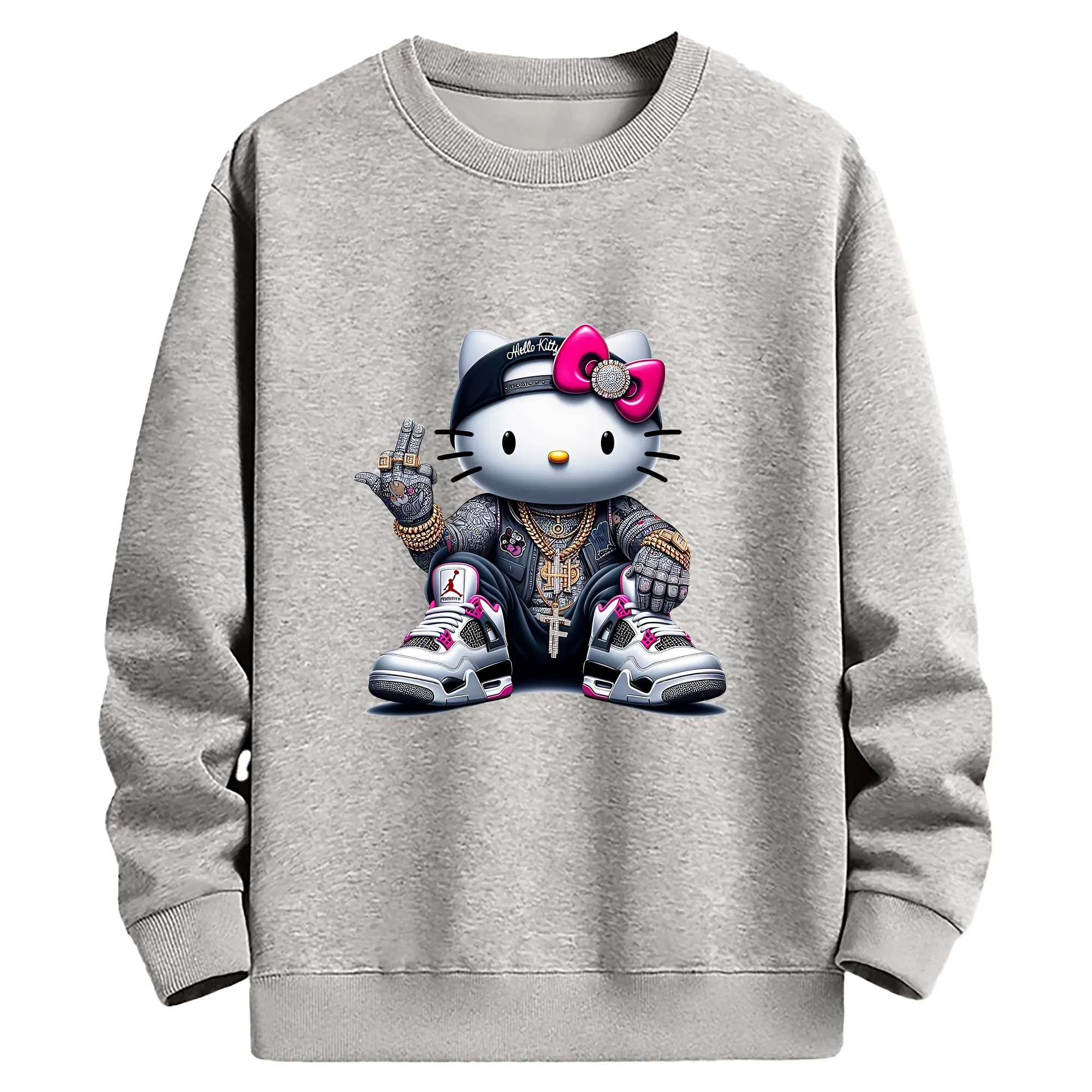 サンリオ グッズ,ハローキティ - 薄手 クルーネック スウェット 裏毛260g · ポリエステル 春秋向け カジュアル 男女兼用 · トレーナー デイリー スポーツ 散歩に最適