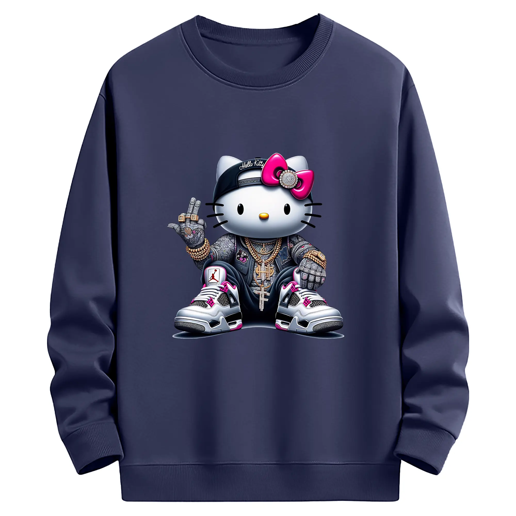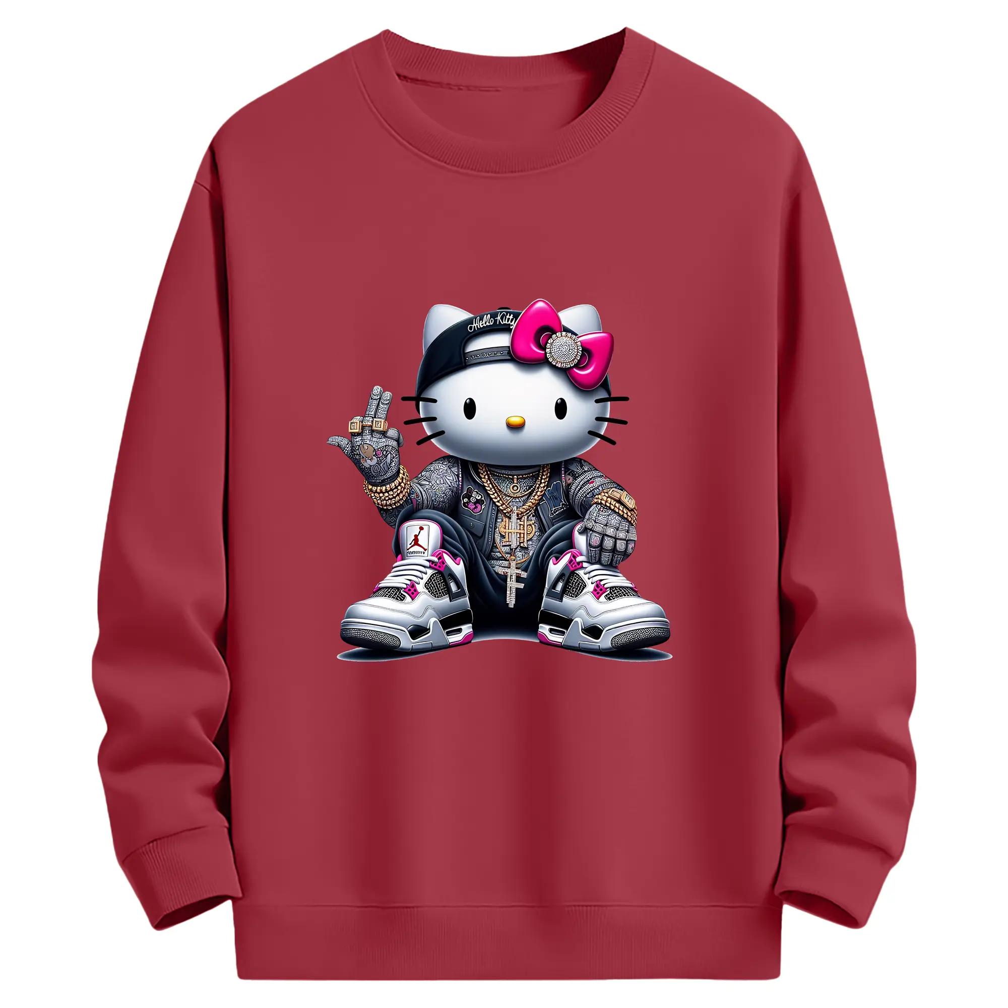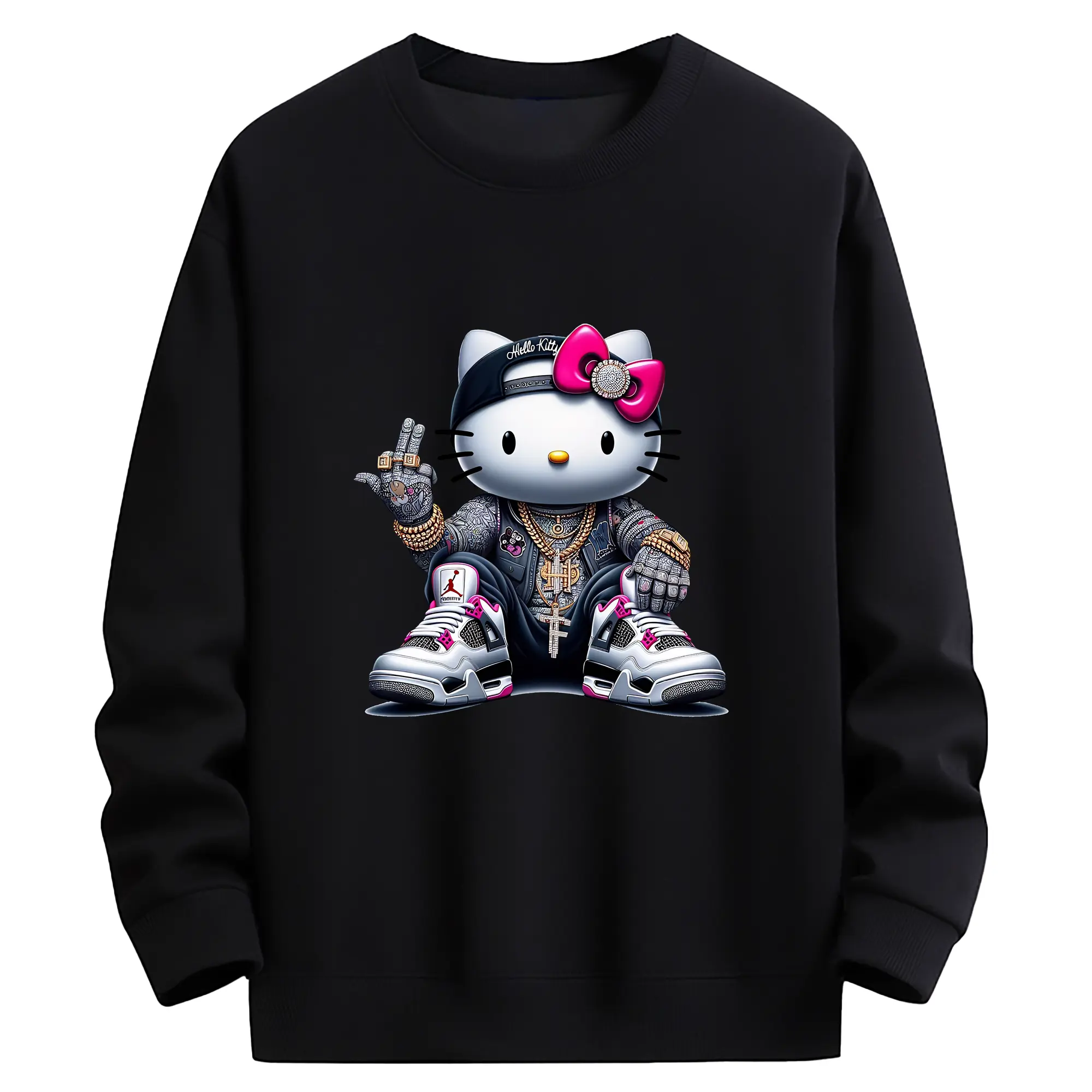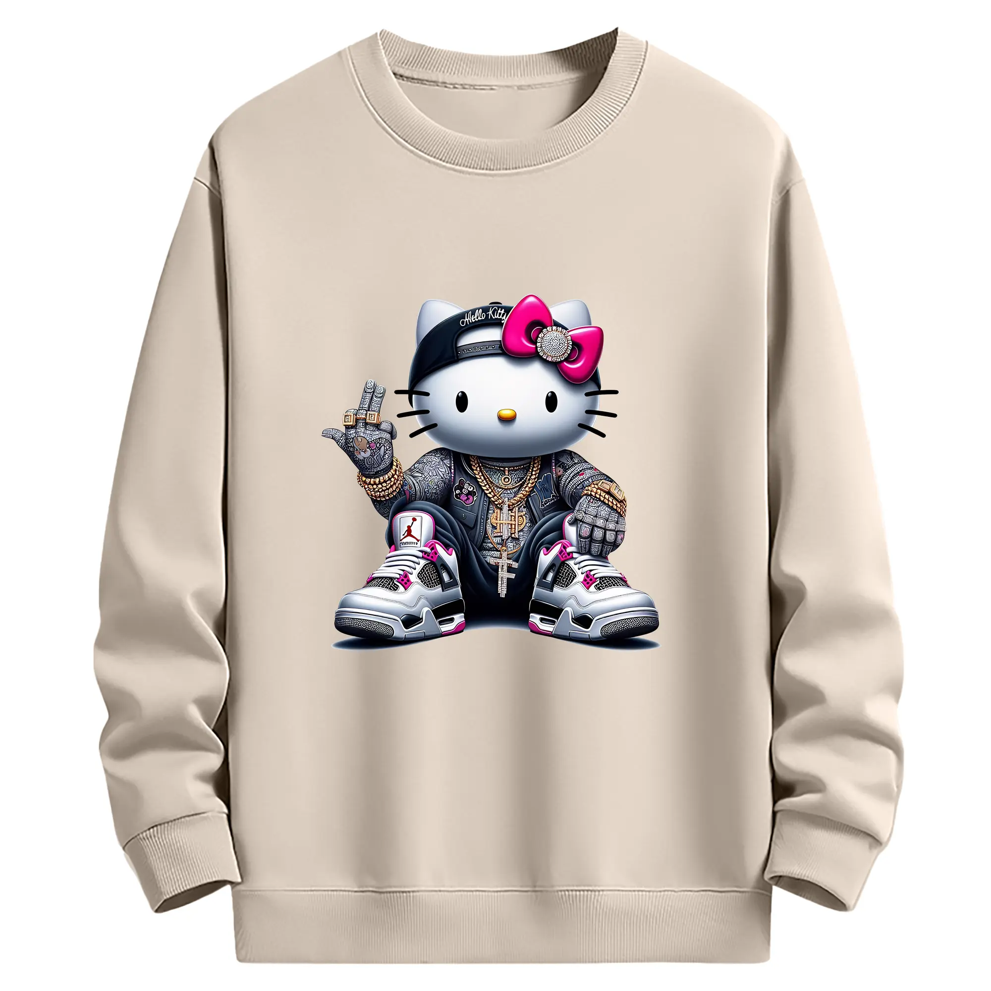 サンリオ グッズ,ハローキティ - 薄手 クルーネック スウェット 裏毛260g · ポリエステル 春秋向け カジュアル 男女兼用 · トレーナー デイリー スポーツ 散歩に最適