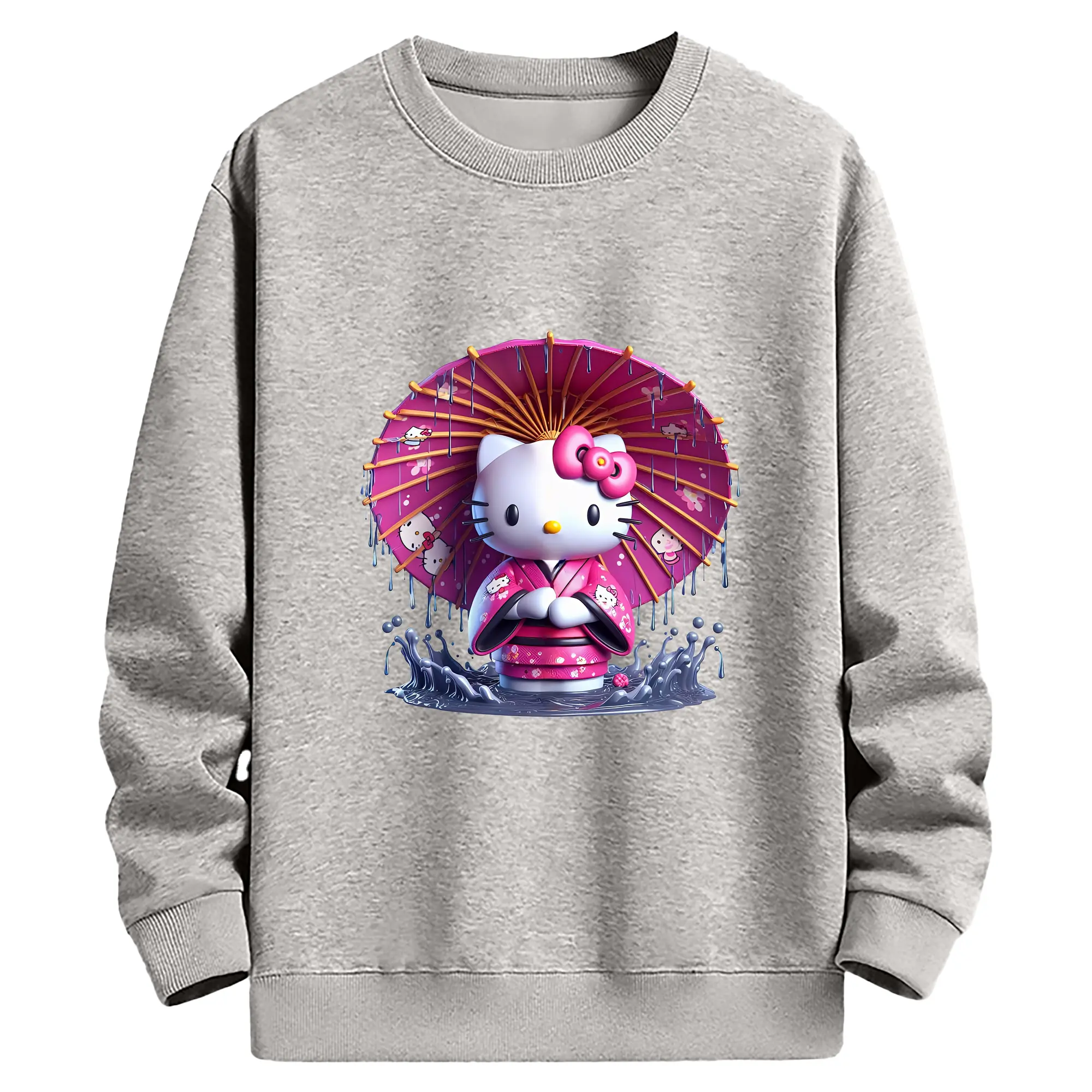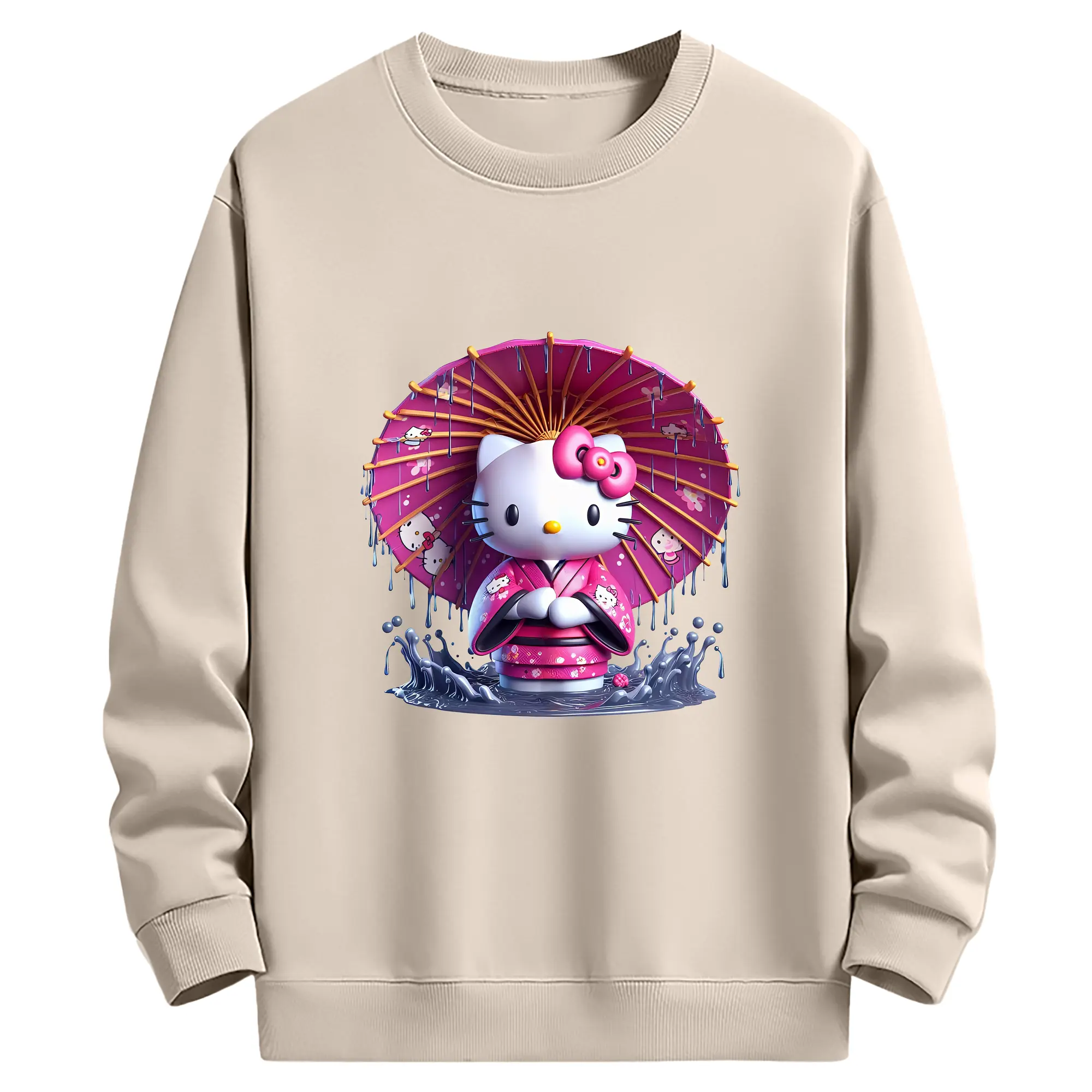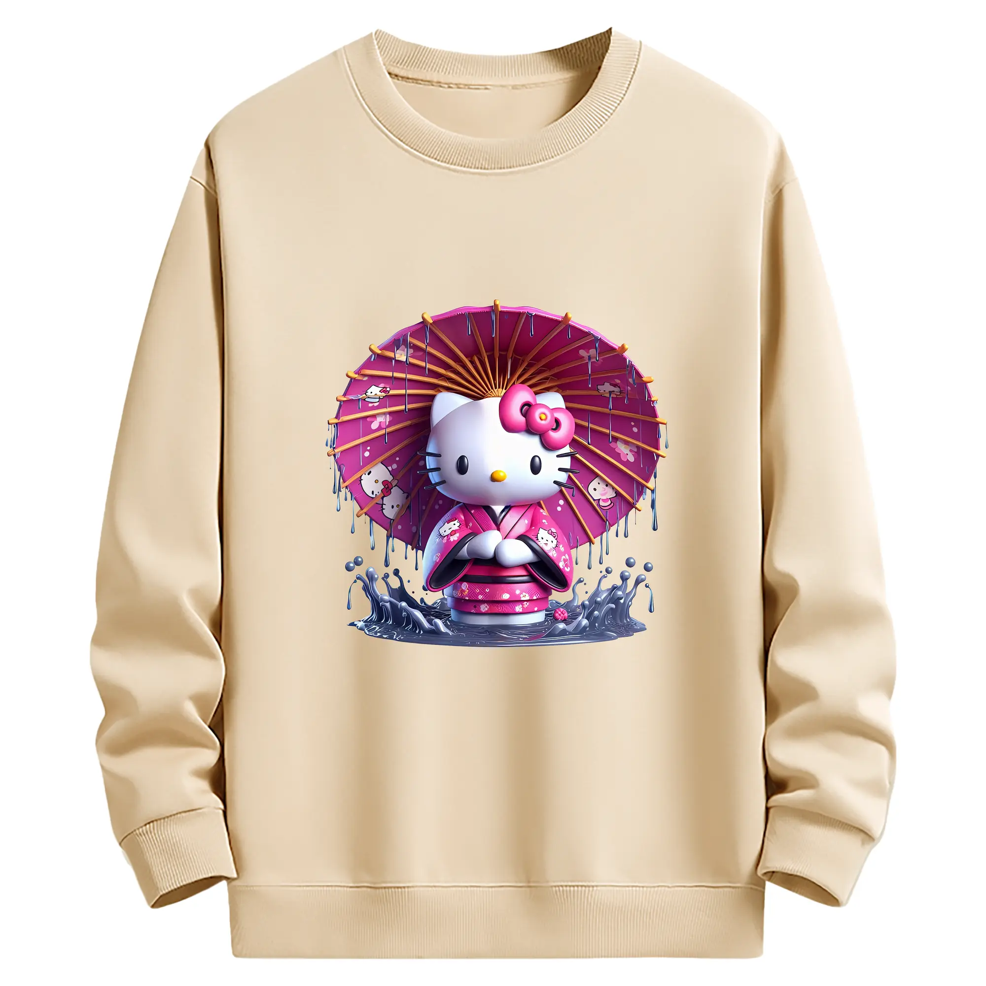 サンリオ グッズ,ハローキティ - 薄手 クルーネック スウェット 裏毛260g · ポリエステル 春秋向け カジュアル 男女兼用 · トレーナー デイリー スポーツ 散歩に最適