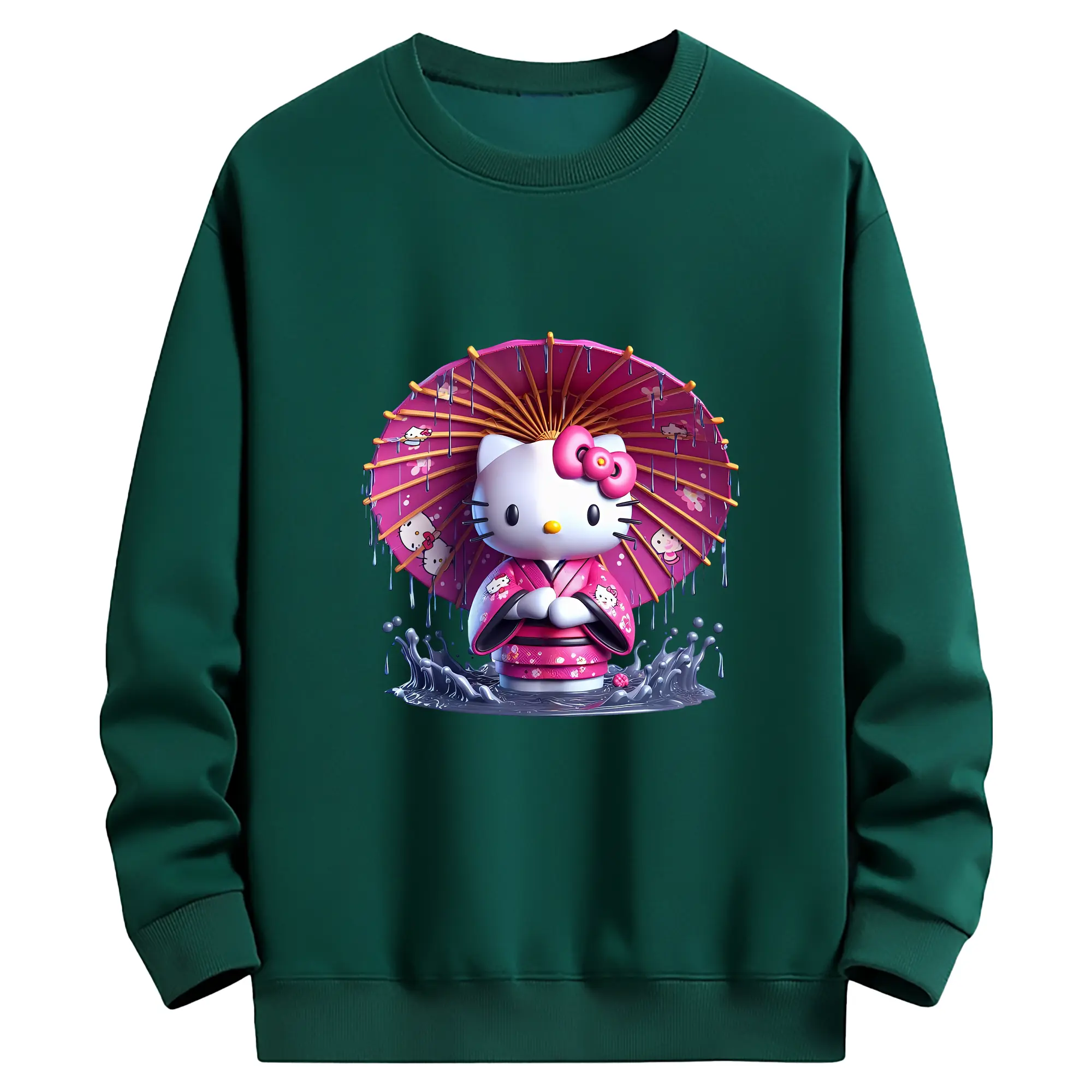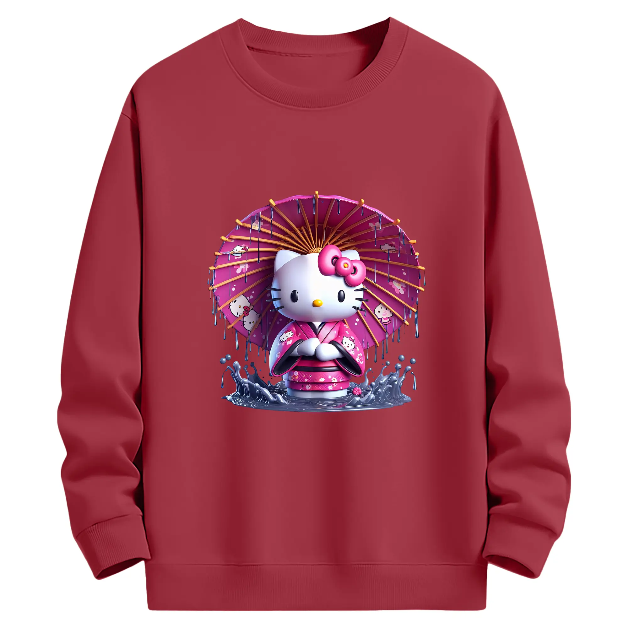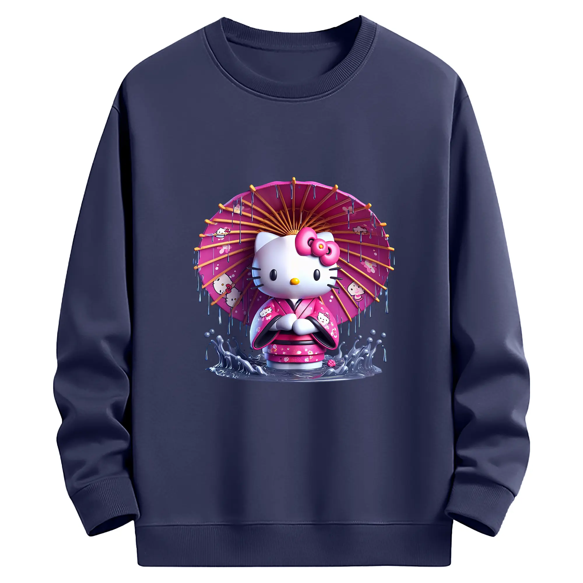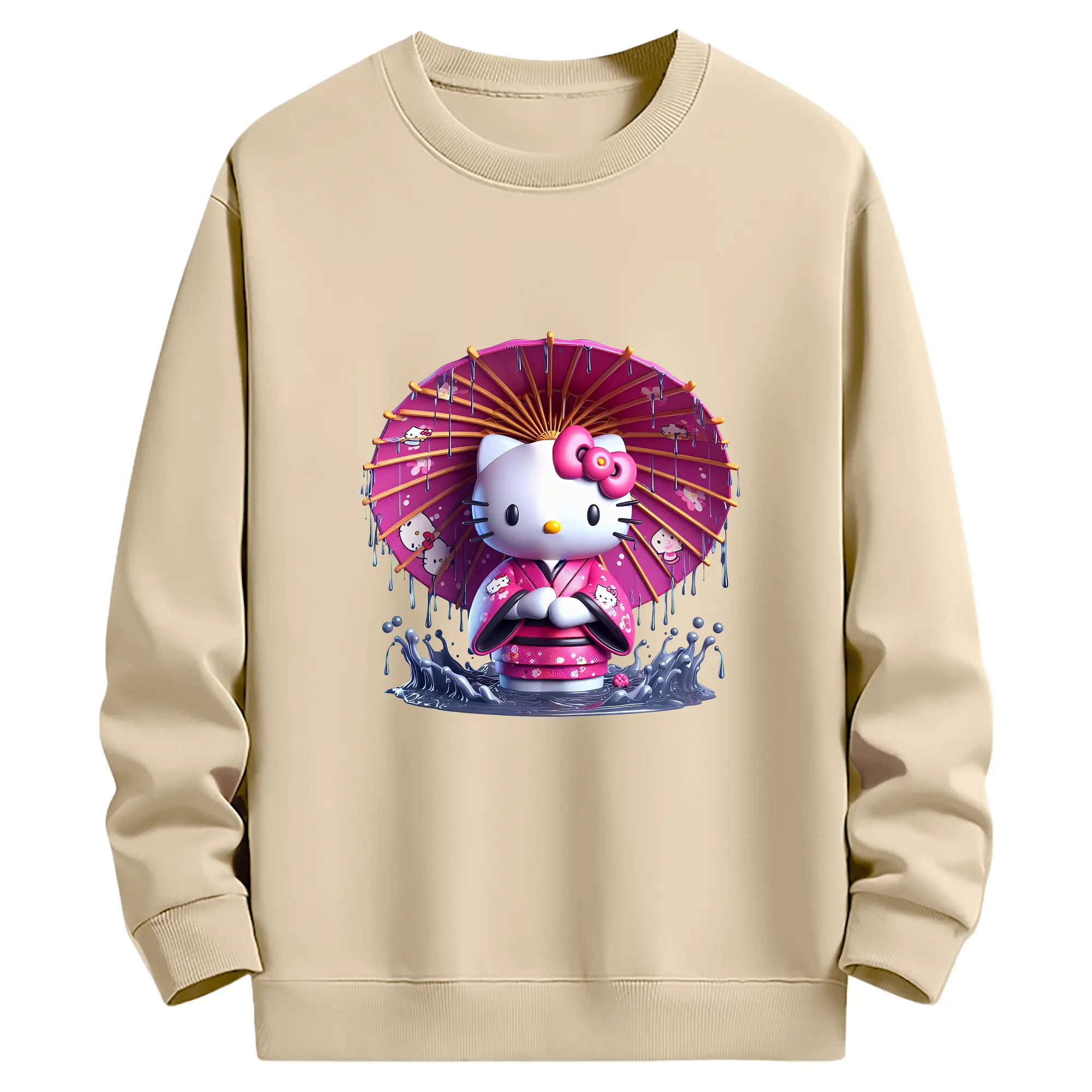 サンリオ グッズ,ハローキティ - 薄手 クルーネック スウェット 裏毛260g · ポリエステル 春秋向け カジュアル 男女兼用 · トレーナー デイリー スポーツ 散歩に最適