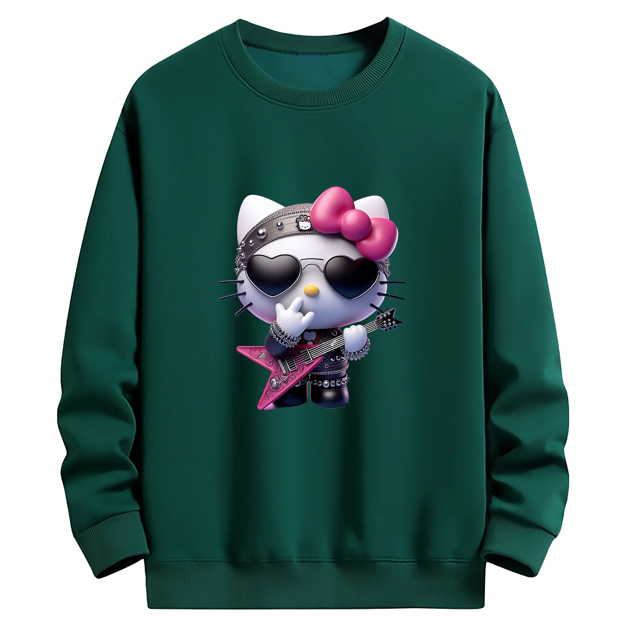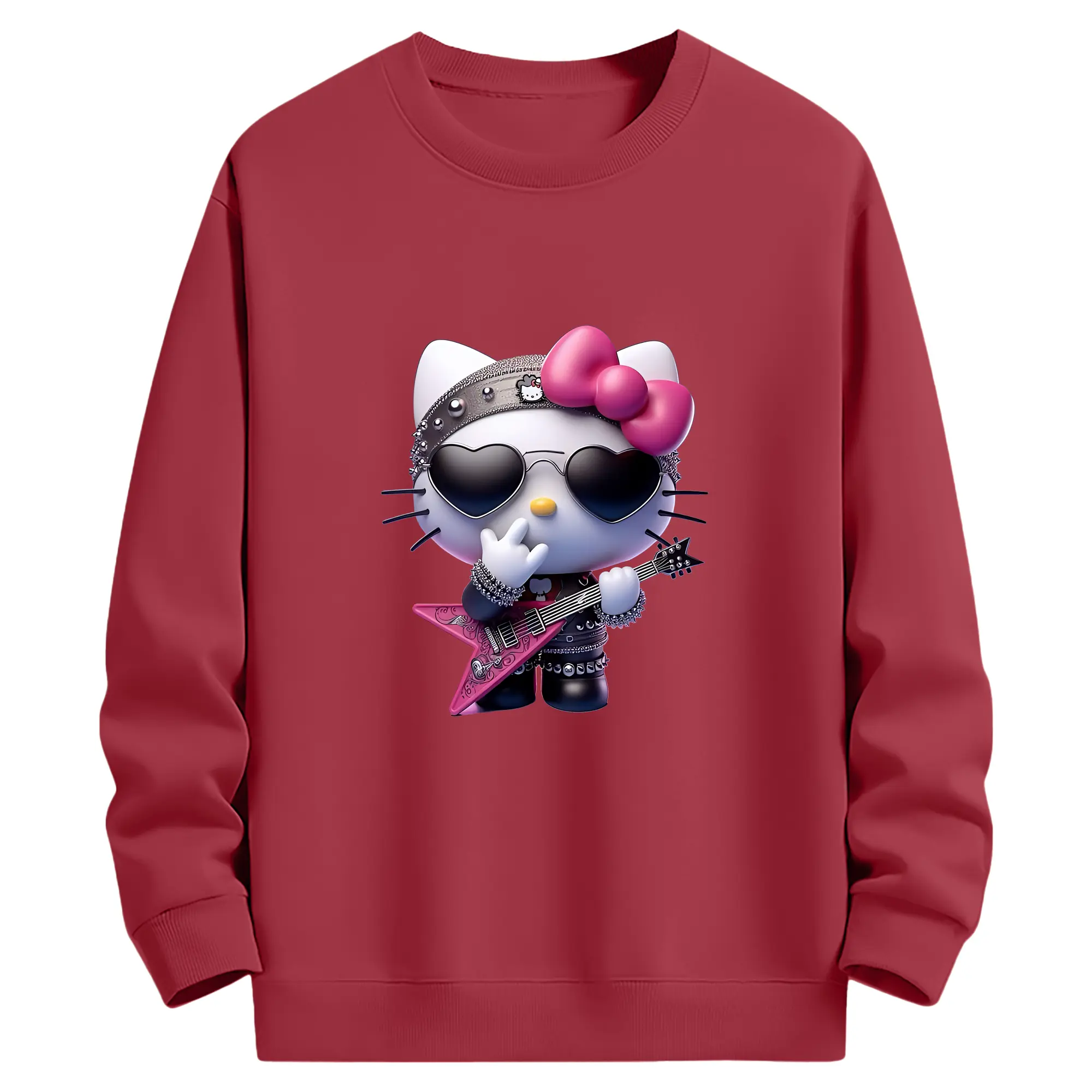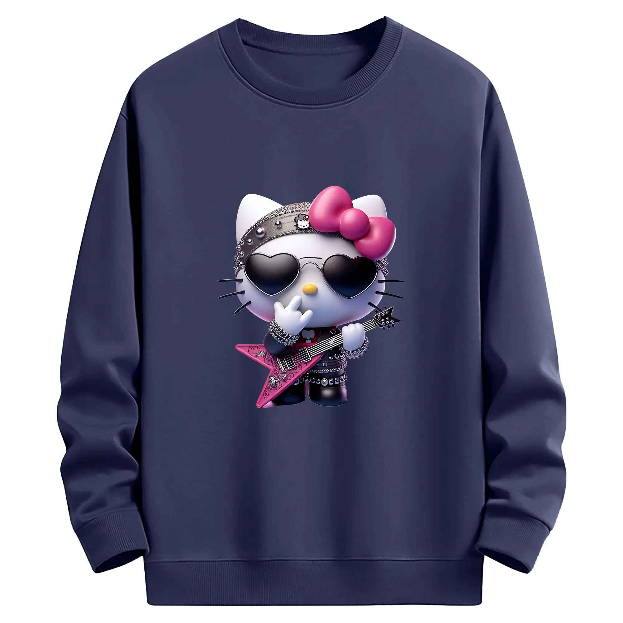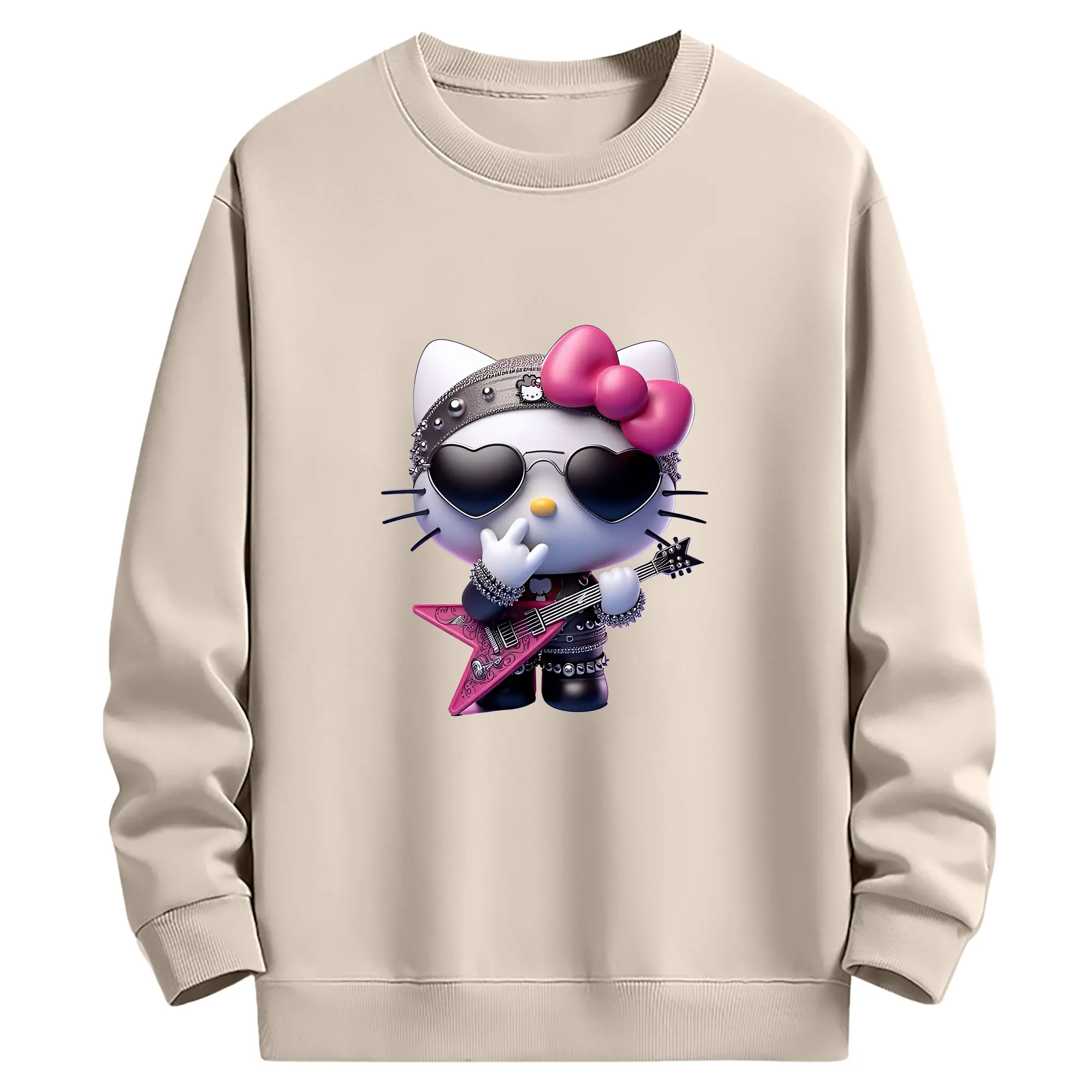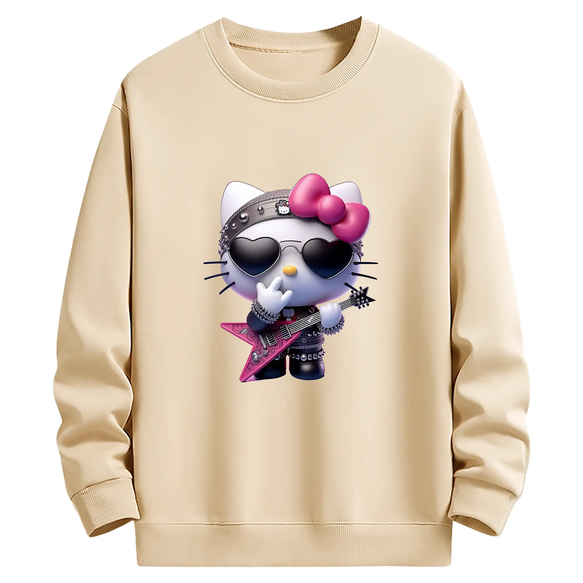 サンリオ グッズ,ハローキティ - 薄手 クルーネック スウェット 裏毛260g · ポリエステル 春秋向け カジュアル 男女兼用 · トレーナー デイリー スポーツ 散歩に最適