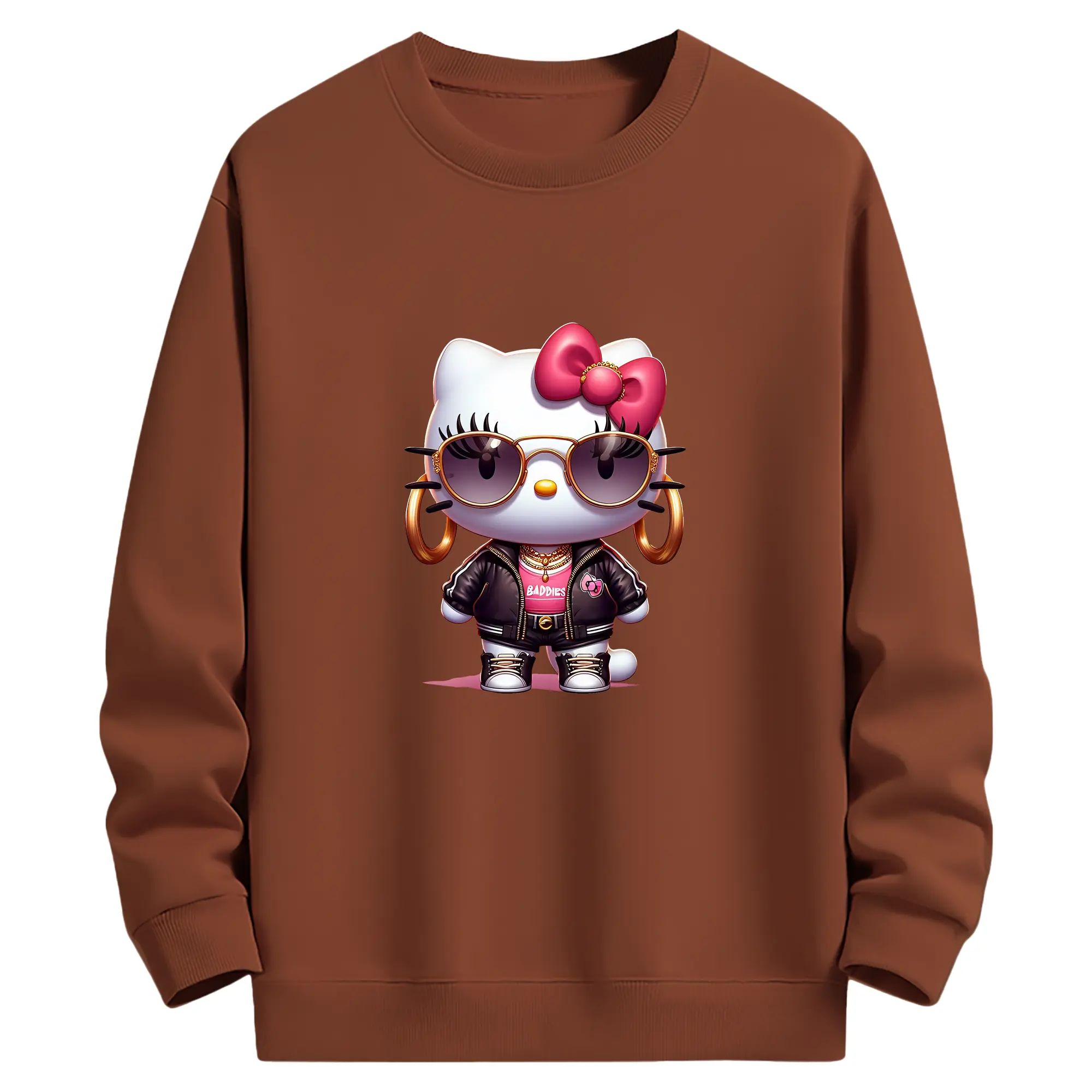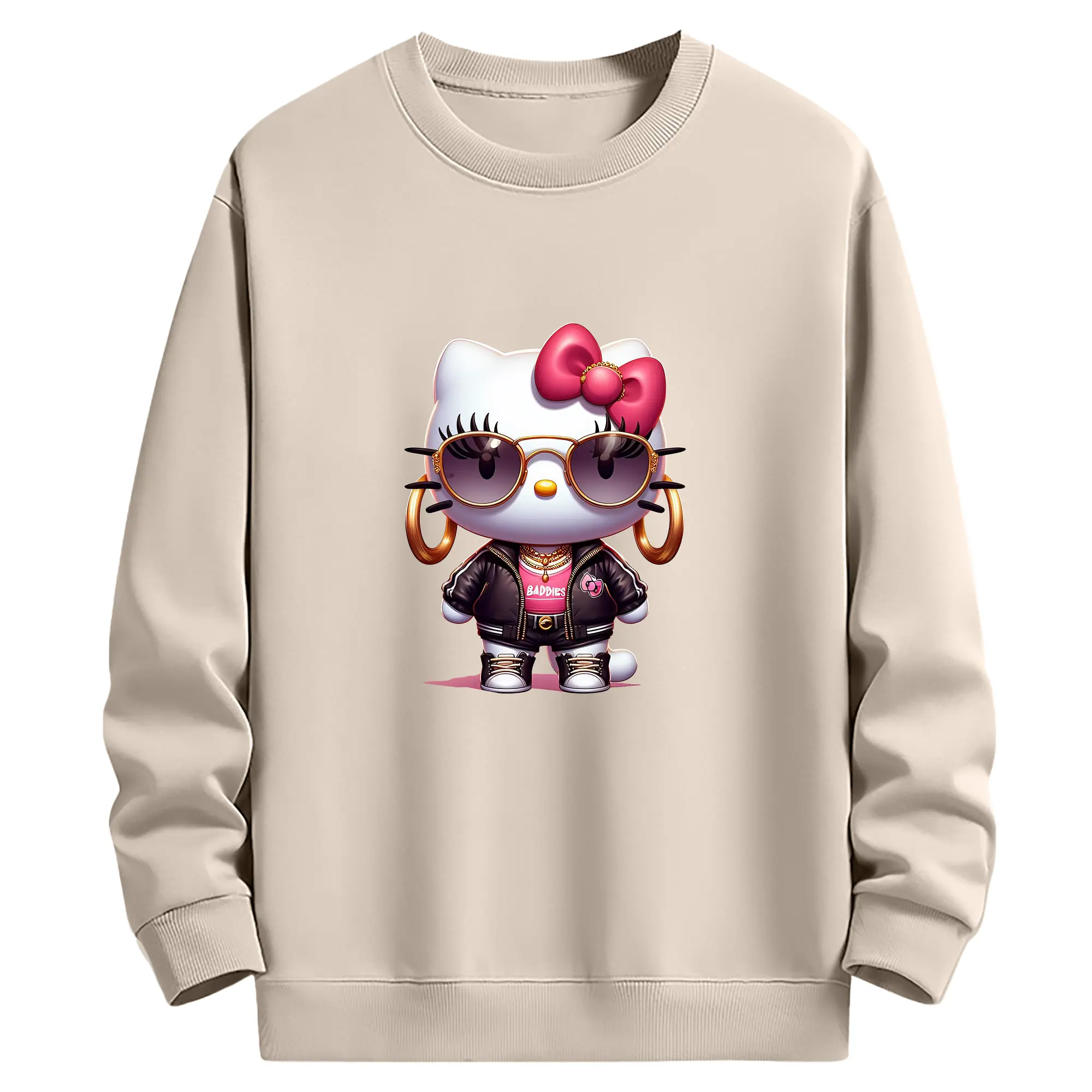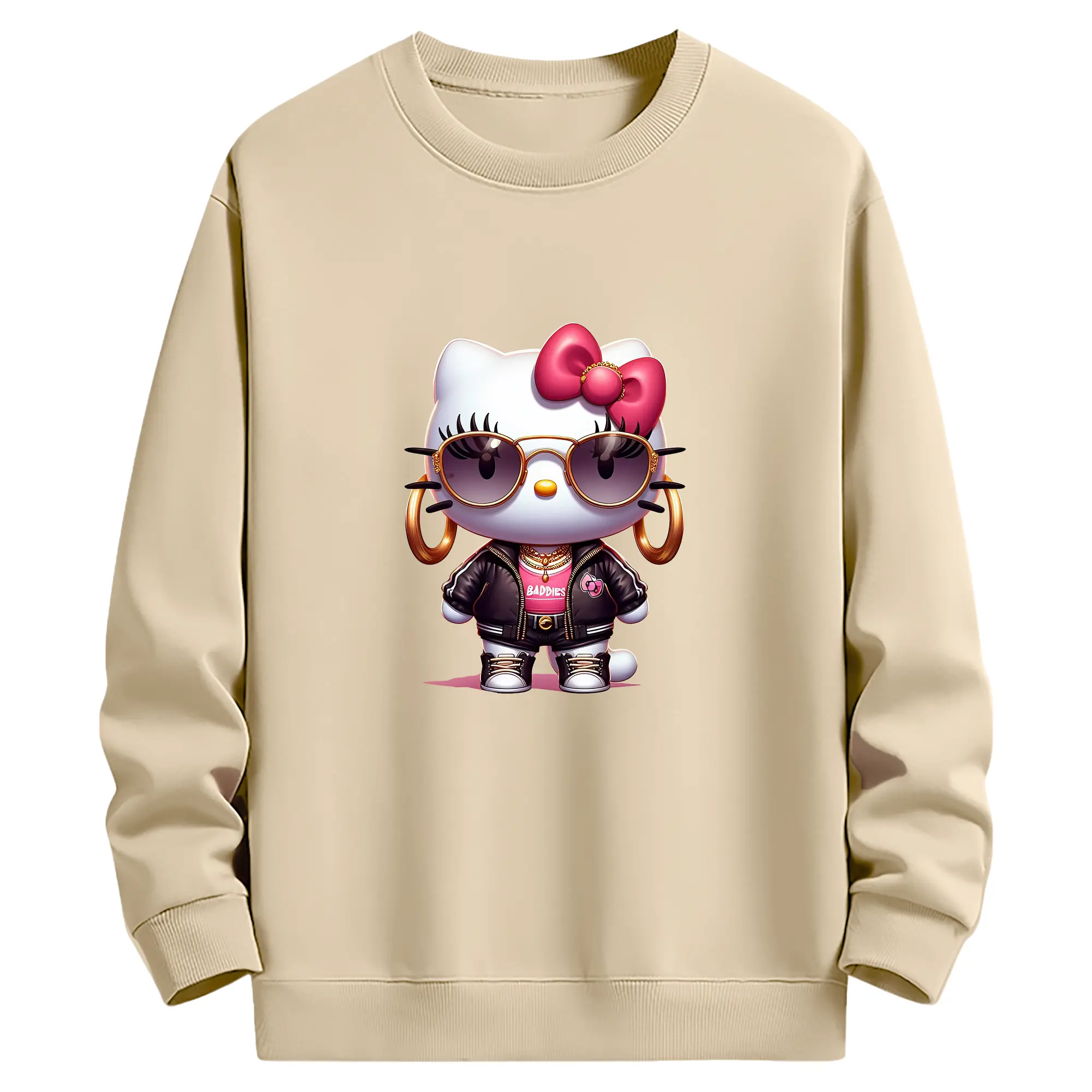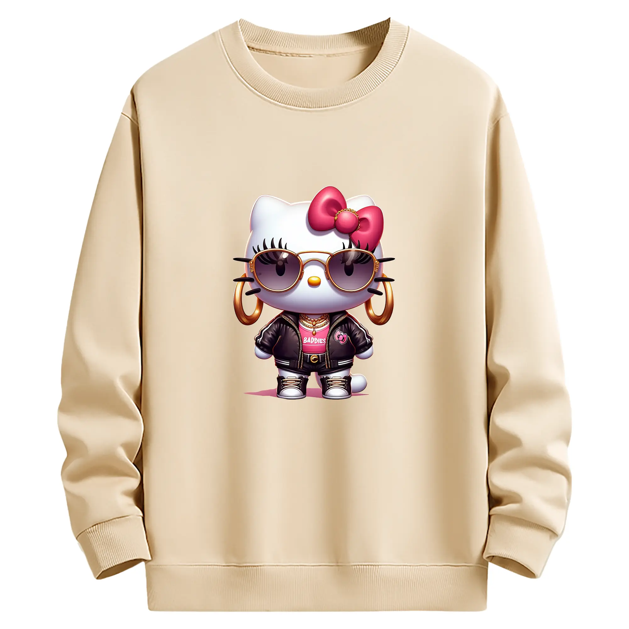サンリオ グッズ,ハローキティ - 薄手 クルーネック スウェット 裏毛260g · ポリエステル 春秋向け カジュアル 男女兼用 · トレーナー デイリー スポーツ 散歩に最適