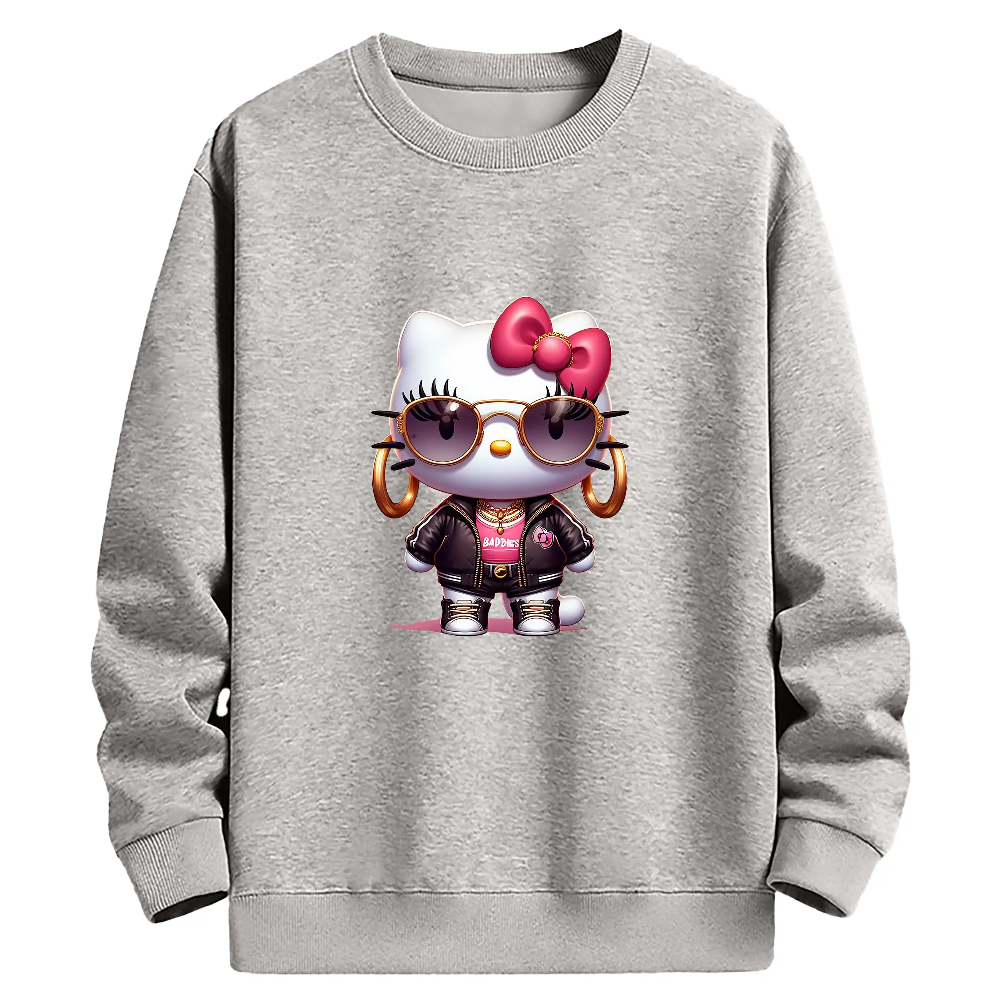 サンリオ グッズ,ハローキティ - 高品質 クルーネック スウェット ・ コットン59% ポリエステル41% ・ ユニセックス 長袖 トレーナー ・ カジュアル デイリー スポーツ 散歩用