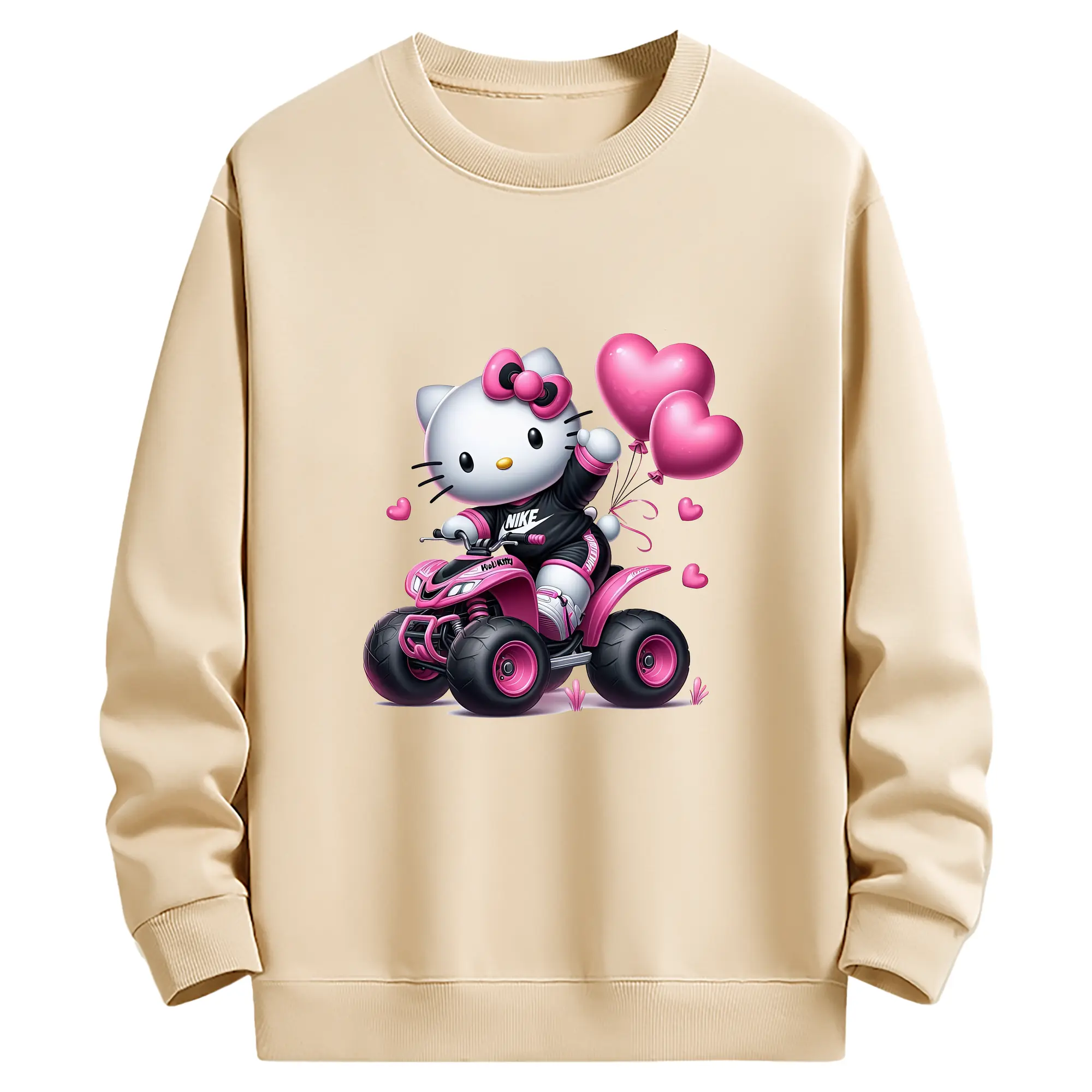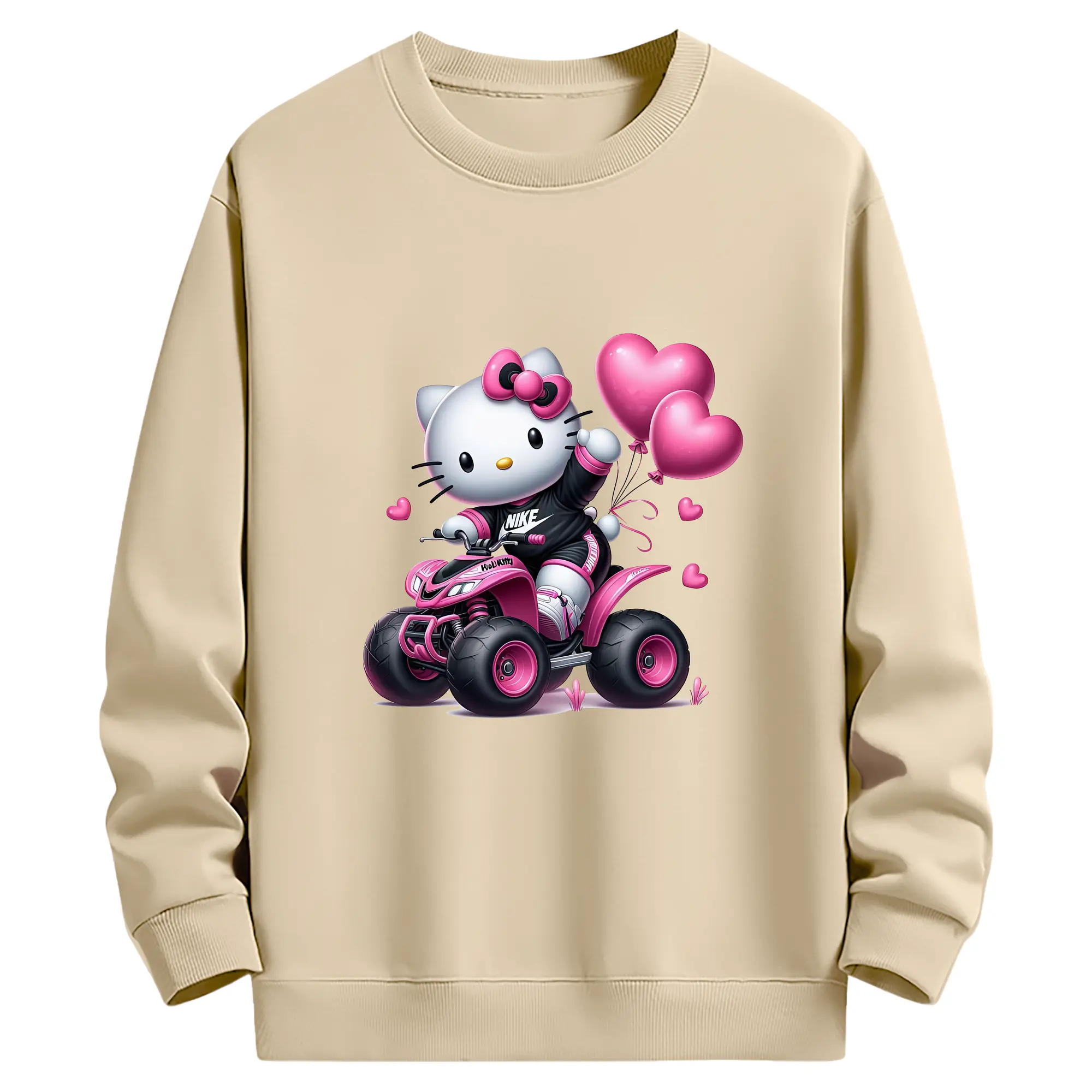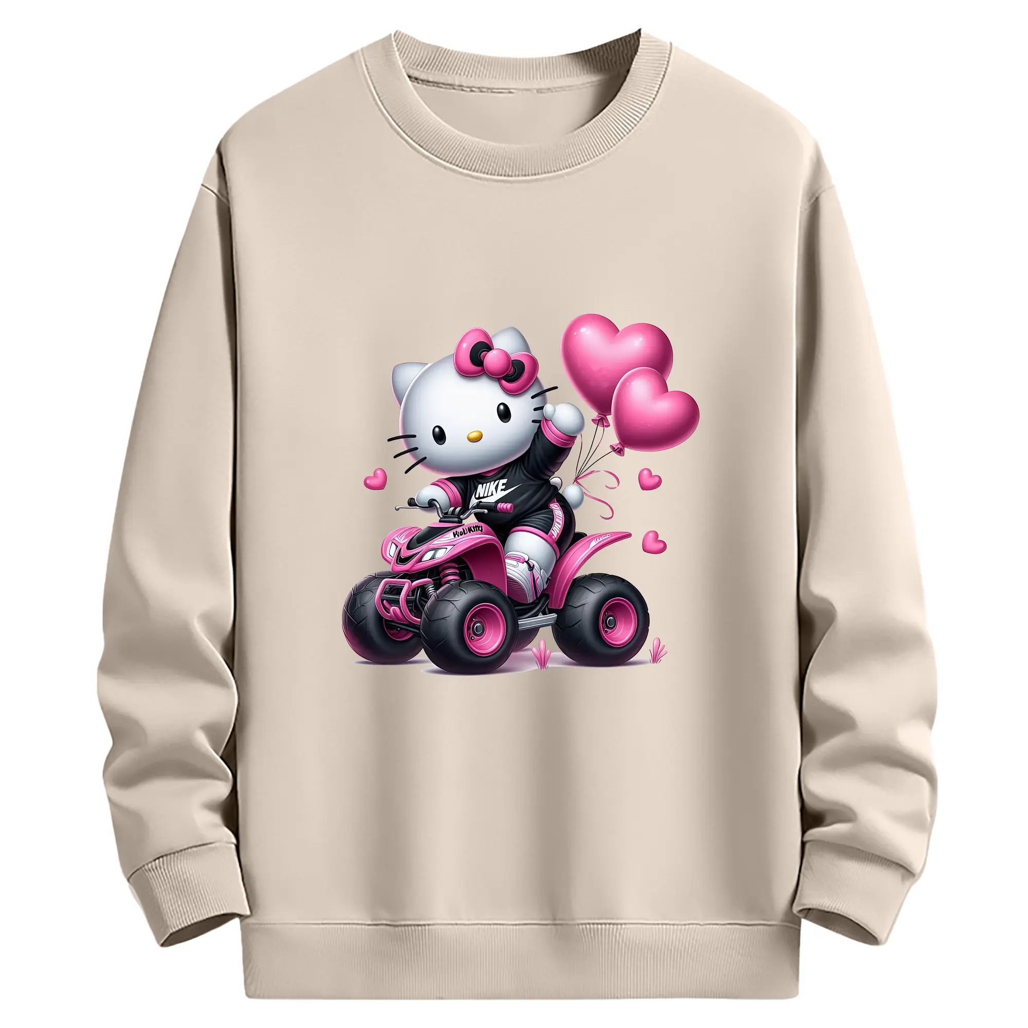 サンリオ グッズ,ハローキティ - 薄手 クルーネック スウェット 裏毛260g · ポリエステル 春秋向け カジュアル 男女兼用 · トレーナー デイリー スポーツ 散歩に最適