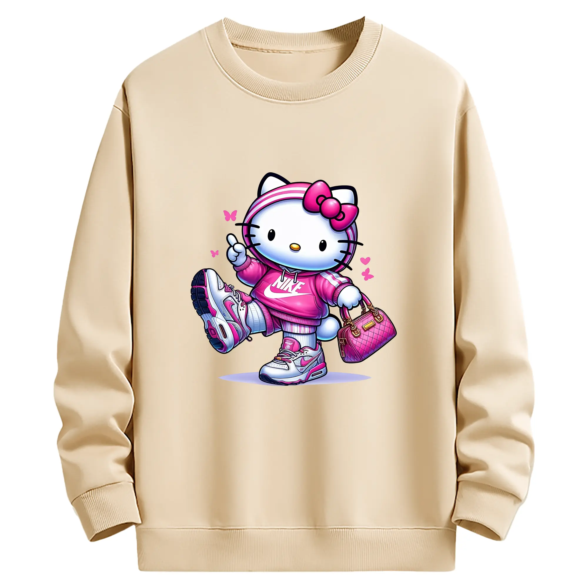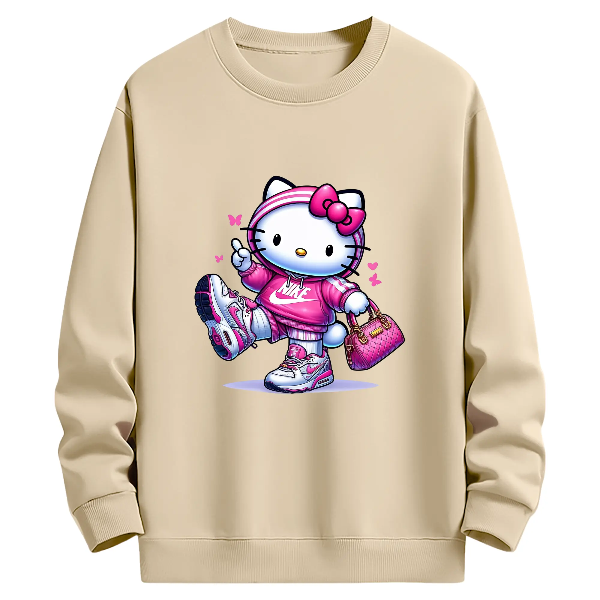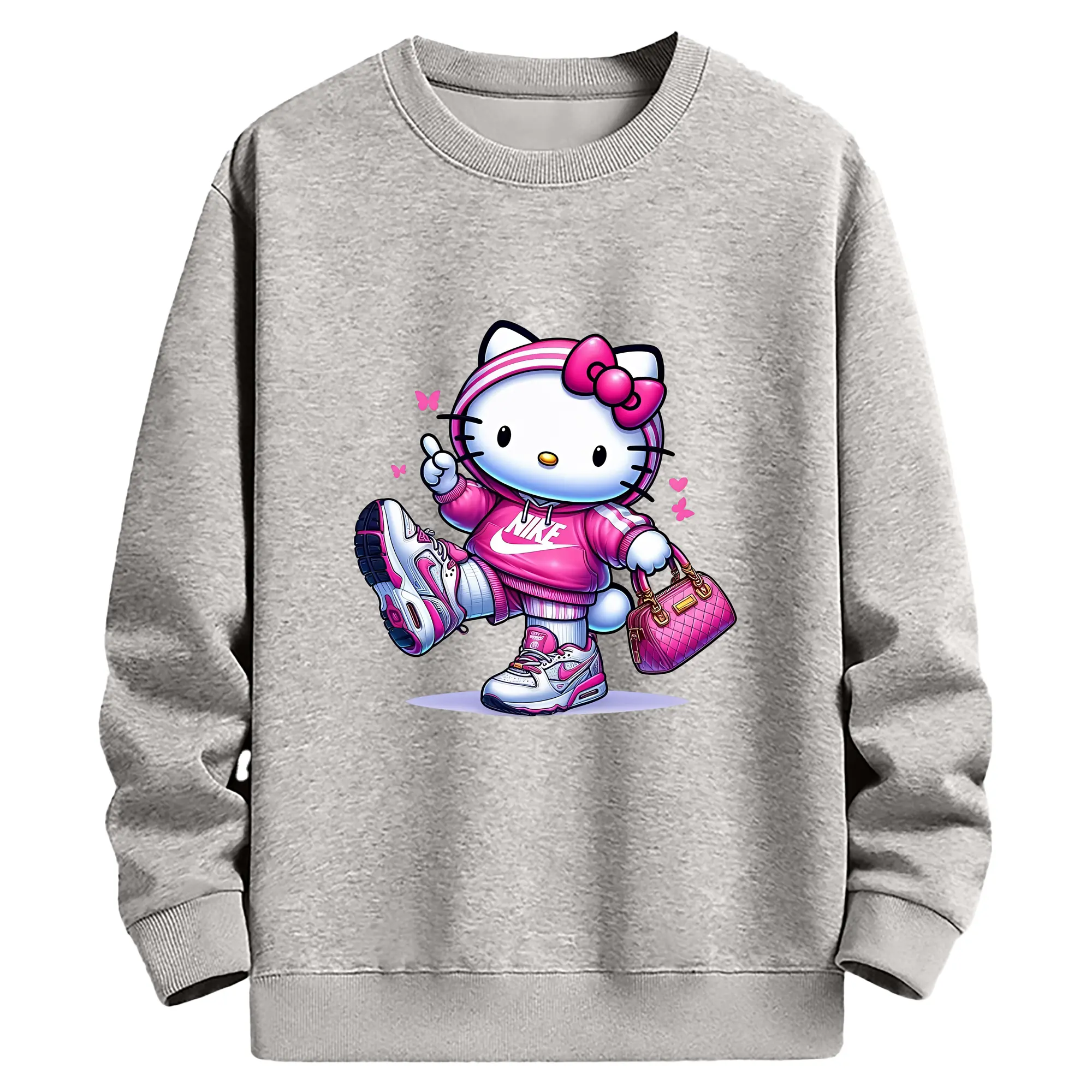 サンリオ グッズ,ハローキティ - 薄手 クルーネック スウェット 裏毛260g · ポリエステル 春秋向け カジュアル 男女兼用 · トレーナー デイリー スポーツ 散歩に最適
