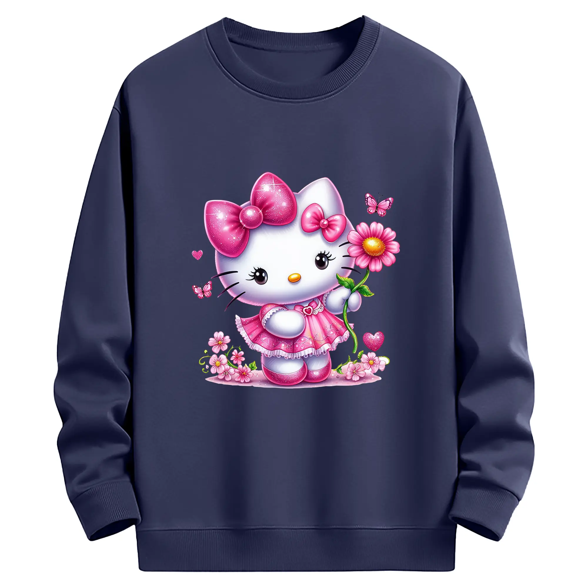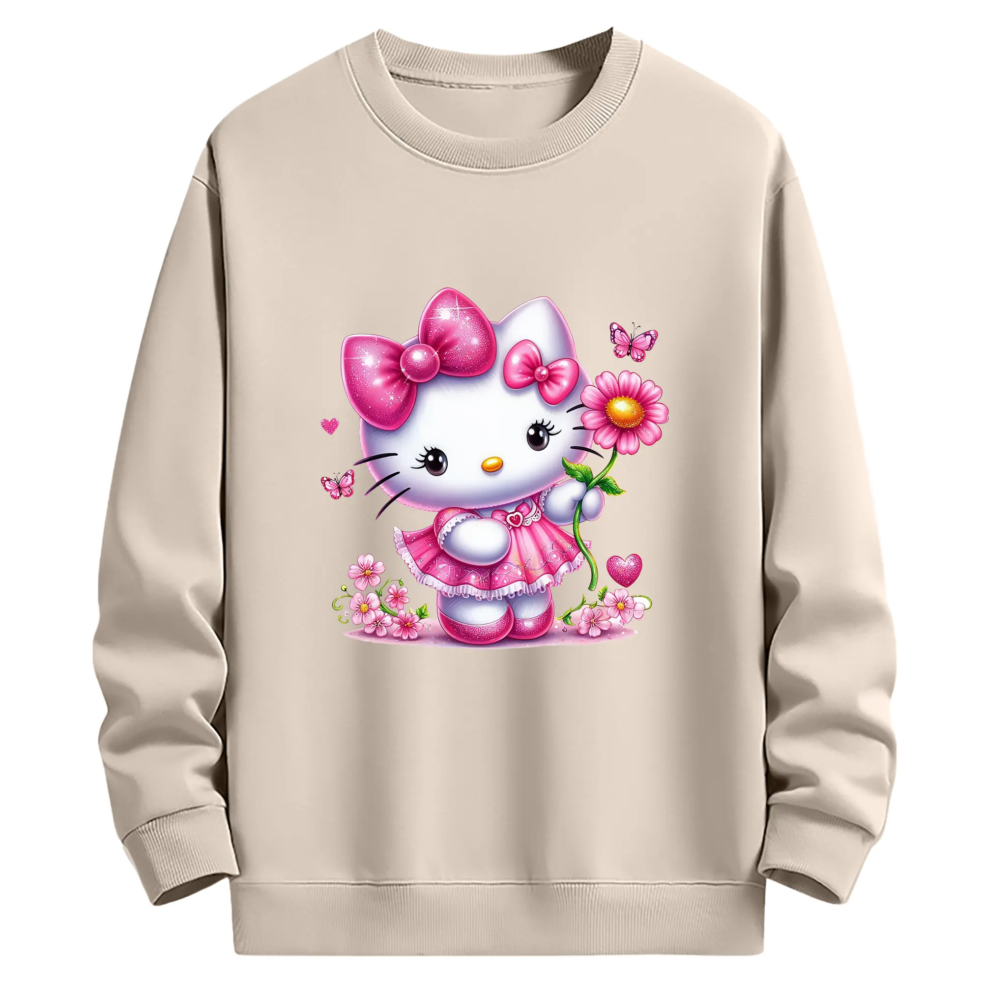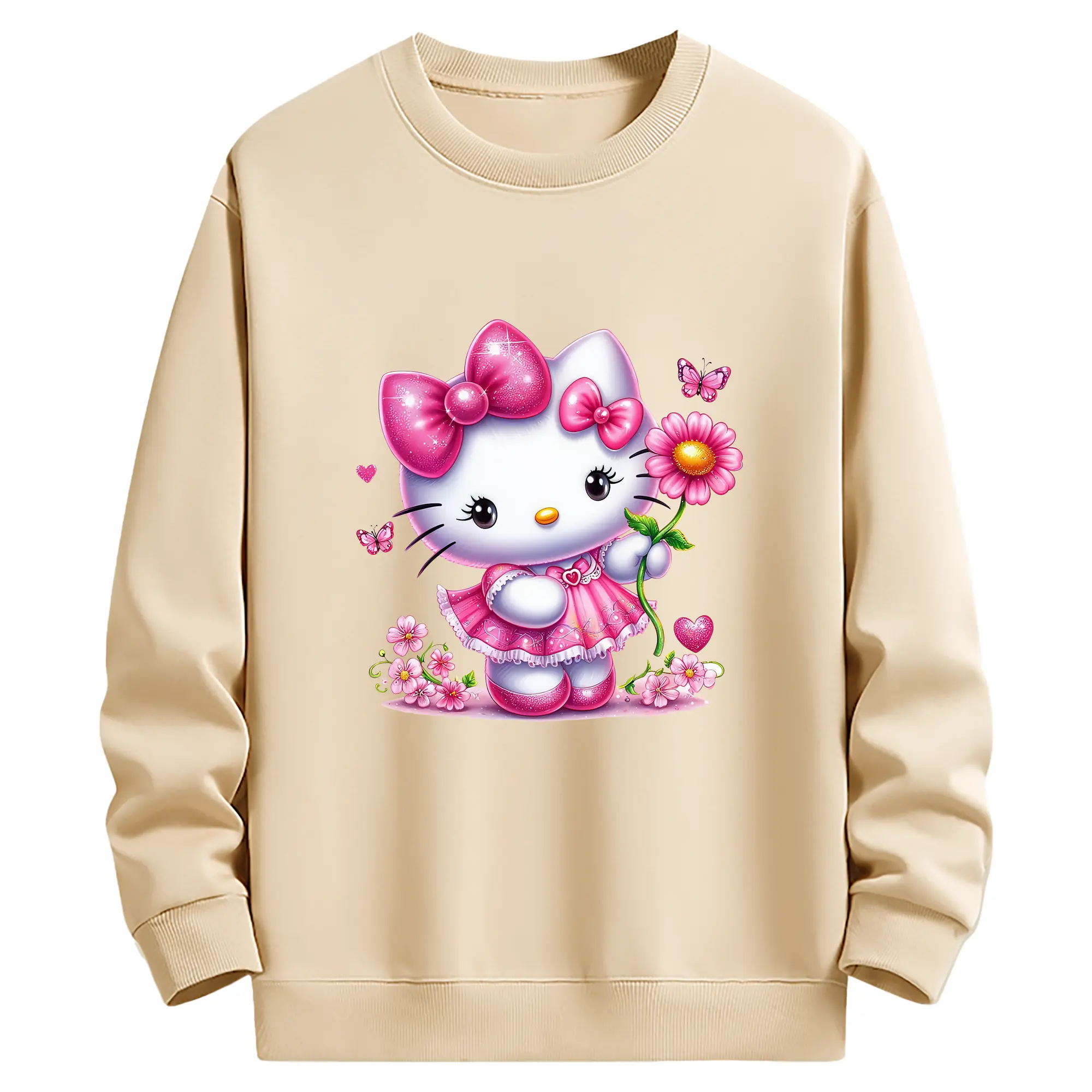 サンリオ グッズ,ハローキティ - 薄手 クルーネック スウェット 裏毛260g · ポリエステル 春秋向け カジュアル 男女兼用 · トレーナー デイリー スポーツ 散歩に最適