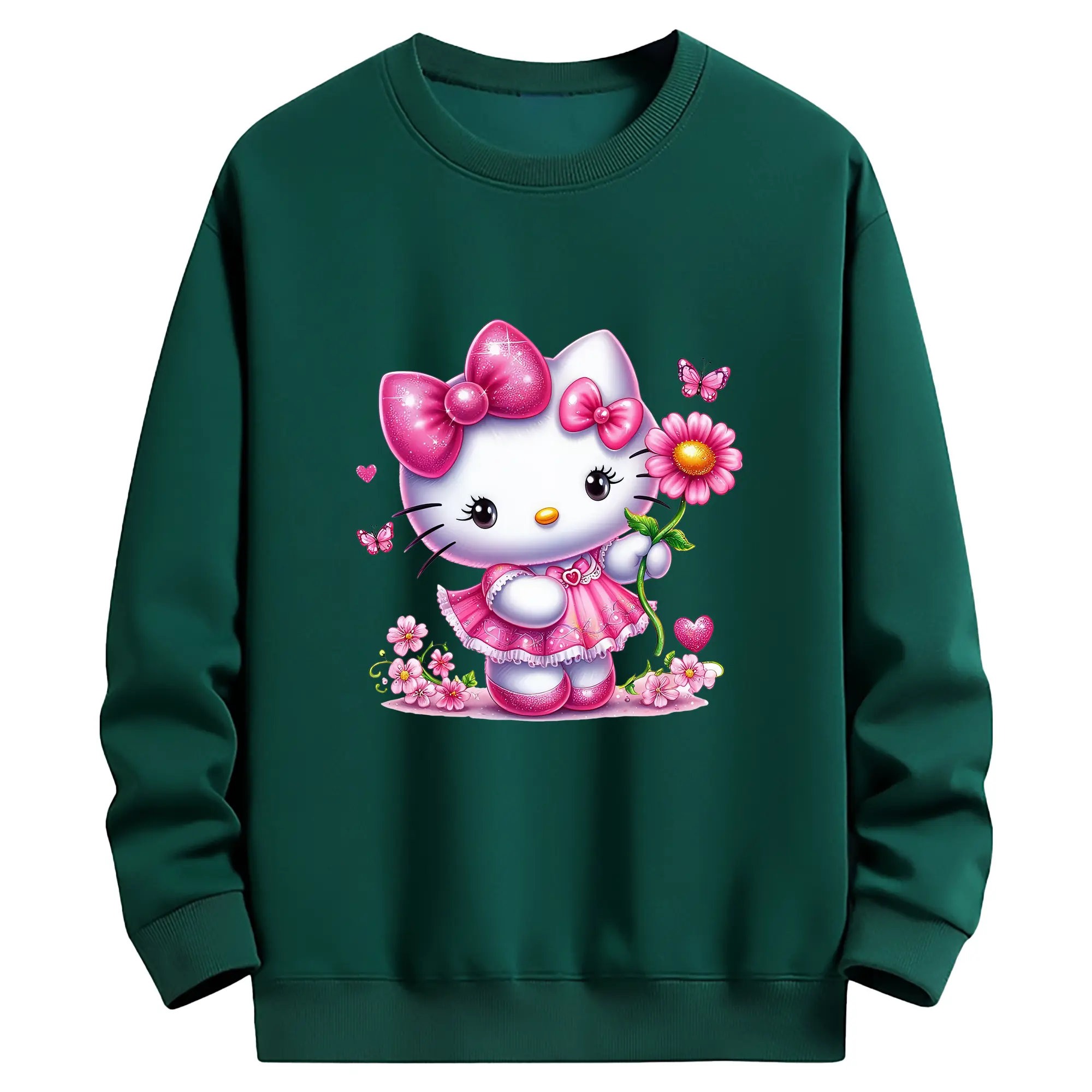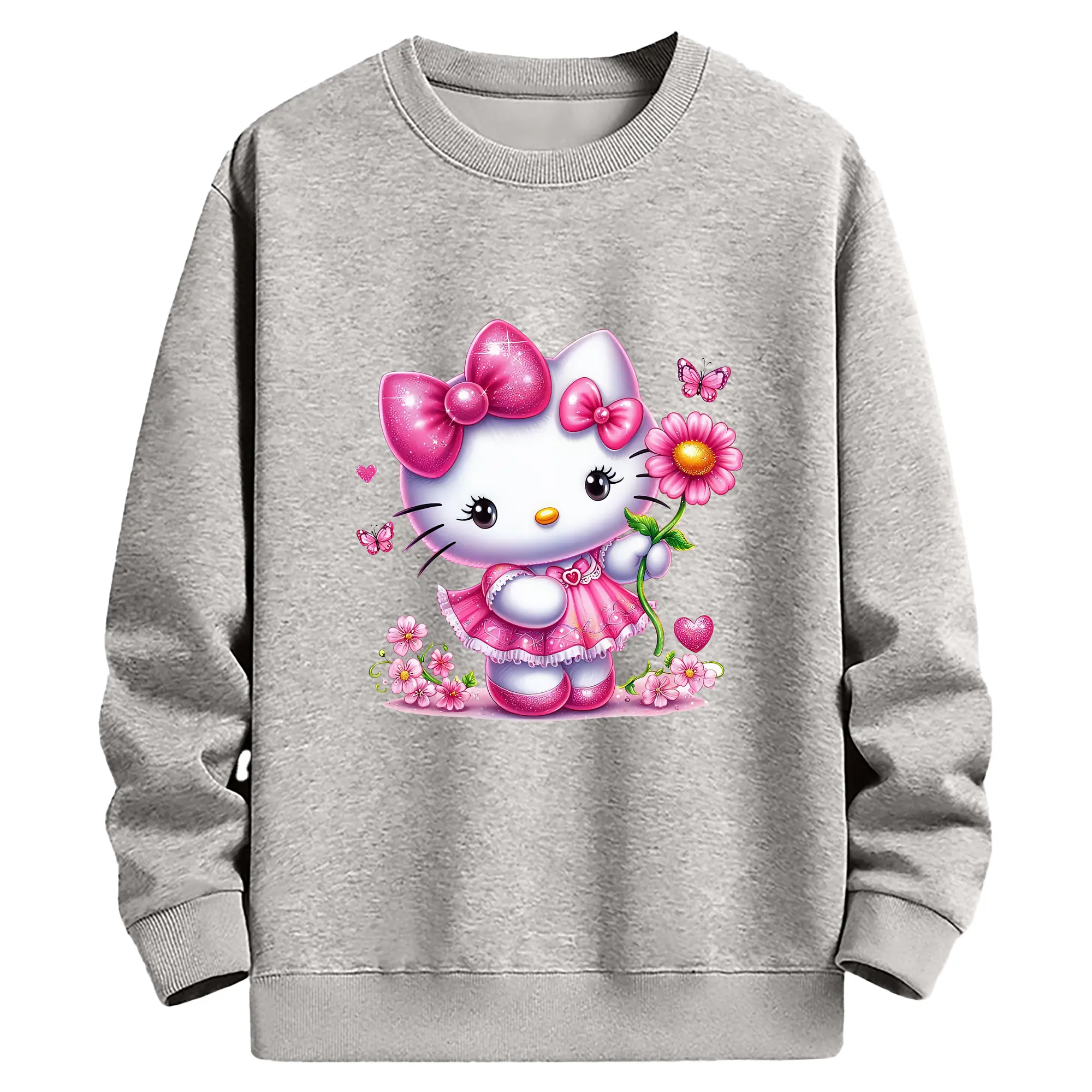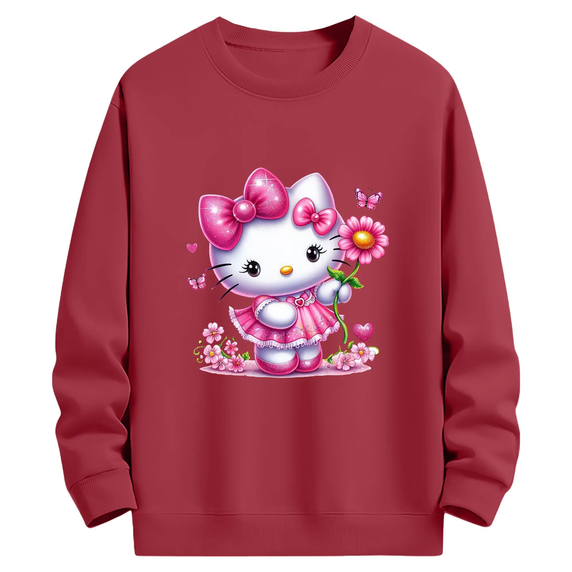 サンリオ グッズ,ハローキティ - 薄手 クルーネック スウェット 裏毛260g · ポリエステル 春秋向け カジュアル 男女兼用 · トレーナー デイリー スポーツ 散歩に最適