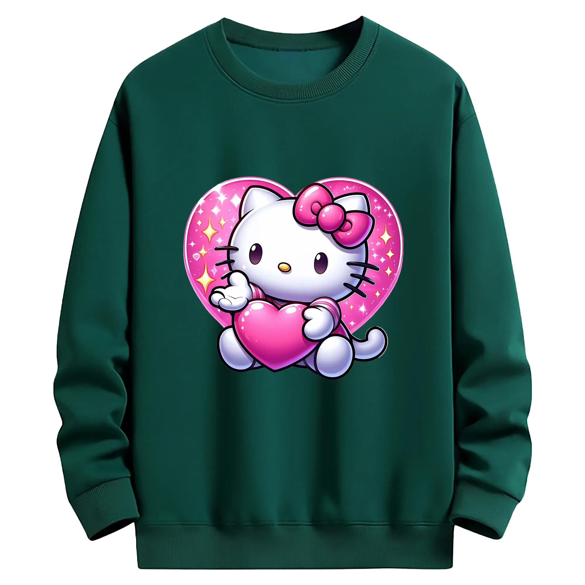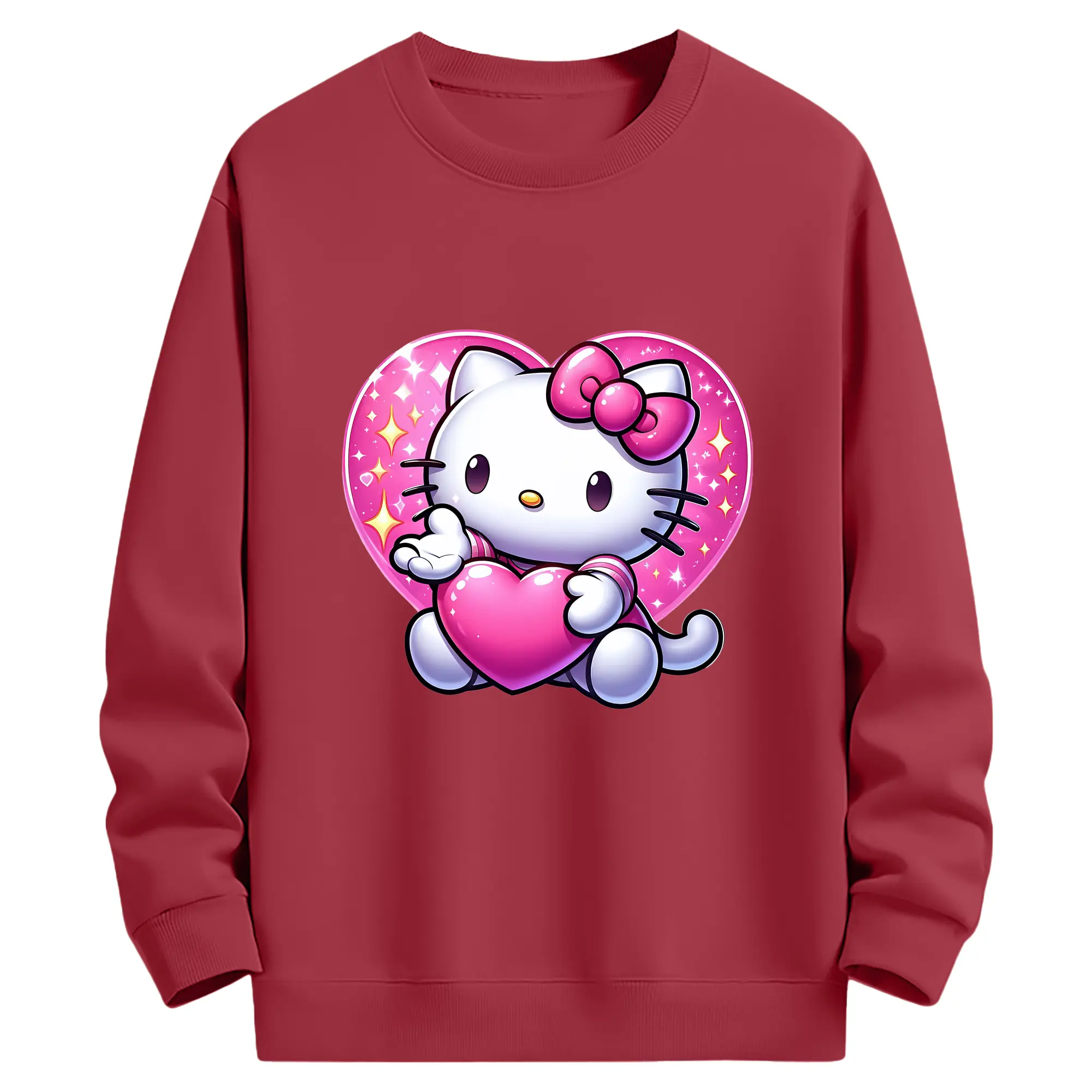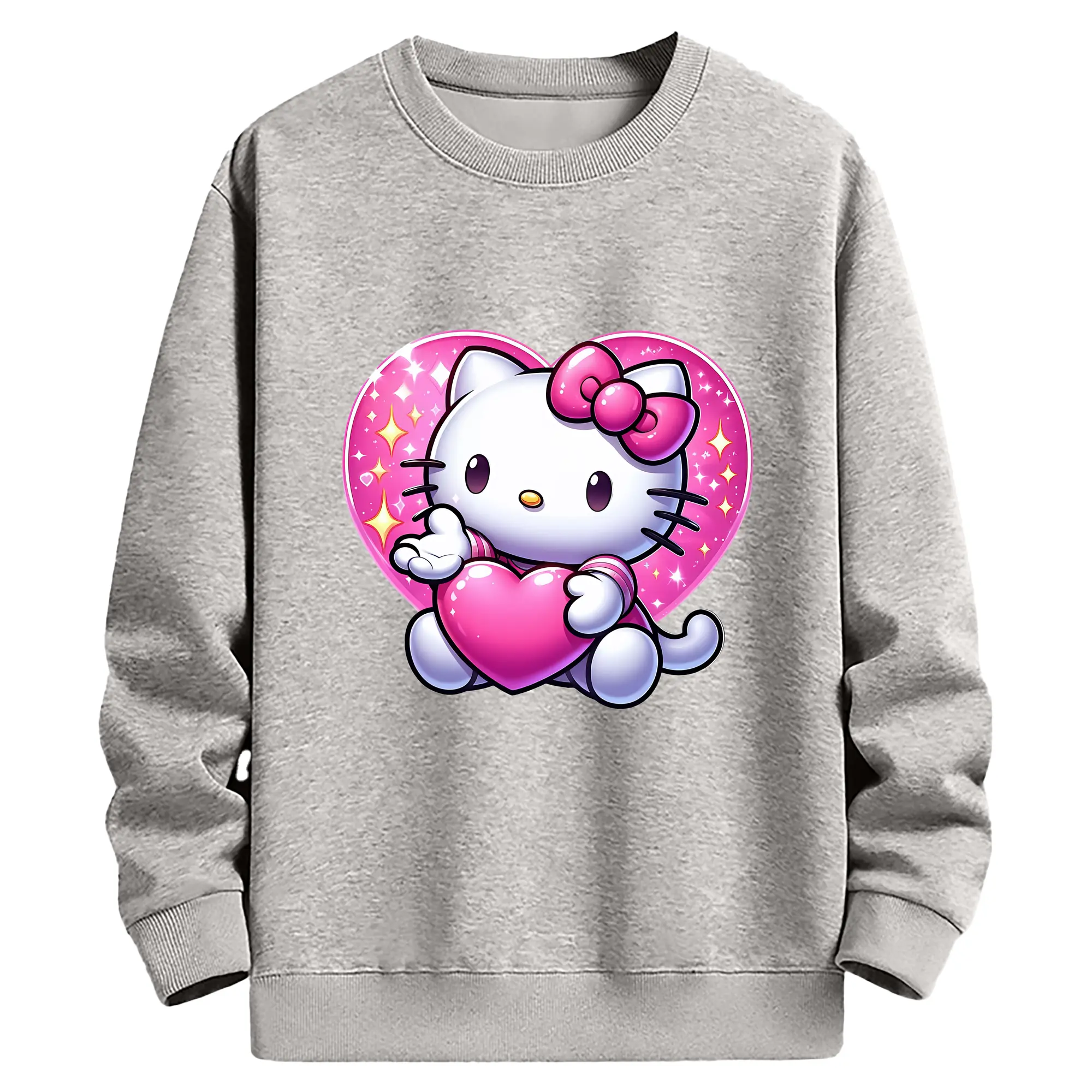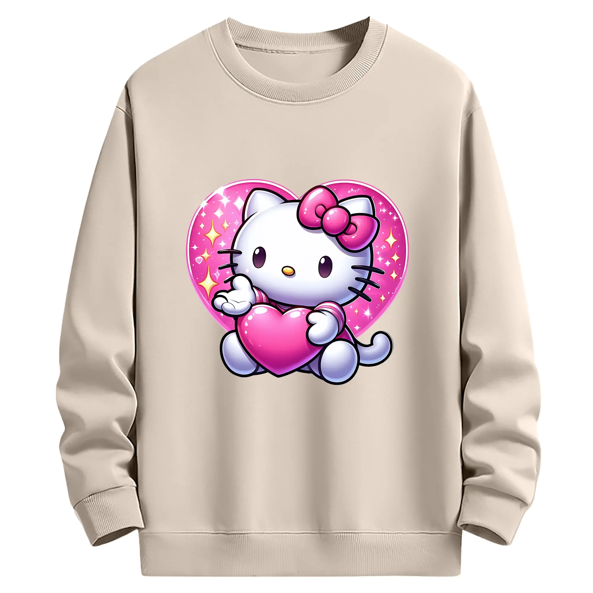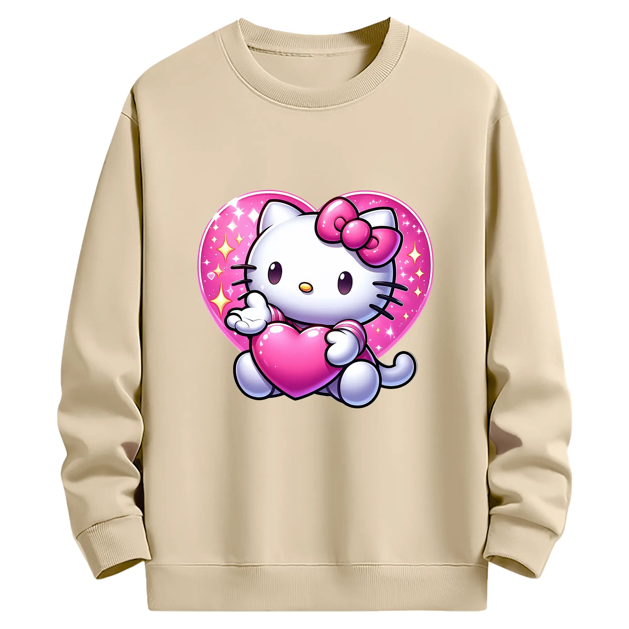 サンリオ グッズ,ハローキティ - 薄手 クルーネック スウェット 裏毛260g · ポリエステル 春秋向け カジュアル 男女兼用 · トレーナー デイリー スポーツ 散歩に最適