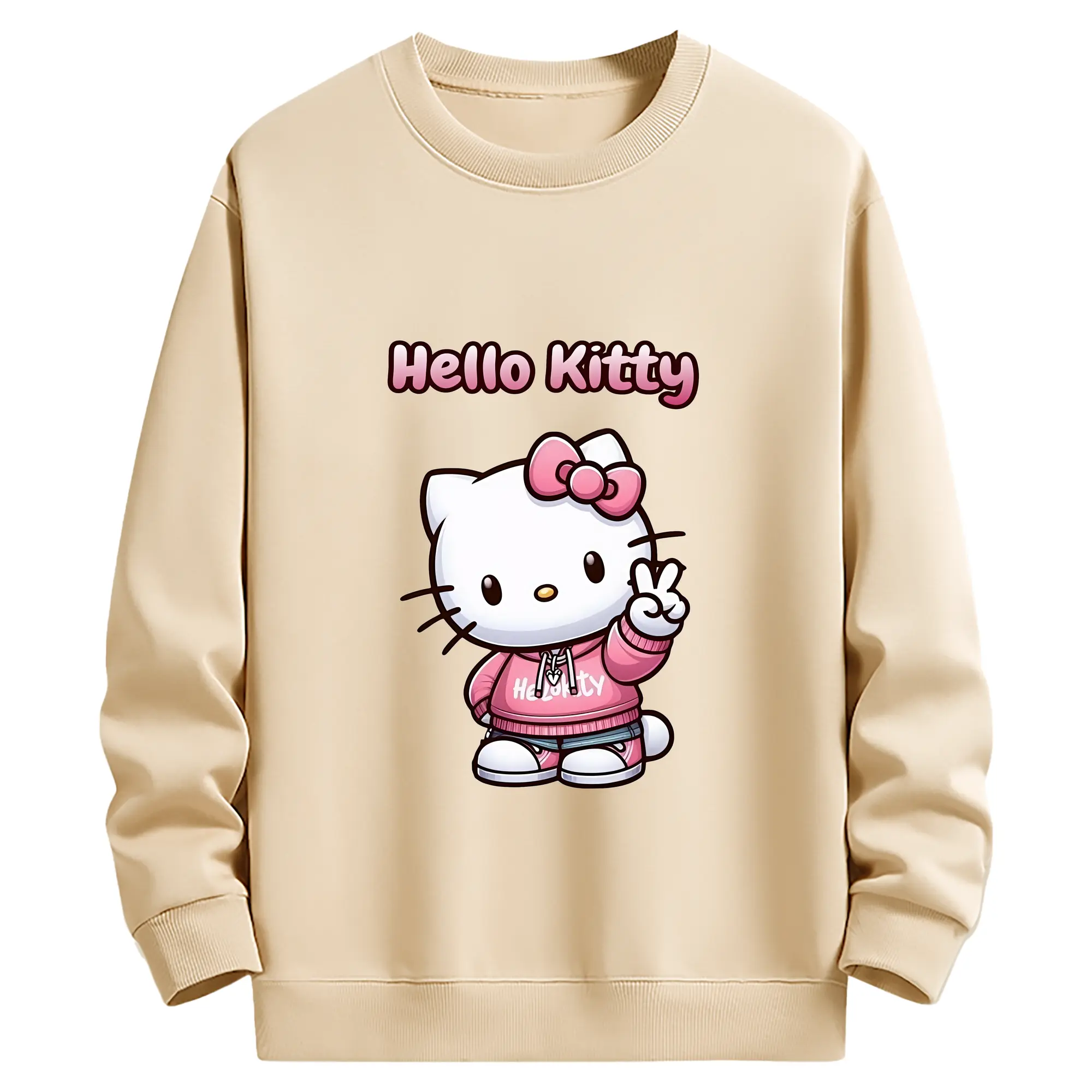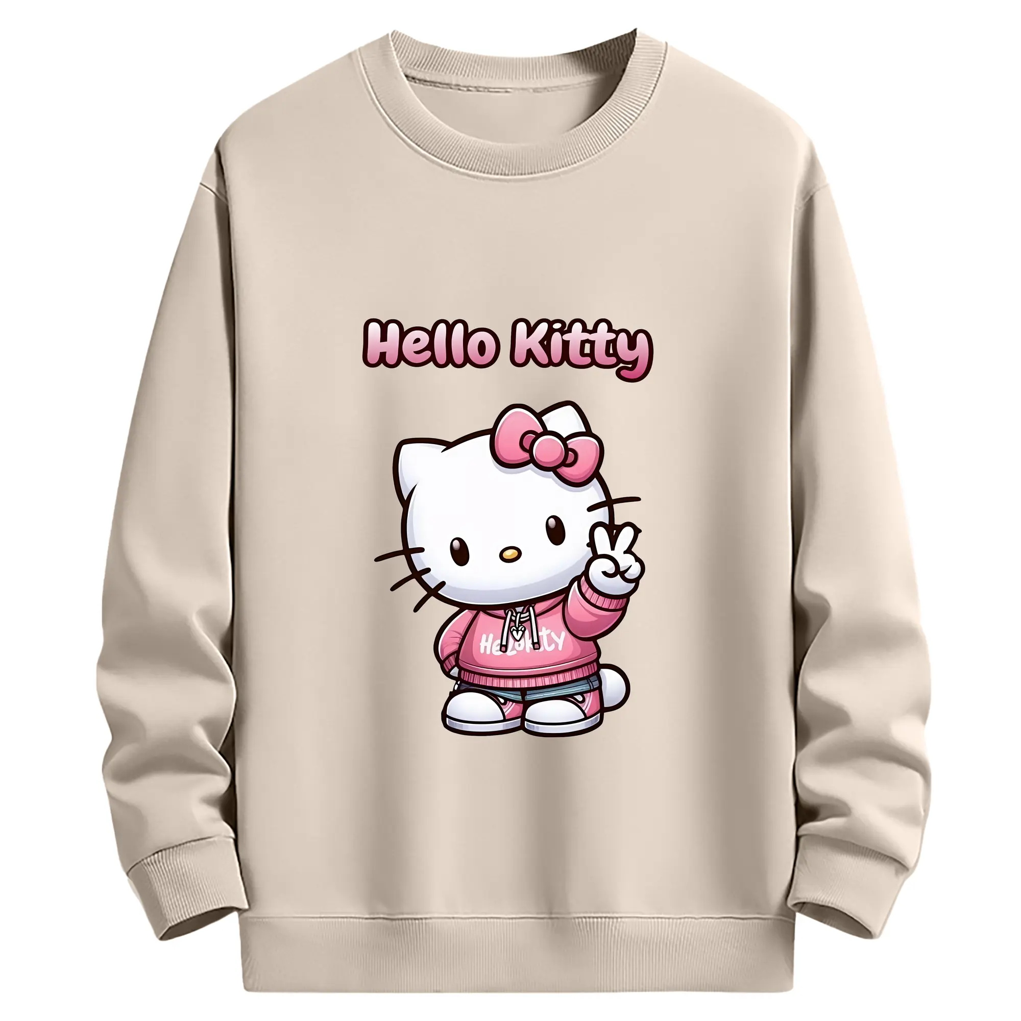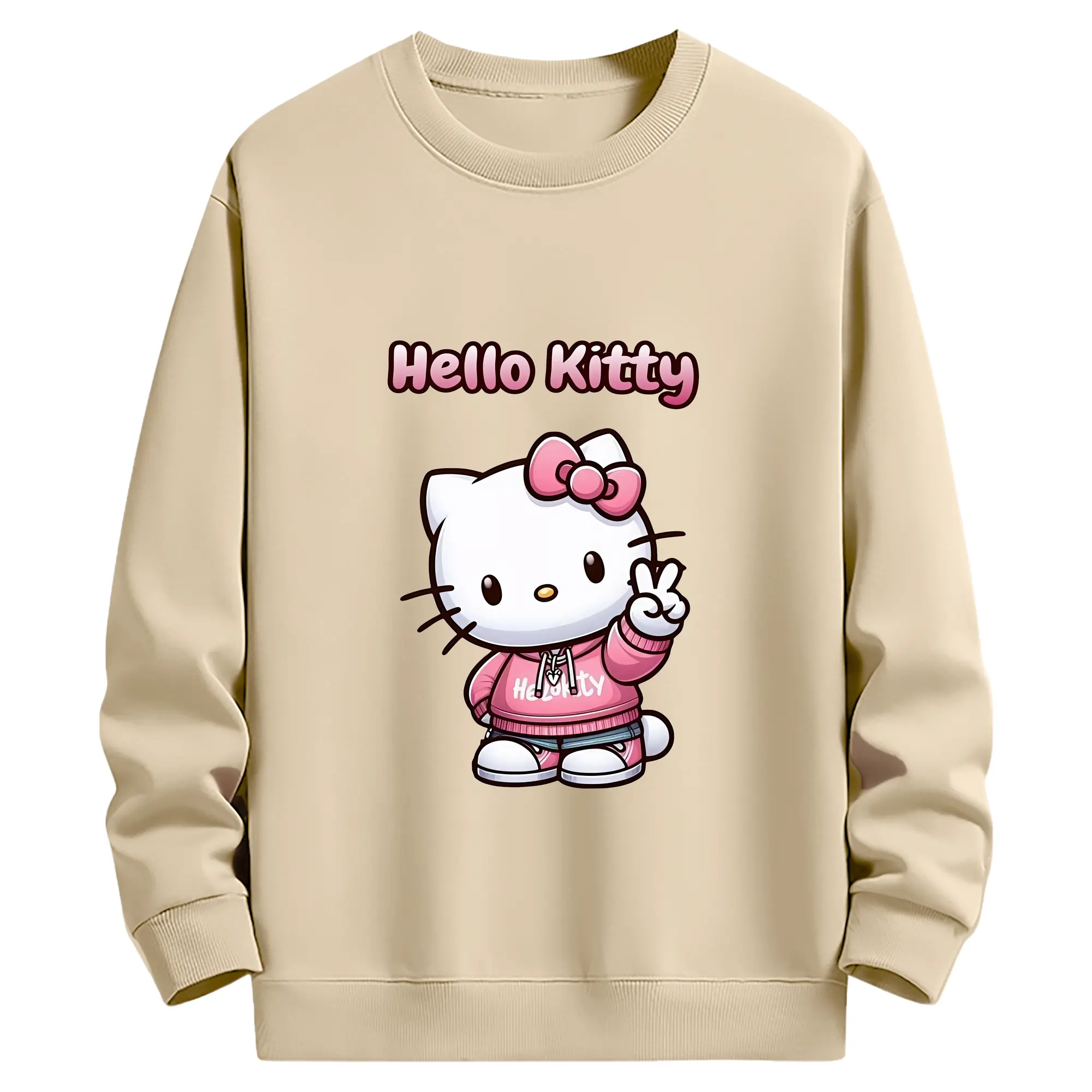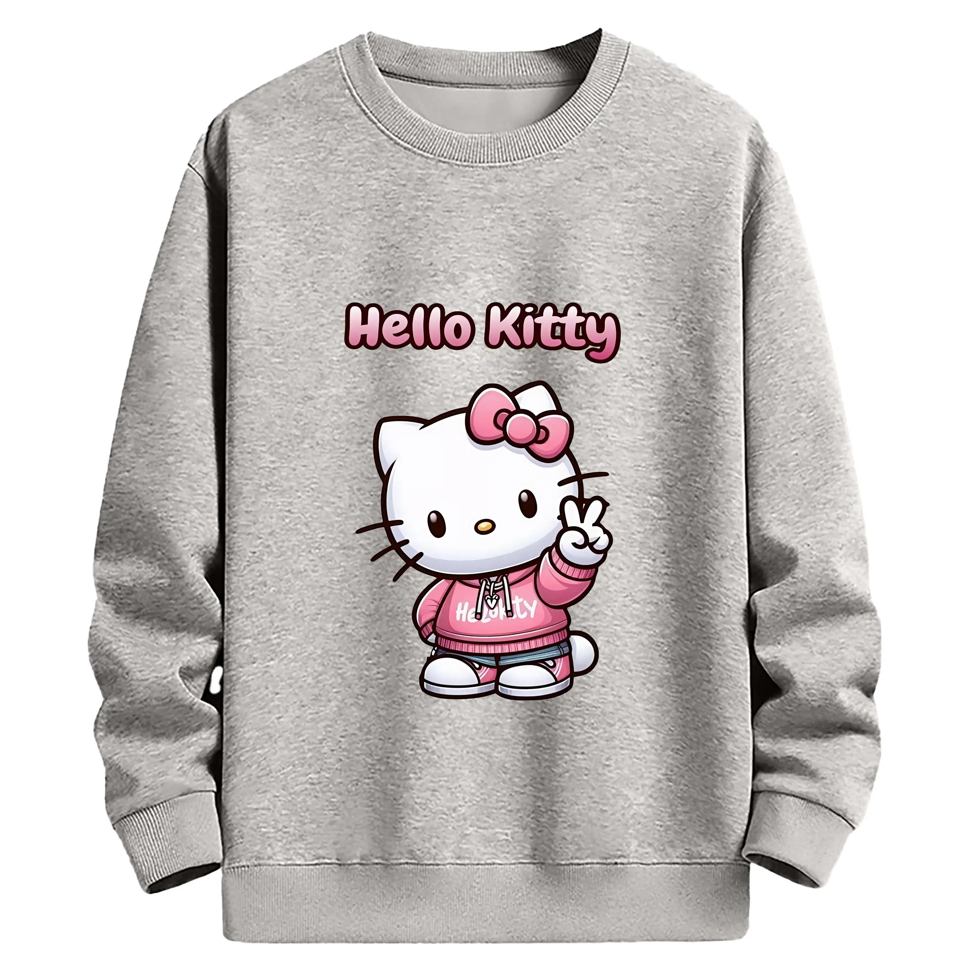 サンリオ グッズ,ハローキティ - 薄手 クルーネック スウェット 裏毛260g · ポリエステル 春秋向け カジュアル 男女兼用 · トレーナー デイリー スポーツ 散歩に最適