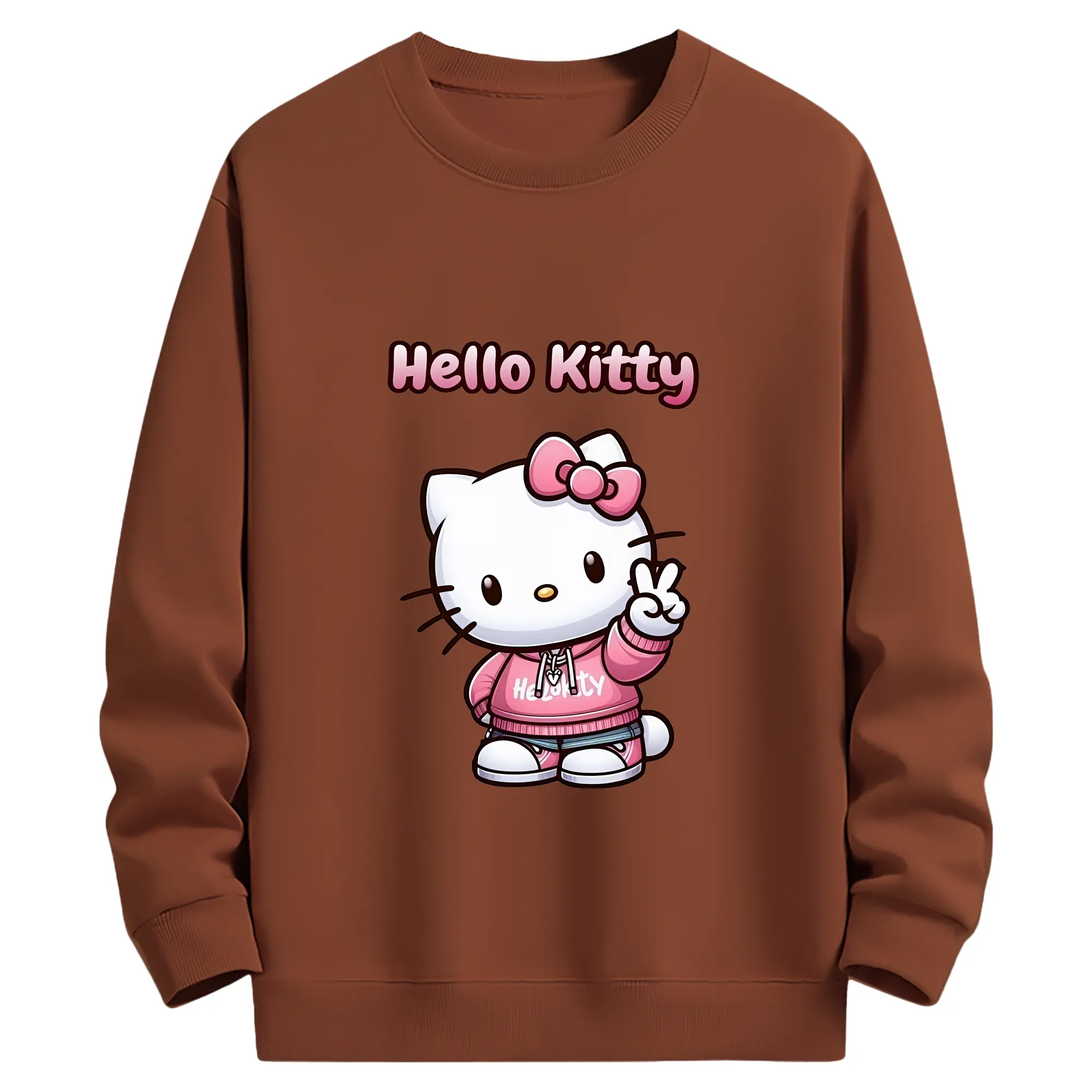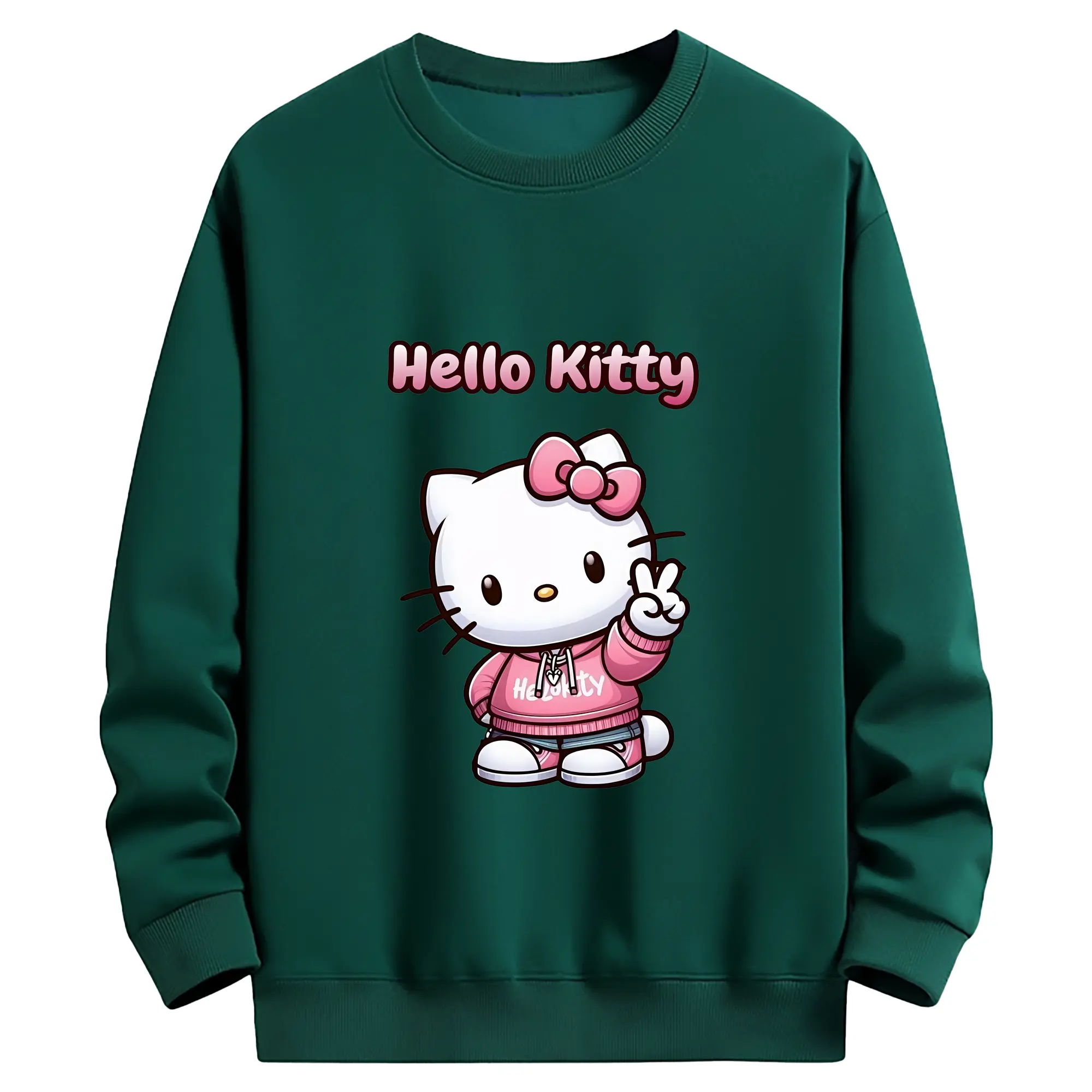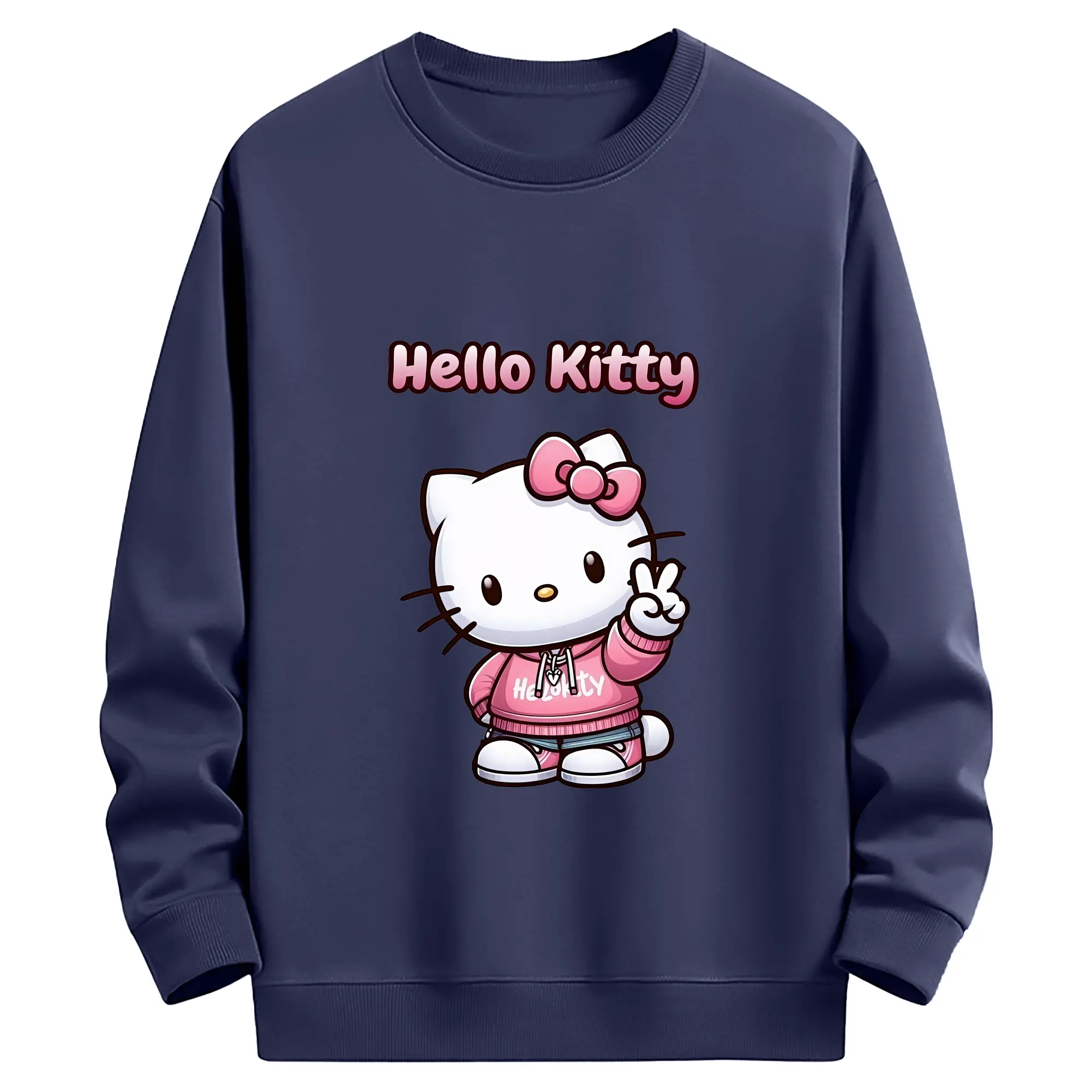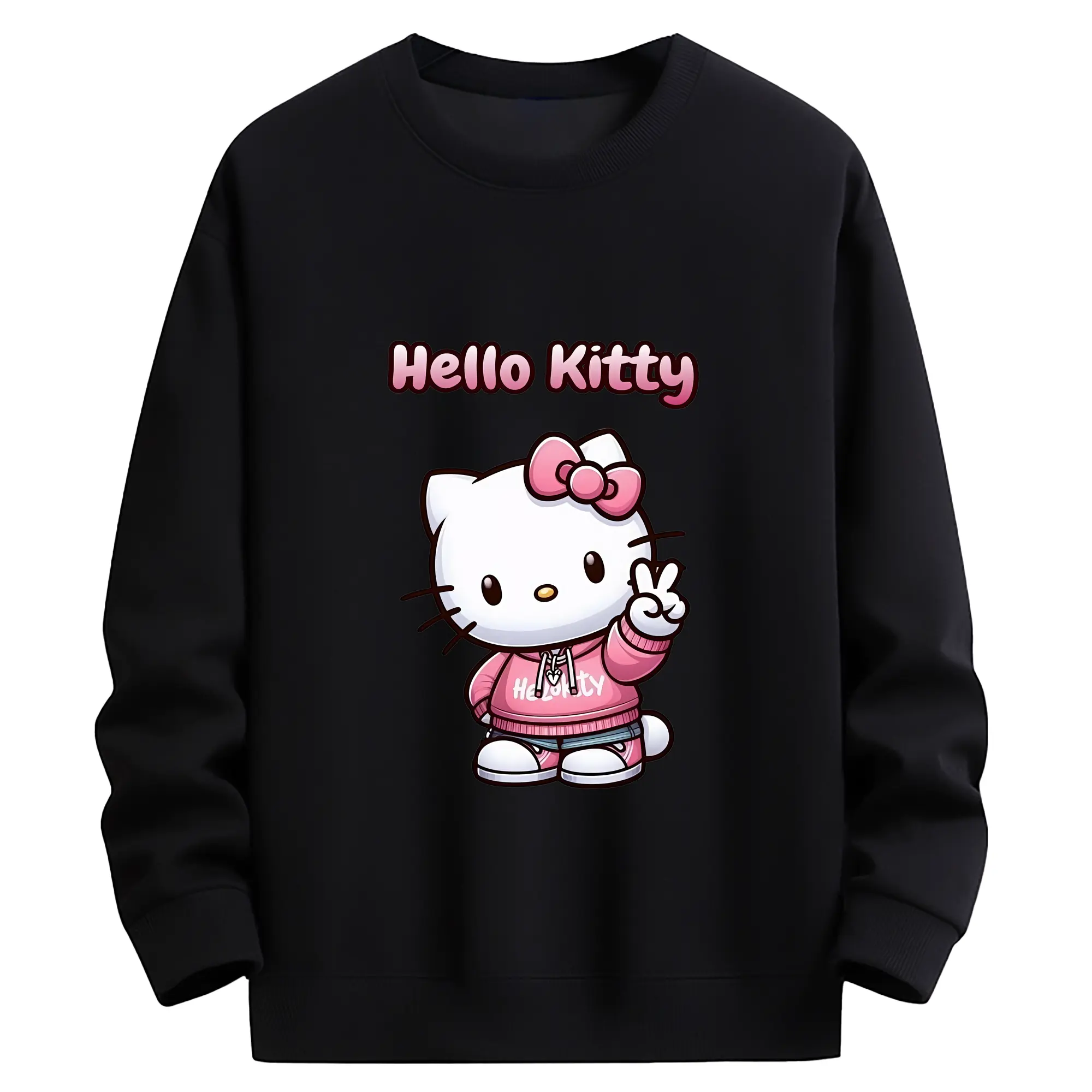 サンリオ グッズ,ハローキティ - 薄手 クルーネック スウェット 裏毛260g · ポリエステル 春秋向け カジュアル 男女兼用 · トレーナー デイリー スポーツ 散歩に最適