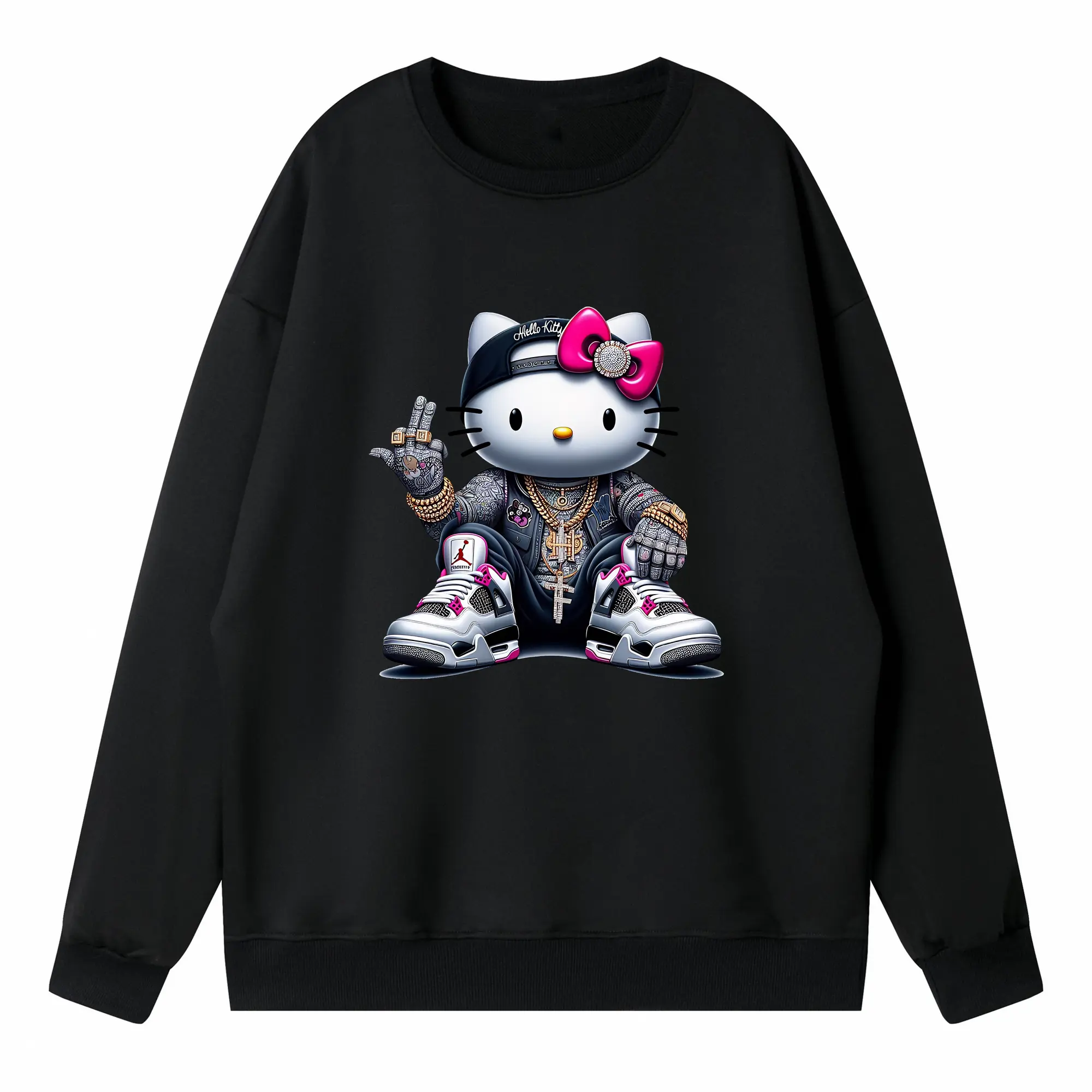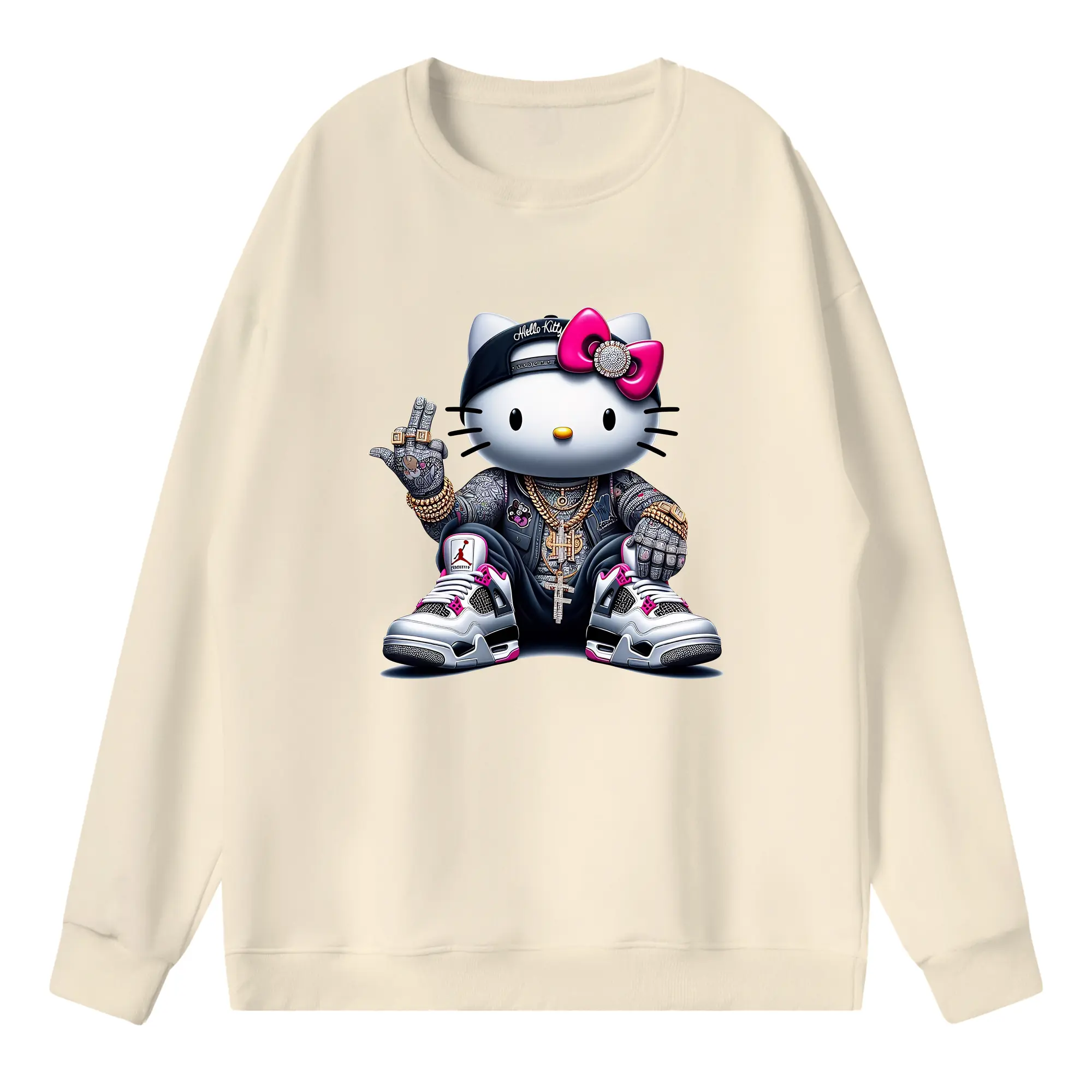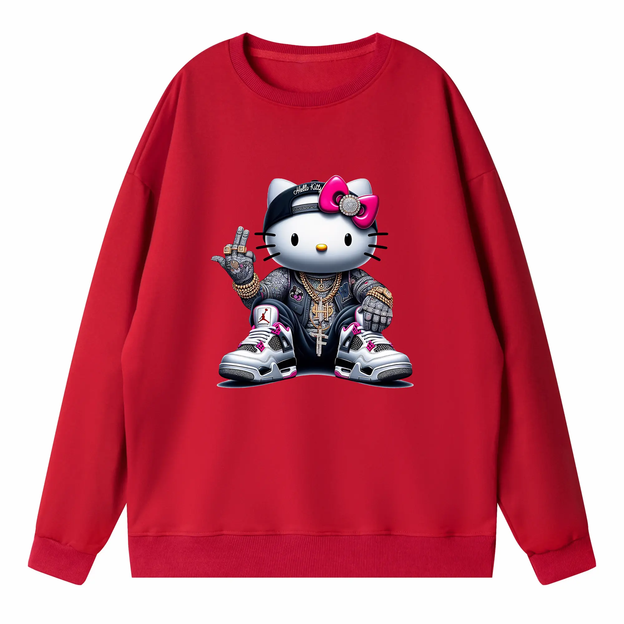 サンリオ グッズ,ハローキティ - 高品質 クルーネック スウェット ・ コットン59% ポリエステル41% ・ ユニセックス 長袖 トレーナー ・ カジュアル デイリー スポーツ 散歩用