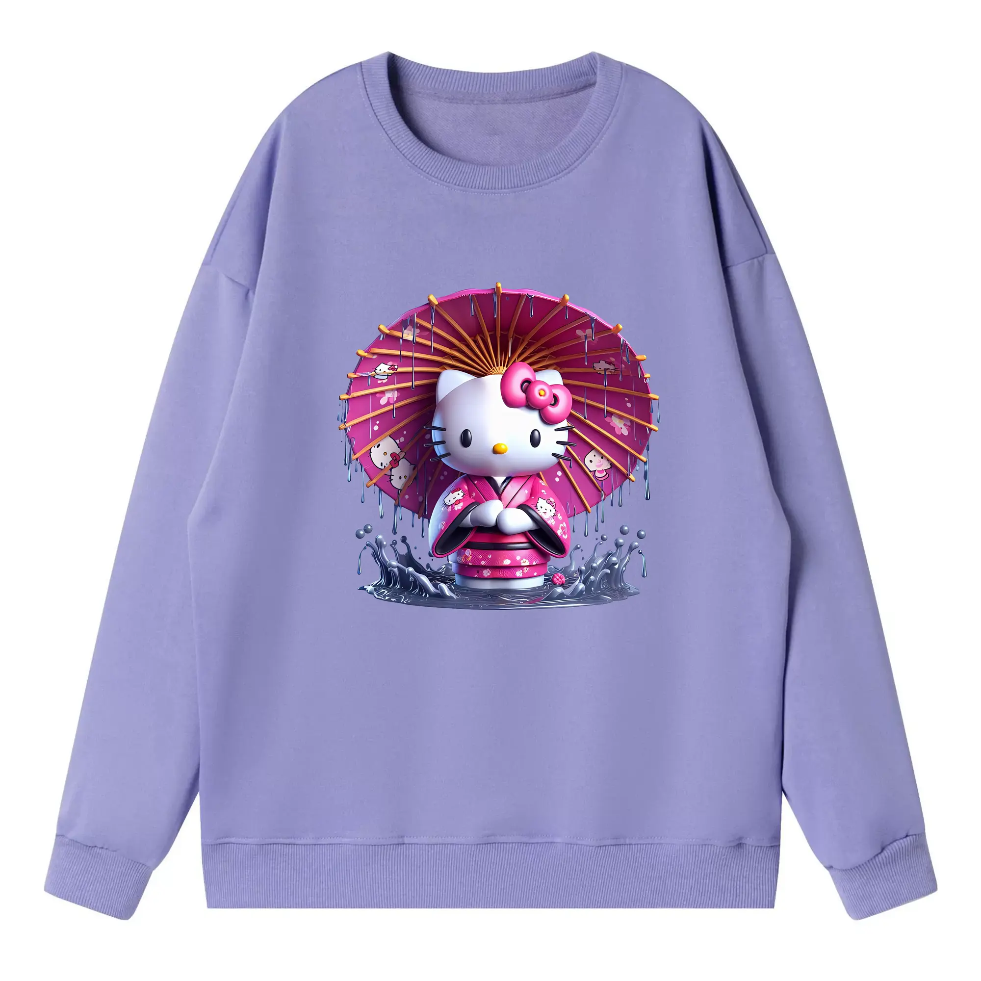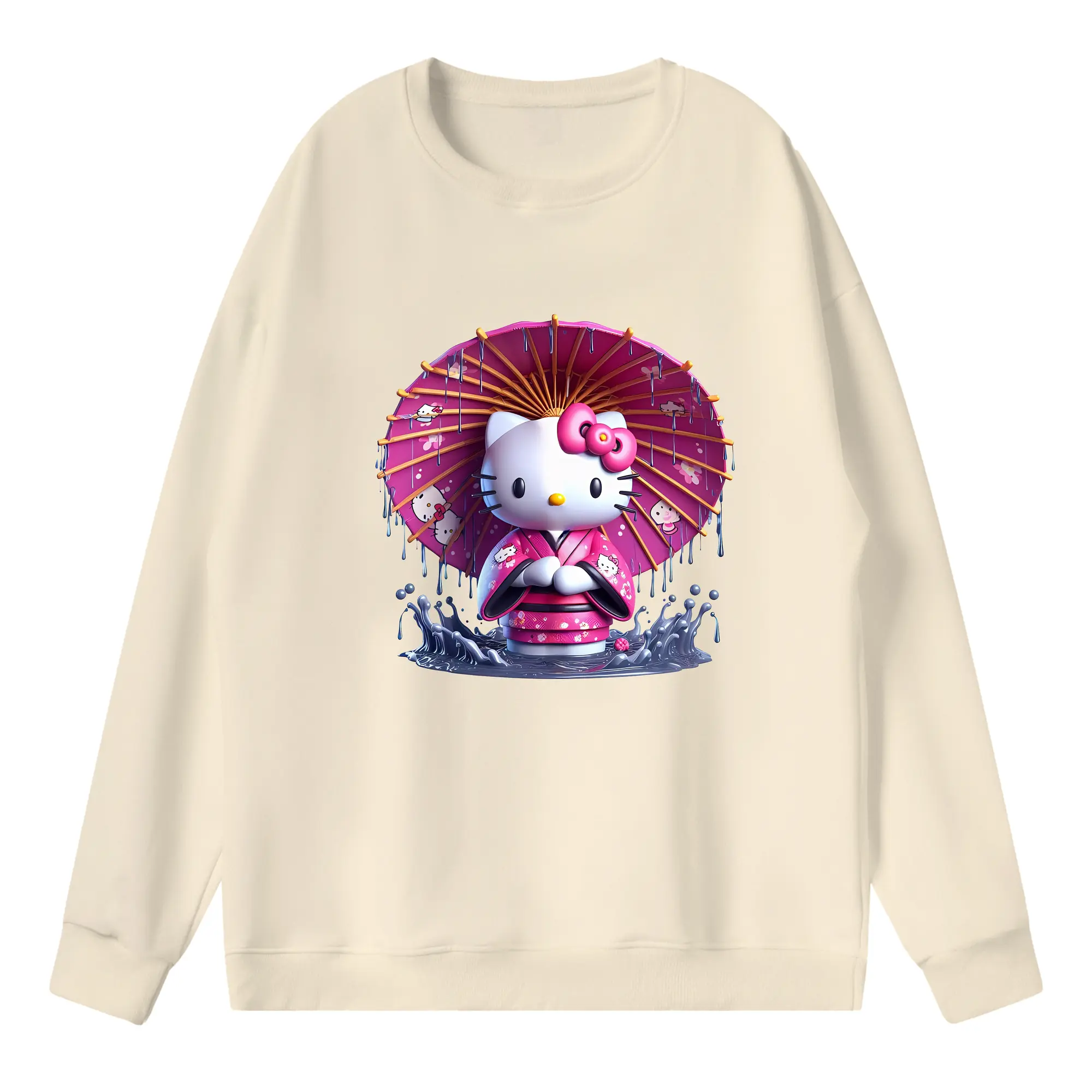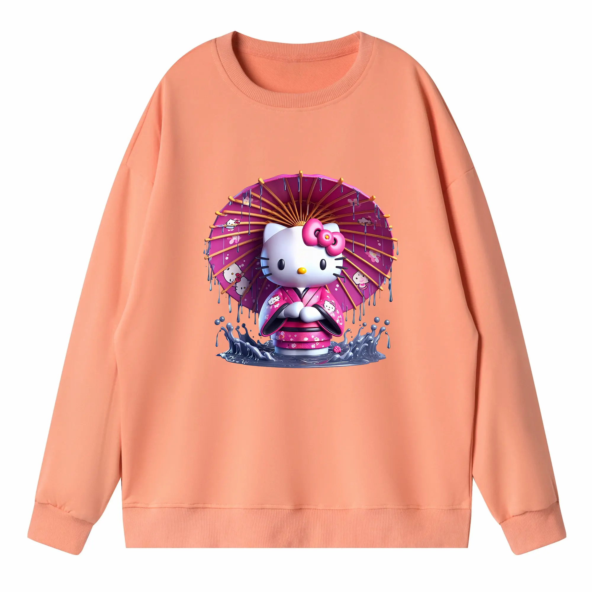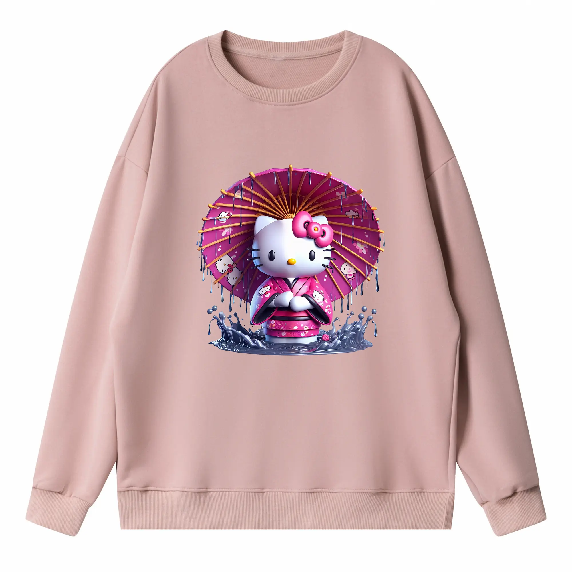 サンリオ グッズ,ハローキティ - 薄手 クルーネック スウェット 裏毛260g · ポリエステル 春秋向け カジュアル 男女兼用 · トレーナー デイリー スポーツ 散歩に最適