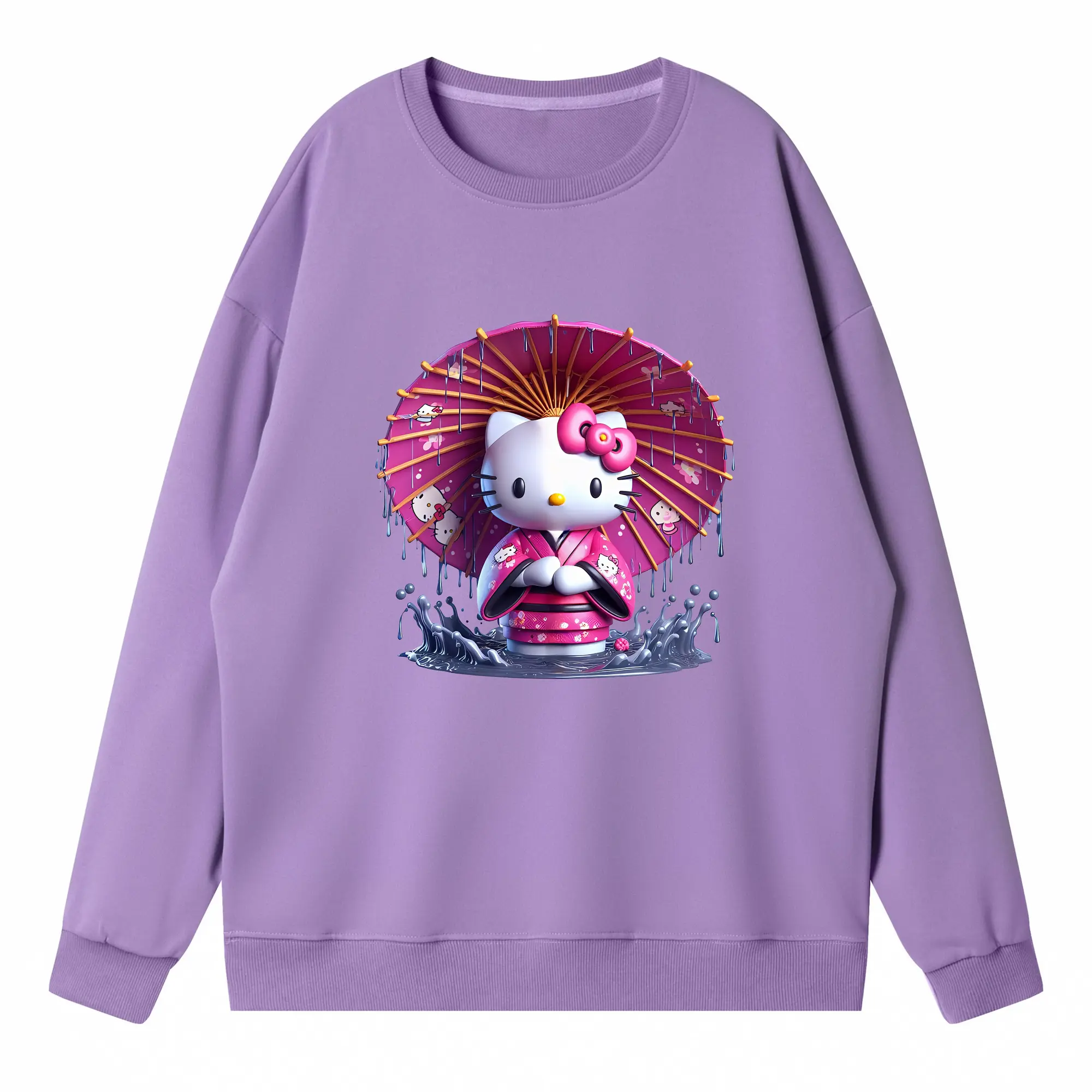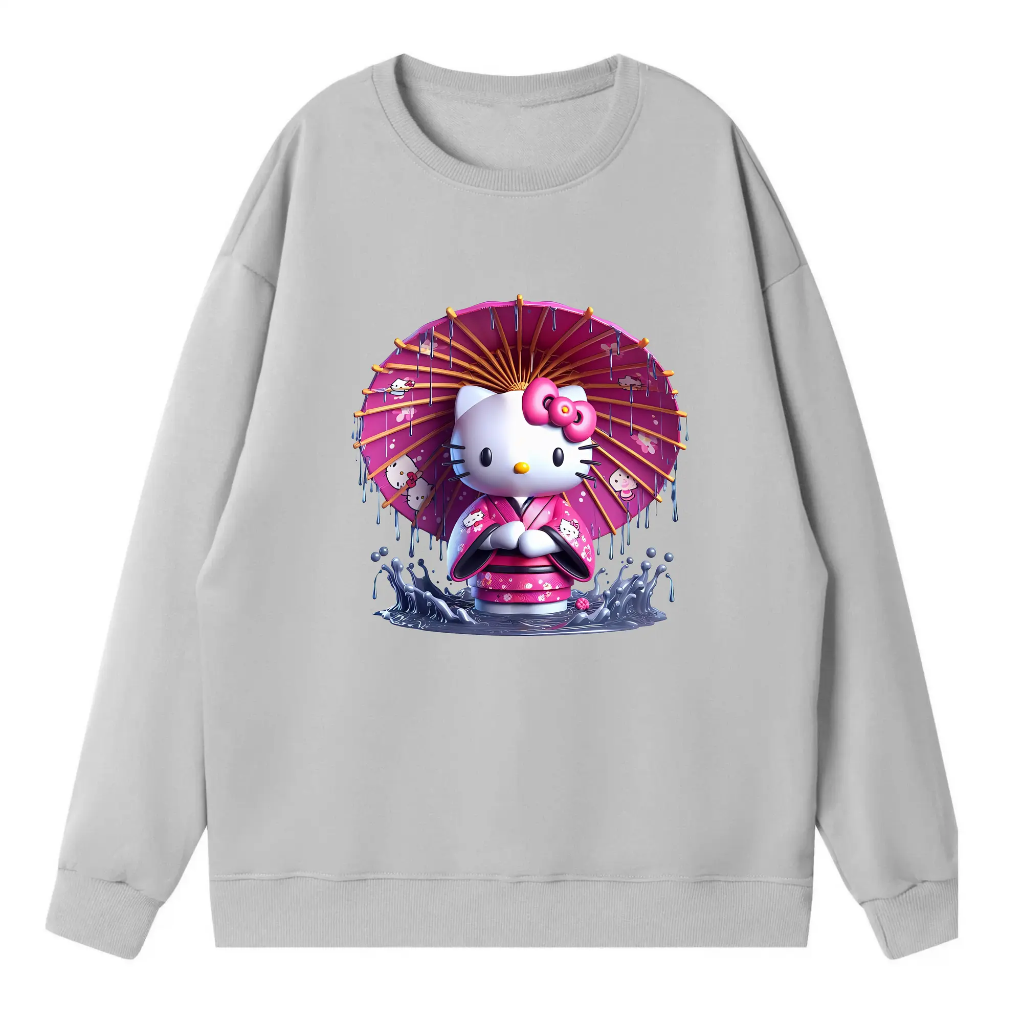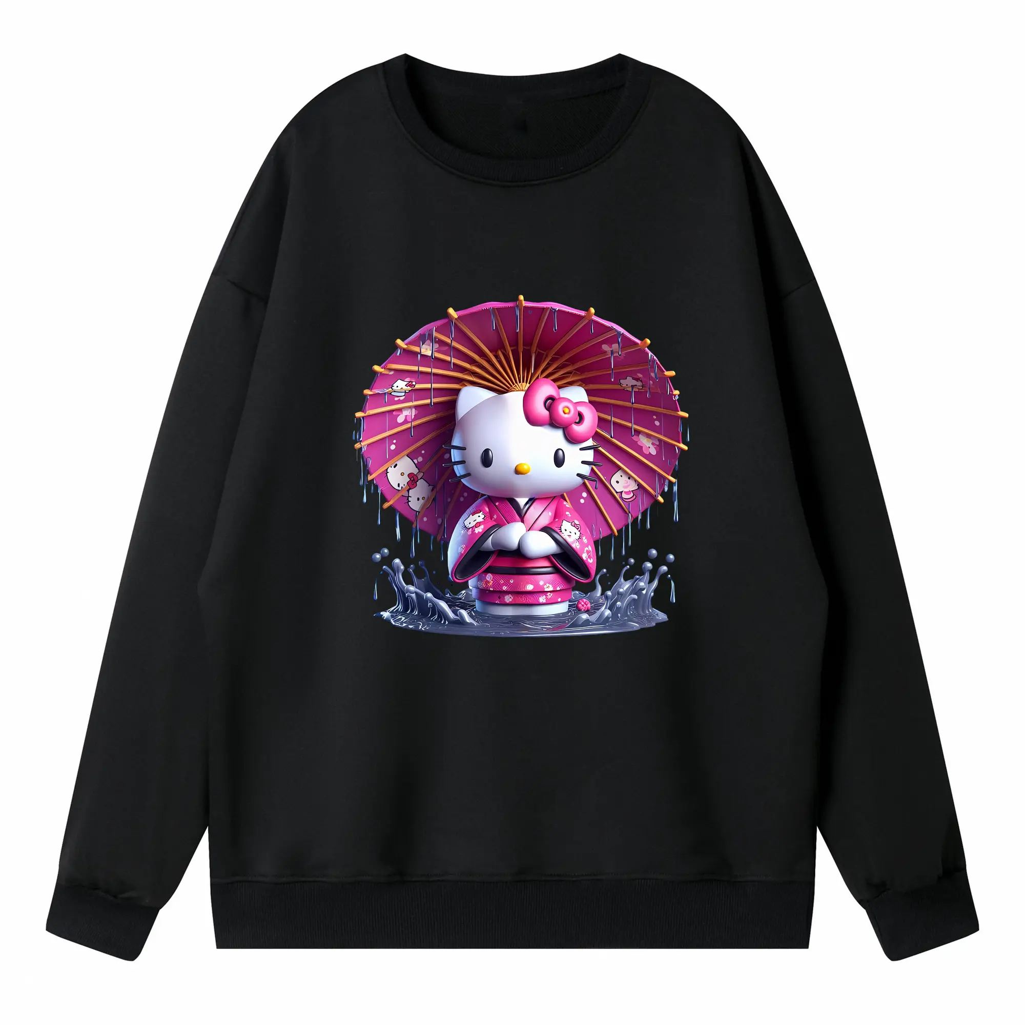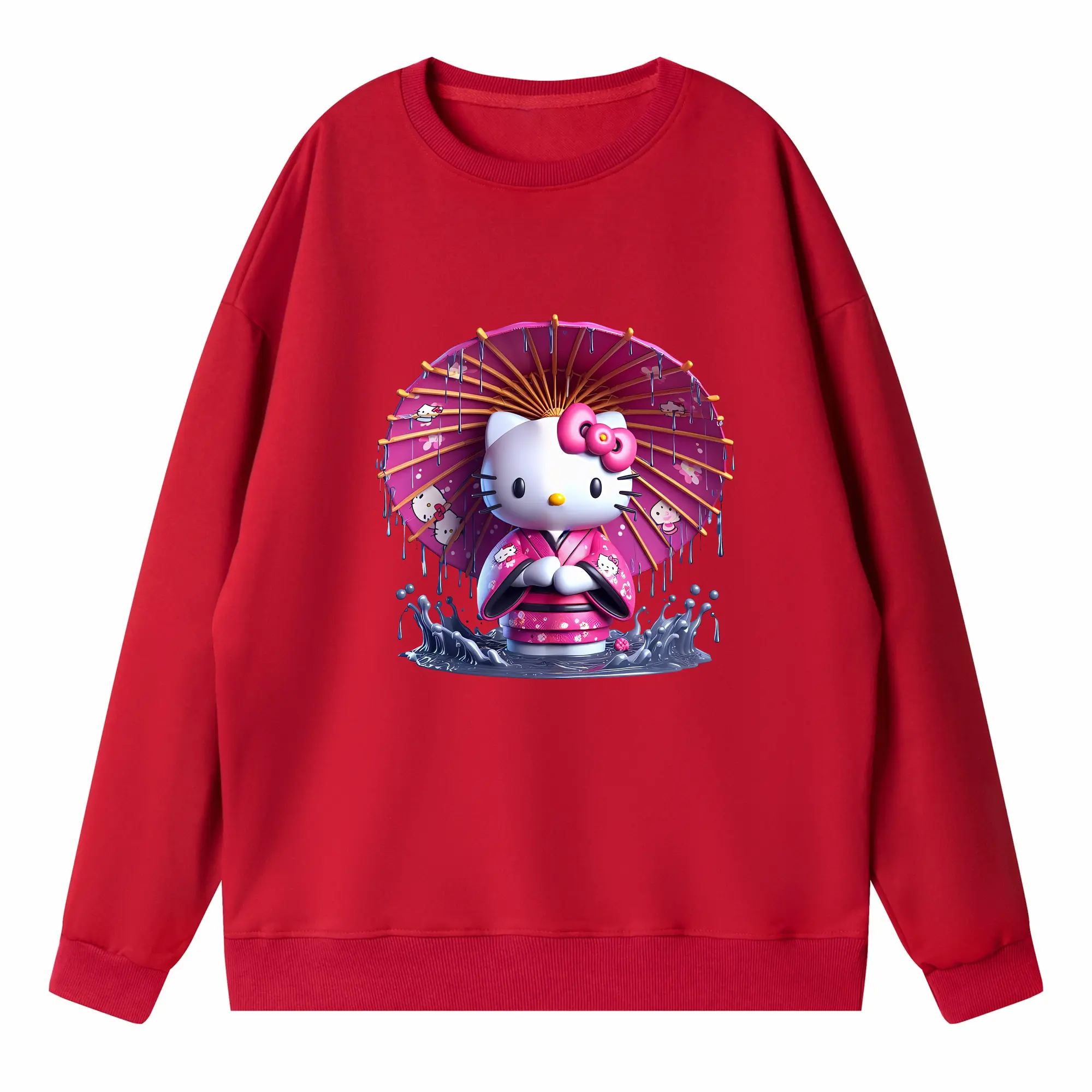 サンリオ グッズ,ハローキティ - 薄手 クルーネック スウェット 裏毛260g · ポリエステル 春秋向け カジュアル 男女兼用 · トレーナー デイリー スポーツ 散歩に最適
