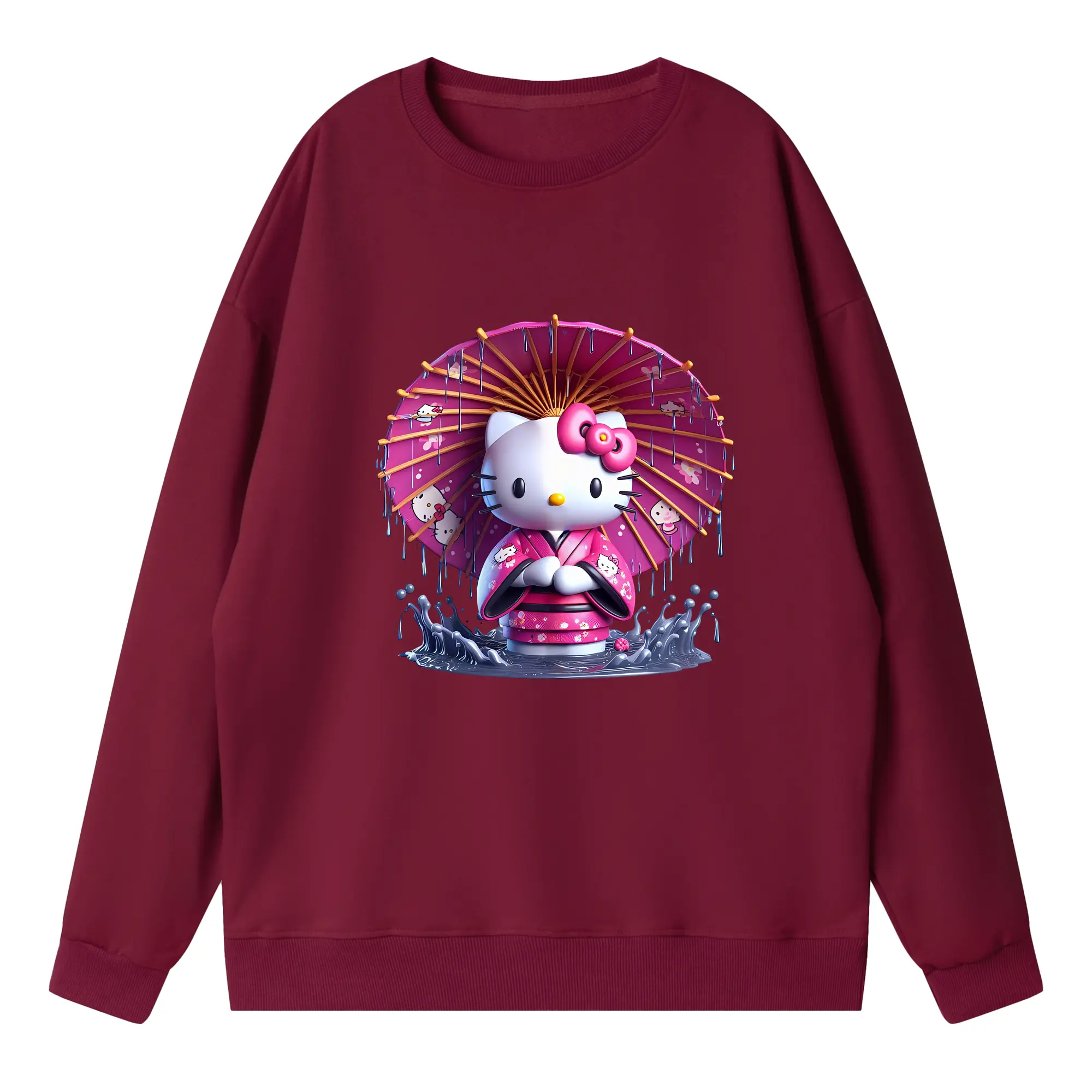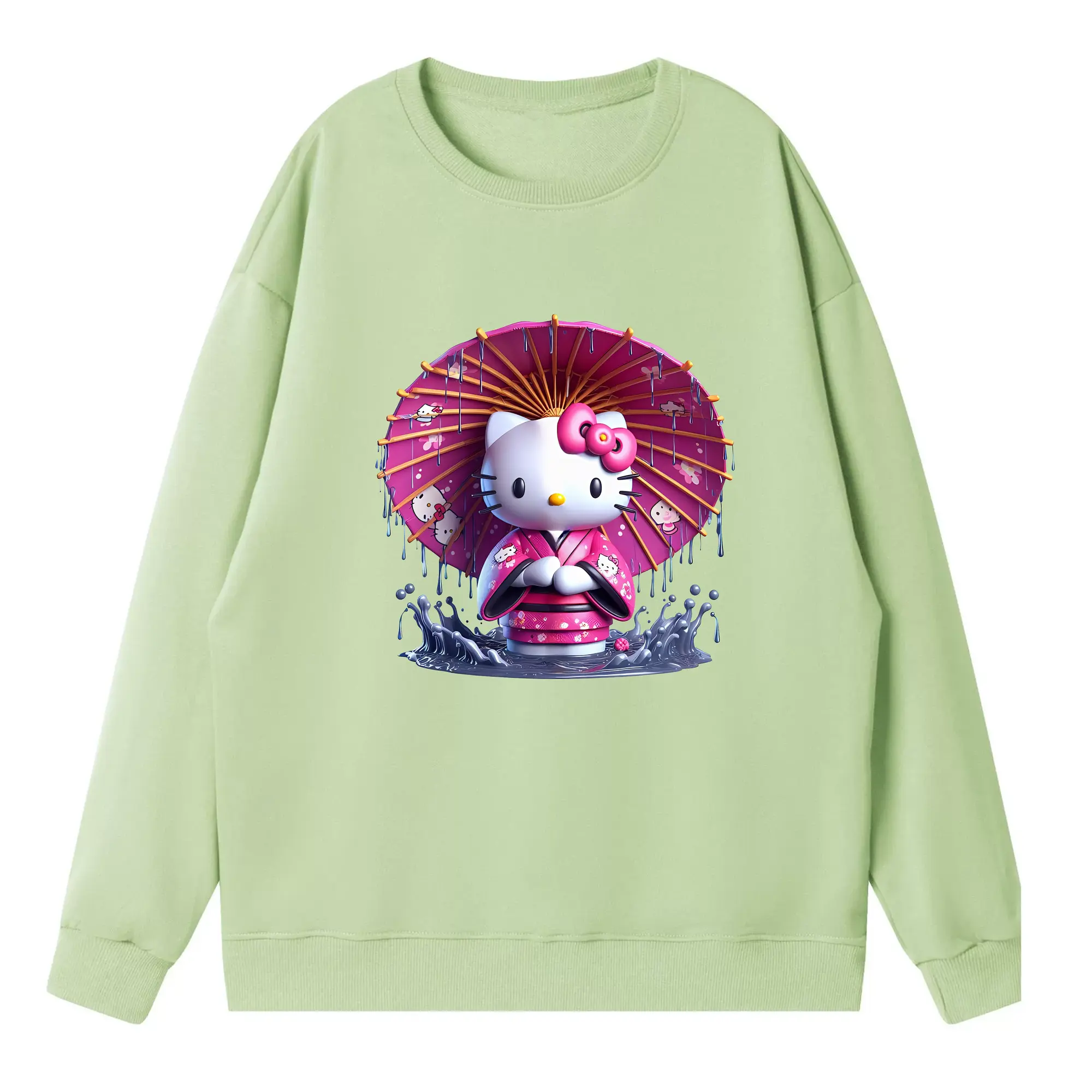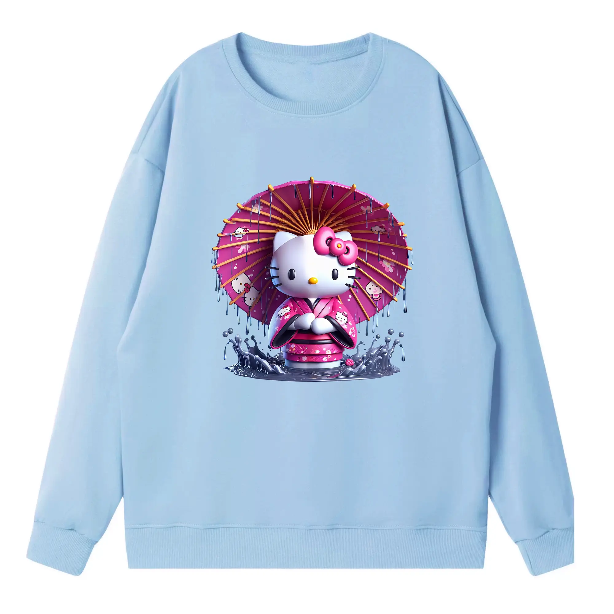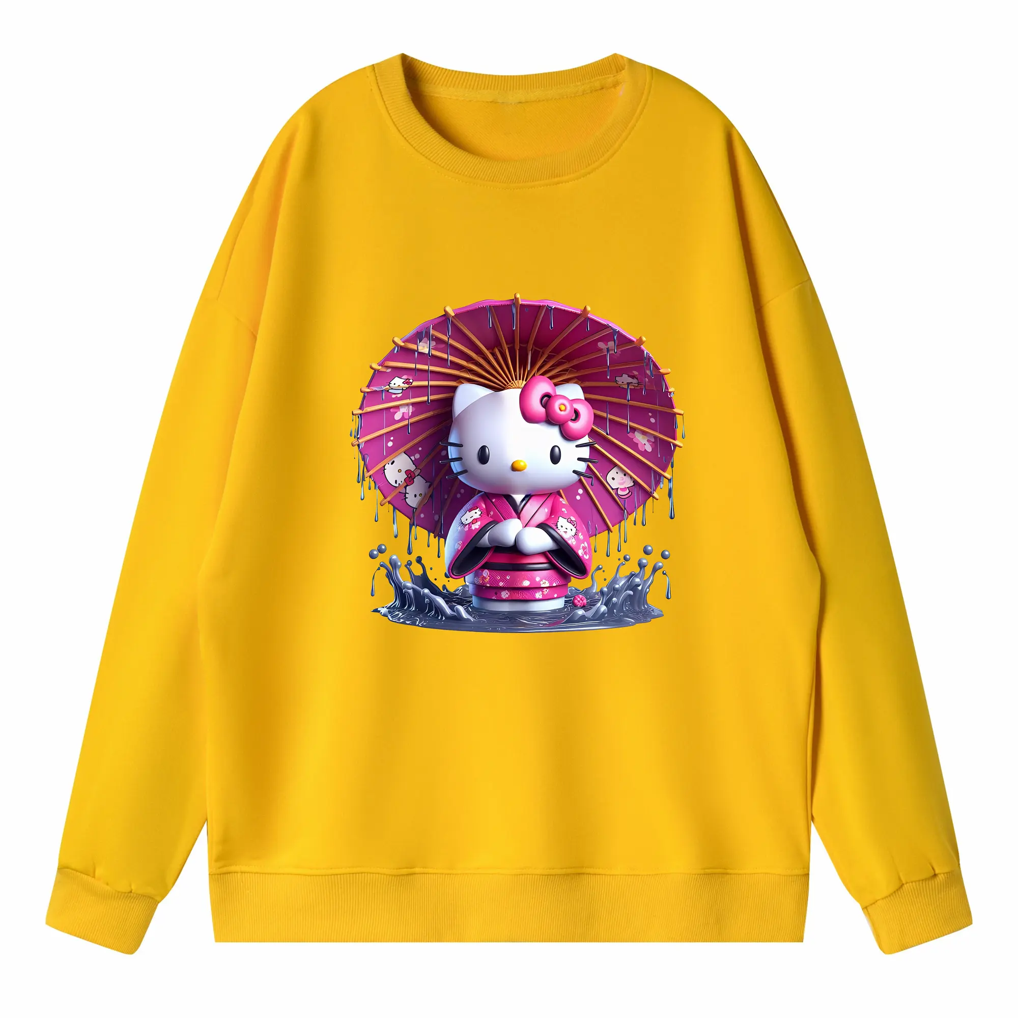 サンリオ グッズ,ハローキティ - 薄手 クルーネック スウェット 裏毛260g · ポリエステル 春秋向け カジュアル 男女兼用 · トレーナー デイリー スポーツ 散歩に最適