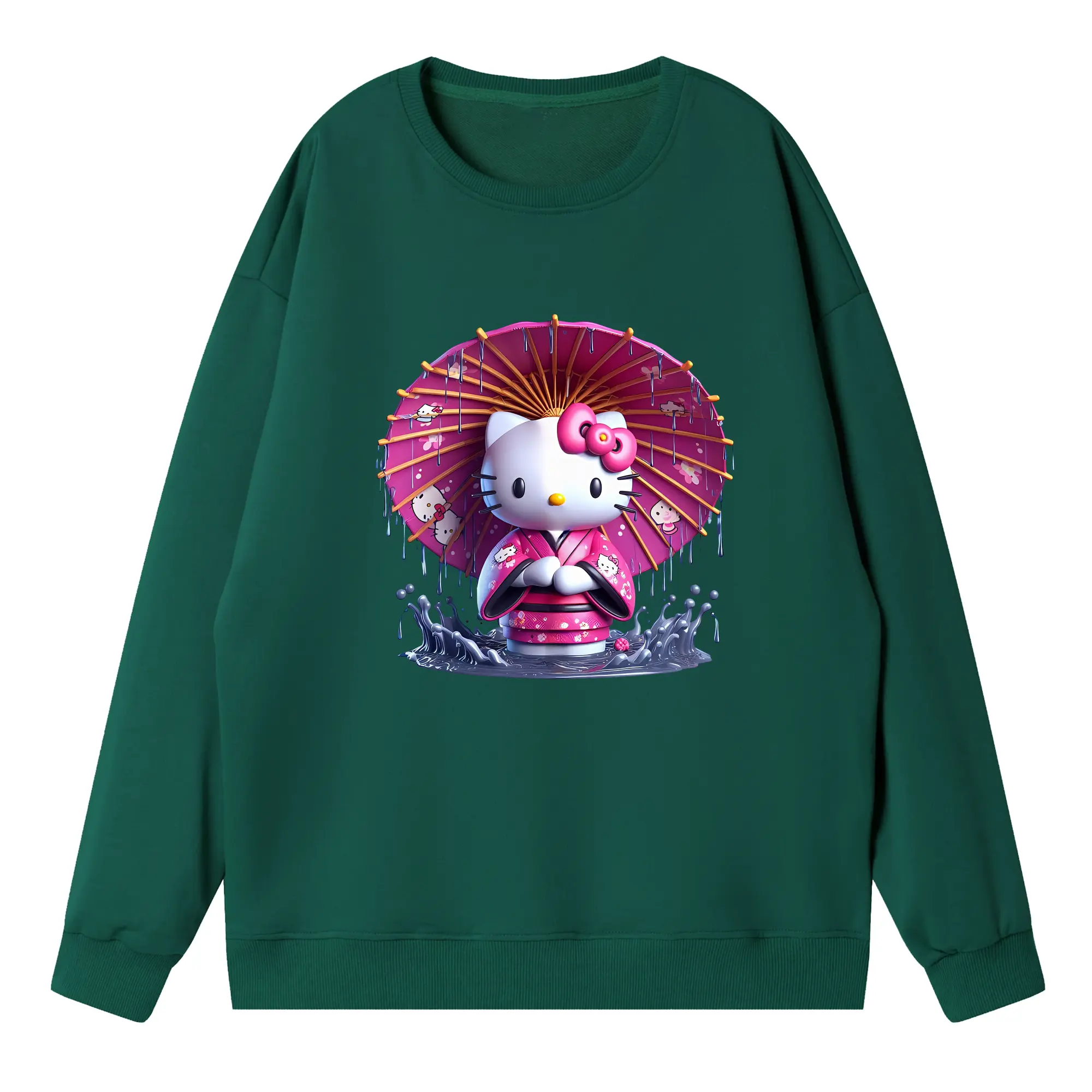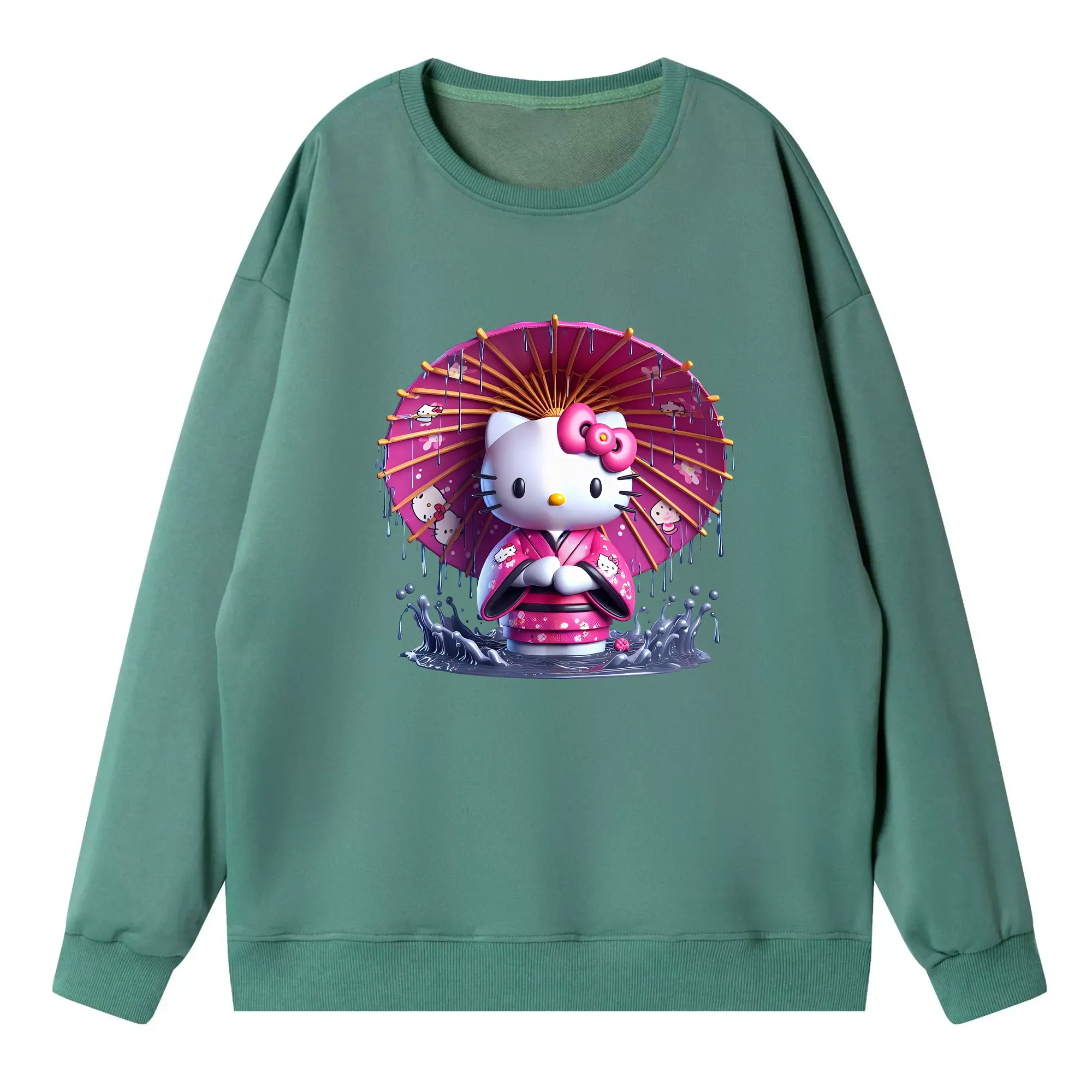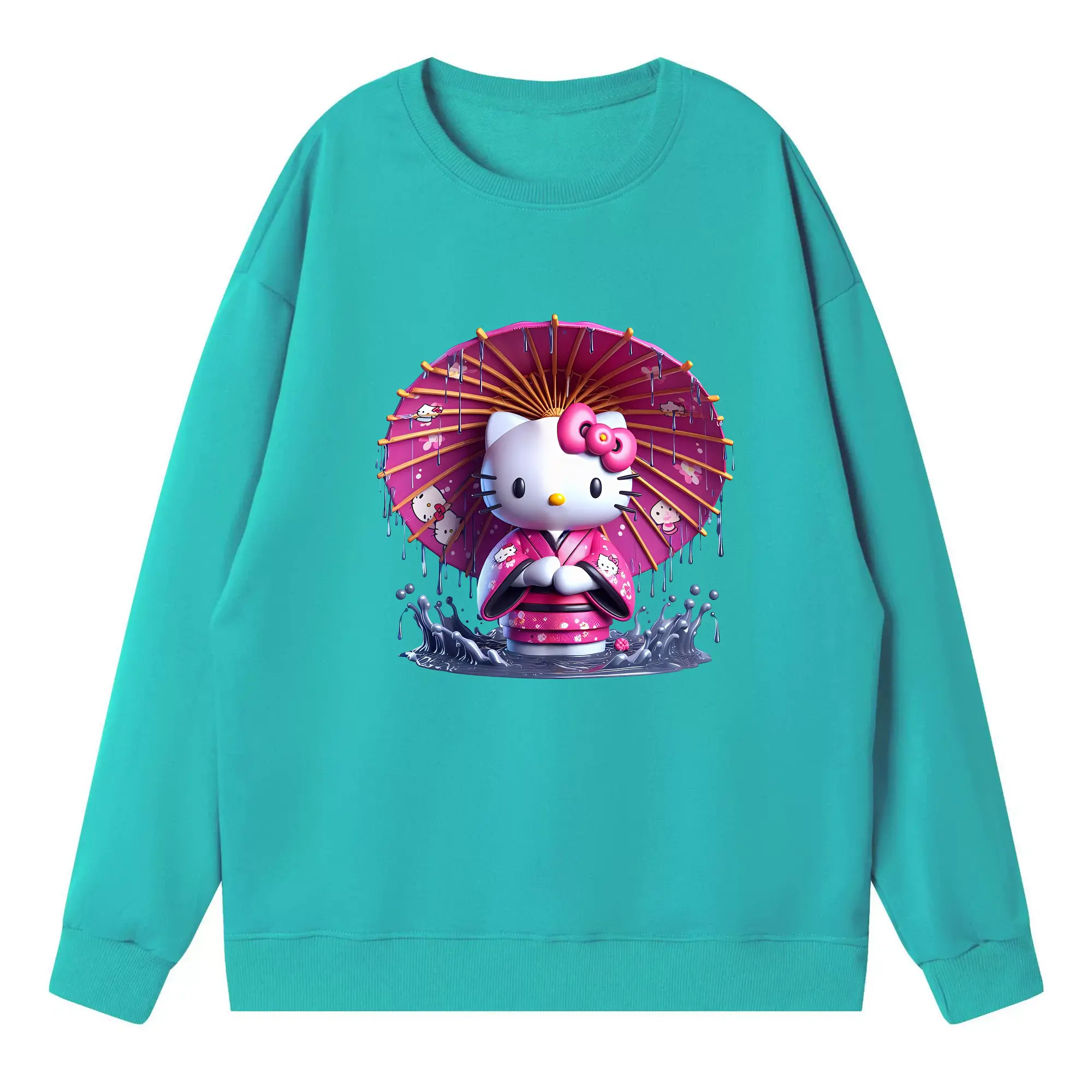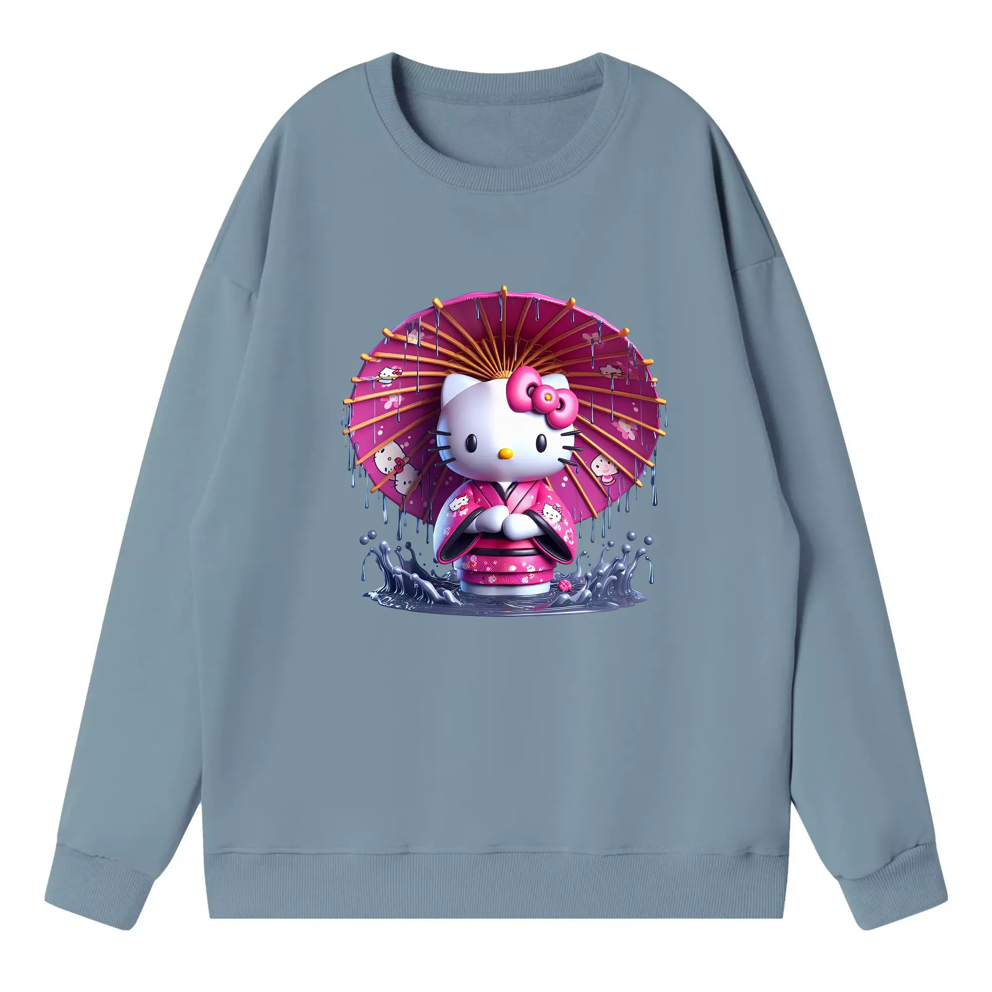 サンリオ グッズ,ハローキティ - 薄手 クルーネック スウェット 裏毛260g · ポリエステル 春秋向け カジュアル 男女兼用 · トレーナー デイリー スポーツ 散歩に最適