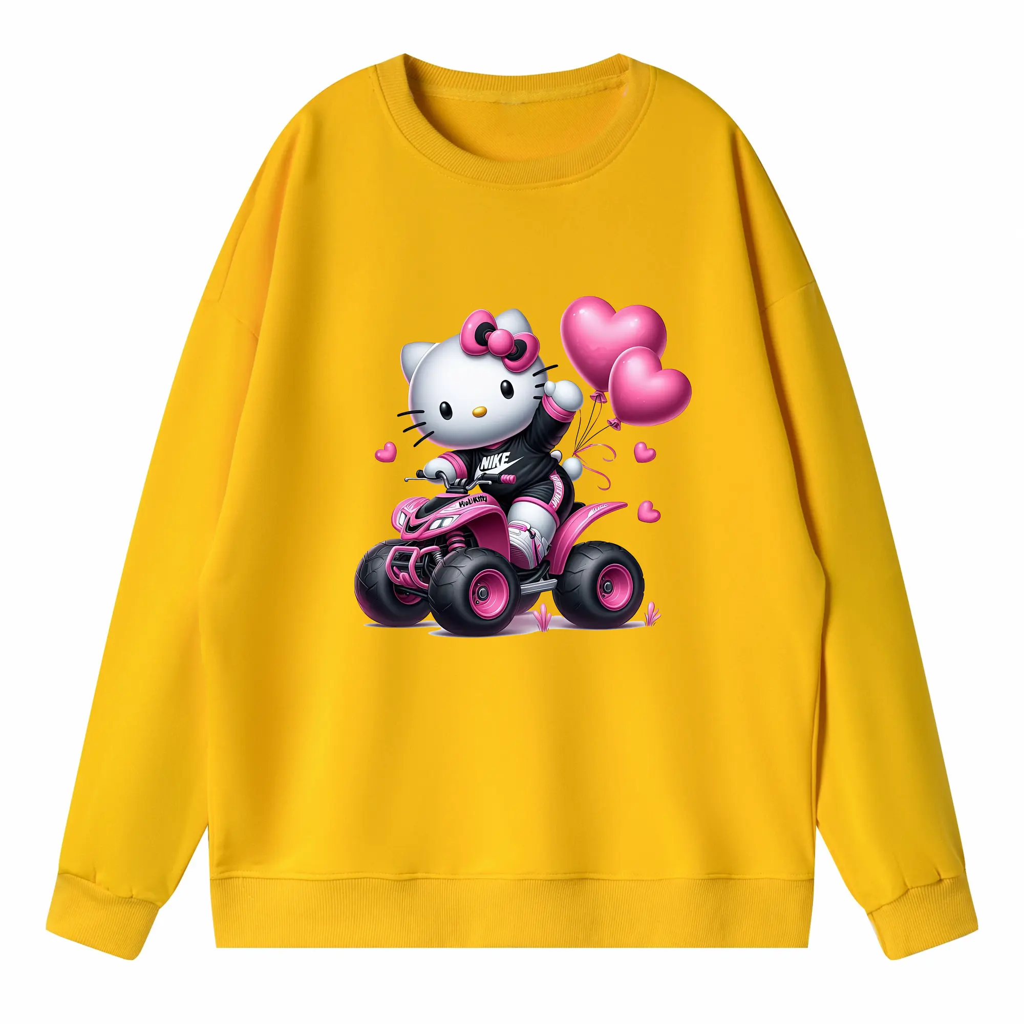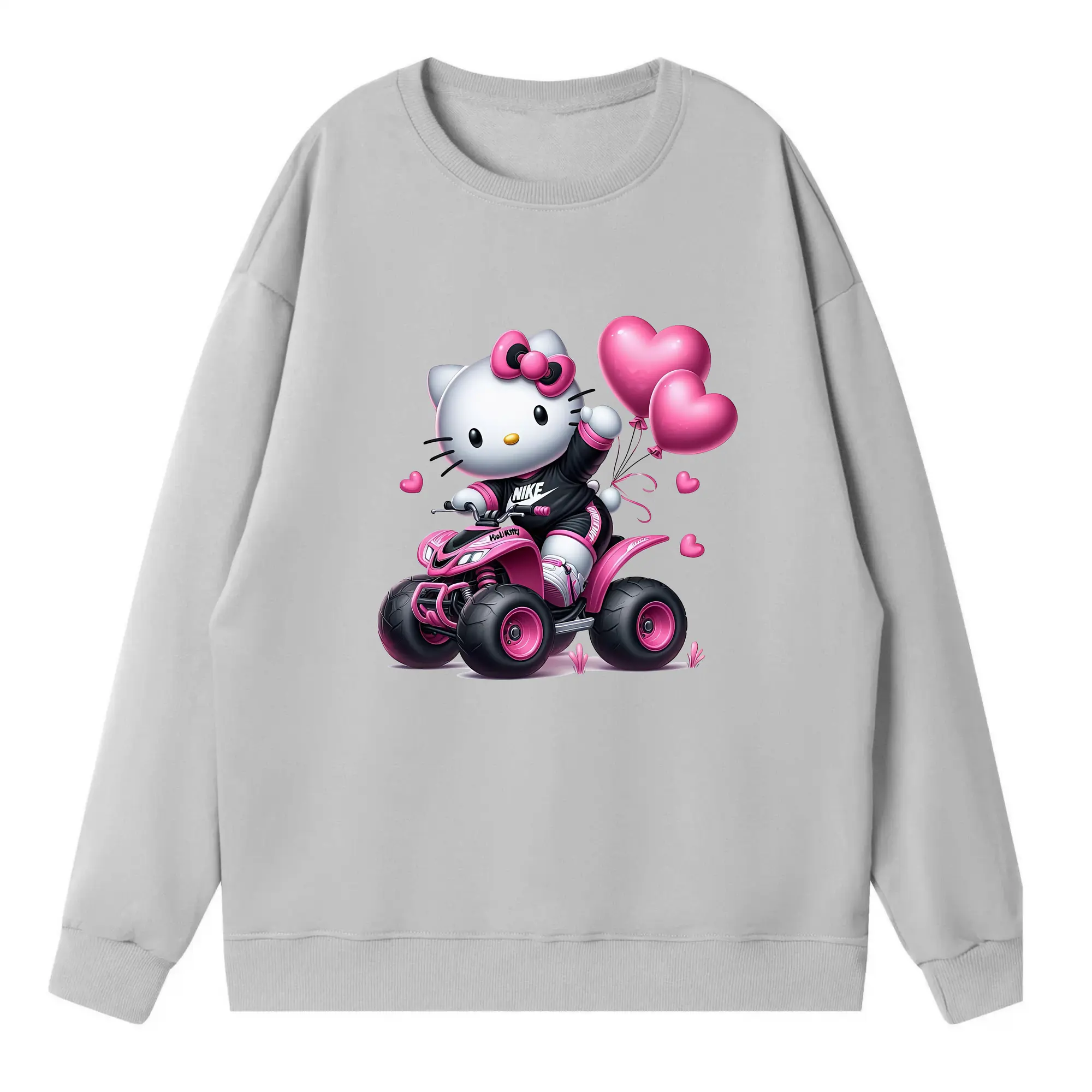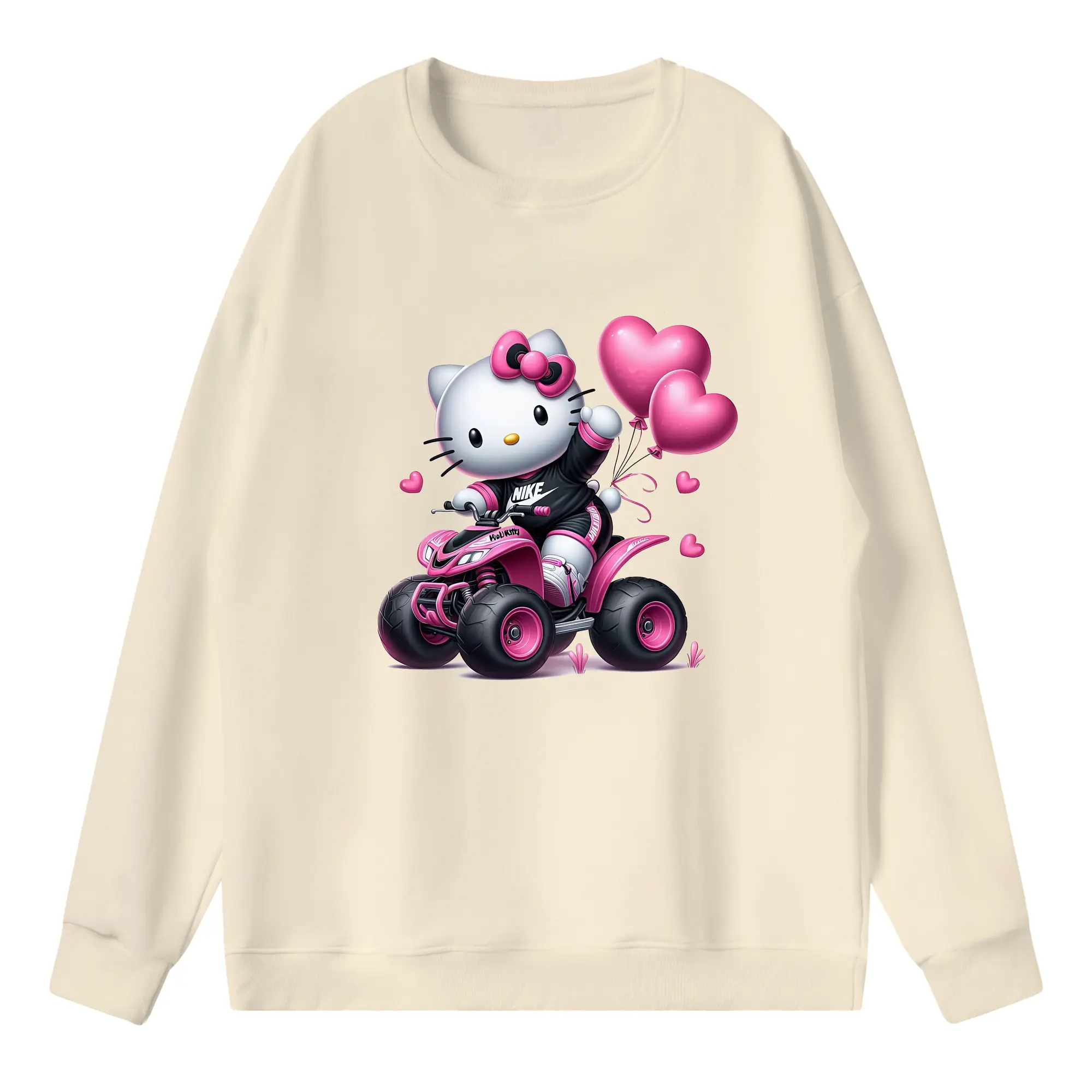 サンリオ グッズ,ハローキティ - 薄手 クルーネック スウェット 裏毛260g · ポリエステル 春秋向け カジュアル 男女兼用 · トレーナー デイリー スポーツ 散歩に最適