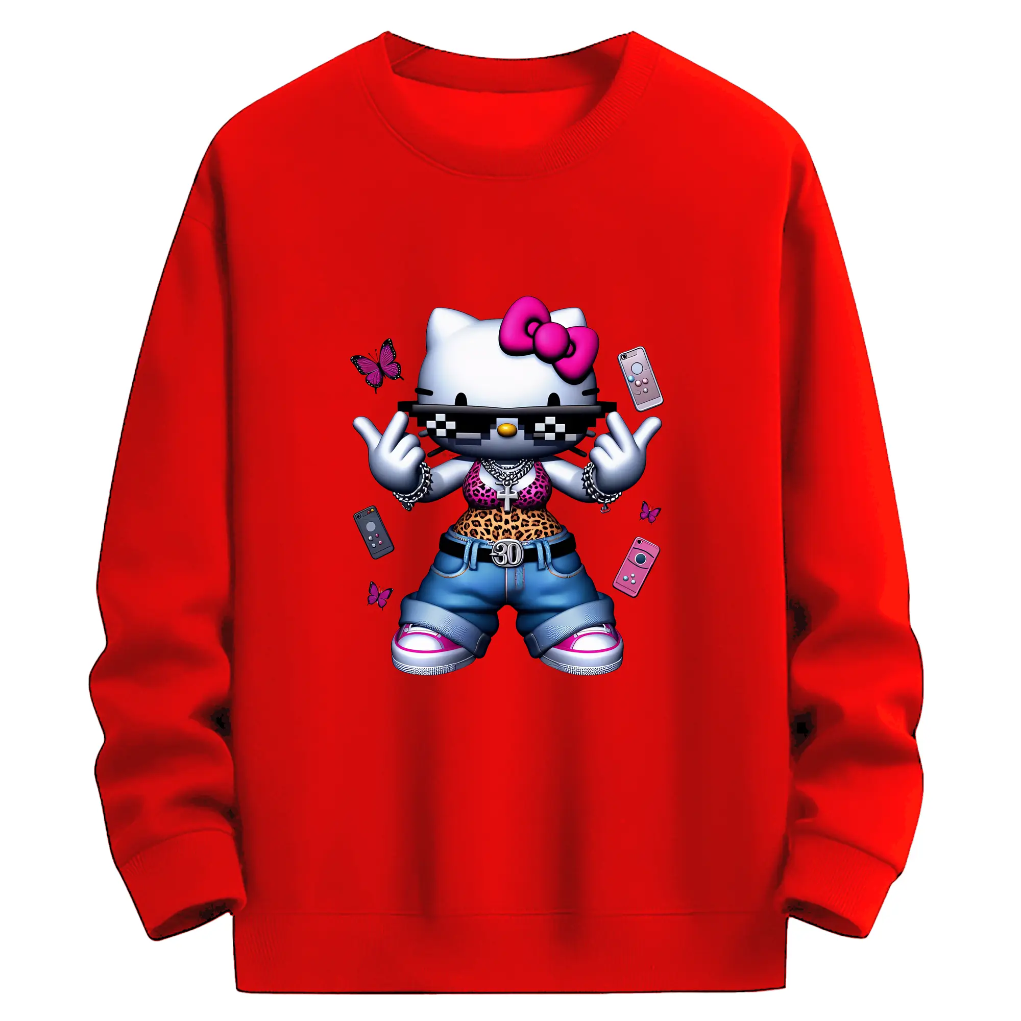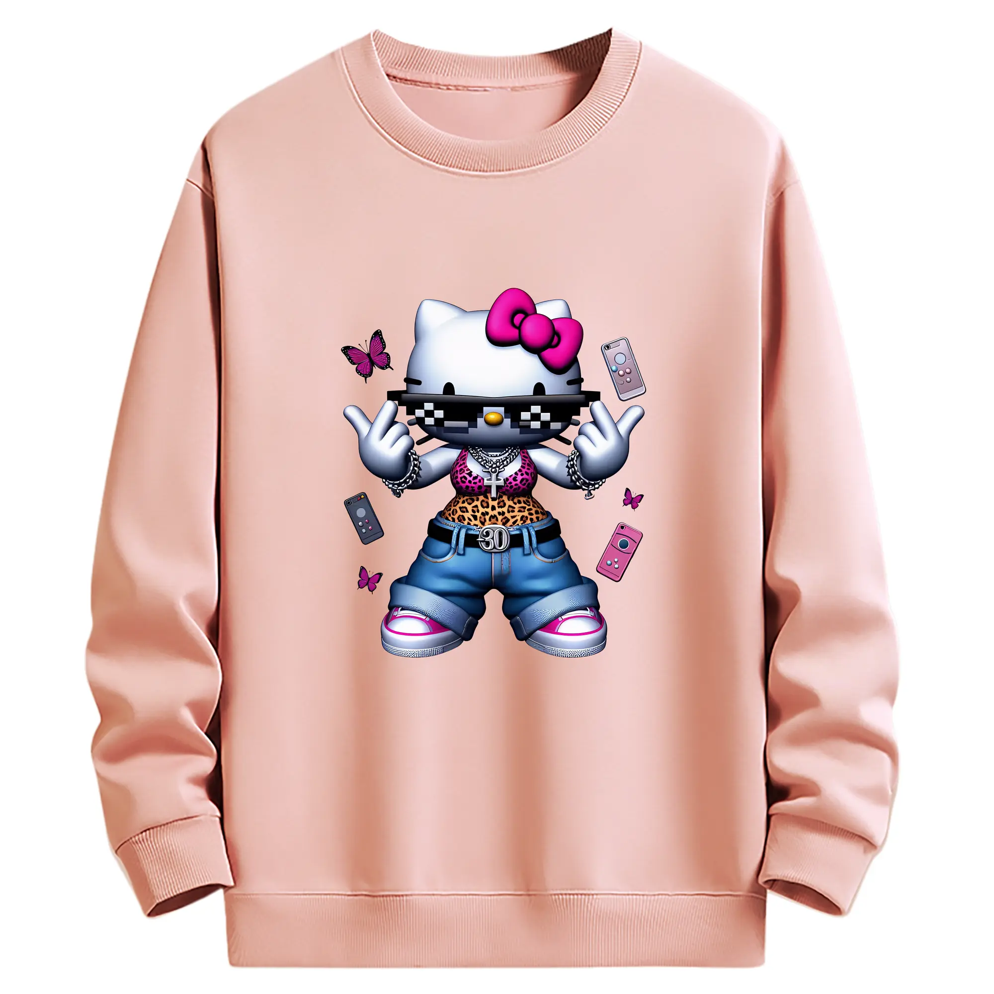 サンリオ グッズ,ハローキティ - 薄手 クルーネック スウェット 裏毛260g · ポリエステル 春秋向け カジュアル 男女兼用 · トレーナー デイリー スポーツ 散歩に最適