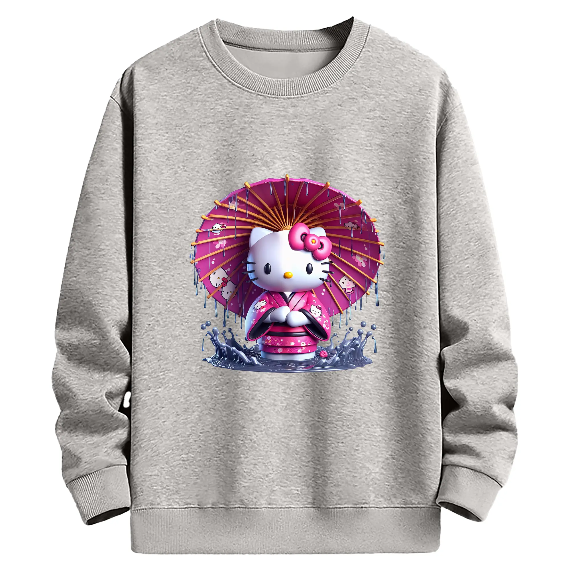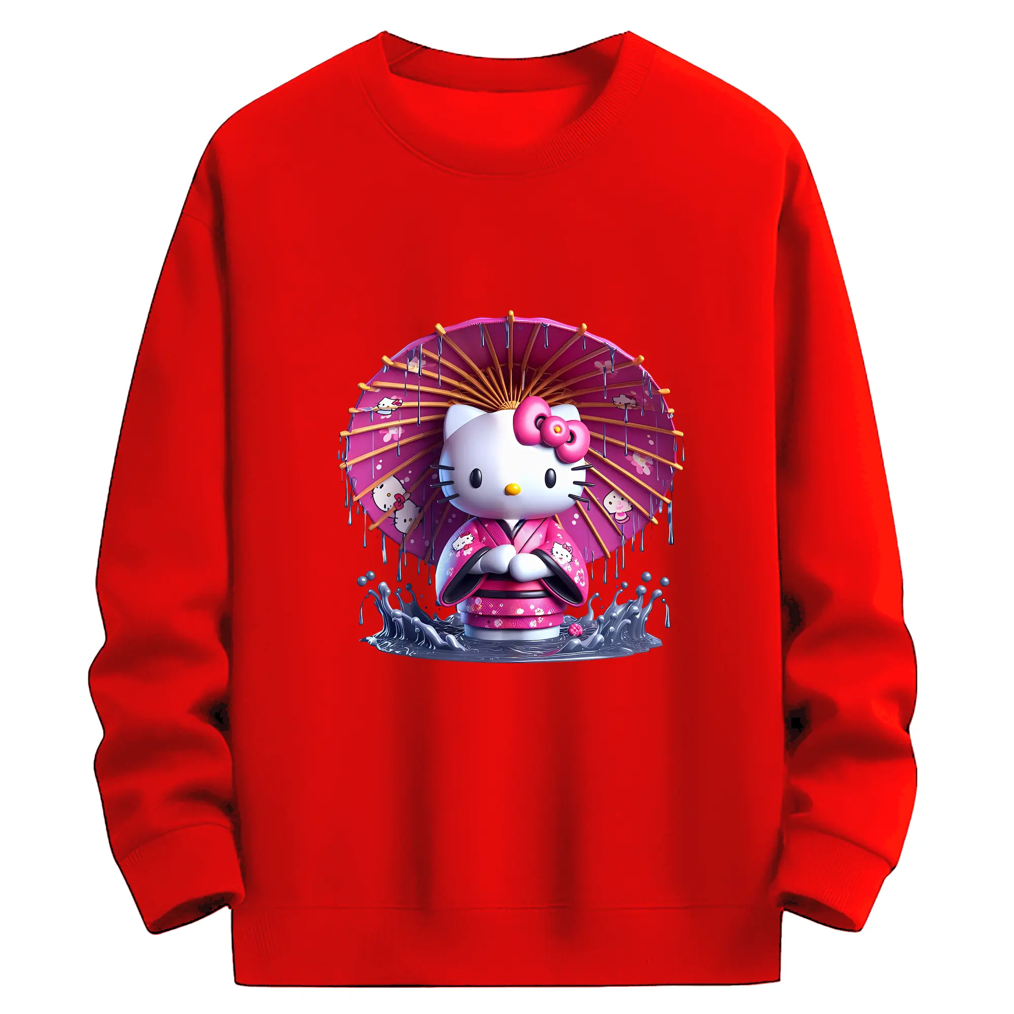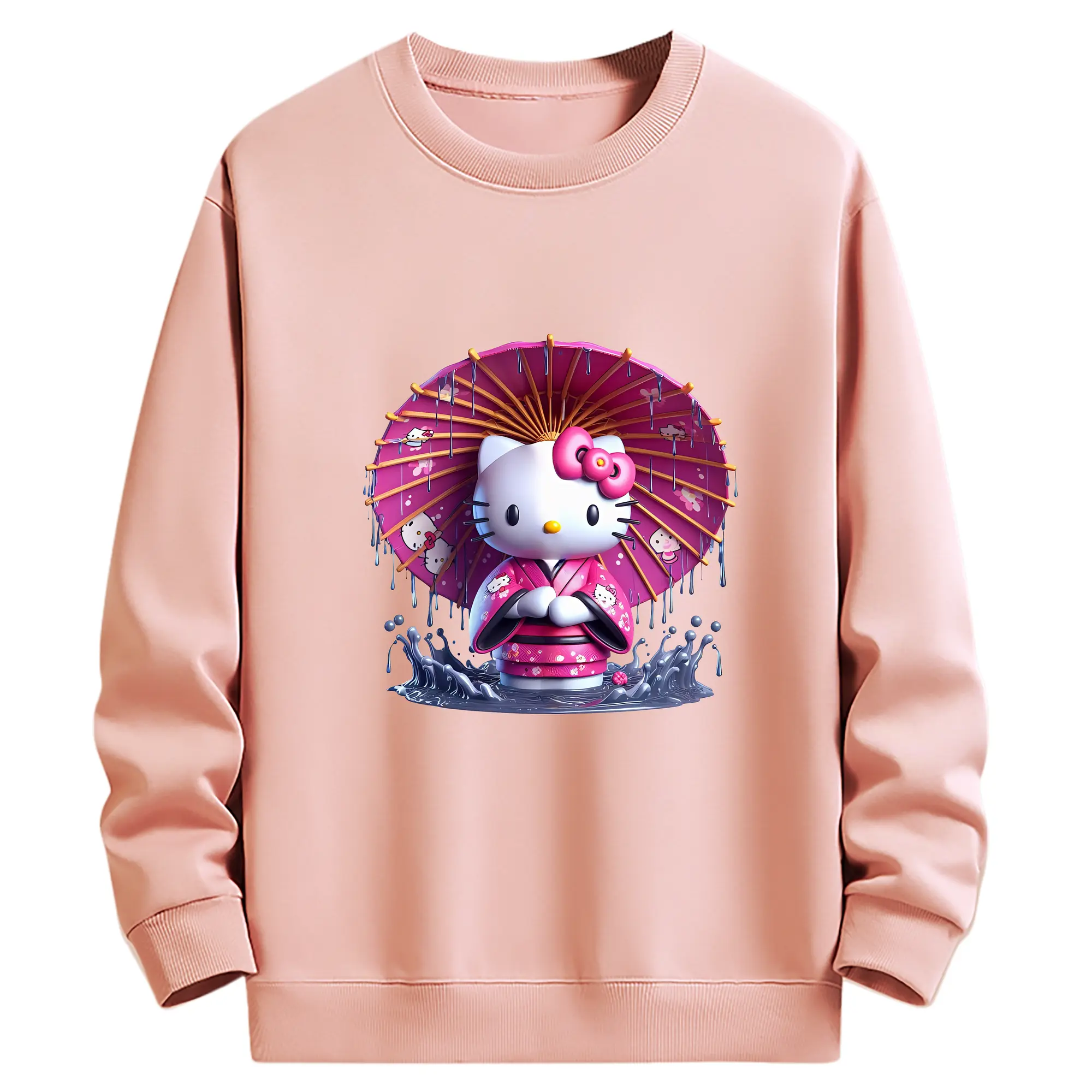 サンリオ グッズ,ハローキティ - 薄手 クルーネック スウェット 裏毛260g · ポリエステル 春秋向け カジュアル 男女兼用 · トレーナー デイリー スポーツ 散歩に最適