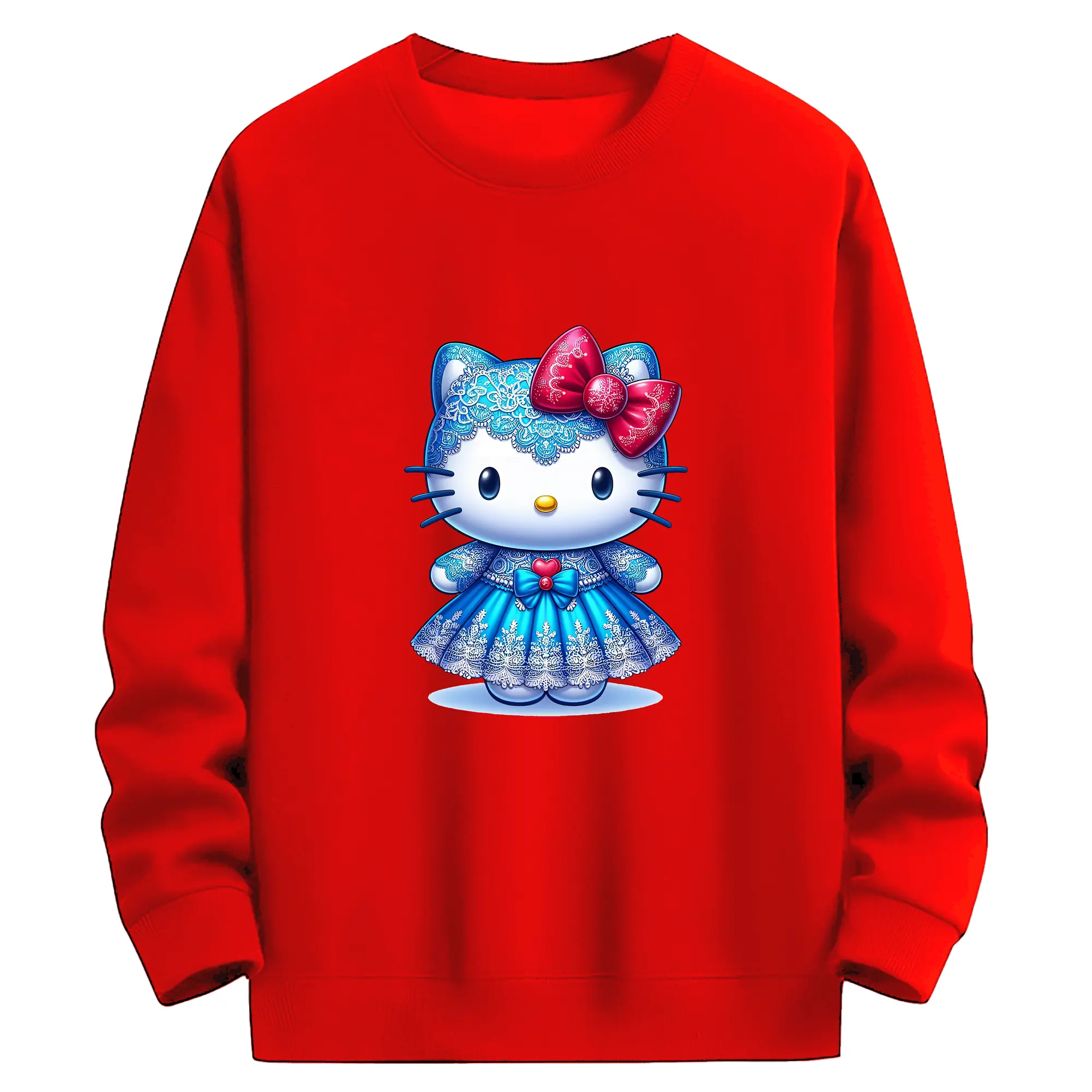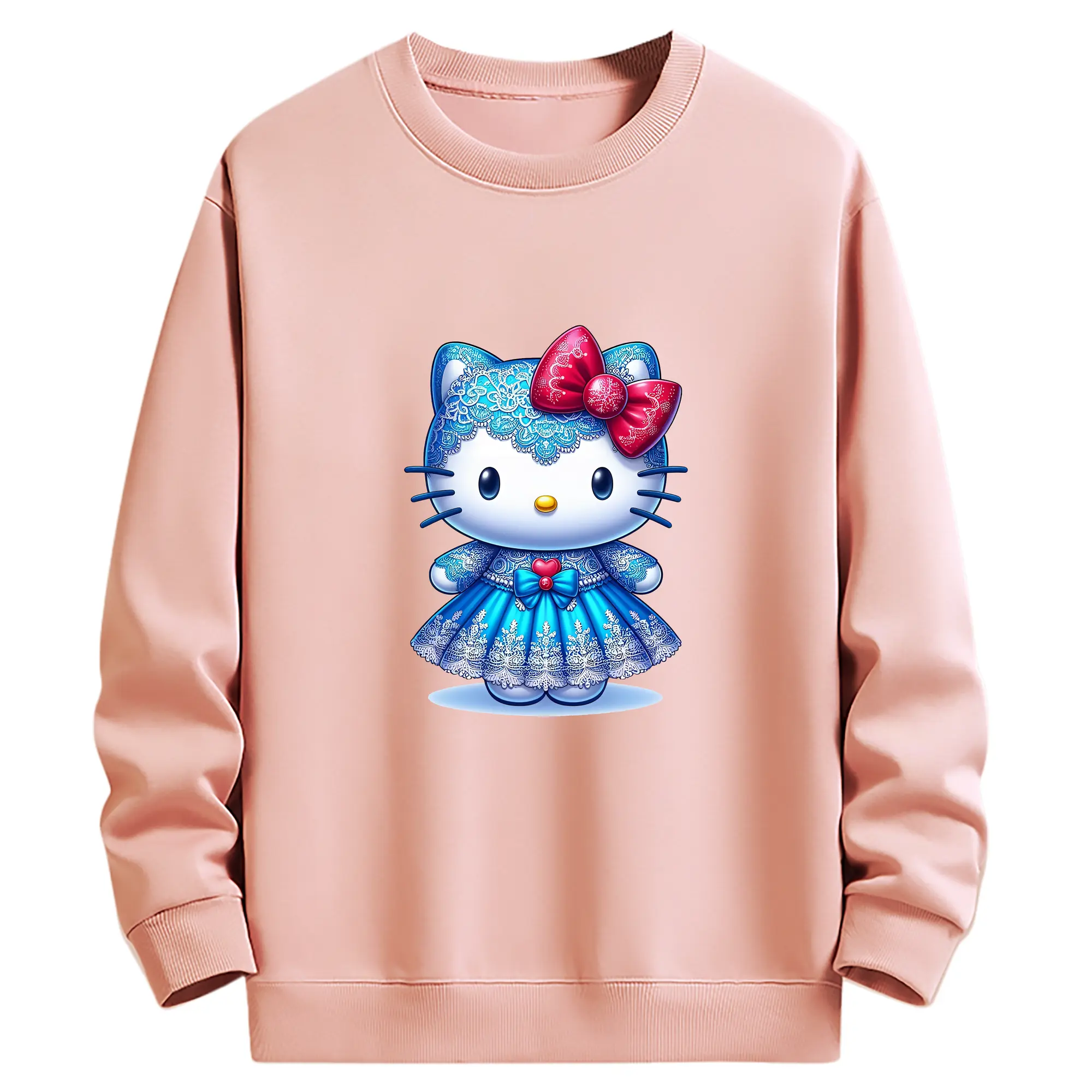 サンリオ グッズ,ハローキティ - 薄手 クルーネック スウェット 裏毛260g · ポリエステル 春秋向け カジュアル 男女兼用 · トレーナー デイリー スポーツ 散歩に最適