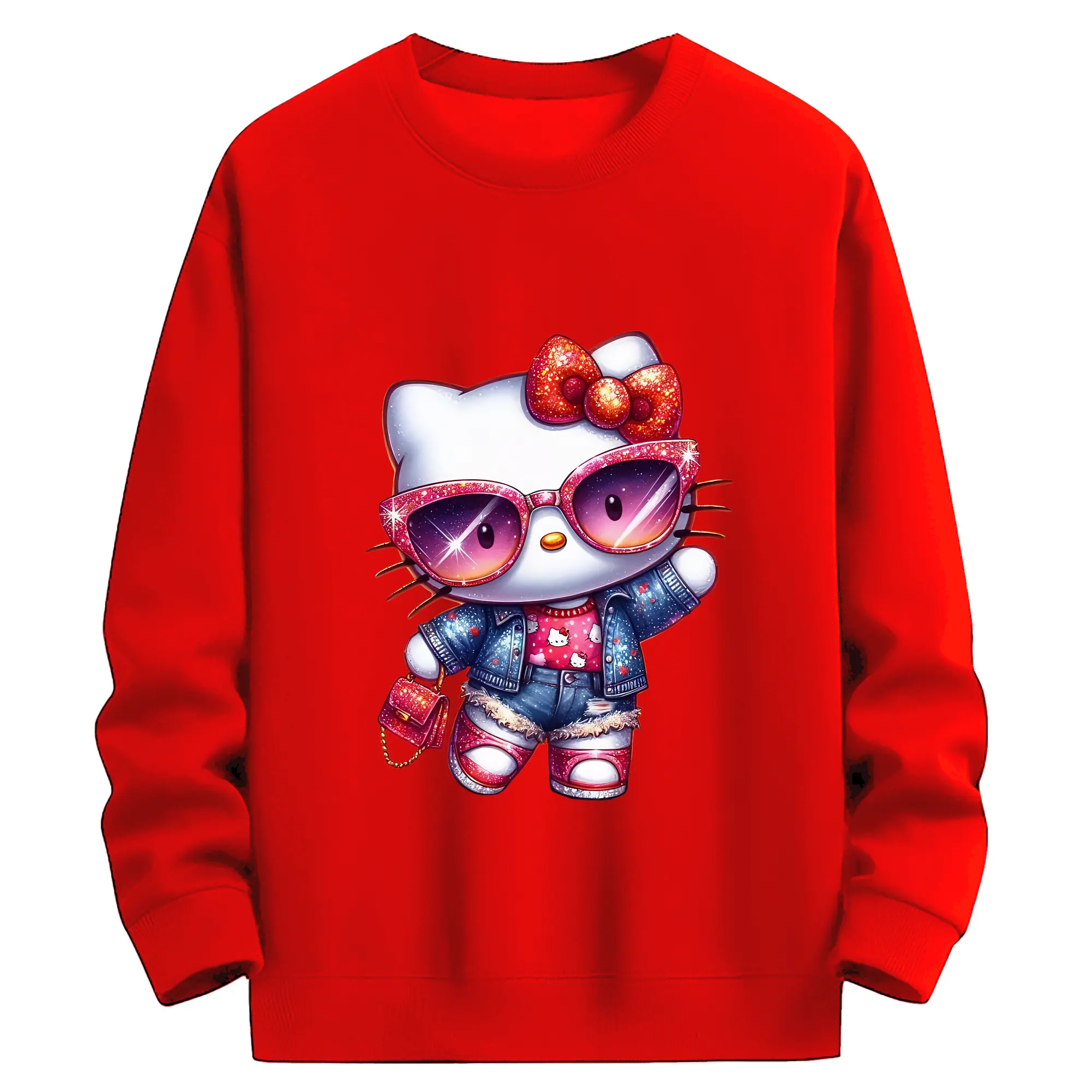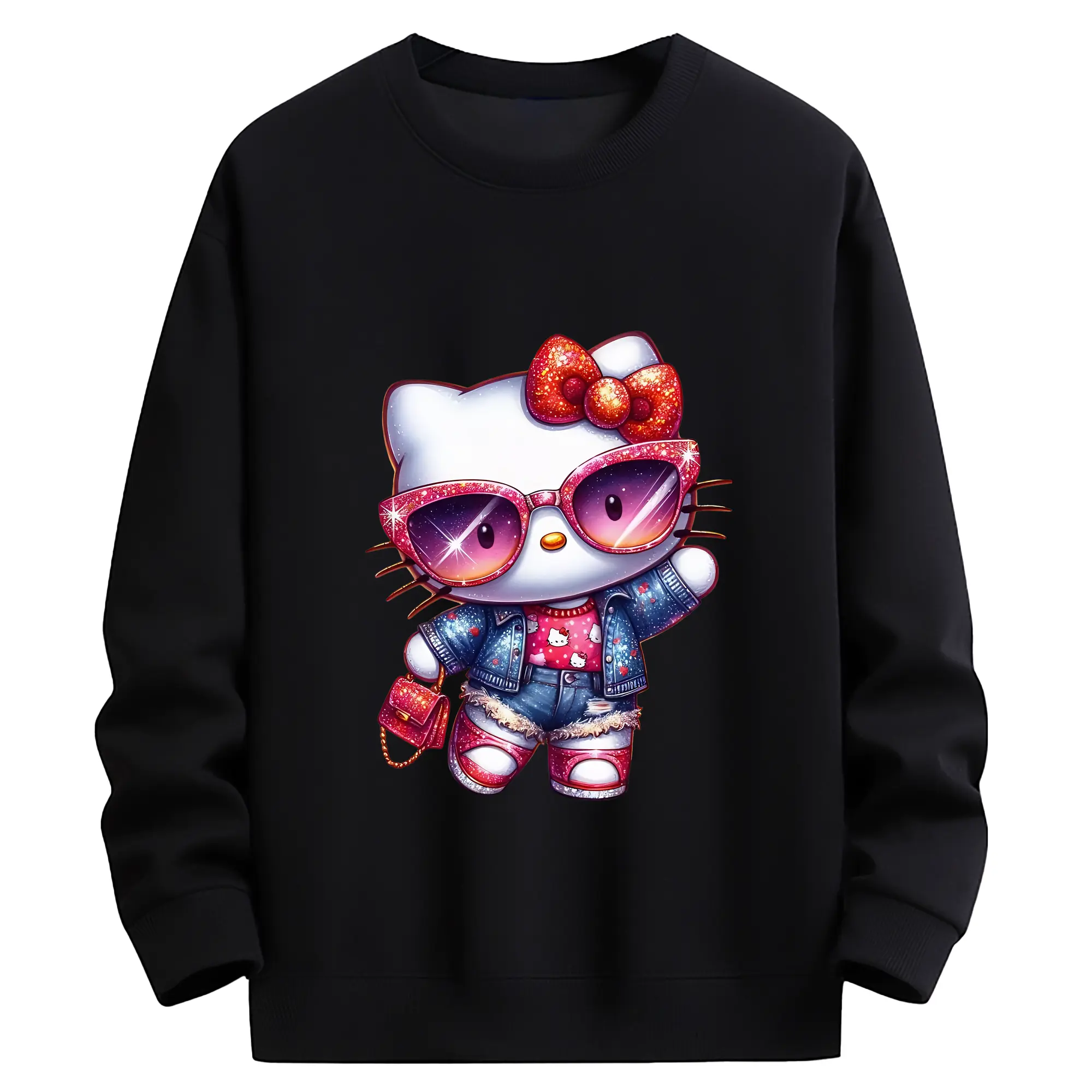 サンリオ グッズ,ハローキティ - 高品質 クルーネック スウェット ・ コットン59% ポリエステル41% ・ ユニセックス 長袖 トレーナー ・ カジュアル デイリー スポーツ 散歩用