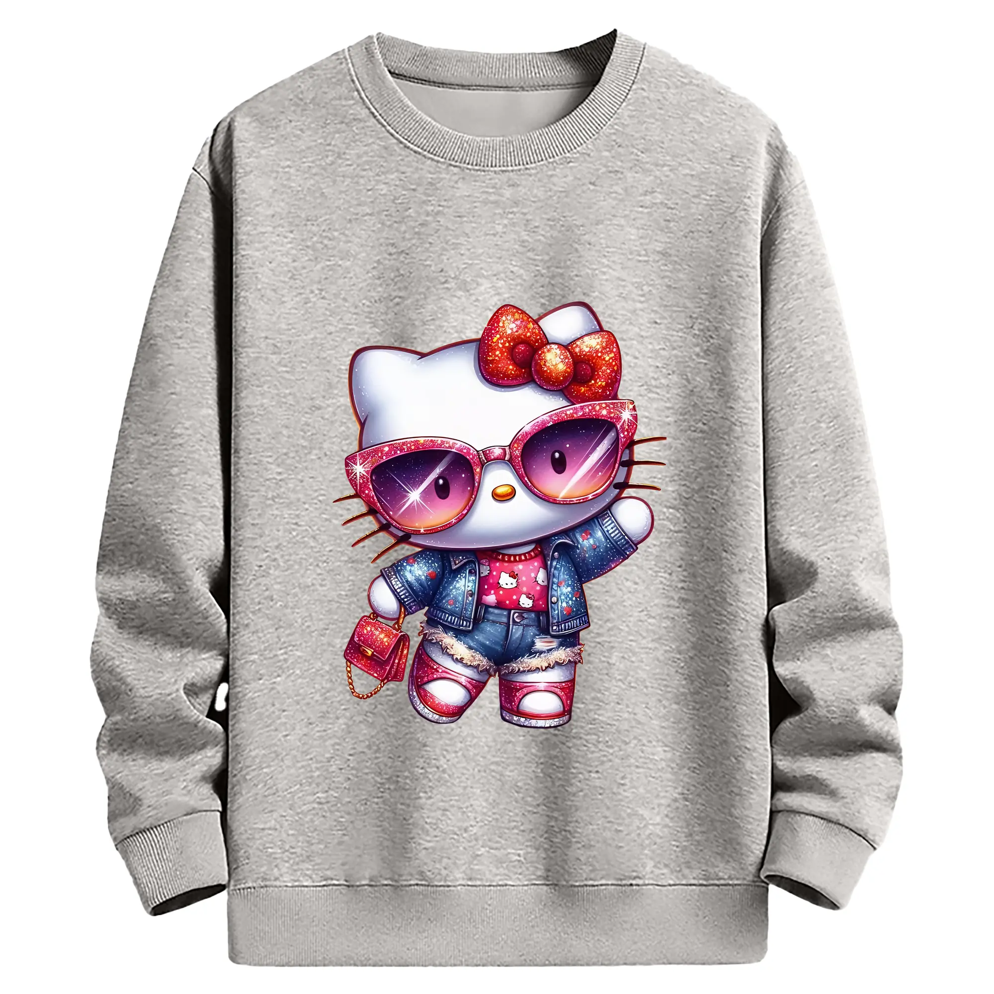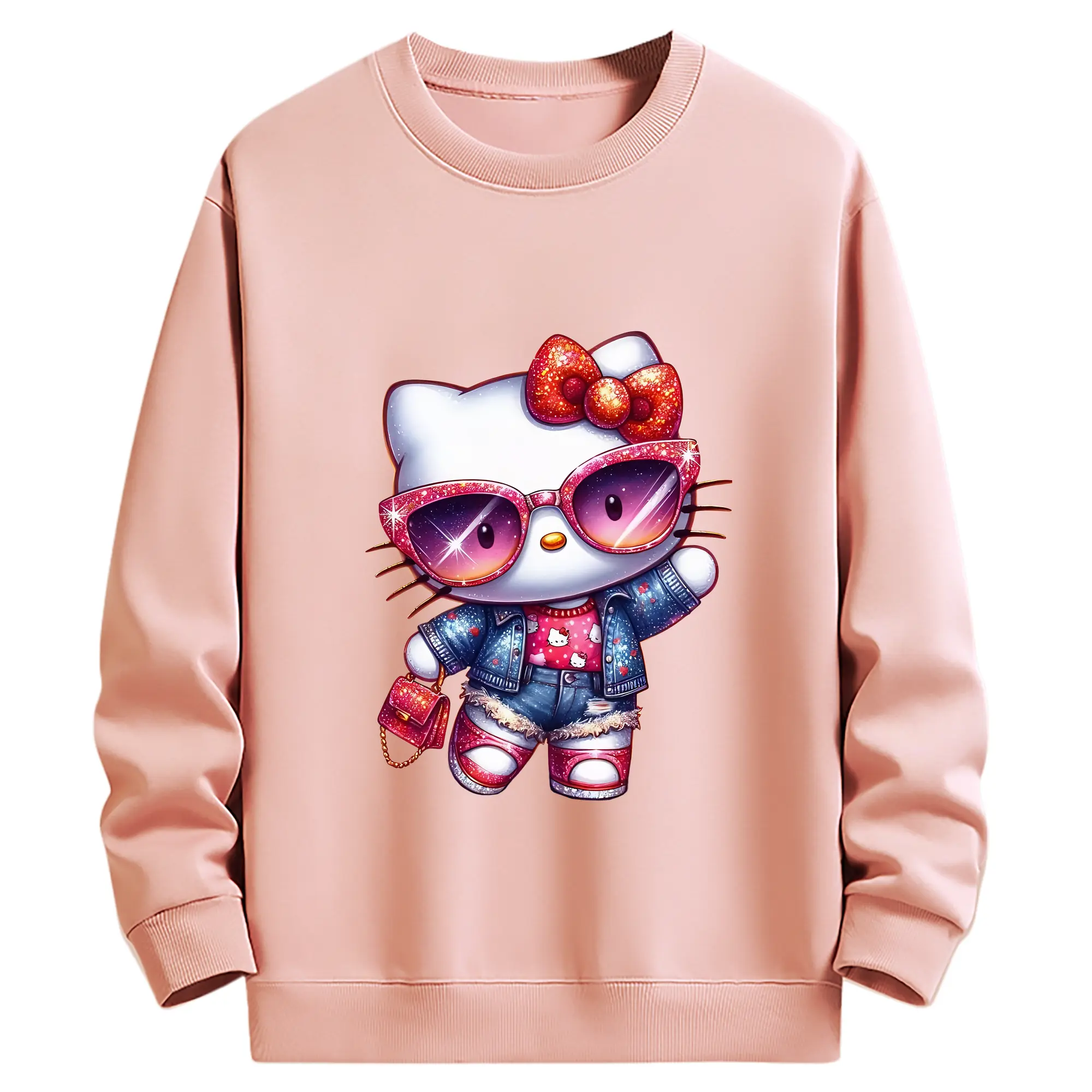 サンリオ グッズ,ハローキティ - 薄手 クルーネック スウェット 裏毛260g · ポリエステル 春秋向け カジュアル 男女兼用 · トレーナー デイリー スポーツ 散歩に最適