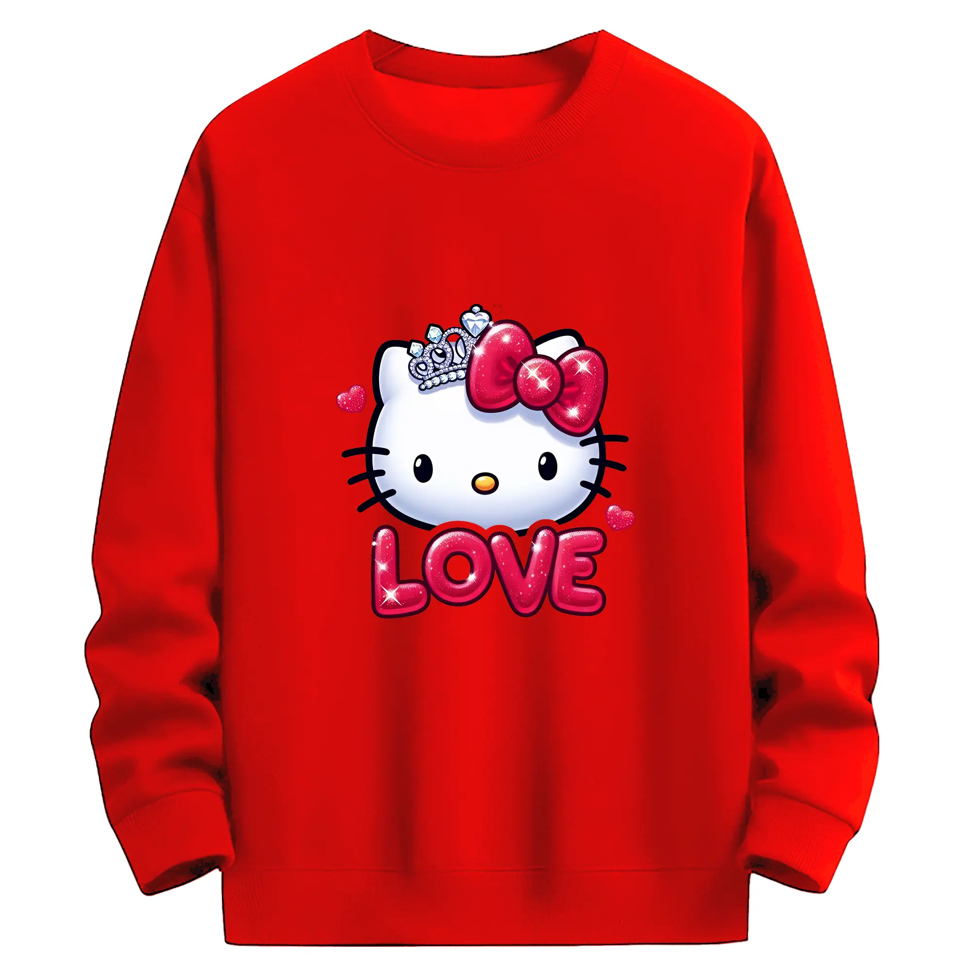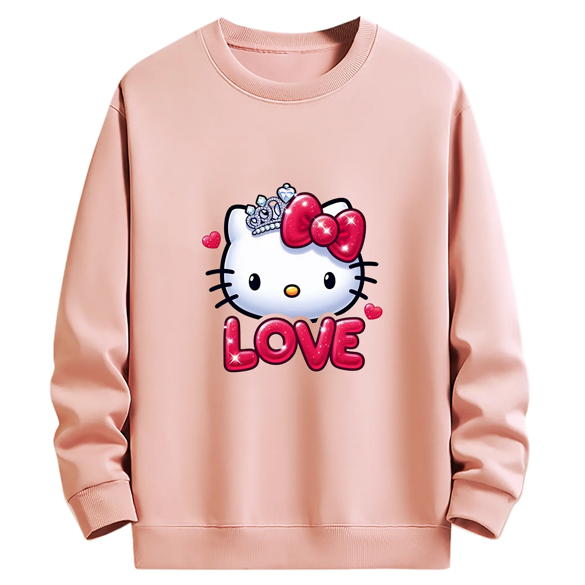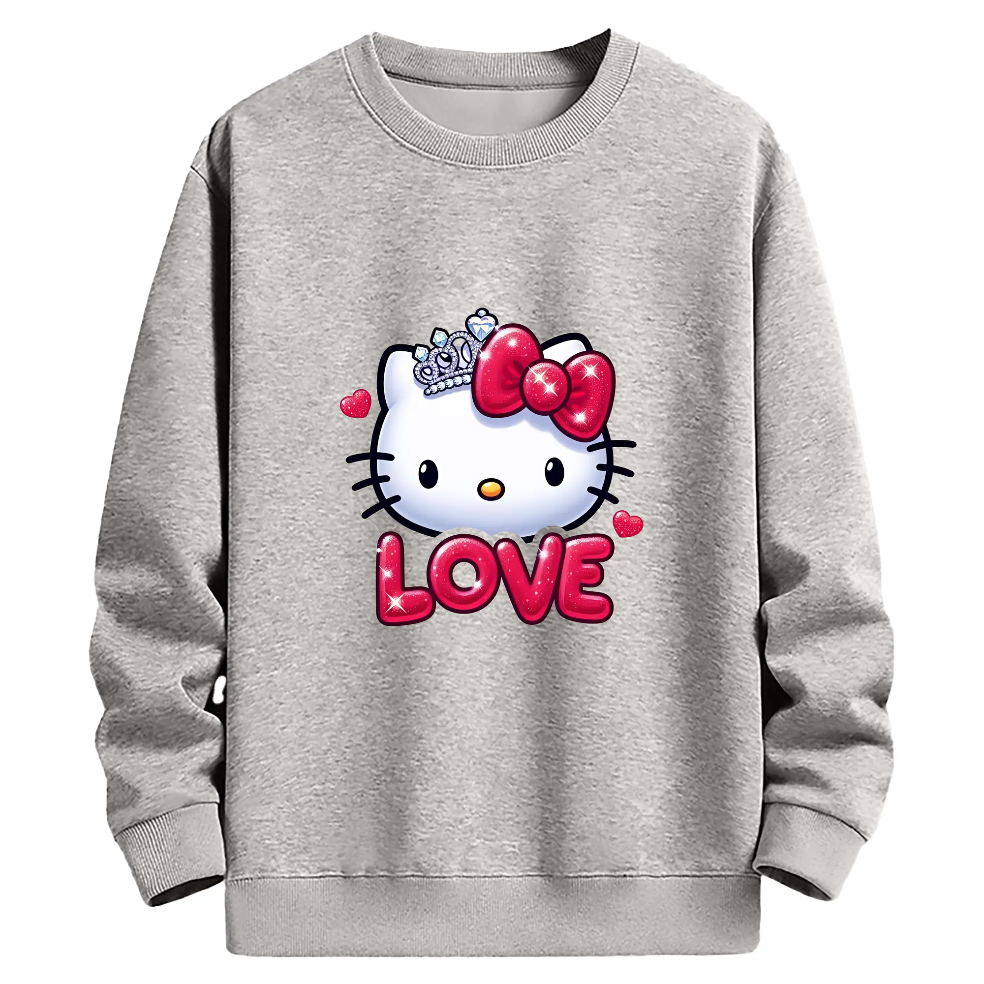 サンリオ グッズ,ハローキティ - 薄手 クルーネック スウェット 裏毛260g · ポリエステル 春秋向け カジュアル 男女兼用 · トレーナー デイリー スポーツ 散歩に最適
