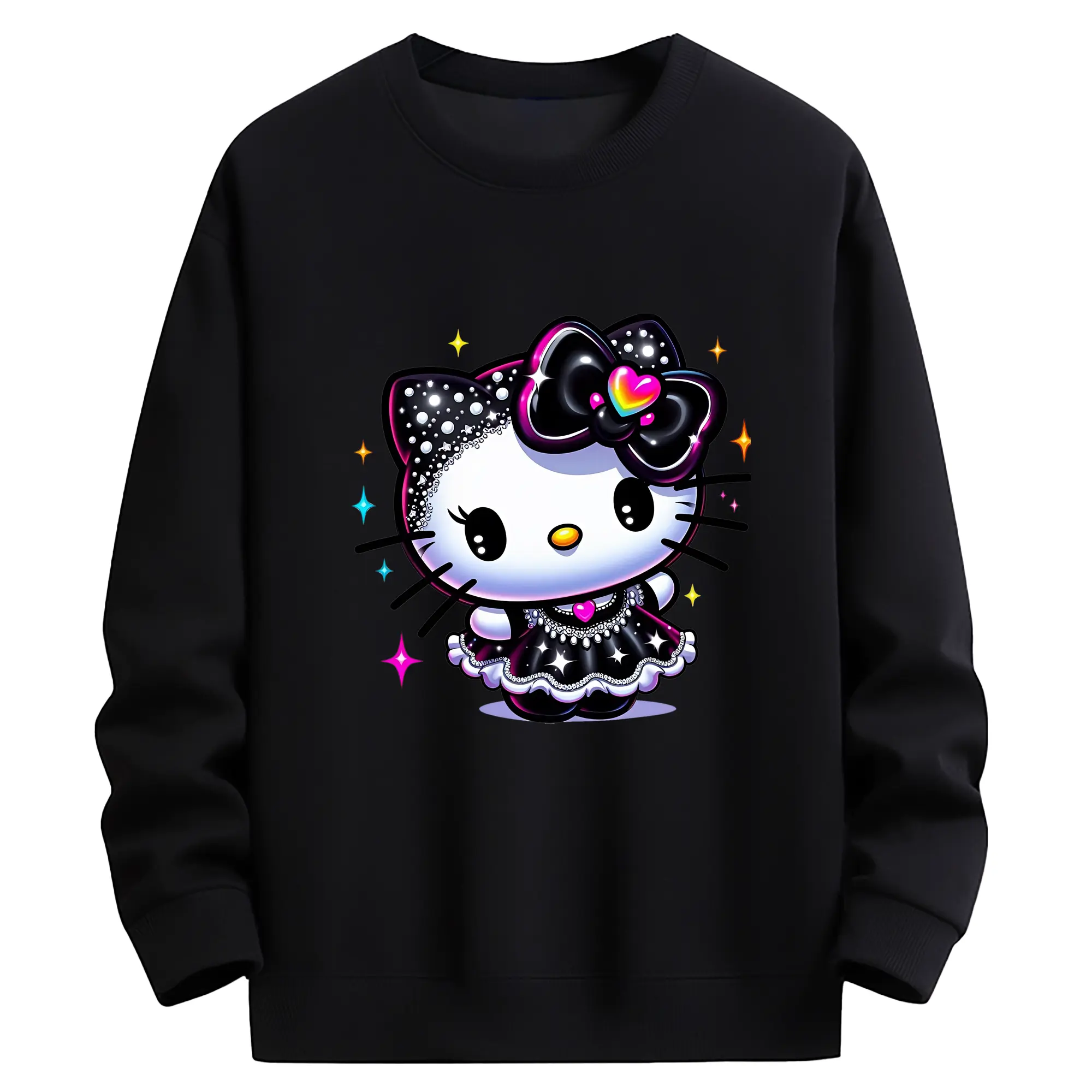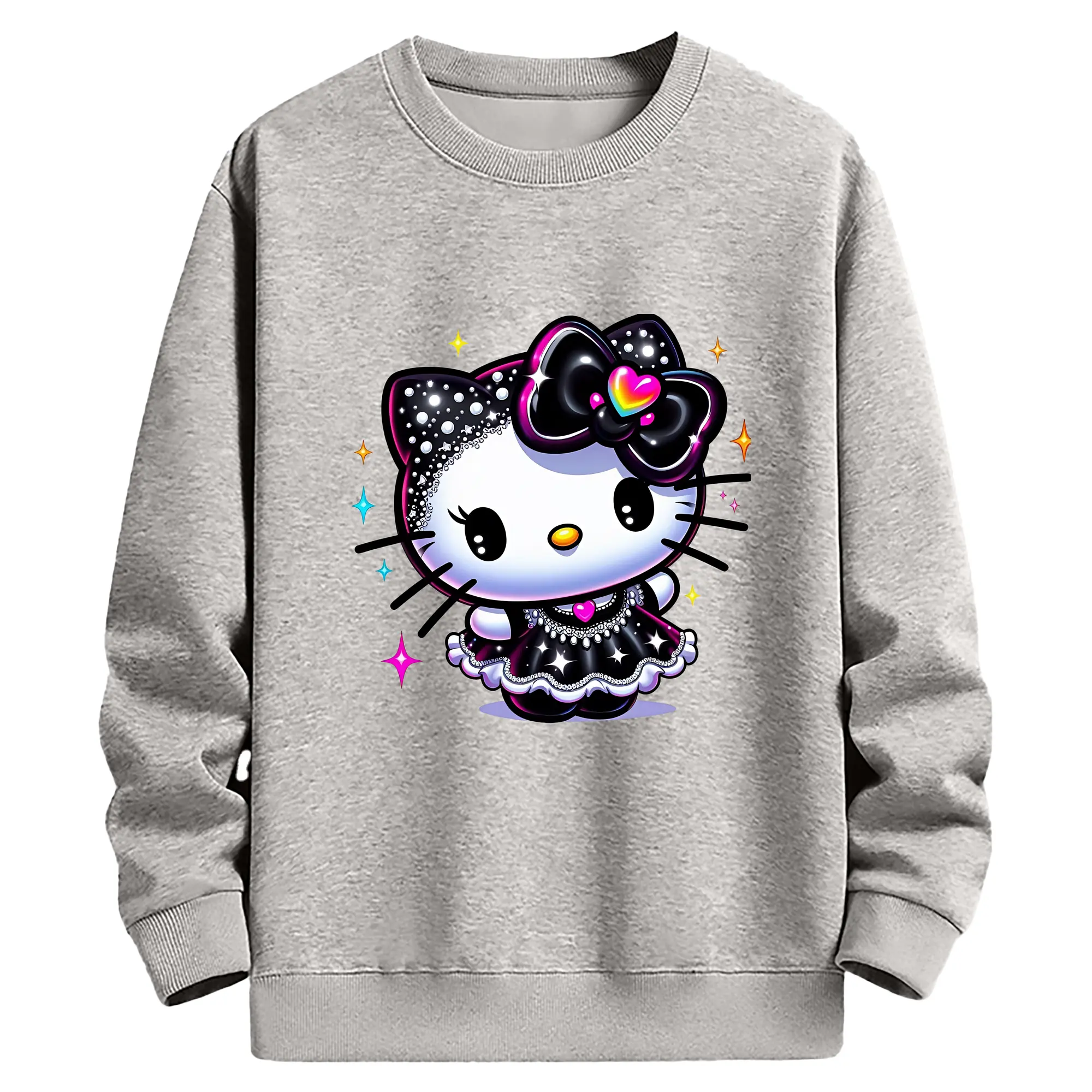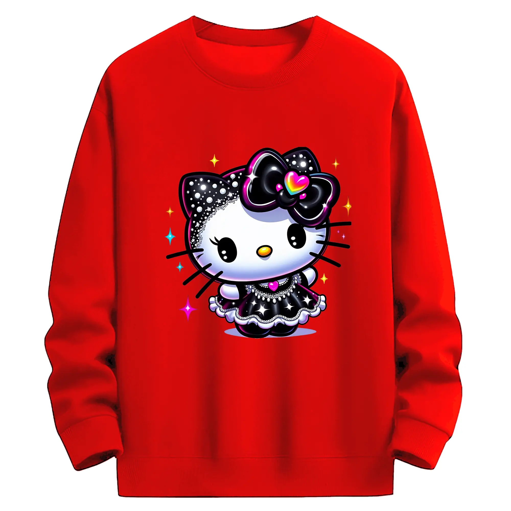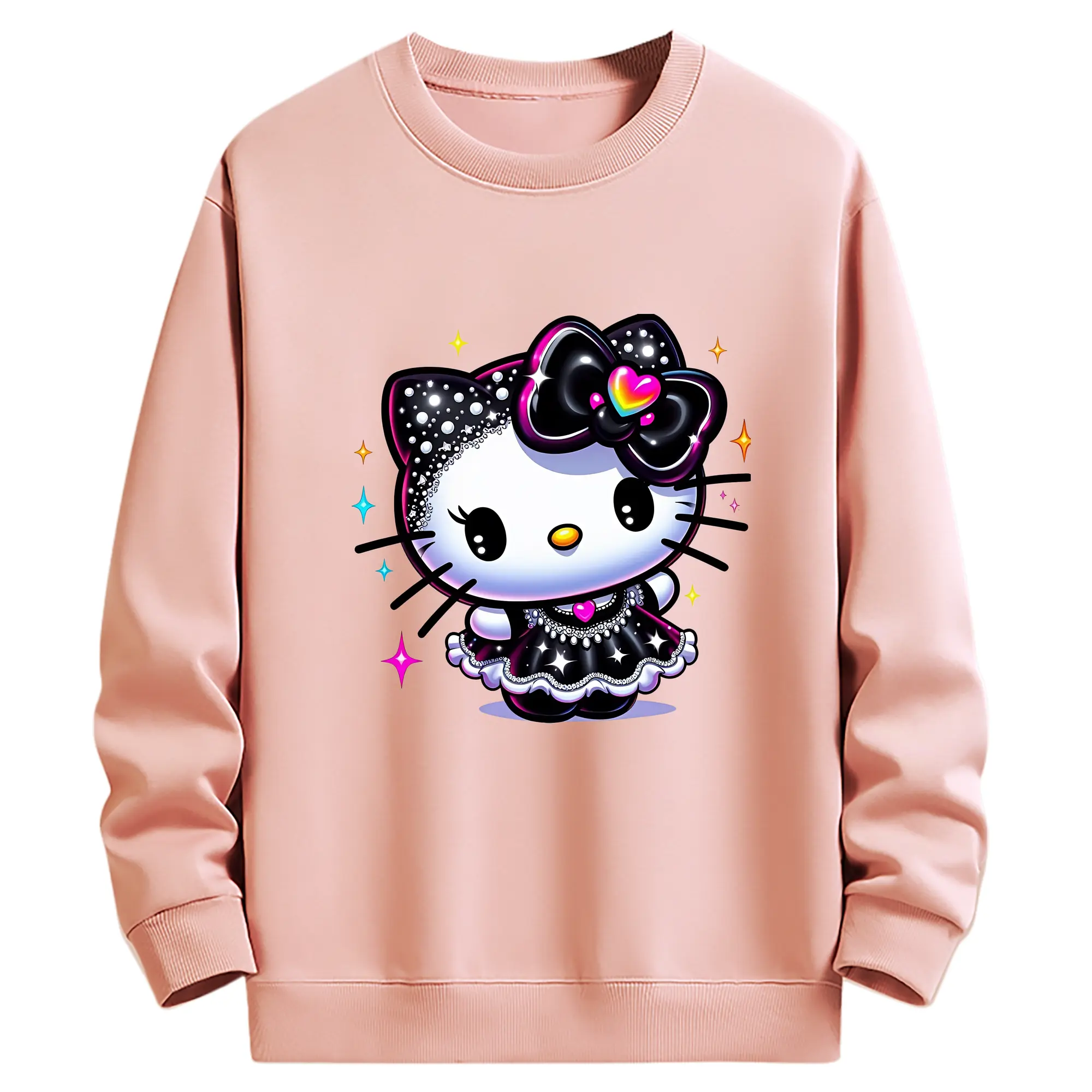 サンリオ グッズ,ハローキティ - 薄手 クルーネック スウェット 裏毛260g · ポリエステル 春秋向け カジュアル 男女兼用 · トレーナー デイリー スポーツ 散歩に最適