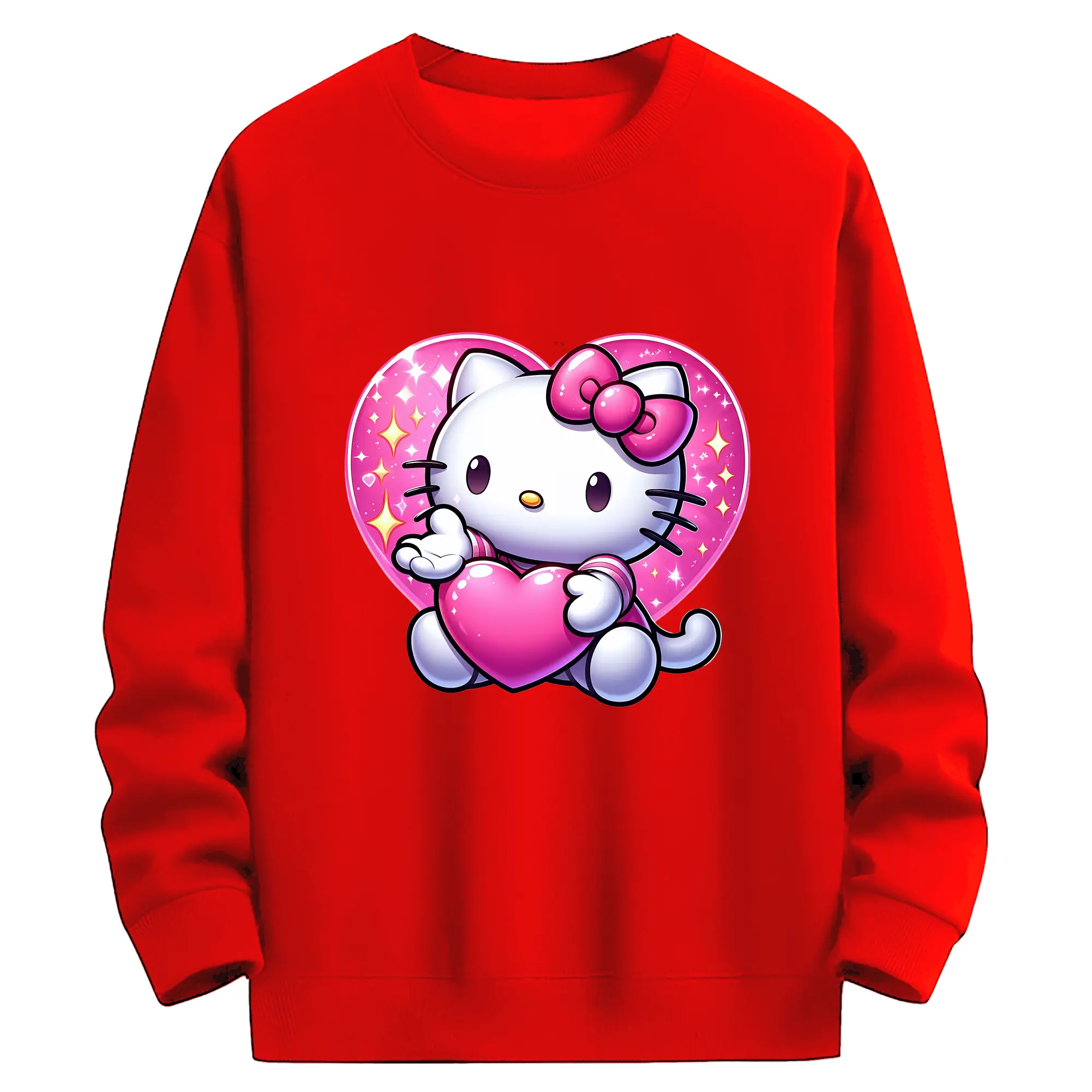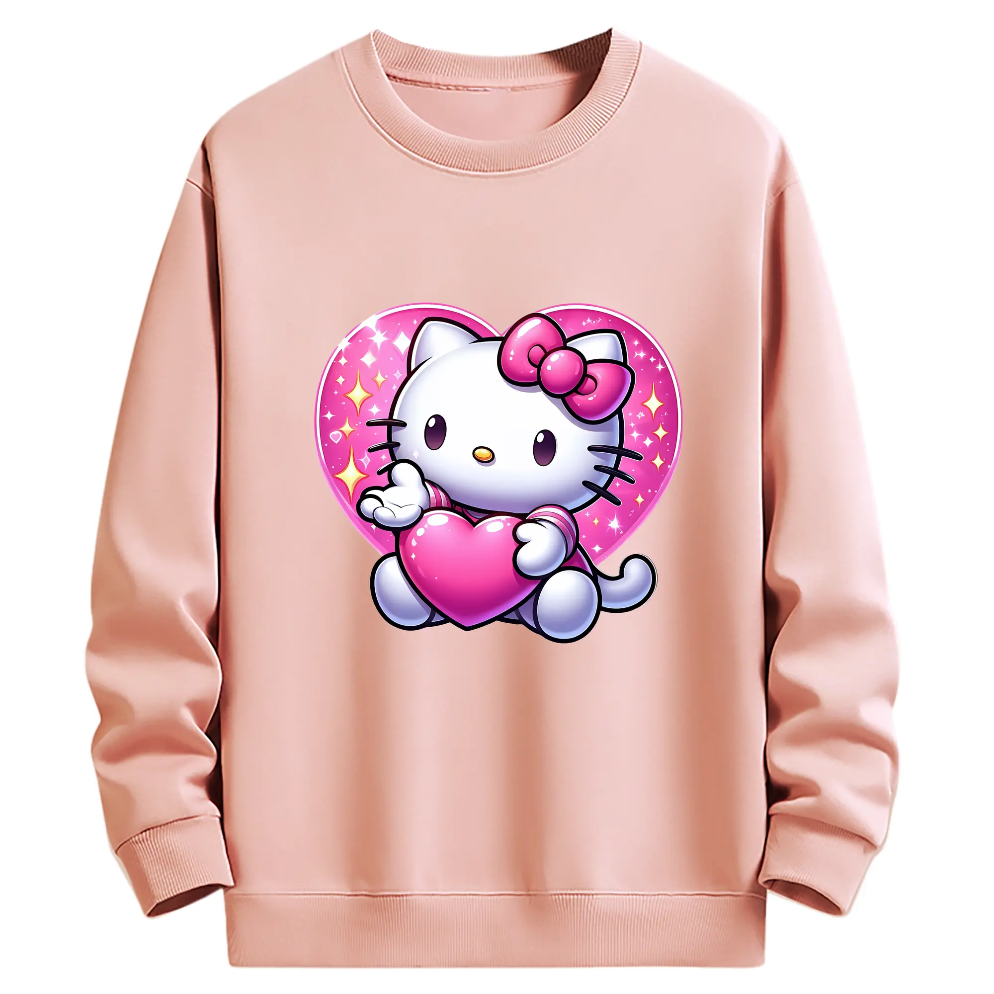 サンリオ グッズ,ハローキティ - 薄手 クルーネック スウェット 裏毛260g · ポリエステル 春秋向け カジュアル 男女兼用 · トレーナー デイリー スポーツ 散歩に最適