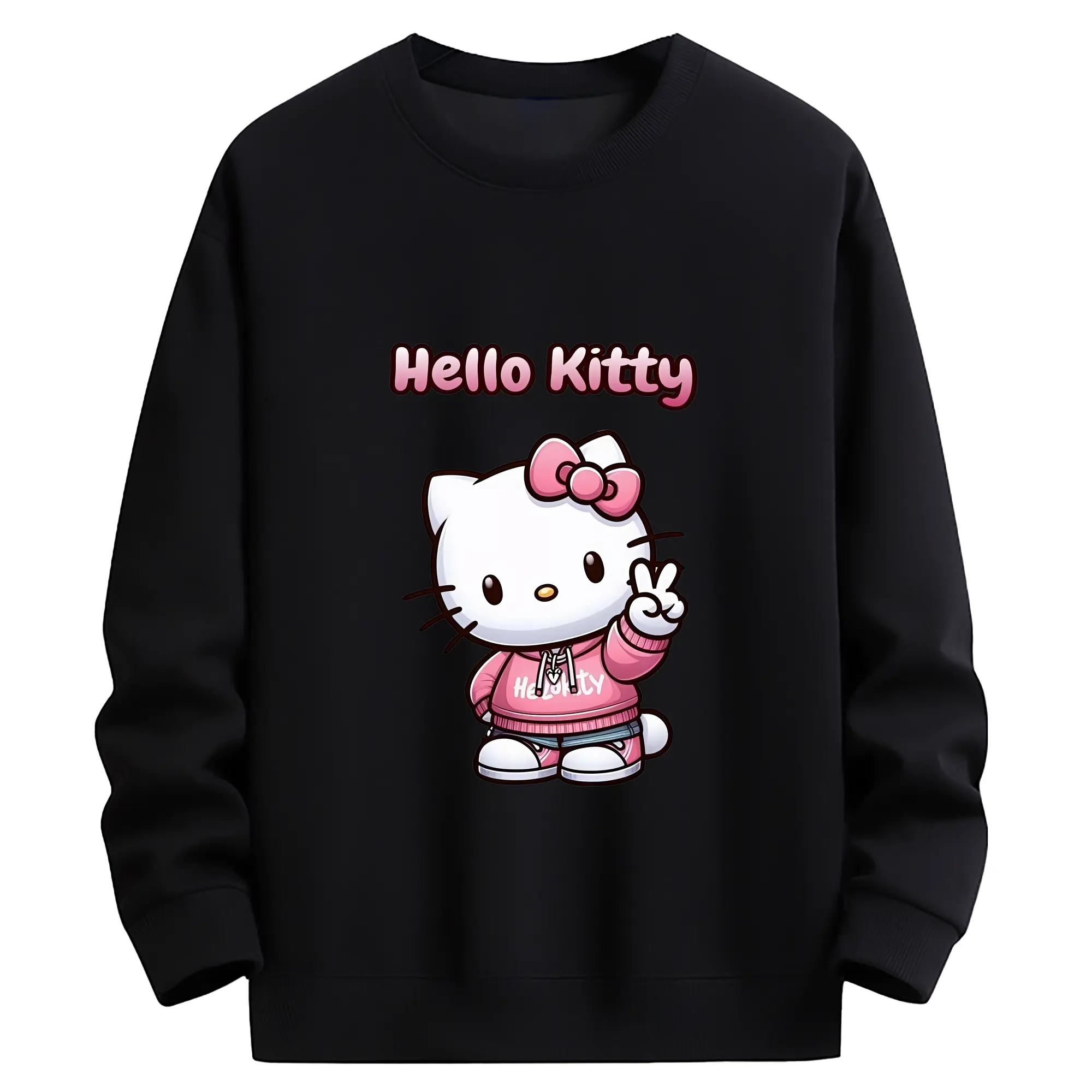 サンリオ グッズ,ハローキティ - 高品質 クルーネック スウェット ・ コットン59% ポリエステル41% ・ ユニセックス 長袖 トレーナー ・ カジュアル デイリー スポーツ 散歩用