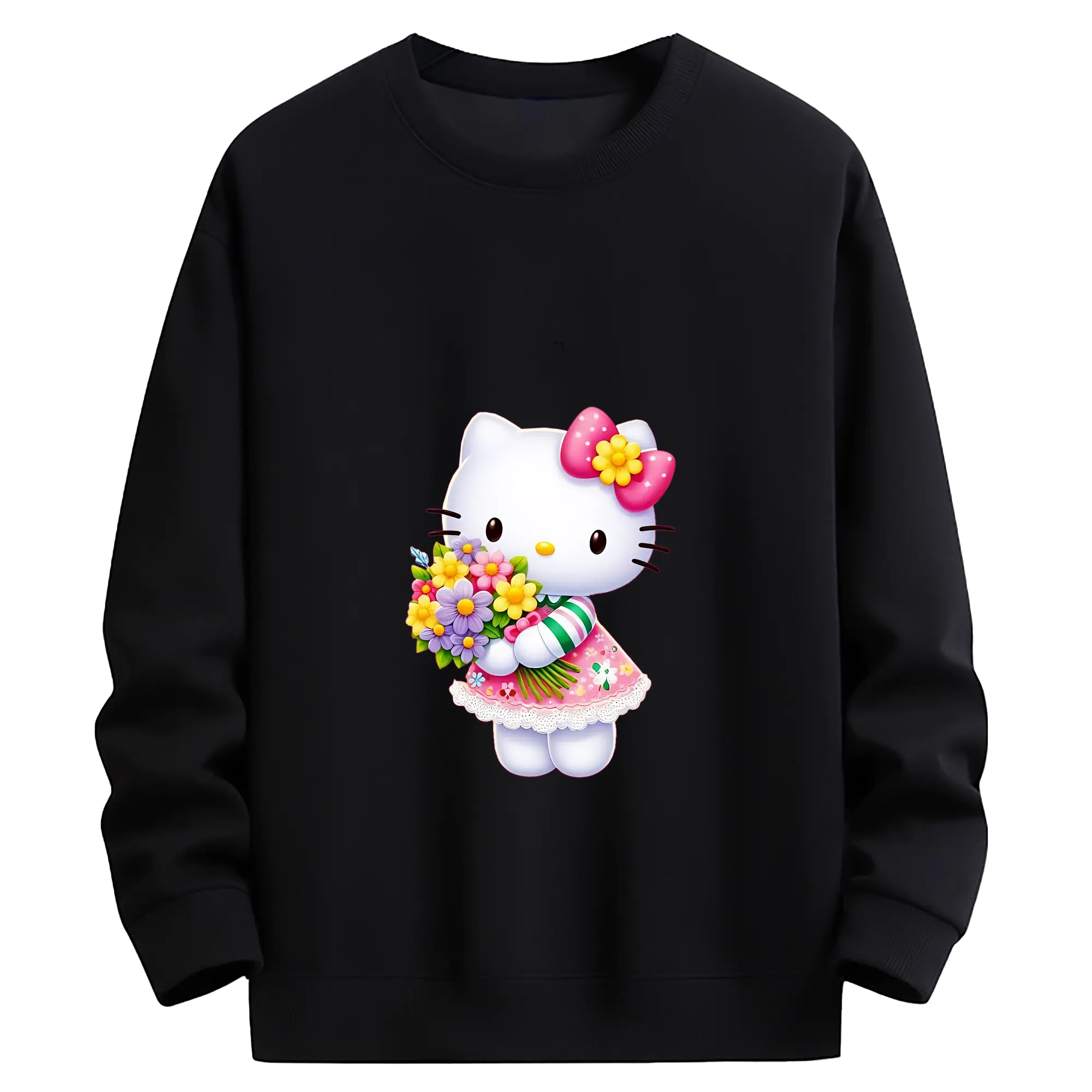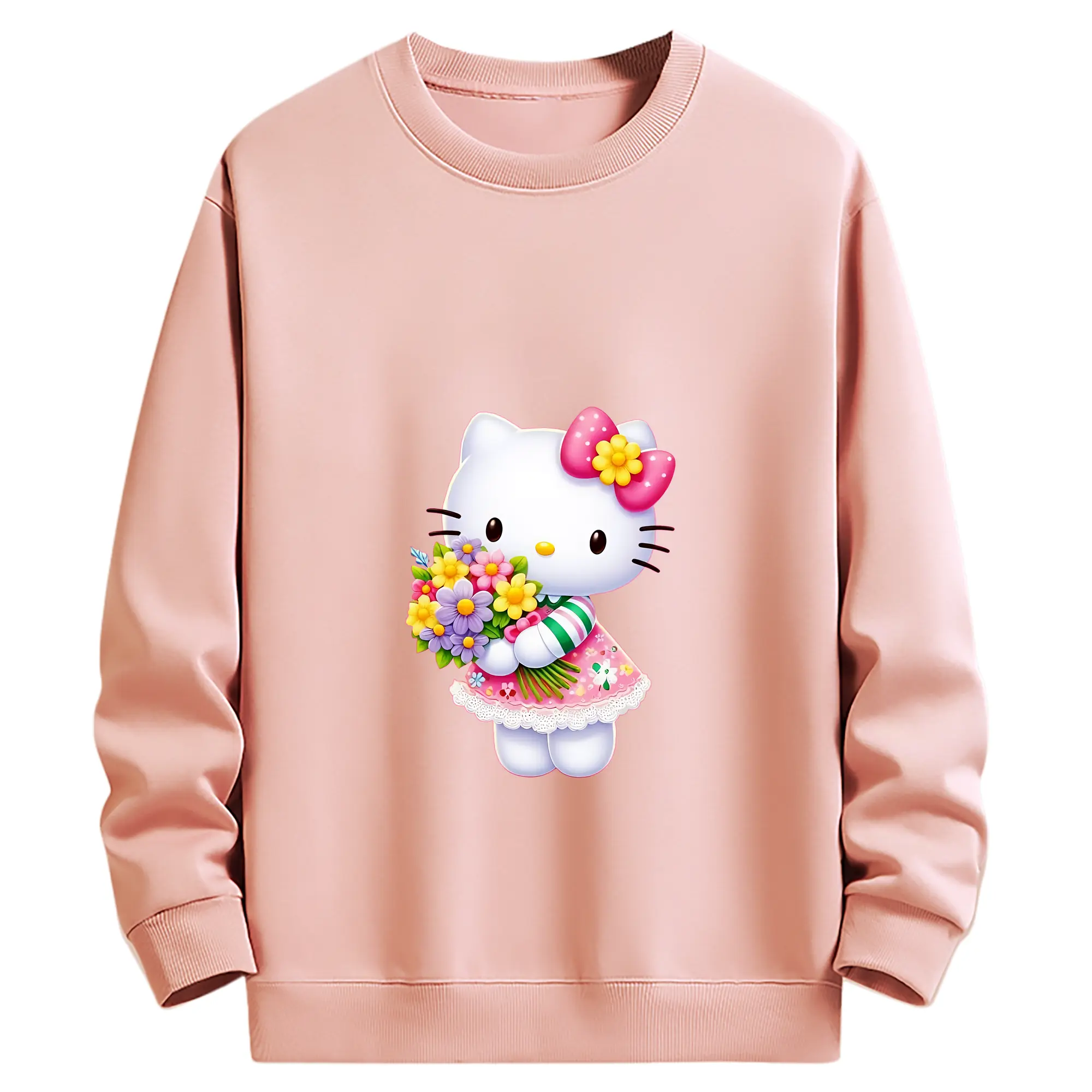 サンリオ グッズ,ハローキティ - 薄手 クルーネック スウェット 裏毛260g · ポリエステル 春秋向け カジュアル 男女兼用 · トレーナー デイリー スポーツ 散歩に最適