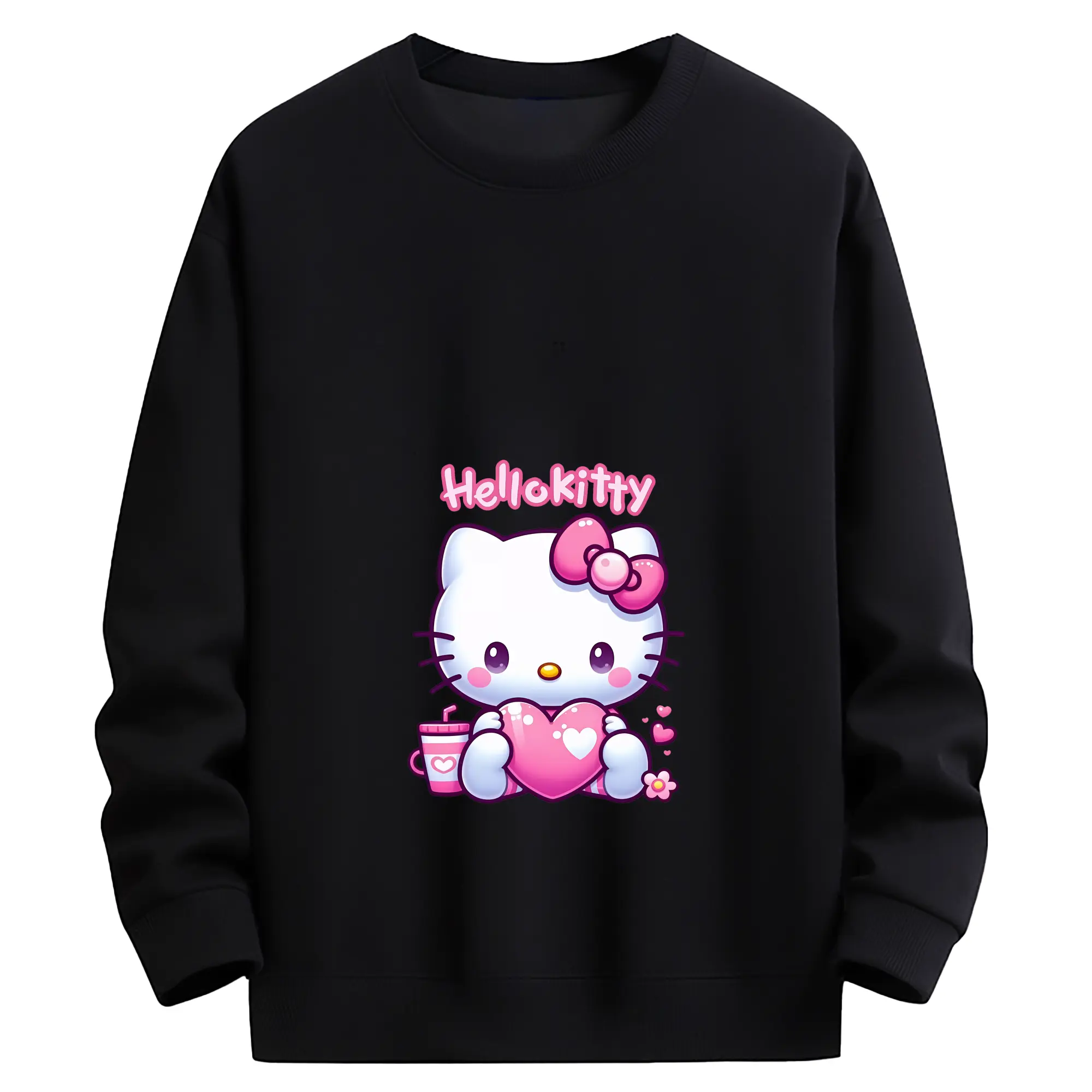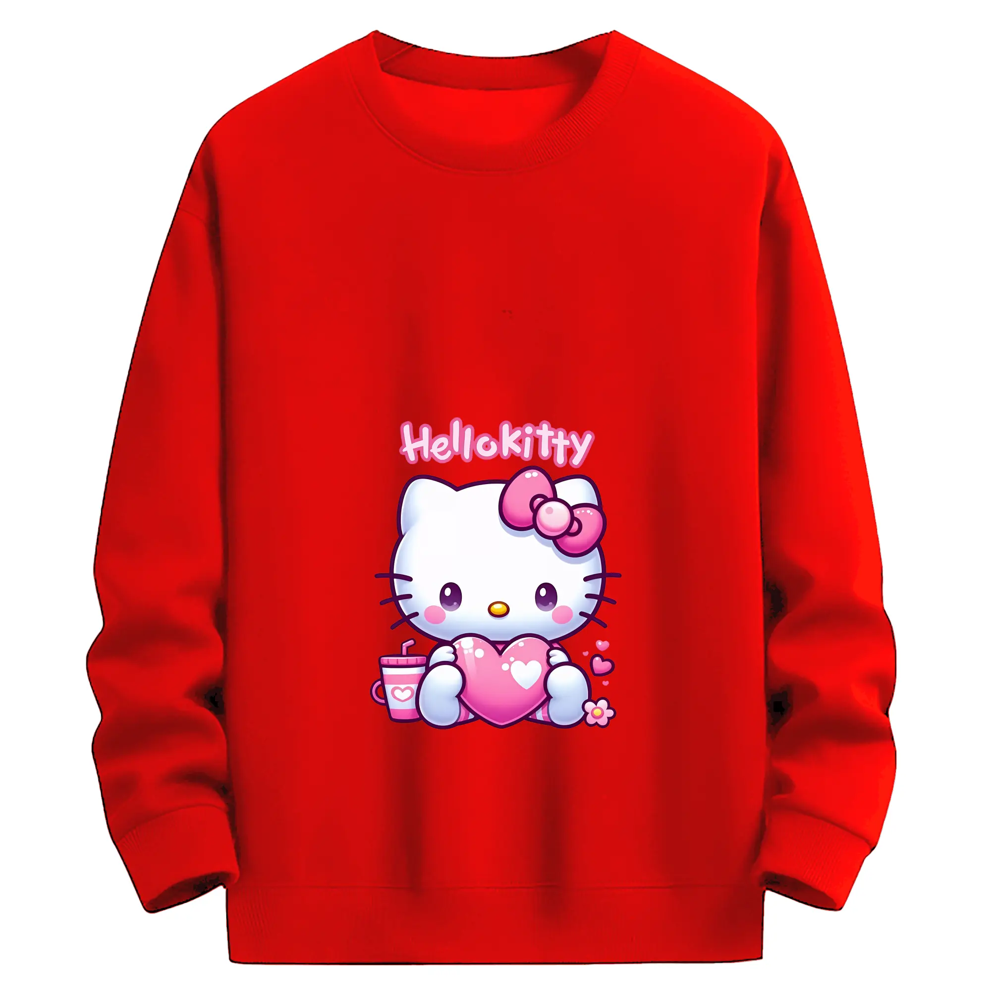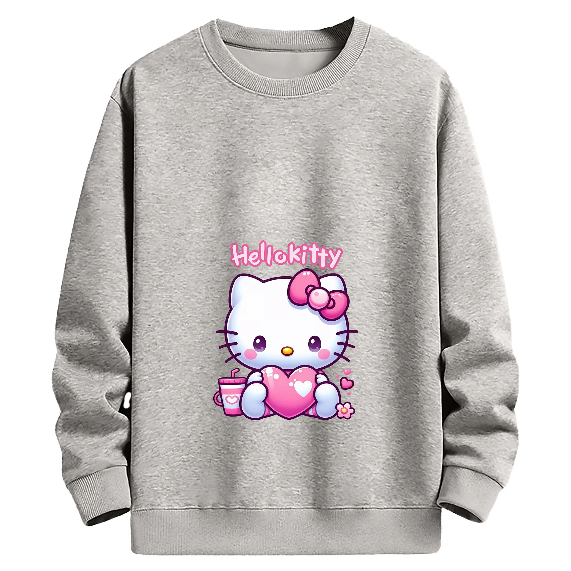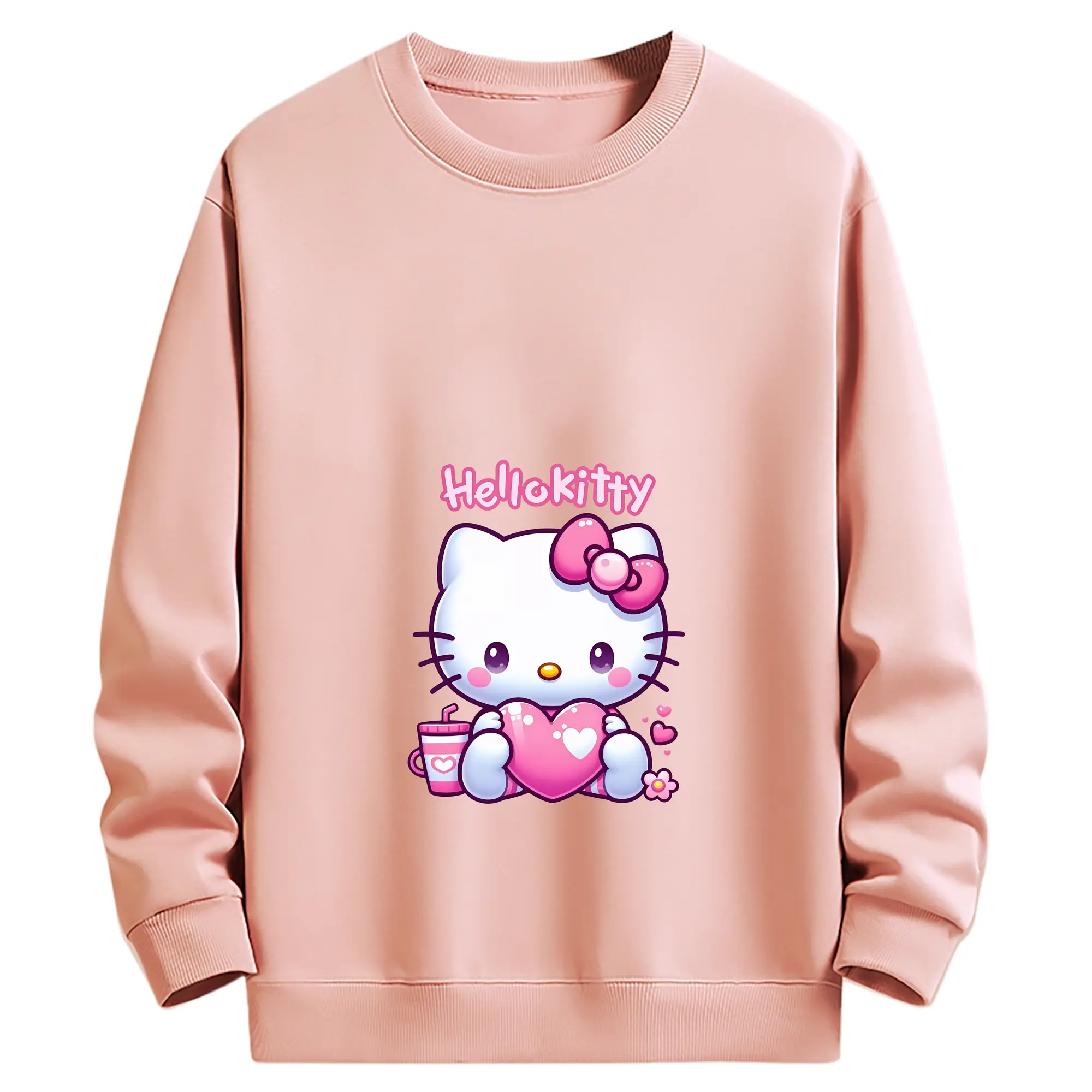 サンリオ グッズ,ハローキティ - 薄手 クルーネック スウェット 裏毛260g · ポリエステル 春秋向け カジュアル 男女兼用 · トレーナー デイリー スポーツ 散歩に最適