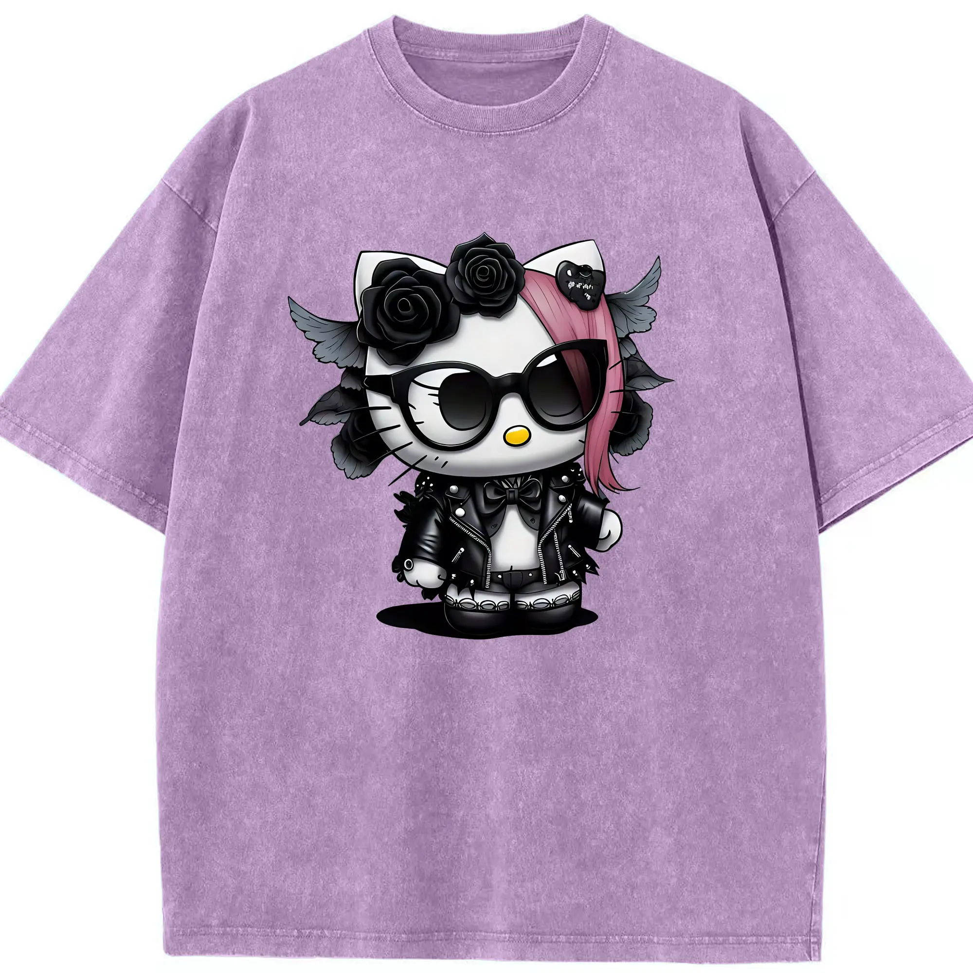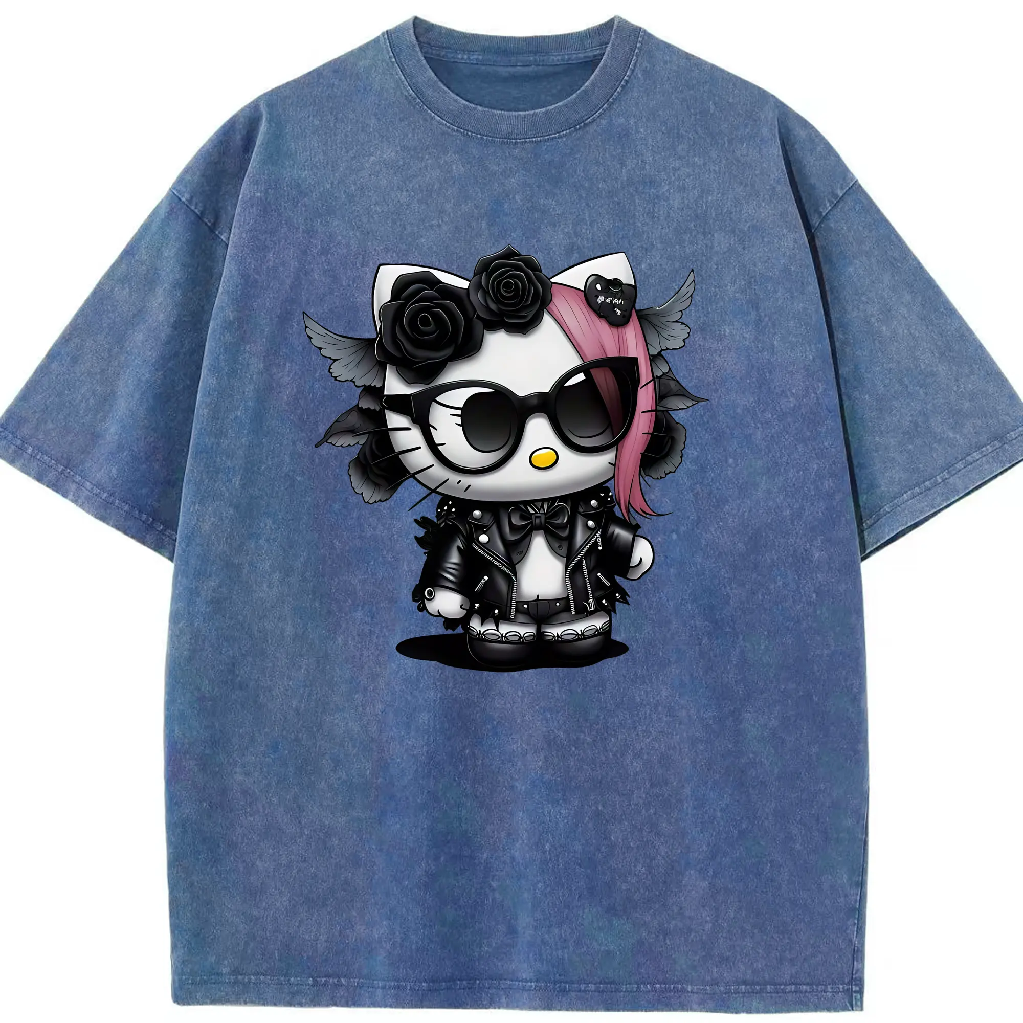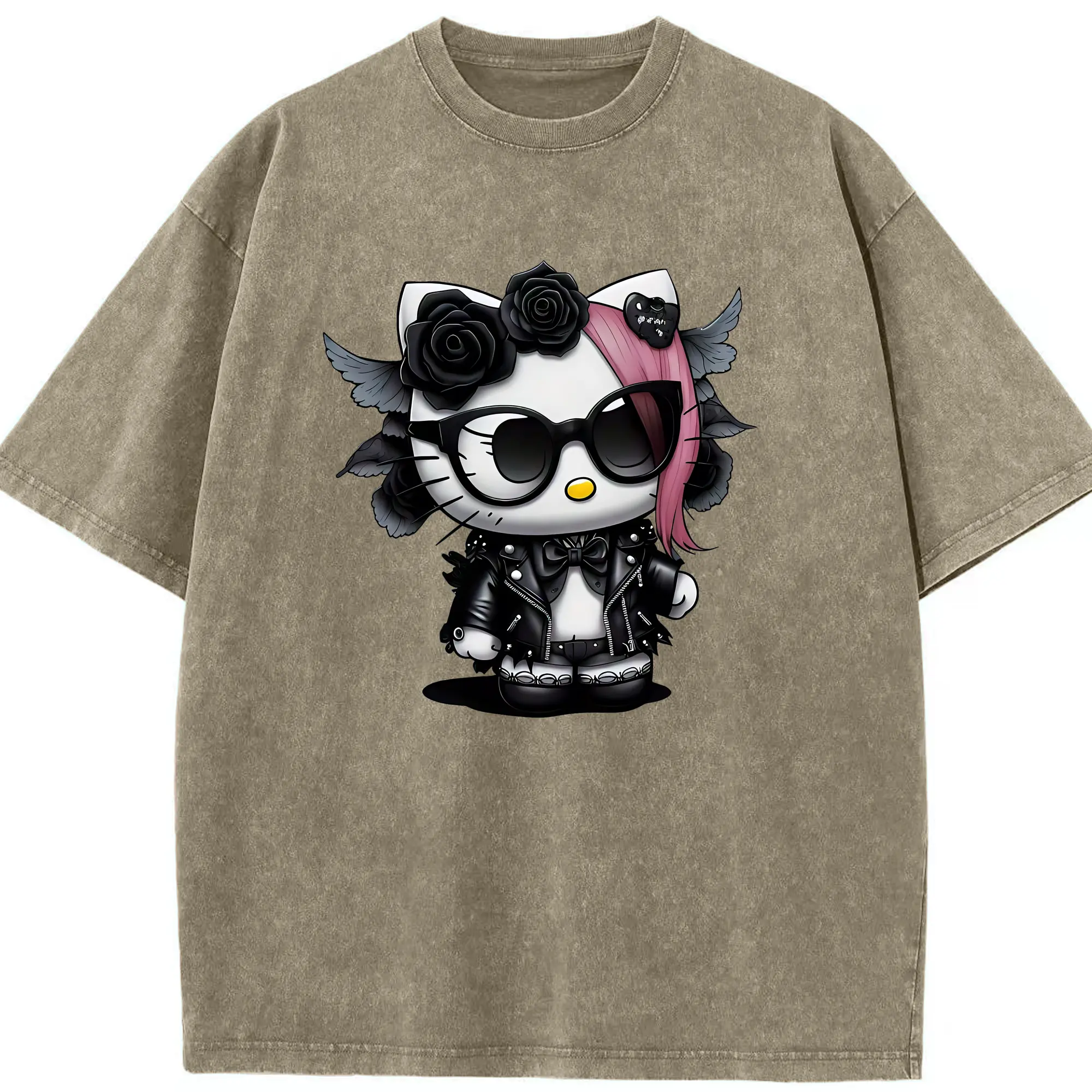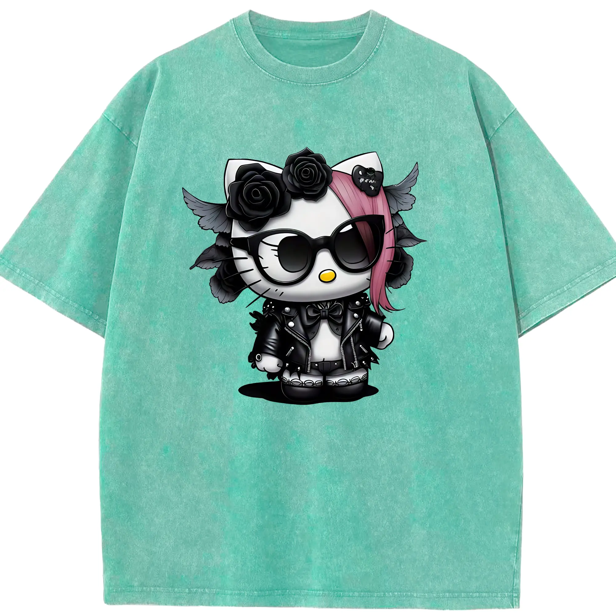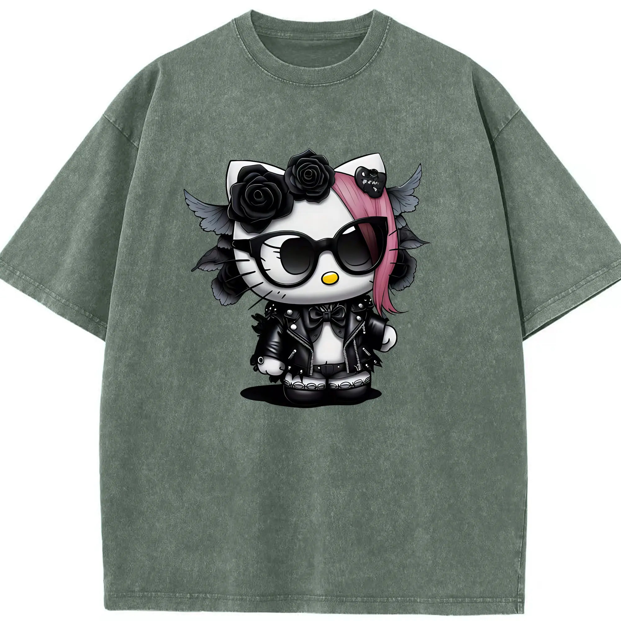 サンリオ グッズ,ハローキティ - 綿100% ヴィンテージ風 半袖Tシャツ ・ フロントプリント ・ 柔らか肌触り ・ 通気性 快適 ・ スポーツ カジュアル 外出用