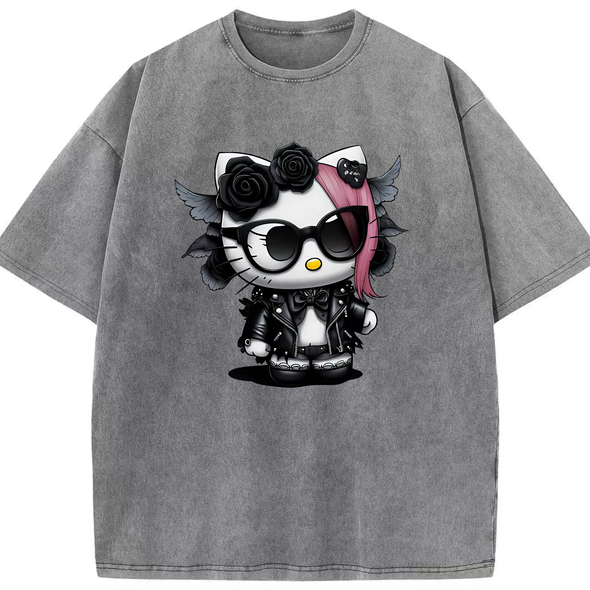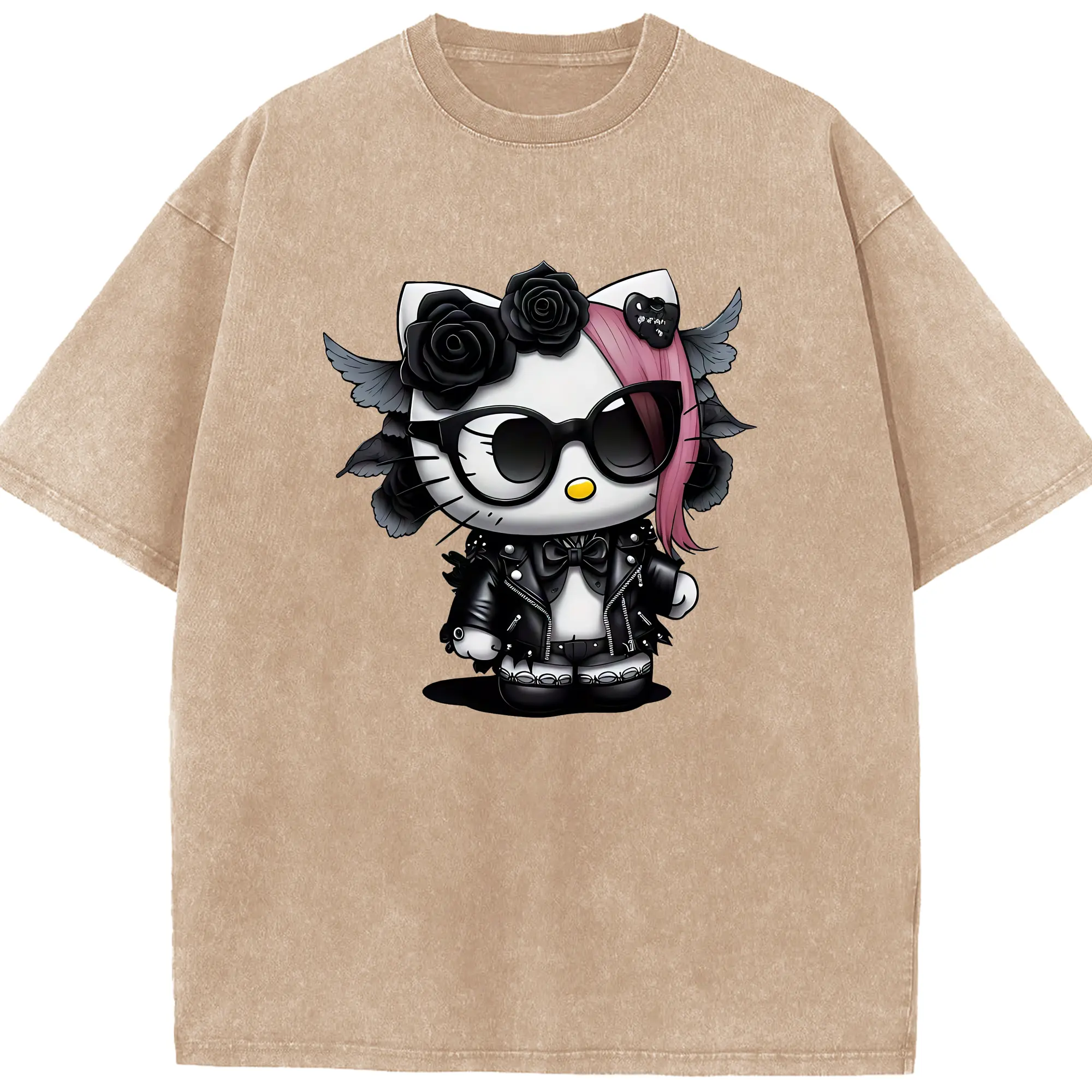 サンリオ グッズ,ハローキティ - 綿100% ヴィンテージ風 半袖Tシャツ ・ 背面プリント ・ 柔らか肌触り ・ 通気性 快適 ・ スポーツ カジュアル 外出用