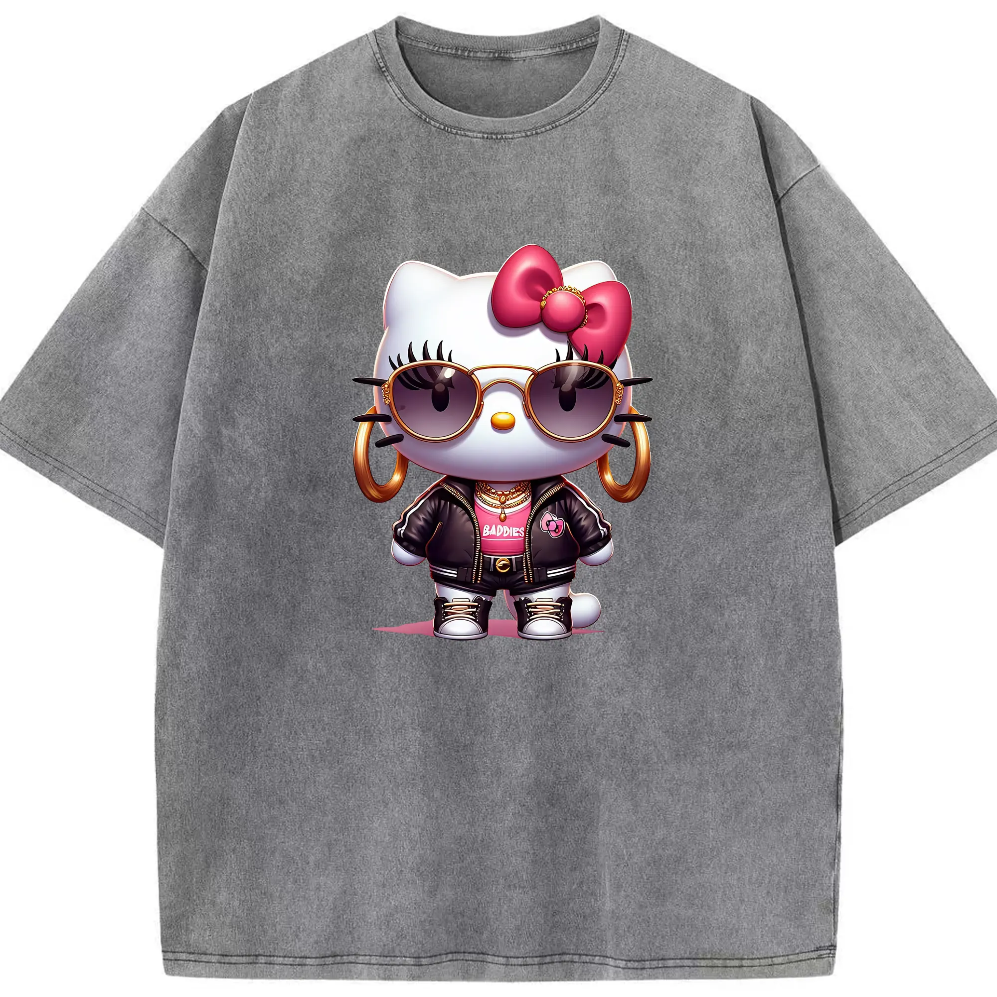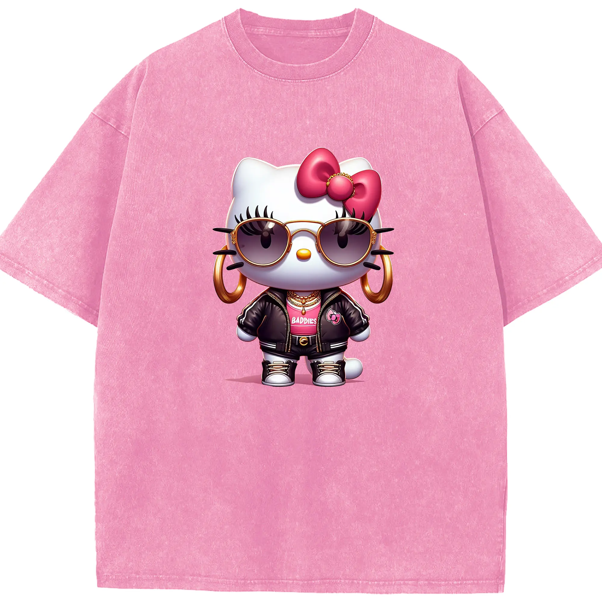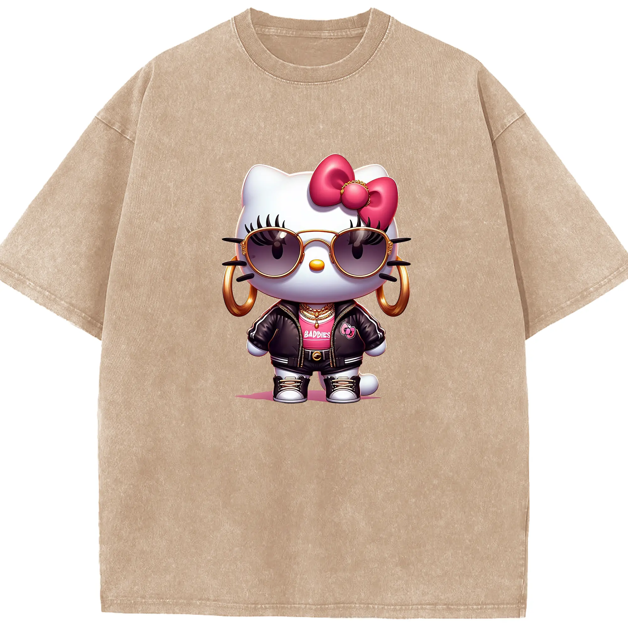 サンリオ グッズ,ハローキティ - 綿100% ヴィンテージ風 半袖Tシャツ ・ 背面プリント ・ 柔らか肌触り ・ 通気性 快適 ・ スポーツ カジュアル 外出用