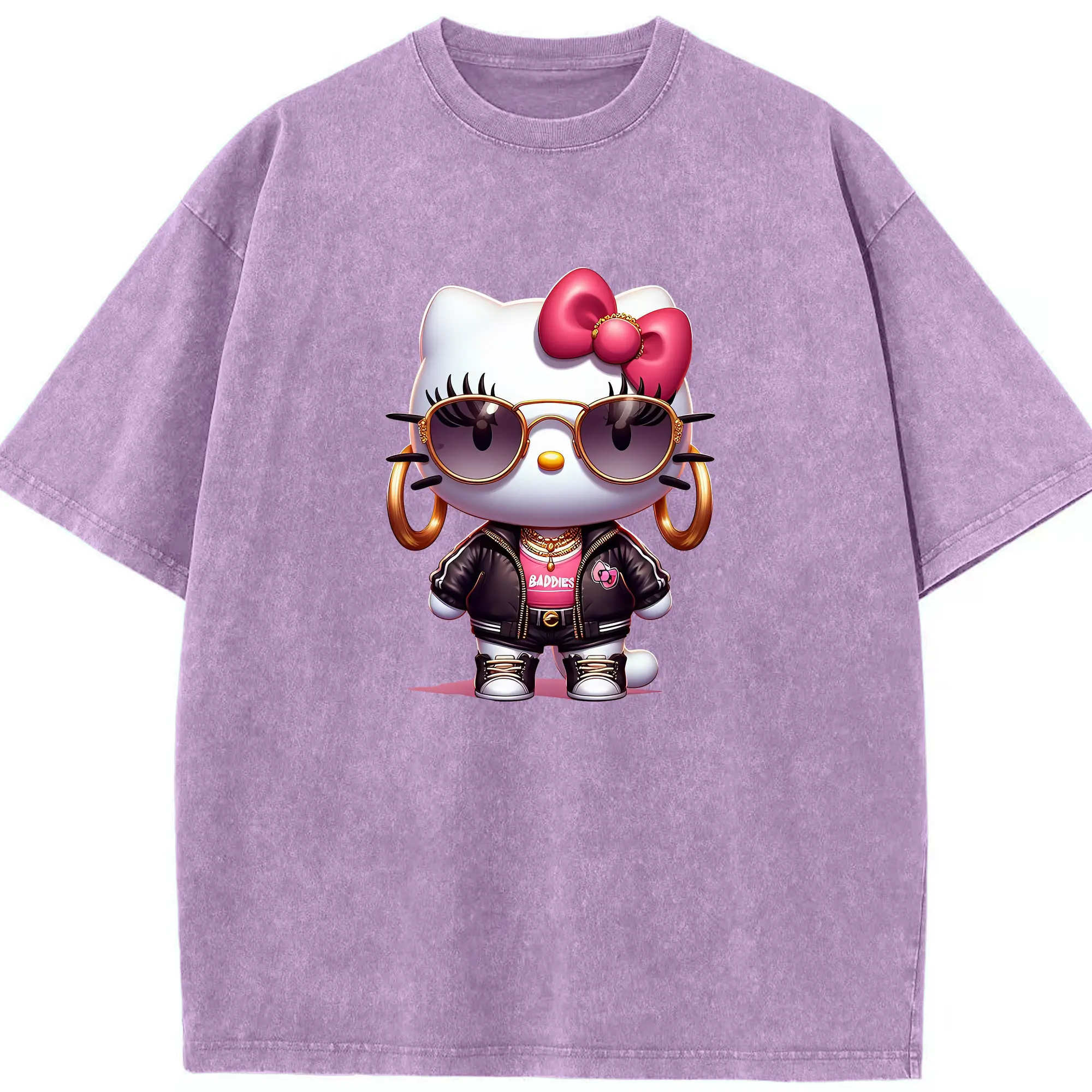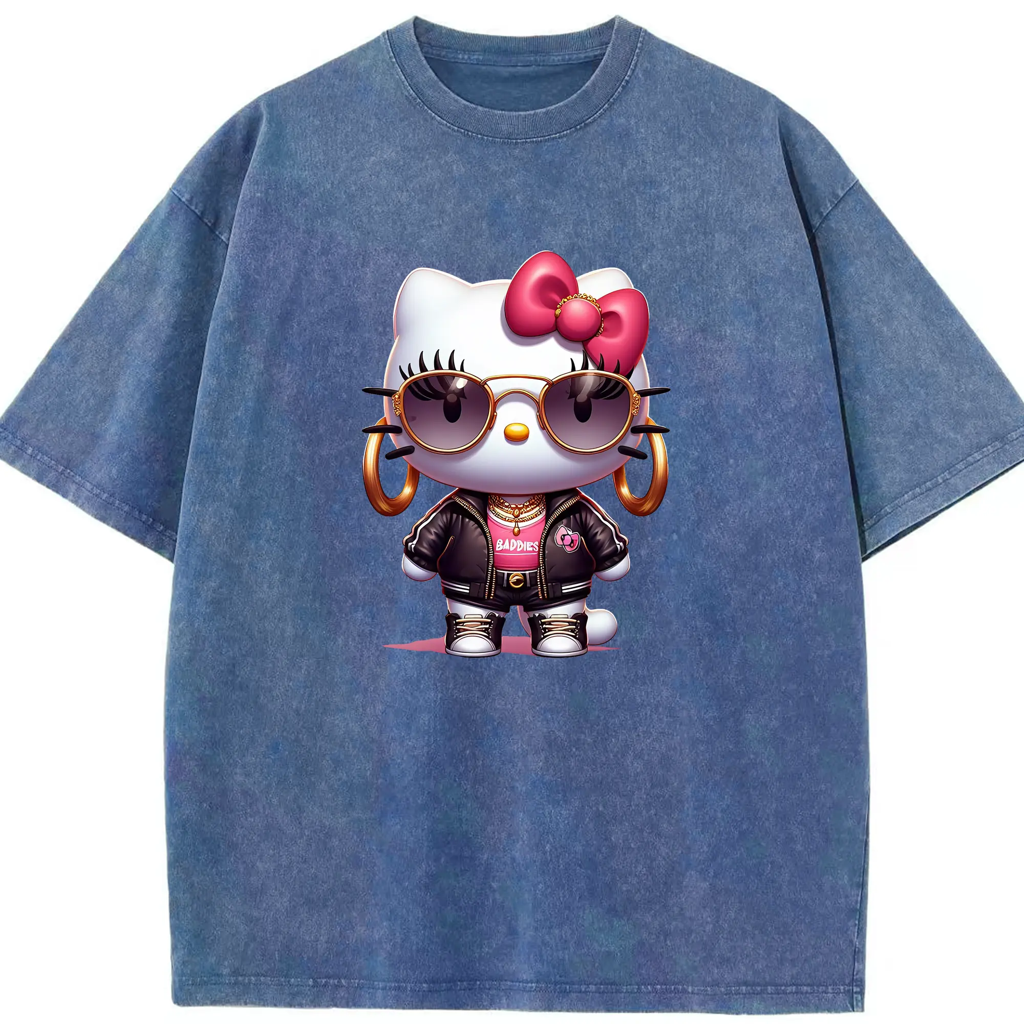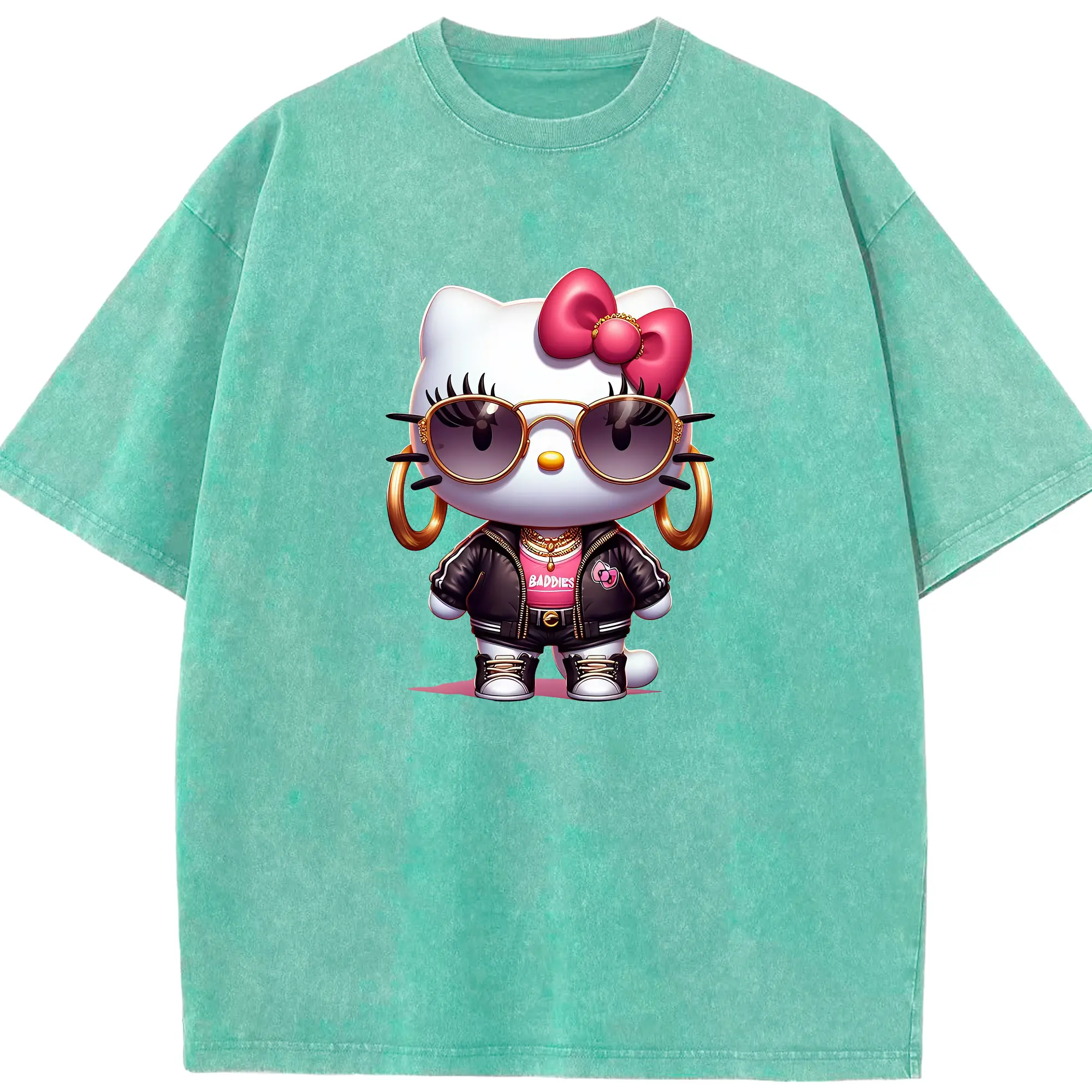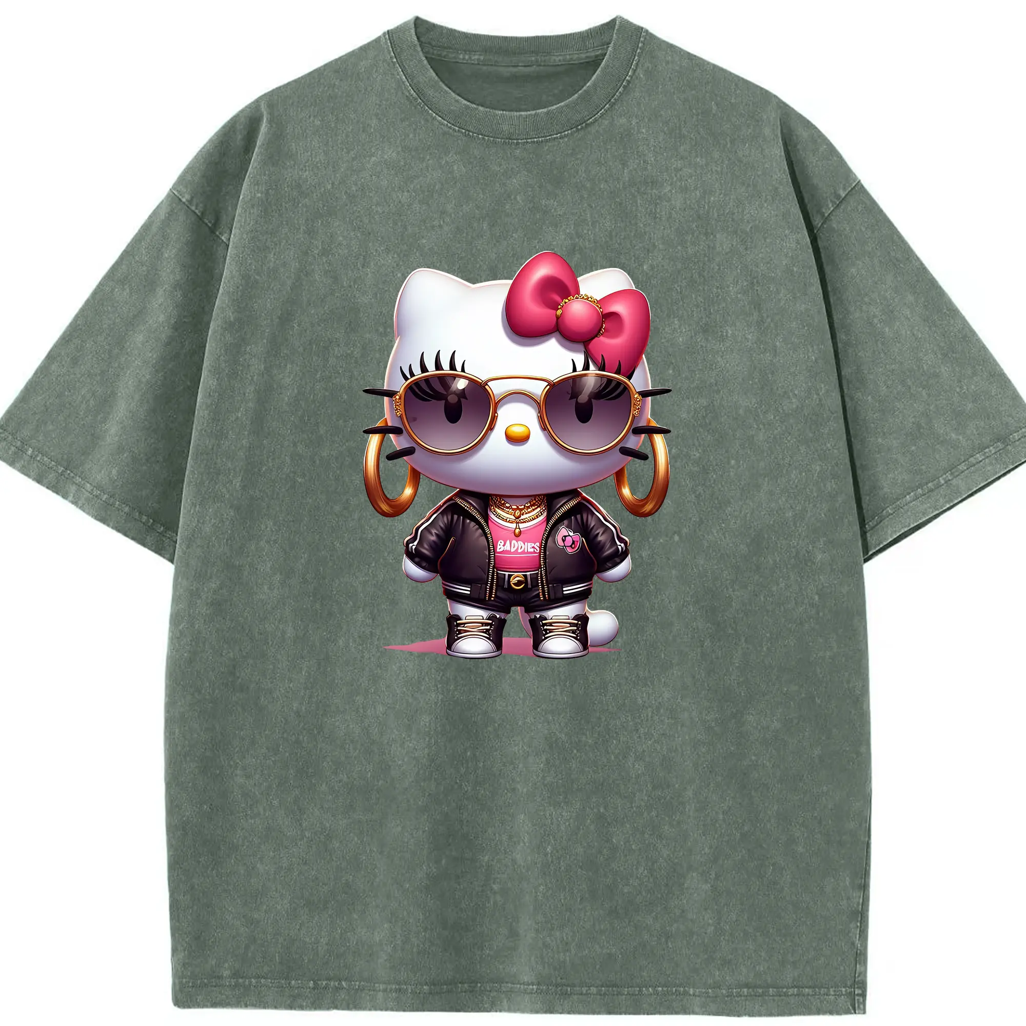 サンリオ グッズ,ハローキティ - 綿100% ヴィンテージ風 半袖Tシャツ ・ 背面プリント ・ 柔らか肌触り ・ 通気性 快適 ・ スポーツ カジュアル 外出用