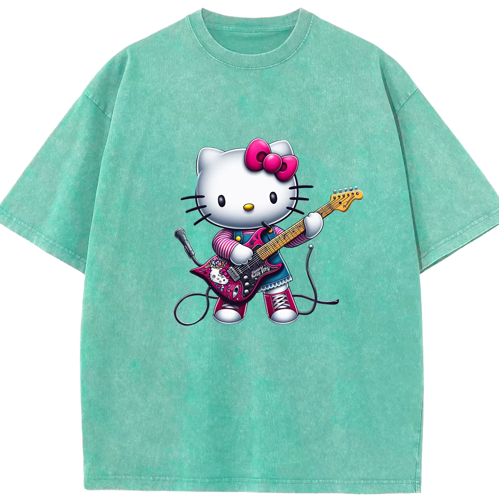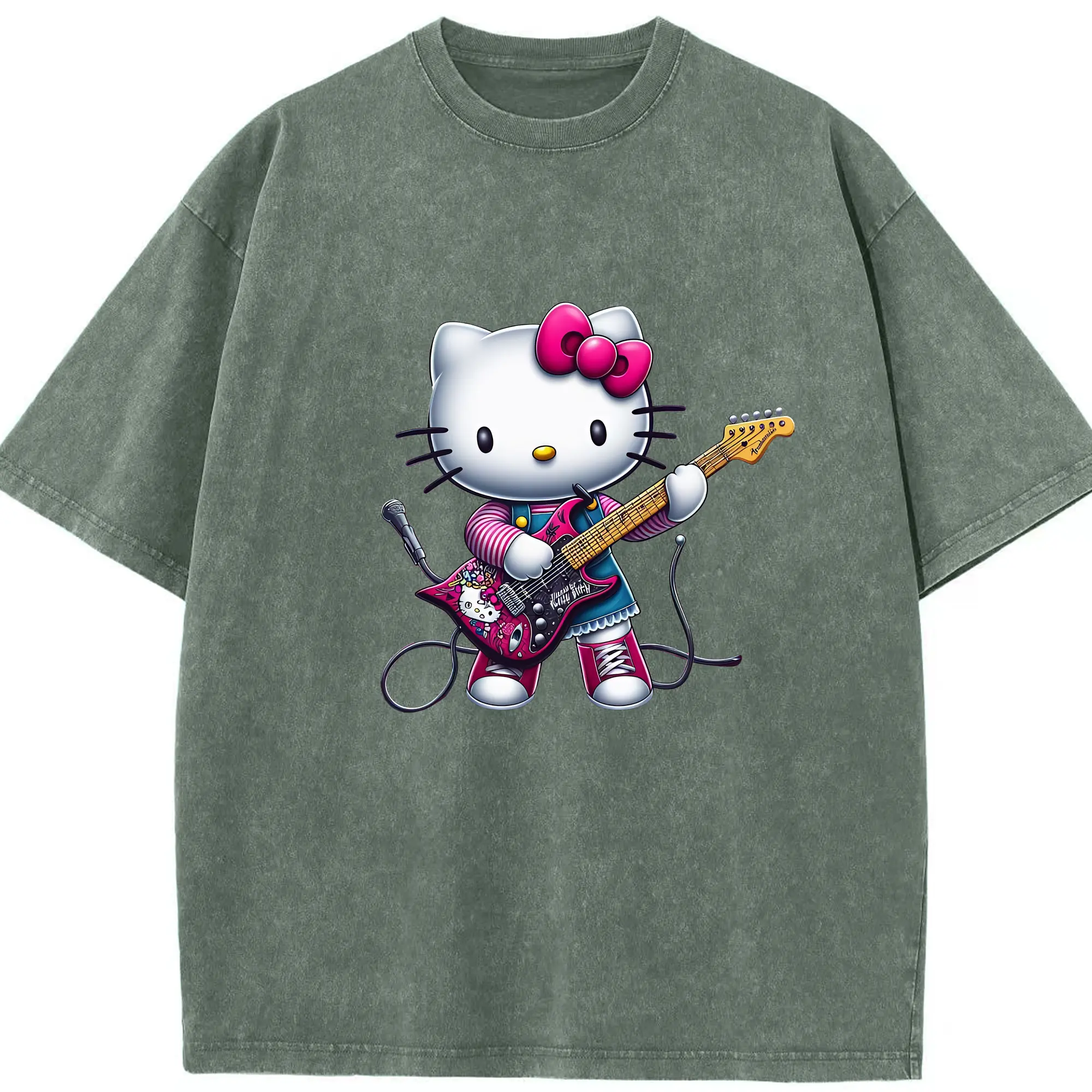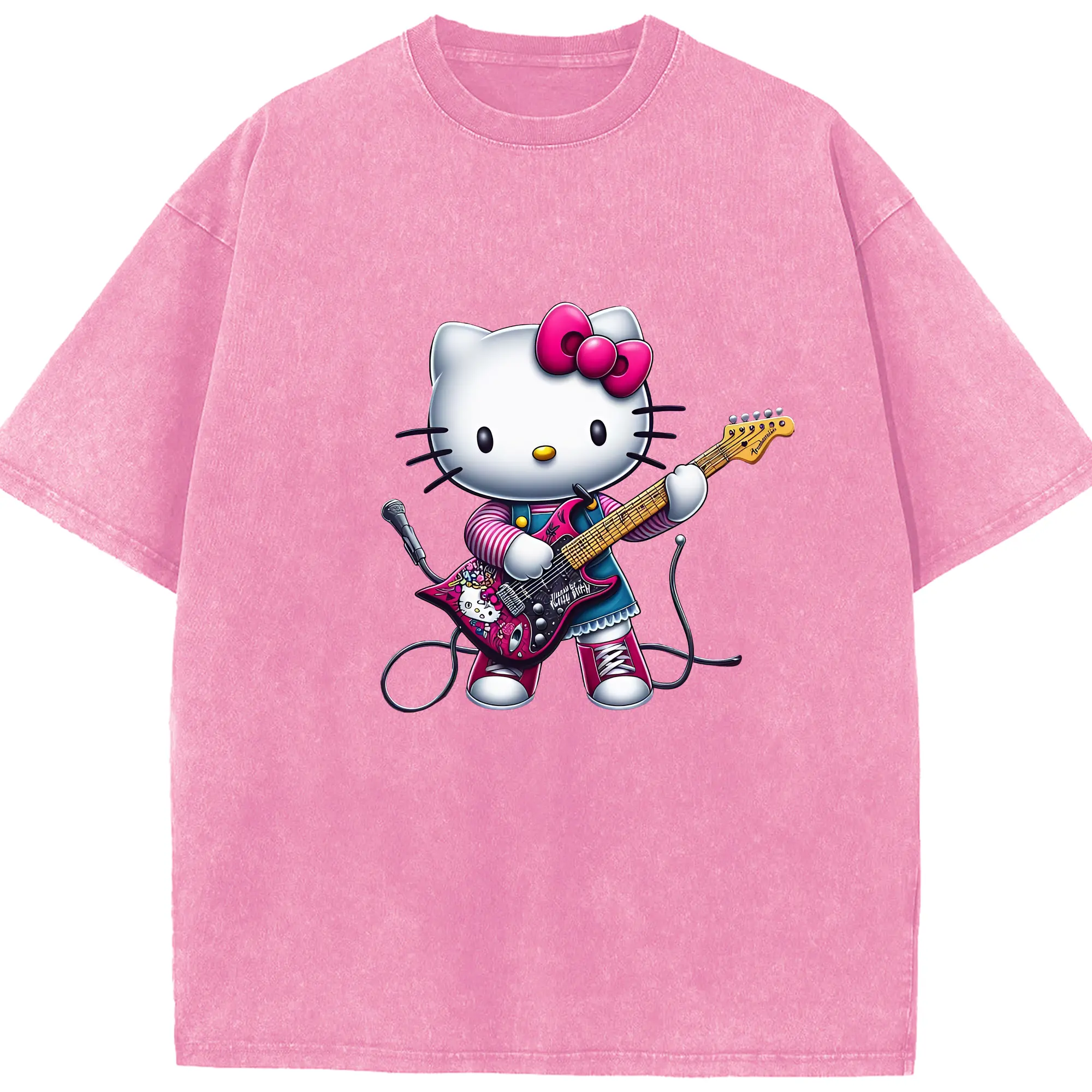 サンリオ グッズ,ハローキティ - 綿100% ヴィンテージ風 半袖Tシャツ ・ 背面プリント ・ 柔らか肌触り ・ 通気性 快適 ・ スポーツ カジュアル 外出用