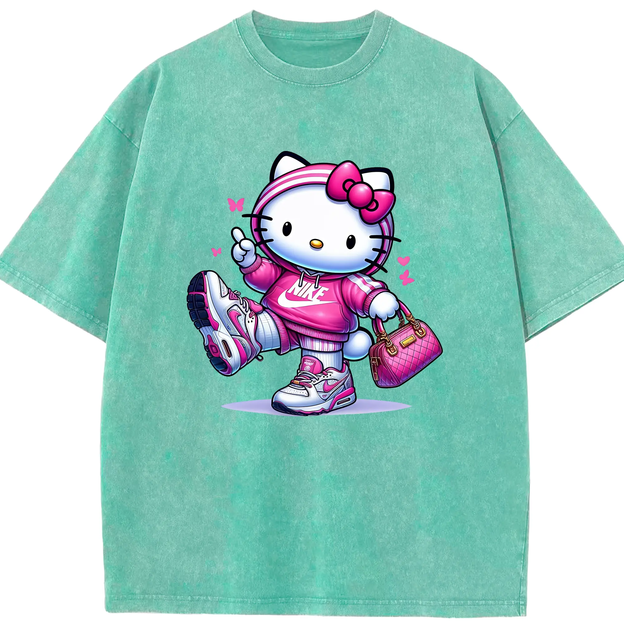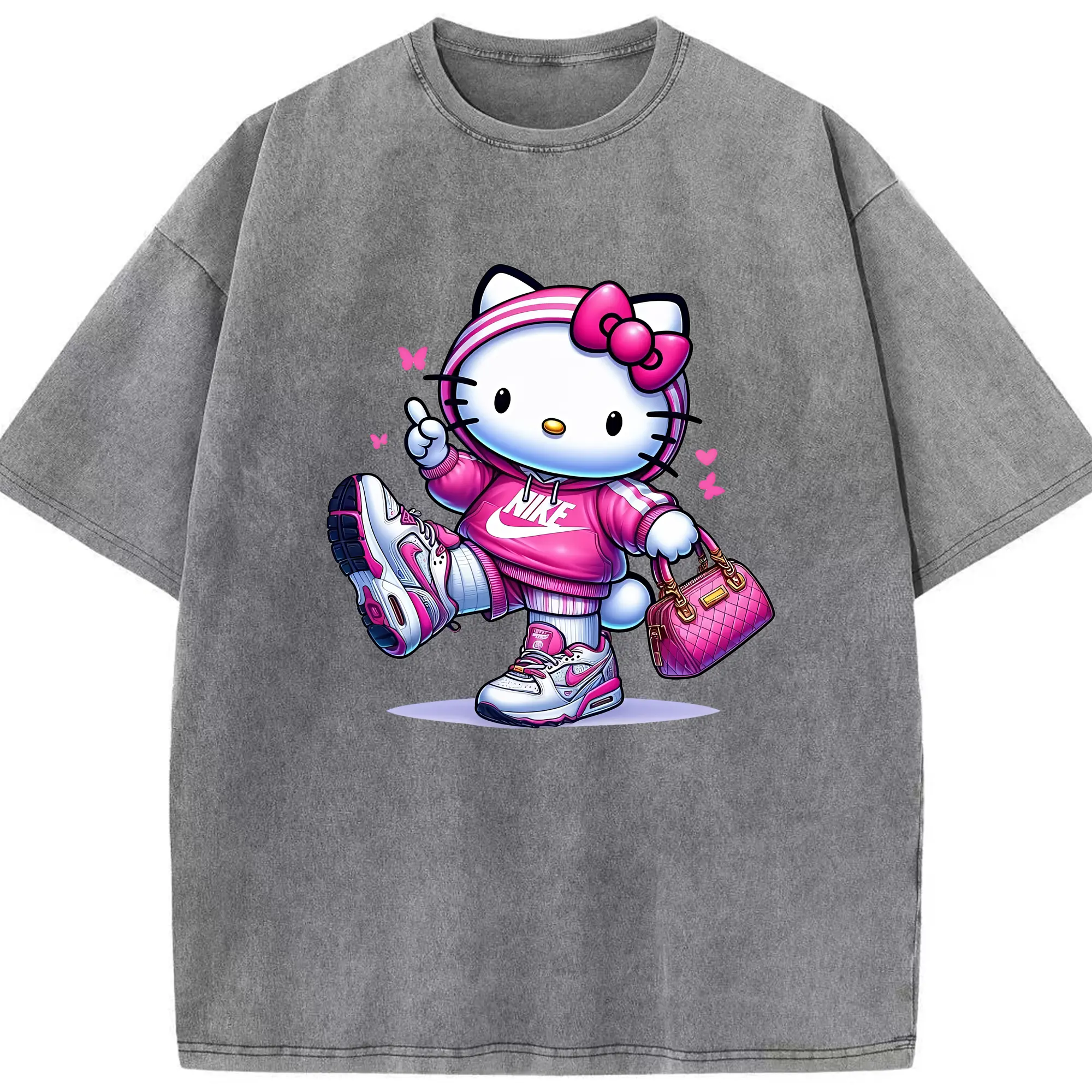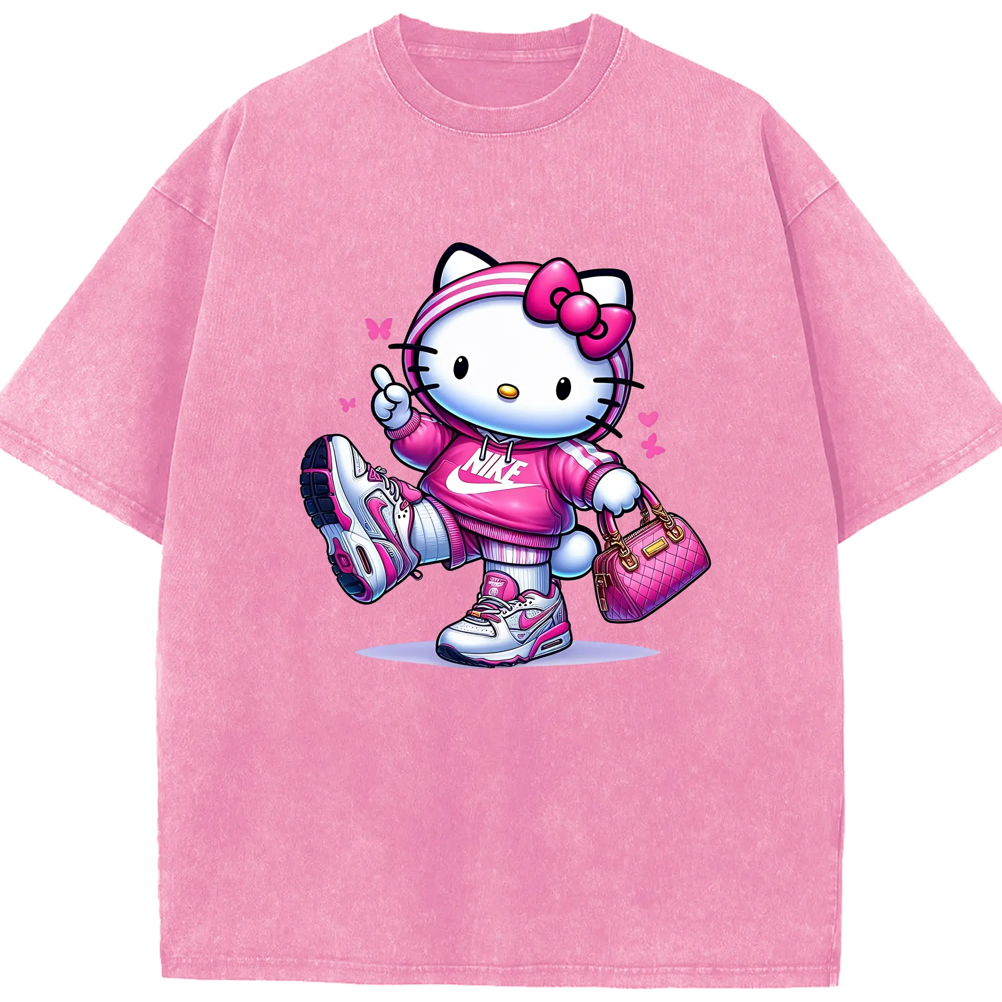 サンリオ グッズ,ハローキティ - 綿100% ヴィンテージ風 半袖Tシャツ ・ 背面プリント ・ 柔らか肌触り ・ 通気性 快適 ・ スポーツ カジュアル 外出用