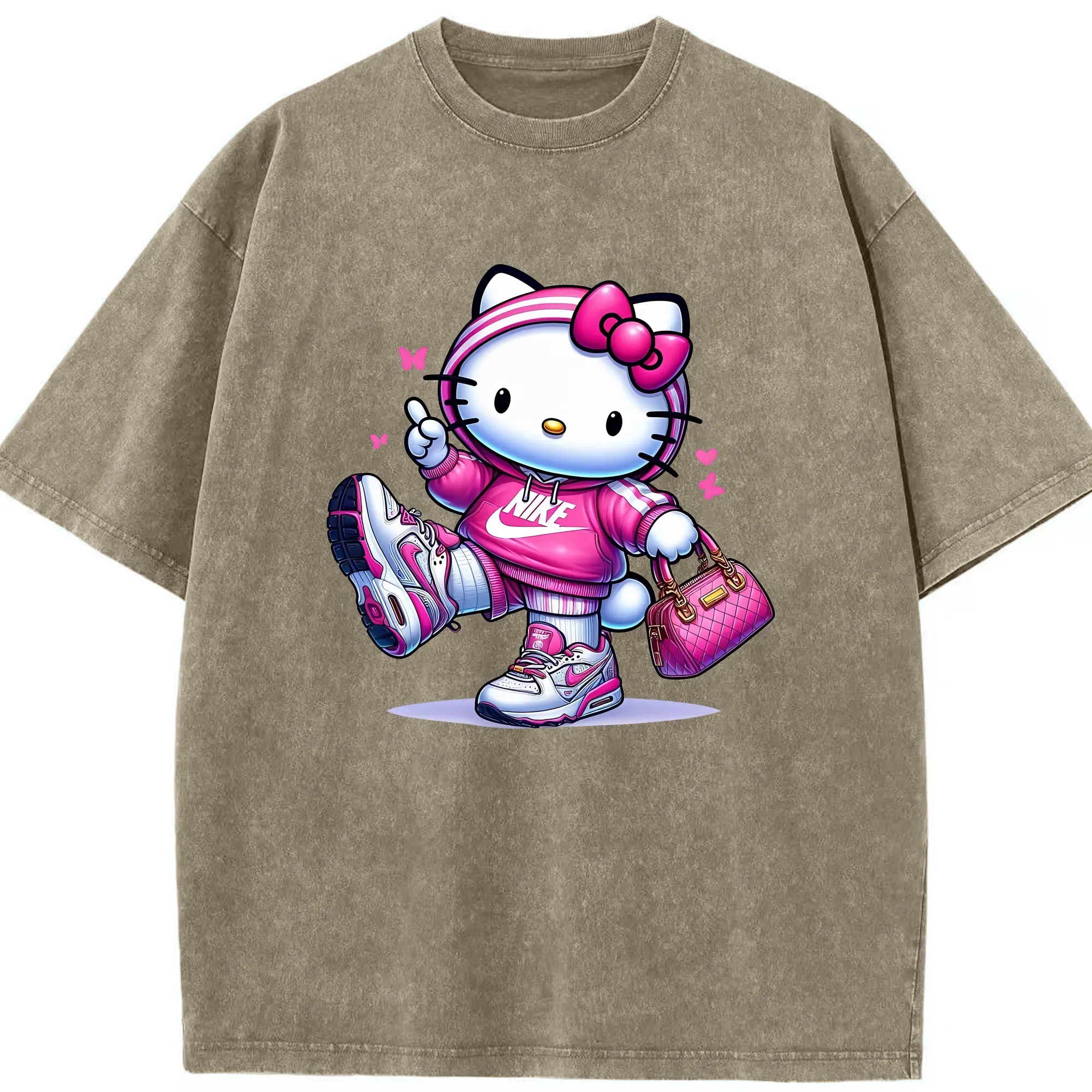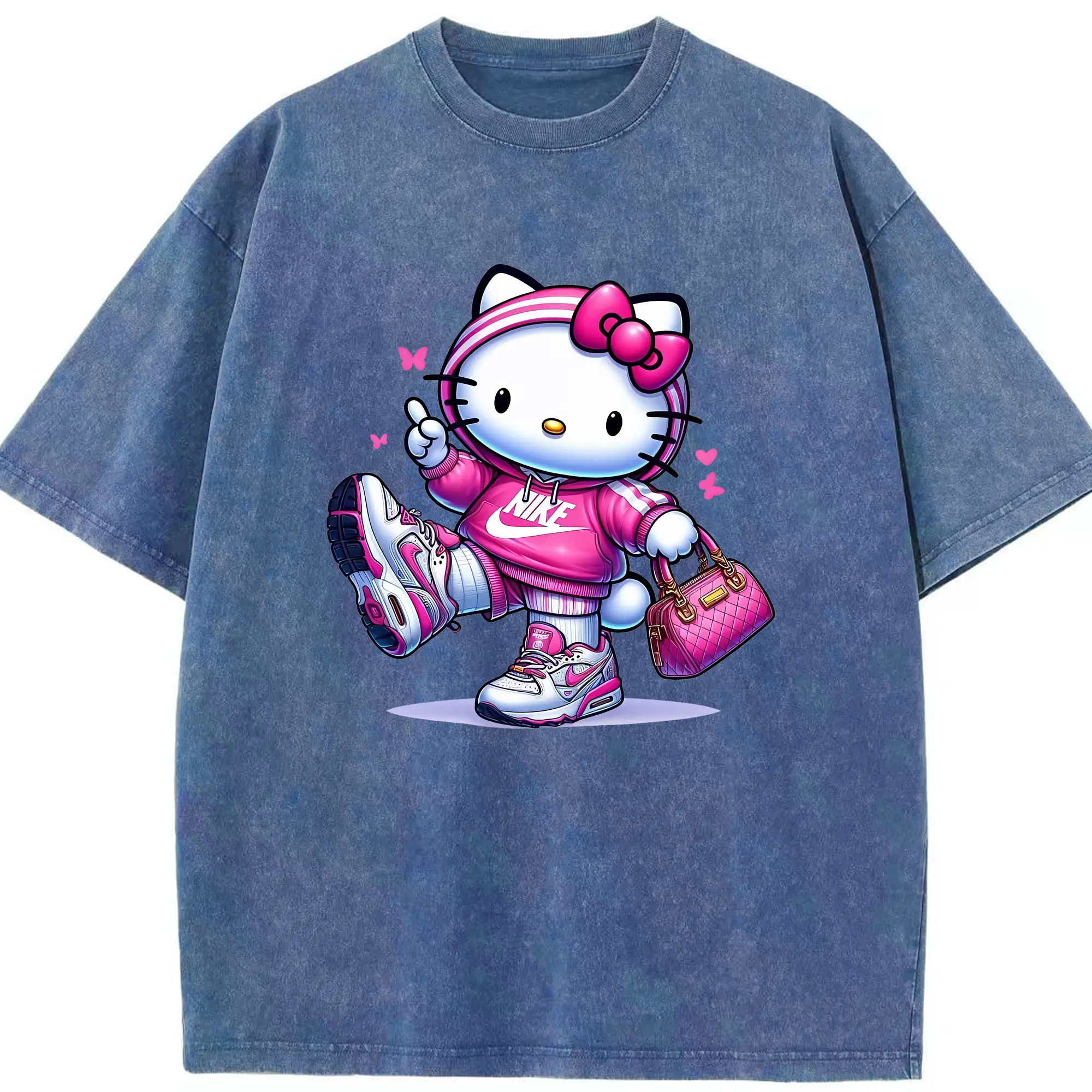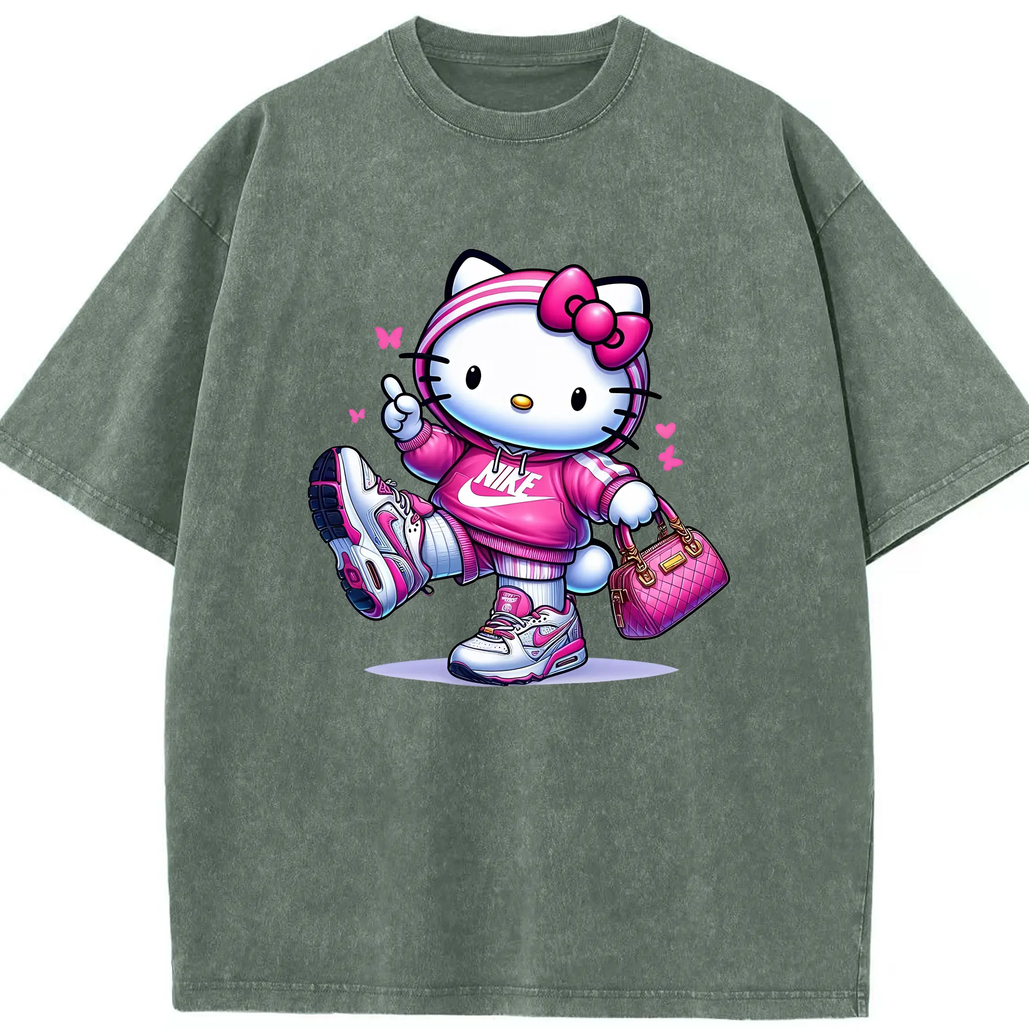 サンリオ グッズ,ハローキティ - 綿100% ヴィンテージ風 半袖Tシャツ ・ 背面プリント ・ 柔らか肌触り ・ 通気性 快適 ・ スポーツ カジュアル 外出用