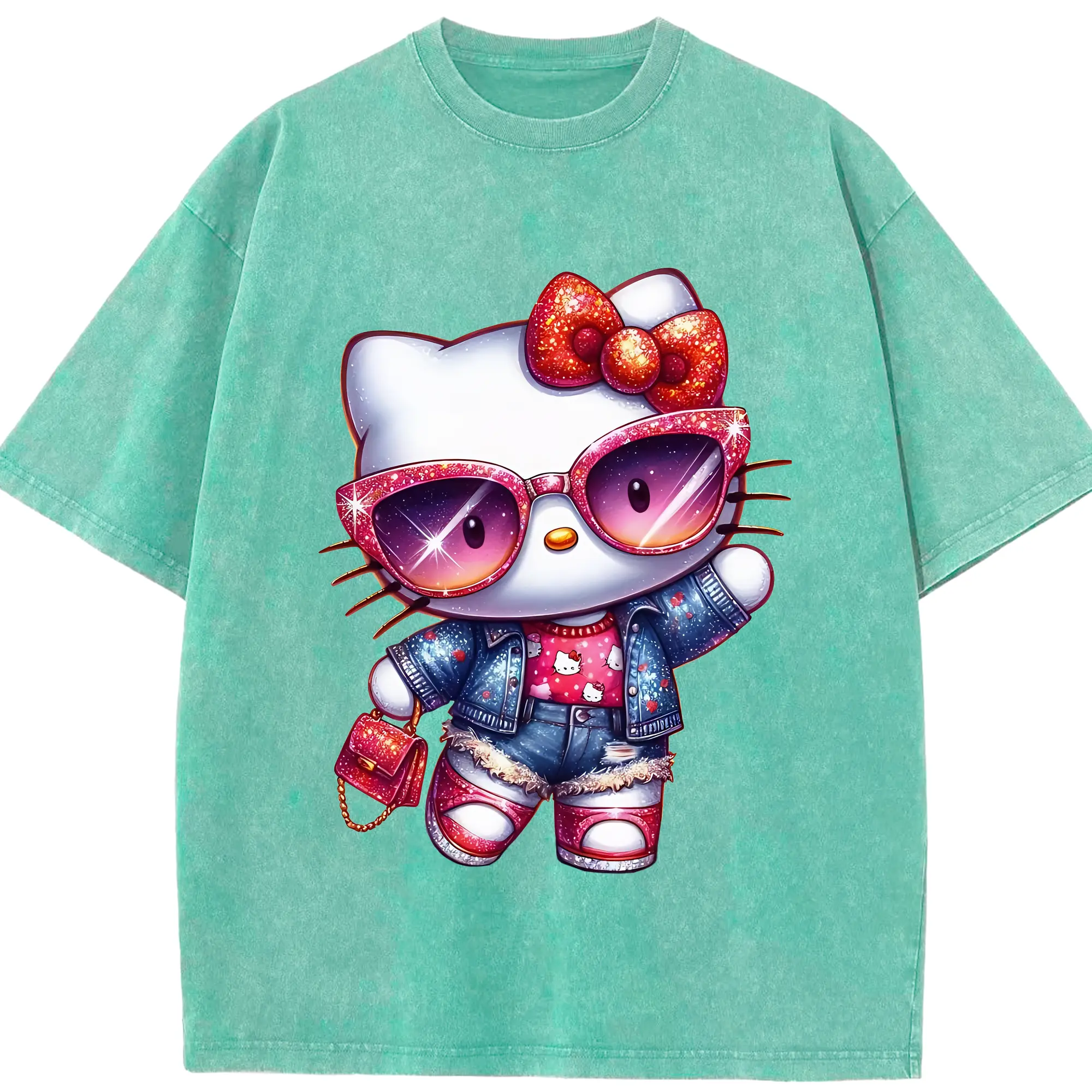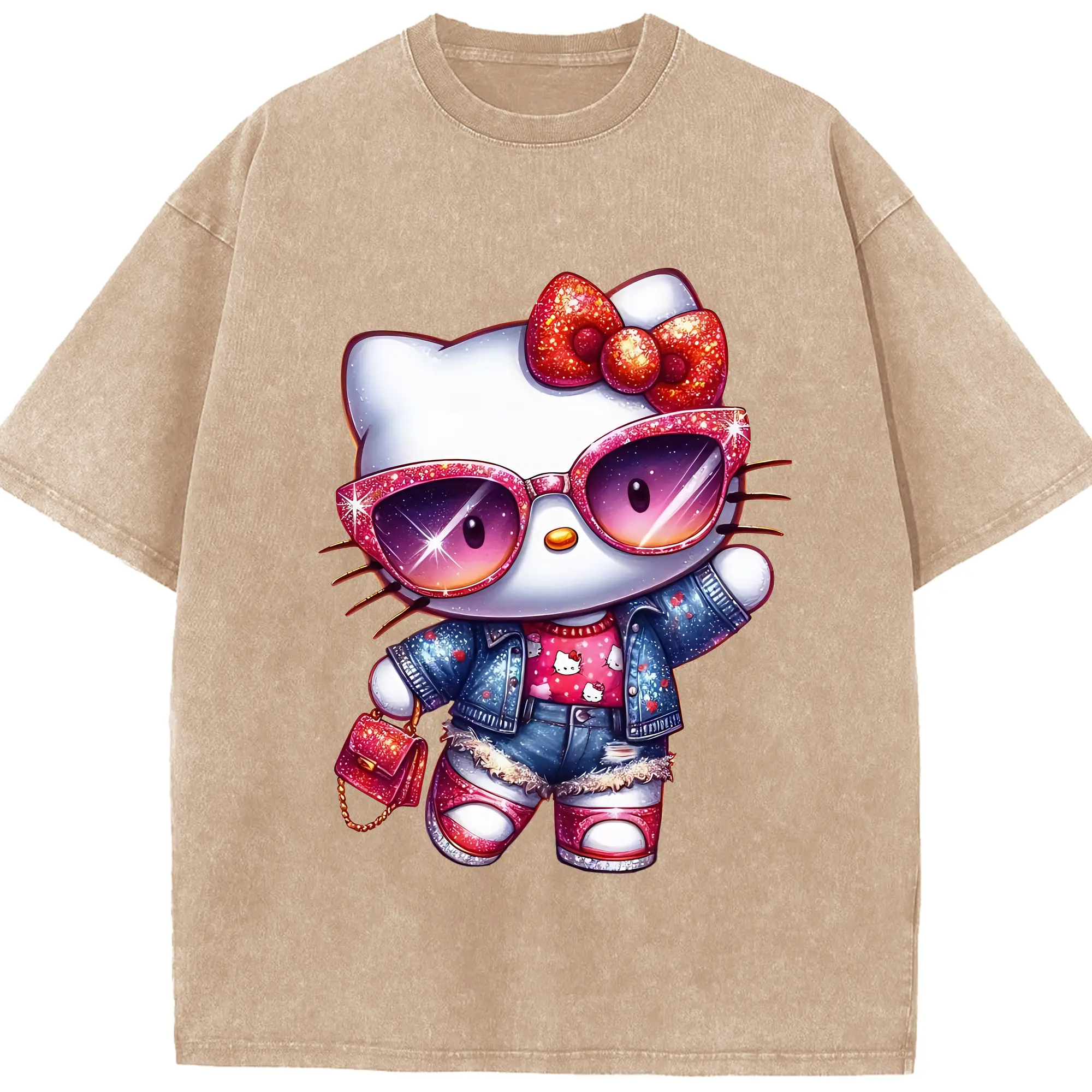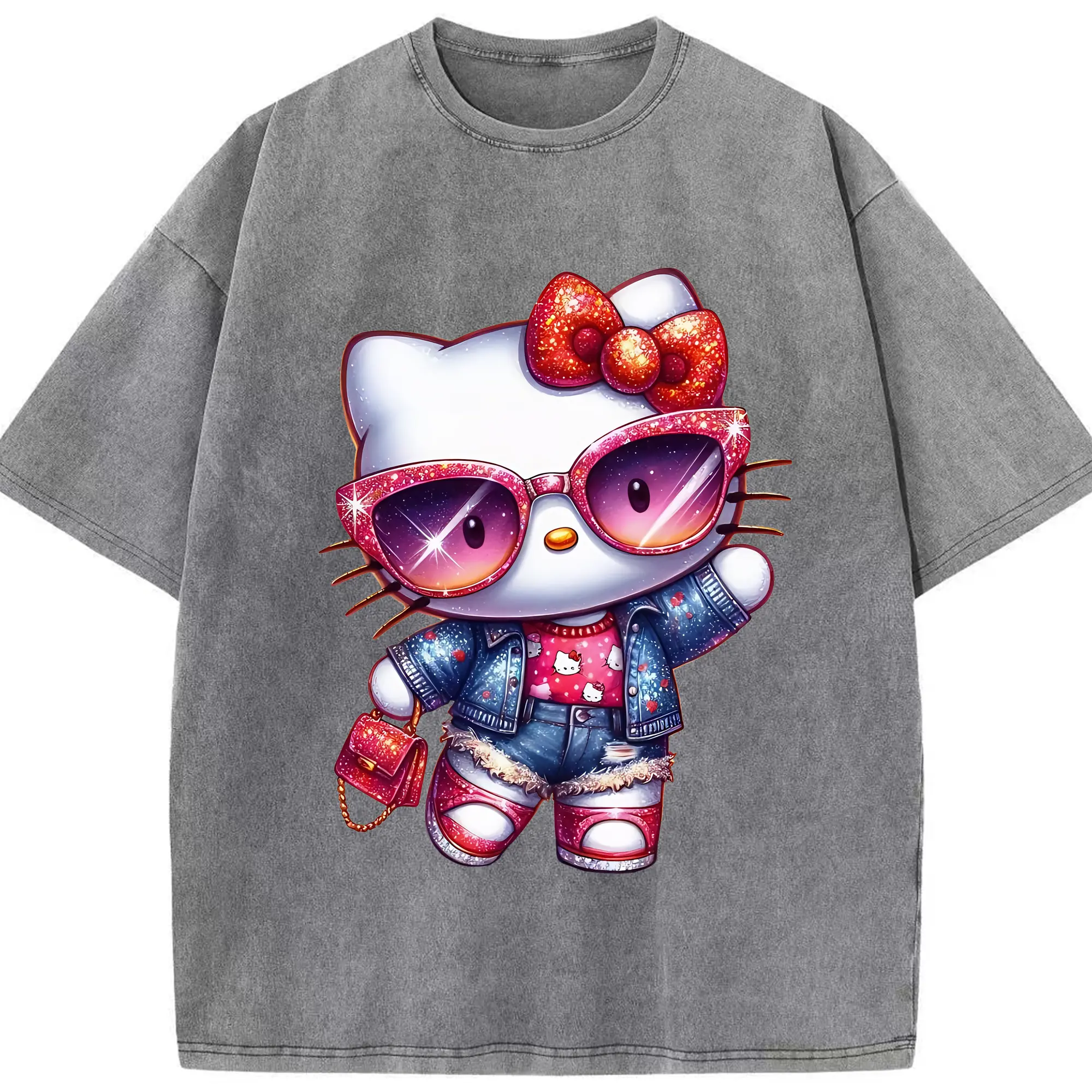サンリオ グッズ,ハローキティ - 綿100% ヴィンテージ風 半袖Tシャツ ・ 背面プリント ・ 柔らか肌触り ・ 通気性 快適 ・ スポーツ カジュアル 外出用